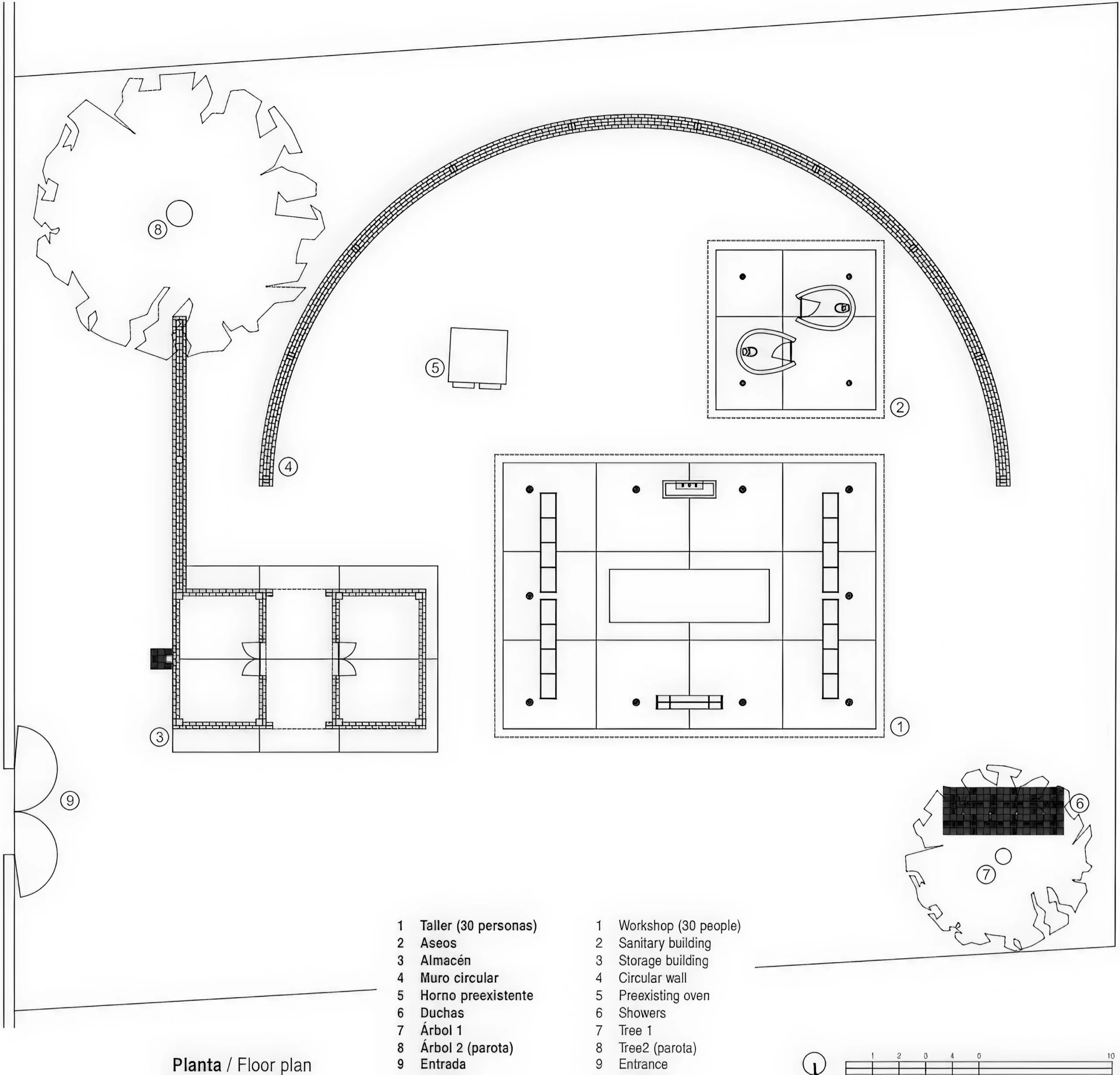 陶土展馆 / Clay Pavilion in Oaxaca | 阿尔瓦罗·西扎|Álvaro Siza 阿尔瓦罗·西扎|Alvaro Siza • 2026-03-16 下午12:01 • 公共建筑设计, 建筑设计, 教育建筑设计 陶土展馆由阿尔瓦罗·西扎设计,位于墨西哥瓦哈卡州,是一个专为当地社区儿童和青少年设计的陶艺教学空间。项目采用传统建造技术与当地材料,通过三个独立体量围绕半圆形砖墙庭院布局,展现了西扎对地域建筑与现代设计的融合。 设计: 阿尔瓦罗·西扎|Alvaro Siza 类型: 教育建筑设计 功能: 社区中心 风格: 地域主义 材料: 混凝土 木材 砖材 尺度: 小型建筑 地点:瓦哈卡 时间: 1970年 项目概述 陶土展馆位于墨西哥瓦哈卡州,是瓦比之家艺术项目的一部分,由雕塑家胡安·博斯科·索迪发起。该项目作为陶艺教学工作室,主要为周边社区的儿童和青少年提供学习当地陶艺技术的空间。建筑群包含三个主要体量,围绕直径8米的半圆形砖墙庭院组织,总建筑面积约200平方米。 设计理念 阿尔瓦罗·西扎的设计理念强调建筑与当地文化、环境的对话。陶土展馆延续了西扎对地域性建筑的关注,通过现代设计语言重新诠释墨西哥传统的”帕拉帕”建造技术。设计回应了场地特征,将建筑融入自然景观,同时满足社区教育功能需求。 空间与功能 空间组织以半圆形砖墙界定的沙地庭院为核心,三个功能体量环绕布置。主教学空间高7米,采用传统帕拉帕结构,周边完全开放,内置20英尺长混凝土工作台和展示架。次要体量包含卫生设施,第三个体量为砖砌储藏建筑,分为门厅、陶土储藏和工具存放三个区域。 材料与技术 项目主要采用当地材料:手工制作的特色砖块、干燥棕榈枝屋顶、木材结构和混凝土工作台。建筑技术融合了传统的帕拉帕建造体系与现代施工工艺,砖墙采用特殊尺寸定制以承受荷载,体现了对当地建造智慧的尊重与创新应用。 项目特色与启发 陶土展馆展示了如何通过简约的设计手法将传统建造技术与现代功能需求相结合。阿尔瓦罗·西扎的设计为社区教育建筑提供了范例,体现了建筑服务社会的本质,对当代地域主义建筑实践具有重要参考价值。 设计团队 阿尔瓦罗·西扎是葡萄牙著名建筑师,普利兹克奖得主,以其对现代主义建筑的深刻理解和独特的地域性表达闻名。他的作品注重场地文脉、材料真实性和空间体验,陶土展馆延续了其一贯的设计哲学,展现了大师对建筑本质的探索。 项目概述 陶土展馆位于墨西哥瓦哈卡州,是瓦比之家艺术项目的一部分,由雕塑家胡安·博斯科·索迪发起。该项目作为陶艺教学工作室,主要为周边社区的儿童和青少年提供学习当地陶艺技术的空间。建筑群包含三个主要体量,围绕直径8米的半圆形砖墙庭院组织,总建筑面积约200平方米。 设计理念 阿尔瓦罗·西扎的设计理念强调建筑与当地文化、环境的对话。陶土展馆延续了西扎对地域性建筑的关注,通过现代设计语言重新诠释墨西哥传统的”帕拉帕”建造技术。设计回应了场地特征,将建筑融入自然景观,同时满足社区教育功能需求。 空间与功能 空间组织以半圆形砖墙界定的沙地庭院为核心,三个功能体量环绕布置。主教学空间高7米,采用传统帕拉帕结构,周边完全开放,内置20英尺长混凝土工作台和展示架。次要体量包含卫生设施,第三个体量为砖砌储藏建筑,分为门厅、陶土储藏和工具存放三个区域。 材料与技术 项目主要采用当地材料:手工制作的特色砖块、干燥棕榈枝屋顶、木材结构和混凝土工作台。建筑技术融合了传统的帕拉帕建造体系与现代施工工艺,砖墙采用特殊尺寸定制以承受荷载,体现了对当地建造智慧的尊重与创新应用。 项目特色与启发 陶土展馆展示了如何通过简约的设计手法将传统建造技术与现代功能需求相结合。阿尔瓦罗·西扎的设计为社区教育建筑提供了范例,体现了建筑服务社会的本质,对当代地域主义建筑实践具有重要参考价值。 设计团队 阿尔瓦罗·西扎是葡萄牙著名建筑师,普利兹克奖得主,以其对现代主义建筑的深刻理解和独特的地域性表达闻名。他的作品注重场地文脉、材料真实性和空间体验,陶土展馆延续了其一贯的设计哲学,展现了大师对建筑本质的探索。 本文来自 © 阿尔瓦罗·西扎|Alvaro Siza, 发布于 © 建筑学院官方网站。 未经授权,禁止转载或摘编。 编辑版本版权归 © 建筑学院官方网站 所有, 设计、图纸及照片版权归设计方 © 阿尔瓦罗·西扎|Alvaro Siza ↗ 所有。 查看作者在建筑学院发布的更多作品: 阿尔瓦罗·西扎|Alvaro Siza @ 建筑学院官方网站 clay-pavilion地域主义建筑教育建筑设计瓦哈卡建筑阿尔瓦罗·西扎作品 阿尔瓦罗·西扎|Alvaro Siza事务所 & 设计师 下载原图 收藏 0 关于作者 阿尔瓦罗·西扎|Alvaro Siza事务所 & 设计师 关注私信 36 文章 0 评论 1 粉丝 阿尔瓦罗·西扎(Álvaro Siza)是葡萄牙著名建筑师,1992年普利兹克奖得主。他以融合葡萄牙建筑传统与国际现代主义的“诗意现代主义”风格闻名,代表作包括勒萨德帕梅拉游泳池等。 波哥尼大学城市校园 / Bocconi University Urban Campus | SANAA 上一篇 2026-03-15 下午9:32 台湾嘉卿园陵园 / Chia Ching Mausoleum, New Taipei City | 阿尔瓦罗·西扎|Álvaro Siza 下一篇 2026-03-16 下午12:10 猜你喜欢 大学校园系统理论模型 / Theoretical Model for a System of University Campuses | Dogma 2026-01-25 概念建筑 特鲁尼建筑学院 / Architecture Faculty in Tournai | 艾雷斯·