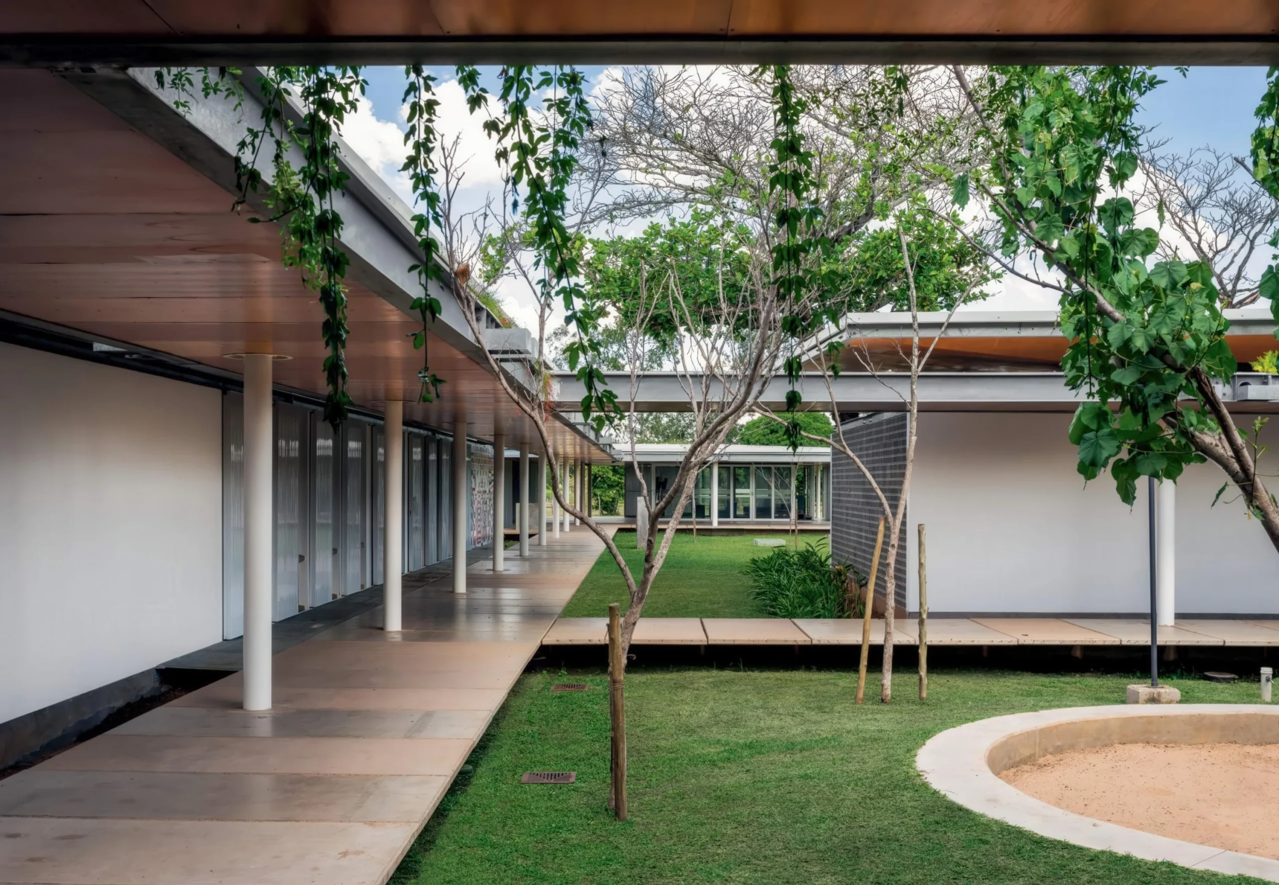 博多库纳儿童村 / Children’s Village in Bodoquena | Estúdio Gustavo Utrabo Estudio Gustavo Utrabo • 2分钟前 • 公共建筑设计, 建筑设计, 教育建筑设计 博多库纳儿童村由Estúdio Gustavo Utrabo设计团队改造,位于巴西马托格罗索州米兰达市,为800名低收入家庭儿童提供教育、食宿等综合服务的寄宿学校。项目通过模块化预制系统连接24栋独立建筑,创造覆盖走道和共享庭院,提升舒适度、能源效率和空间可达性。 设计: Estudio Gustavo Utrabo 类型: 教育建筑设计 功能: 学校 风格: 当代建筑 材料: 混凝土 钢材 木材 金属板 尺度: 中型建筑 地点:米兰达 时间: 1970年 项目概述 博多库纳儿童村位于巴西马托格罗索州米兰达市,是Bradesco基金会旗下的第二所寄宿学校,为800名低收入家庭儿童提供教育、食宿等全方位服务。该项目通过对原有24栋独立建筑群的改造与连接,于2017年至2020年间完成更新,旨在提升建筑舒适度与使用效率。 设计理念 设计团队以尊重场地原有几何形态与儿童日常路径为基础,通过插入覆盖走道系统,重新组织建筑与景观的关系。模块化设计回应了潘塔纳尔湿地广阔地貌的尺度挑战,在重复的韵律中展现地域特征与地形渐变。 空间与功能 项目将两个建筑群通过覆盖走道相连,形成新的共享庭院和补充功能空间。走道系统遵循原有窗户间距的模数,确保施工精度与效率。独立悬挑的单坡屋顶不仅提供持续通风,还创造了远近视觉层次,增强了建筑与自然环境的对话。 材料与技术 采用预制混凝土与钢材的模块化系统,重复使用统一尺寸构件,确保在偏远地区施工的精确性。主要材料包括热镀锌钢材、海军胶合板、石材隔热层和粉末涂层金属板,兼顾耐久性与环境适应性。 项目特色与启发 博多库纳儿童村展示了如何在偏远地区通过模块化设计与预制技术实现高质量建筑更新。项目为弱势儿童群体创造了平等教育机会,其空间组织与可持续策略为类似社会公益项目提供了重要参考。 设计团队 Estúdio Gustavo Utrabo是巴西新兴建筑事务所,专注于社会性建筑与可持续设计。团队与Pedro Duschenes、Adriana Benguela和Marcelo Rosenbaum合作完成本项目,体现了跨专业协作在复杂项目中的价值。 项目概述 博多库纳儿童村位于巴西马托格罗索州米兰达市,是Bradesco基金会旗下的第二所寄宿学校,为800名低收入家庭儿童提供教育、食宿等全方位服务。该项目通过对原有24栋独立建筑群的改造与连接,于2017年至2020年间完成更新,旨在提升建筑舒适度与使用效率。 设计理念 设计团队以尊重场地原有几何形态与儿童日常路径为基础,通过插入覆盖走道系统,重新组织建筑与景观的关系。模块化设计回应了潘塔纳尔湿地广阔地貌的尺度挑战,在重复的韵律中展现地域特征与地形渐变。 空间与功能 项目将两个建筑群通过覆盖走道相连,形成新的共享庭院和补充功能空间。走道系统遵循原有窗户间距的模数,确保施工精度与效率。独立悬挑的单坡屋顶不仅提供持续通风,还创造了远近视觉层次,增强了建筑与自然环境的对话。 材料与技术 采用预制混凝土与钢材的模块化系统,重复使用统一尺寸构件,确保在偏远地区施工的精确性。主要材料包括热镀锌钢材、海军胶合板、石材隔热层和粉末涂层金属板,兼顾耐久性与环境适应性。 项目特色与启发 博多库纳儿童村展示了如何在偏远地区通过模块化设计与预制技术实现高质量建筑更新。项目为弱势儿童群体创造了平等教育机会,其空间组织与可持续策略为类似社会公益项目提供了重要参考。 设计团队 Estúdio Gustavo Utrabo是巴西新兴建筑事务所,专注于社会性建筑与可持续设计。团队与Pedro Duschenes、Adriana Benguela和Marcelo Rosenbaum合作完成本项目,体现了跨专业协作在复杂项目中的价值。 本文来自 © Estudio Gustavo Utrabo, 发布于 © 建筑学院官方网站。 未经授权,禁止转载或摘编。 编辑版本版权归 © 建筑学院官方网站 所有, 设计、图纸及照片版权归设计方 © Estudio Gustavo Utrabo ↗ 所有。 查看作者在建筑学院发布的更多作品: Estudio Gustavo Utrabo @ 建筑学院官方网站 Children's Village BodoquenaEstúdio Gustavo Utrabo寄宿学校设计巴西教育建筑模块化建筑 Estudio Gustavo Utrabo事务所 & 设计师 下载原图 收藏 0 关于作者 Estudio Gustavo Utrabo事务所 & 设计师 关注私信 12 文章 0 评论 0 粉丝 Estudio Gustavo Utrabo是位于巴西圣保罗的建筑事务所,由建筑师古斯塔沃·乌特拉博创立。事务所致力于通过创新和可持续的设计方法回应社会与环境议题,其代表作【儿童村】曾荣获英国皇家建筑师学会国际奖等多项荣誉。访问官网gustavoutrabo.com,探索其完整作品集与设计理念。 两座房子 / House+House | Estúdio Gustavo Utrabo 上一篇 22小时前 理性和意外的碰撞,徐甜甜的宋庄艺术公社 下一篇 2017-07-06 上午7:30 猜你喜欢 亚马逊社区行业 / Amazon Community Industry | Estúdio Gustavo Utrabo 2025-12-26 公共建筑设计 凯林眼镜新总部大楼 / Kering Eyewear New Headquarters | SANAA 2026-02-09 公共建筑设计 博多库纳儿童村 / Children’s Village in Bodoquena | Estúdio Gustavo Utrabo 2025-12-21 公共建筑设计 圣弗朗西斯科文化公园花园 / Jardim Sao Francisco Cultural Centre | Estúdio Gustavo Utrabo 2026-01-03 住宅建筑设计 Directional Module Rocha / Directional Module Rocha | 布兰德胡伯建筑事务所|Brandlhuber 2025-11-17 公共建筑设计 花园餐厅 / Restaurant in a Garden | Estúdio Gustavo Ut