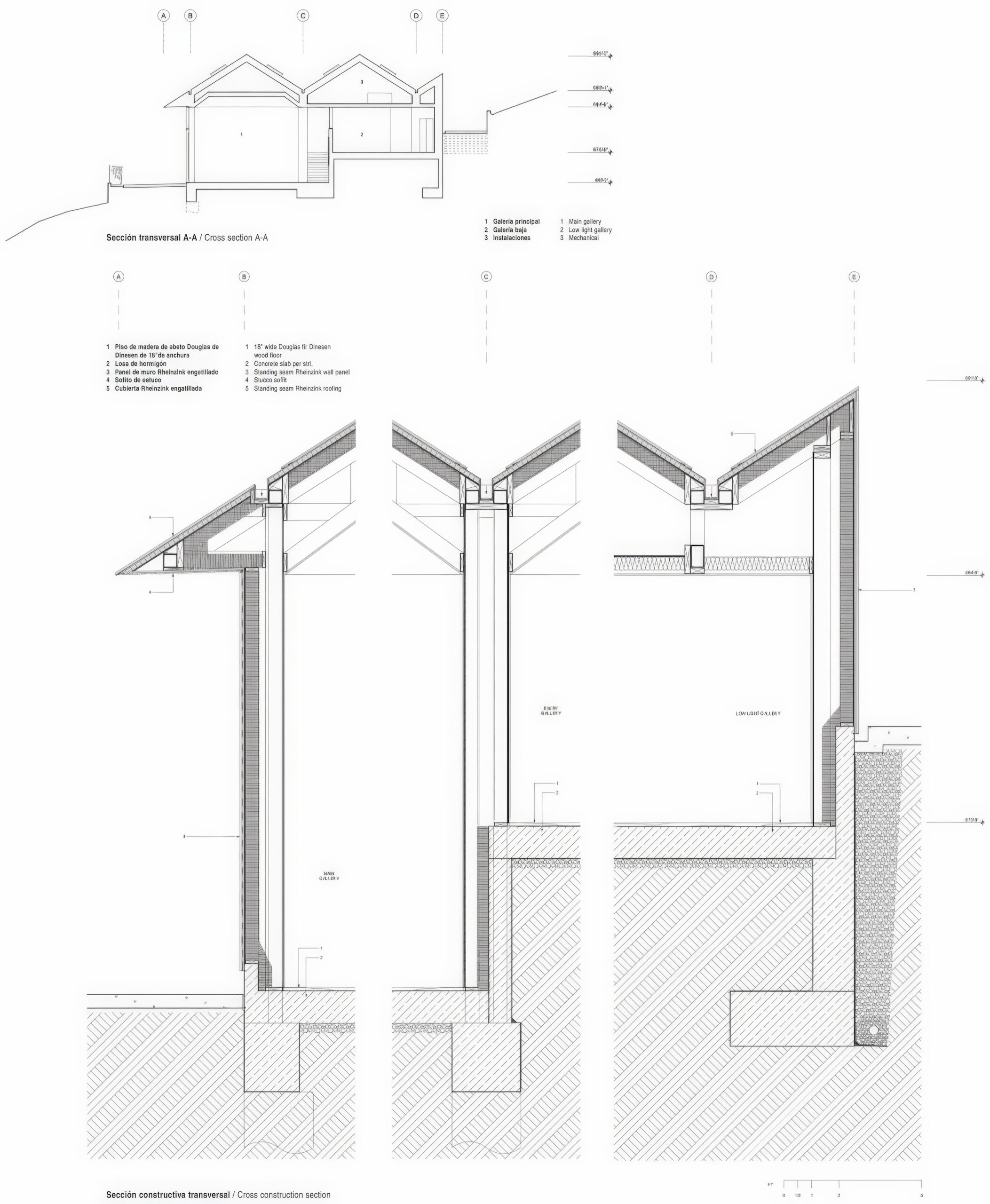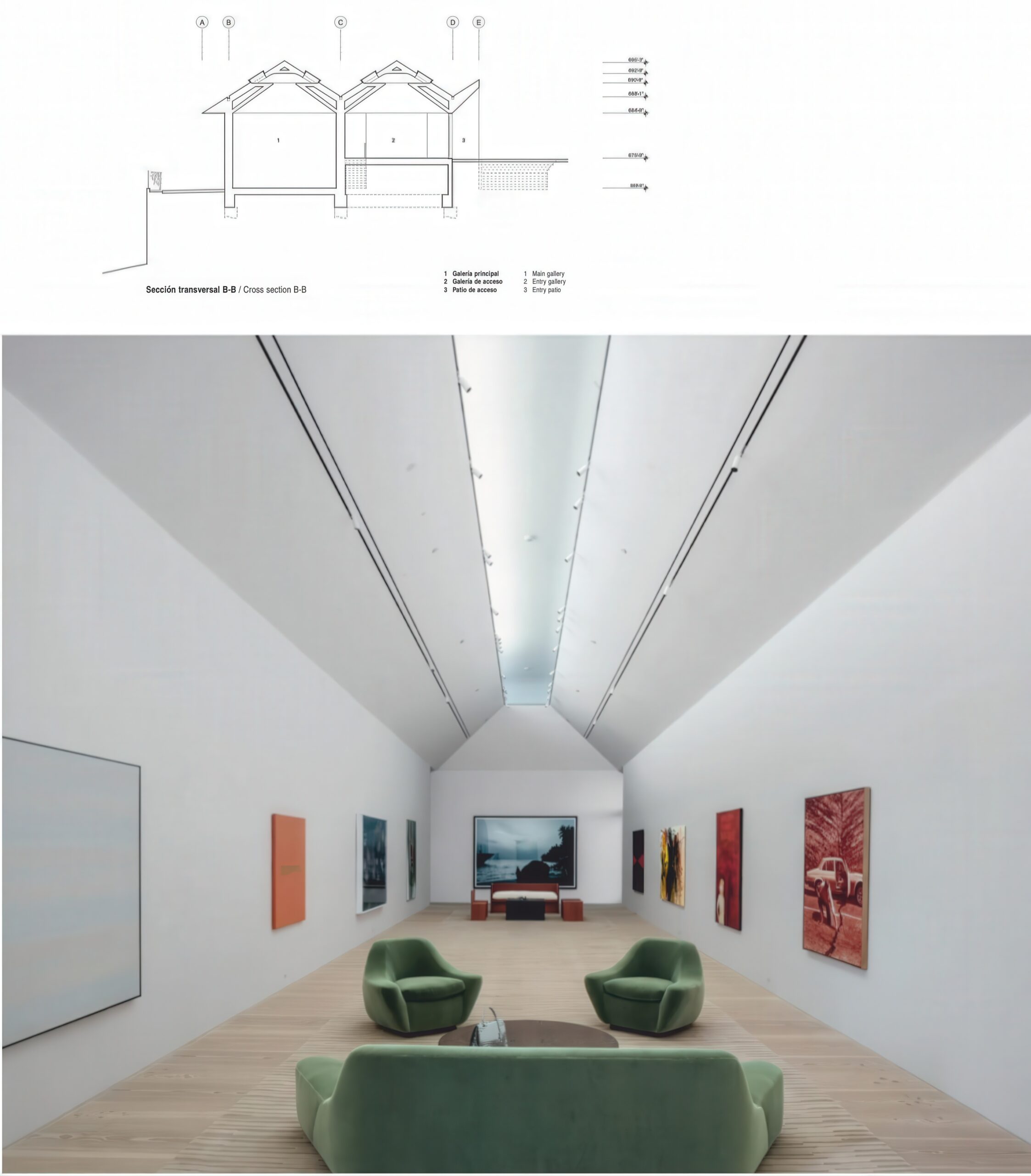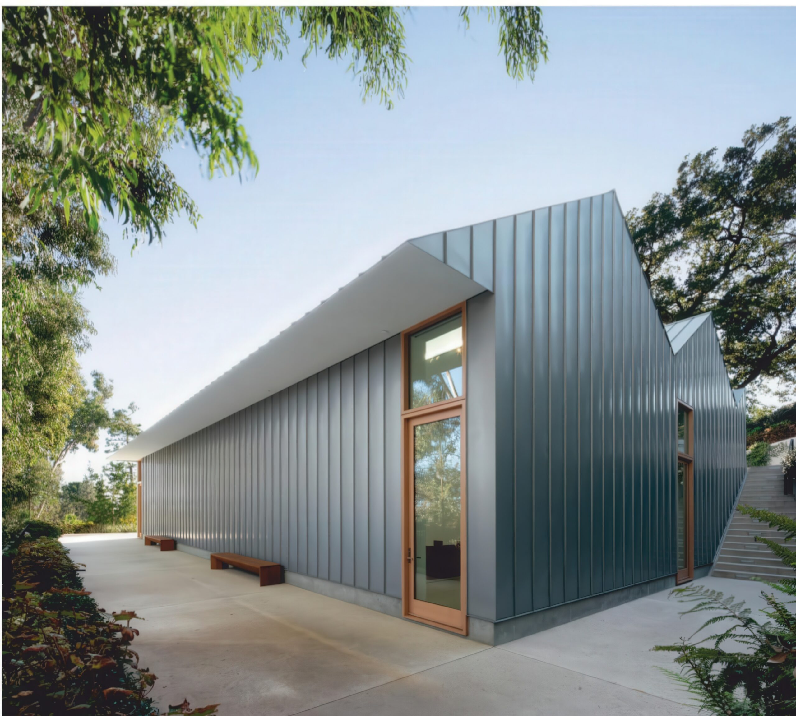 艺术 sheds Art Shed | MARKLEE 建筑事务所|MARKLEE MARKLEE 建筑事务所|MARKLEE • 2025-10-26 上午8:45 • 公共建筑设计, 建筑师设计, 建筑设计, 文化建筑设计 设计: MARKLEE 建筑事务所|MARKLEE 类型: 文化建筑设计 功能: 文化中心 风格: 当代建筑 材料: 混凝土 木材 混合材料 尺度: 小型建筑 地点:洛杉矶 时间: 2022年 项目简介 艺术 sheds Art Shed 位于美国洛杉矶贝尔艾尔,是一座艺术画廊建筑,建筑面积约300平方米,建于2022年。项目坐落在4.8公顷的历史庄园内,毗邻1932年保罗·威廉姆斯设计的殖民复兴风格住宅。 设计理念 MARKLEE 建筑事务所以最小化场地干扰为原则,巧妙利用现有地形和废弃网球场,通过双坡屋顶呼应历史建筑体量。设计团队与工程师、照明设计师合作,将屋顶转化为精密的自然采光系统,创造氛围优雅的艺术展示空间。 空间与功能 建筑包含两个尺度不同的画廊空间:西侧画廊展示精致小型作品,东侧画廊拥有6米高墙面,适合大型绘画。两侧凹入空间形成受保护的入口庭院和服务区,蜿蜒小径升级为雕塑花园,引导访客进入画廊。 材料与技术 建筑整体采用宽幅立缝锌板包裹,中部轻微拱起,随时间产生微妙变化。道格拉斯冷杉木地板与混凝土楼板构成主要室内材料,隐蔽天窗系统提供精确控制的自然光照,技术简洁而效果精致。 设计团队 MARKLEE 建筑事务所是一家注重场地响应与材料表达的洛杉矶建筑事务所,擅长在历史环境中创造当代建筑,关注建筑与景观的对话,作品以精致的细节处理和空间体验著称。 项目简介 艺术 sheds Art Shed 位于美国洛杉矶贝尔艾尔,是一座艺术画廊建筑,建筑面积约300平方米,建于2022年。项目坐落在4.8公顷的历史庄园内,毗邻1932年保罗·威廉姆斯设计的殖民复兴风格住宅。 设计理念 MARKLEE 建筑事务所以最小化场地干扰为原则,巧妙利用现有地形和废弃网球场,通过双坡屋顶呼应历史建筑体量。设计团队与工程师、照明设计师合作,将屋顶转化为精密的自然采光系统,创造氛围优雅的艺术展示空间。 空间与功能 建筑包含两个尺度不同的画廊空间:西侧画廊展示精致小型作品,东侧画廊拥有6米高墙面,适合大型绘画。两侧凹入空间形成受保护的入口庭院和服务区,蜿蜒小径升级为雕塑花园,引导访客进入画廊。 材料与技术 建筑整体采用宽幅立缝锌板包裹,中部轻微拱起,随时间产生微妙变化。道格拉斯冷杉木地板与混凝土楼板构成主要室内材料,隐蔽天窗系统提供精确控制的自然光照,技术简洁而效果精致。 设计团队 MARKLEE 建筑事务所是一家注重场地响应与材料表达的洛杉矶建筑事务所,擅长在历史环境中创造当代建筑,关注建筑与景观的对话,作品以精致的细节处理和空间体验著称。 本文来自 © MARKLEE 建筑事务所|MARKLEE, 发布于 © 建筑学院官方网站。 未经授权,禁止转载或摘编。 编辑版本版权归 © 建筑学院官方网站 所有, 设计、图纸及照片版权归设计方 © MARKLEE 建筑事务所|MARKLEE ↗ 所有。 查看作者在建筑学院发布的更多作品: MARKLEE 建筑事务所|MARKLEE @ 建筑学院官方网站 MARKLEE建筑事务所洛杉矶建筑艺术 sheds Art Shed艺术画廊锌板立面 MARKLEE 建筑事务所|MARKLEE事务所 & 设计师 下载原图 收藏 0 关于作者 MARKLEE 建筑事务所|MARKLEE事务所 & 设计师 关注私信 17 文章 0 评论 0 粉丝 MARKLEE建筑事务所是一家致力于提供前瞻性建筑与空间解决方案的国际化团队。我们秉持“设计重塑体验”的理念,擅长将客户独特需求与场地文脉相结合,通过严谨的逻辑与创意构思,打造兼具现代美学、实用价值与可持续性的建筑作品。从概念到落地,MARKLEE为您提供专业化、个性化的全程设计服务,共创卓越空间。 Raven Row 当代艺术与展览中心 | 6a 建筑事务所 上一篇 2025-10-25 上午8:30 碳质森林 Carboniferous Forest | AMID.cero9 建筑事务所|AMID.cero9 下一篇 2025-10-26 上午8:45 猜你喜欢 绿线艺术中心 / Green Line Arts Center | MARKLEE 建筑事务所 2025-11-13 公共建筑设计 纽约街艺术博物馆 Newport Street Gallery | 卡鲁索·圣约翰建筑事务所|Caruso St John 2025-12-02 公共建筑设计 A Mews Collection A Mews Collection | 6a 建筑事务所|6a architects 2025-12-11 公共建筑设计 荷恩美术馆,德昂学院 The Heong Gallery, Downing College | 卡鲁索·圣约翰建筑事务所|Caruso St John 2025-11-30 公共建筑设计 Turner Contemporary | 大卫·奇珀菲尔德建筑事务所|David Chipperfield 2025-11-27 公共建筑设计 法院大楼 Court House | MARKLEE 建筑事务所 2025-10-28 建筑师设计 发表回复 请登录后评论...登录后才能评论 提交