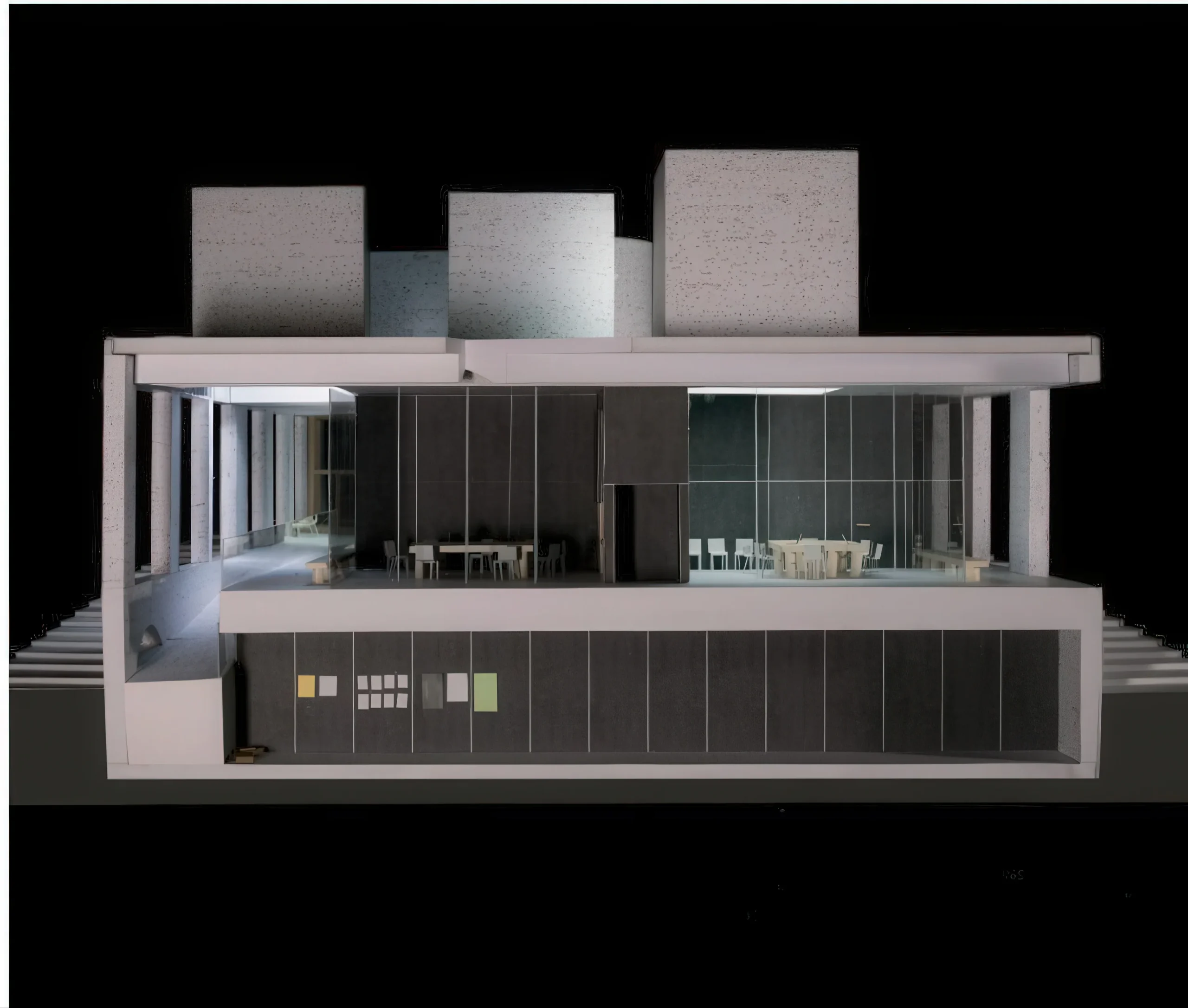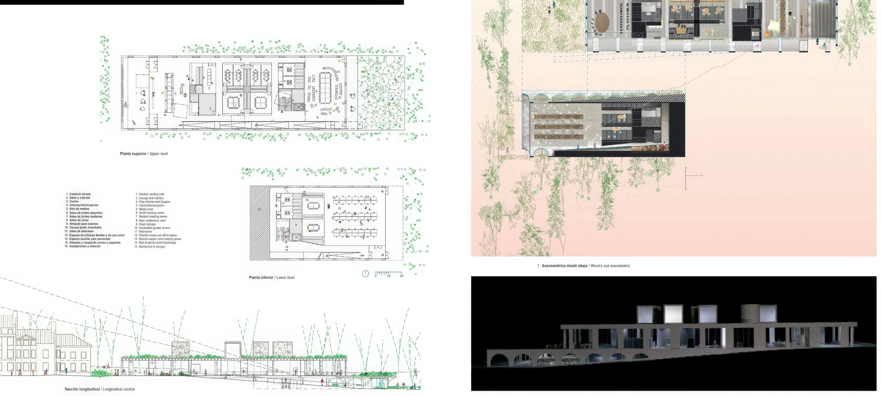 第二学校,研究院高级研究学院。 School No. 2, Institute for Advanced Study | MOS 建筑事务所|MOS MOS 建筑事务所|MOS • 2025-10-27 下午12:50 • 公共建筑设计, 建筑师设计, 建筑设计, 文化建筑设计 第二学校是研究院高级研究学院的新建公共建筑,位于美国新泽西州普林斯顿。该项目由MOS建筑事务所设计,采用”反转回廊”概念,将周边交通流线与校园景观完美融合。建筑通过阶梯式体量回应倾斜地形,设有会议空间、咖啡厅和办公区域,运用石灰华石材和木框大窗创造明亮通透的室内环境。 设计: MOS 建筑事务所|MOS 类型: 文化建筑设计 功能: 学校 风格: 当代建筑 材料: 木材 玻璃 石材 尺度: 中型建筑 地点:美国 时间: 2010年 项目简介 第二学校是研究院高级研究学院位于美国新泽西州普林斯顿的公共建筑,建筑面积约2000平方米,为两层阶梯式建筑,设计于2010年代。 设计理念 MOS建筑事务所提出”反转回廊”概念,将传统内向型建筑转变为外向型空间。设计巧妙利用倾斜地形,通过周边交通流线将建筑与校园景观有机整合,超大尺度的流通空间鼓励社交互动。 空间与功能 上层设有会议室、大型会议空间、咖啡厅和接待区,采用玻璃房间与露台花园并置布局;下层包含办公室、健身区及邮件收发区。贯穿两层的长坡道既是垂直交通,也是从东侧住宅区进入校园的新人行入口。 材料与技术 建筑外立面采用粗糙面石灰华石材,室内为大骨料水磨石地面和石板墙面。大跨度结构系统消除室内柱网,木框大窗与北向立方体天窗确保充足自然采光。 设计团队 MOS建筑事务所成立于2003年,以创新性的建筑语言和对材料、光线与空间的深入研究著称,作品涵盖文化、教育等多个建筑类型。 项目简介 第二学校是研究院高级研究学院位于美国新泽西州普林斯顿的公共建筑,建筑面积约2000平方米,为两层阶梯式建筑,设计于2010年代。 设计理念 MOS建筑事务所提出”反转回廊”概念,将传统内向型建筑转变为外向型空间。设计巧妙利用倾斜地形,通过周边交通流线将建筑与校园景观有机整合,超大尺度的流通空间鼓励社交互动。 空间与功能 上层设有会议室、大型会议空间、咖啡厅和接待区,采用玻璃房间与露台花园并置布局;下层包含办公室、健身区及邮件收发区。贯穿两层的长坡道既是垂直交通,也是从东侧住宅区进入校园的新人行入口。 材料与技术 建筑外立面采用粗糙面石灰华石材,室内为大骨料水磨石地面和石板墙面。大跨度结构系统消除室内柱网,木框大窗与北向立方体天窗确保充足自然采光。 设计团队 MOS建筑事务所成立于2003年,以创新性的建筑语言和对材料、光线与空间的深入研究著称,作品涵盖文化、教育等多个建筑类型。 本文来自 © MOS 建筑事务所|MOS, 发布于 © 建筑学院官方网站。 未经授权,禁止转载或摘编。 编辑版本版权归 © 建筑学院官方网站 所有, 设计、图纸及照片版权归设计方 © MOS 建筑事务所|MOS ↗ 所有。 查看作者在建筑学院发布的更多作品: MOS 建筑事务所|MOS @ 建筑学院官方网站 MOS建筑事务所公共建筑普林斯顿研究院高级研究学院第二学校 MOS 建筑事务所|MOS事务所 & 设计师 下载原图 收藏 0 关于作者 MOS 建筑事务所|MOS事务所 & 设计师 关注私信 12 文章 0 评论 0 粉丝 MOS建筑事务所是成立于纽约的知名建筑设计团队,以其研究性、协作性和概念前瞻性在当代建筑界独树一帜。他们的作品涵盖文化、教育及住宅领域,擅长通过独特的材料运用和构造逻辑,创造出既具实验精神又回应环境与功能的建筑。 施洛恩火葬场 | Karamuk Kuo 建筑事务所|Karamuk Kuo 上一篇 2025-10-27 上午8:50 阿尔卑斯体育中心,施鲁斯 Alpine Sports Centre, Schruns | 贝尔纳多·巴德尔|Bernardo Bader 下一篇 2025-10-27 下午12:50 猜你喜欢 绍兴大禹陵景区祭禹广场改扩建提升工程 / 浙江大学建筑设计研究院ACRC 2020-06-23 公共建筑设计 让建筑可以共享,维也纳总部 2018-11-06 公共建筑设计 生土工房(暨云南乡村振兴研究发展中心) / 一专一村 2021-07-18 公共建筑设计 屏东市公共图书馆 / MAYU architects 2022-08-14 建筑设计 永安扶贫乡村公共空间营造 / 同济大学建筑设计研究院 2021-07-30 公共建筑设计 巧妙化解“40英尺的高差”的芝加哥海滩的活动中心 2018-10-30 娱乐建筑 发表回复 请登录后评论...登录后才能评论 提交