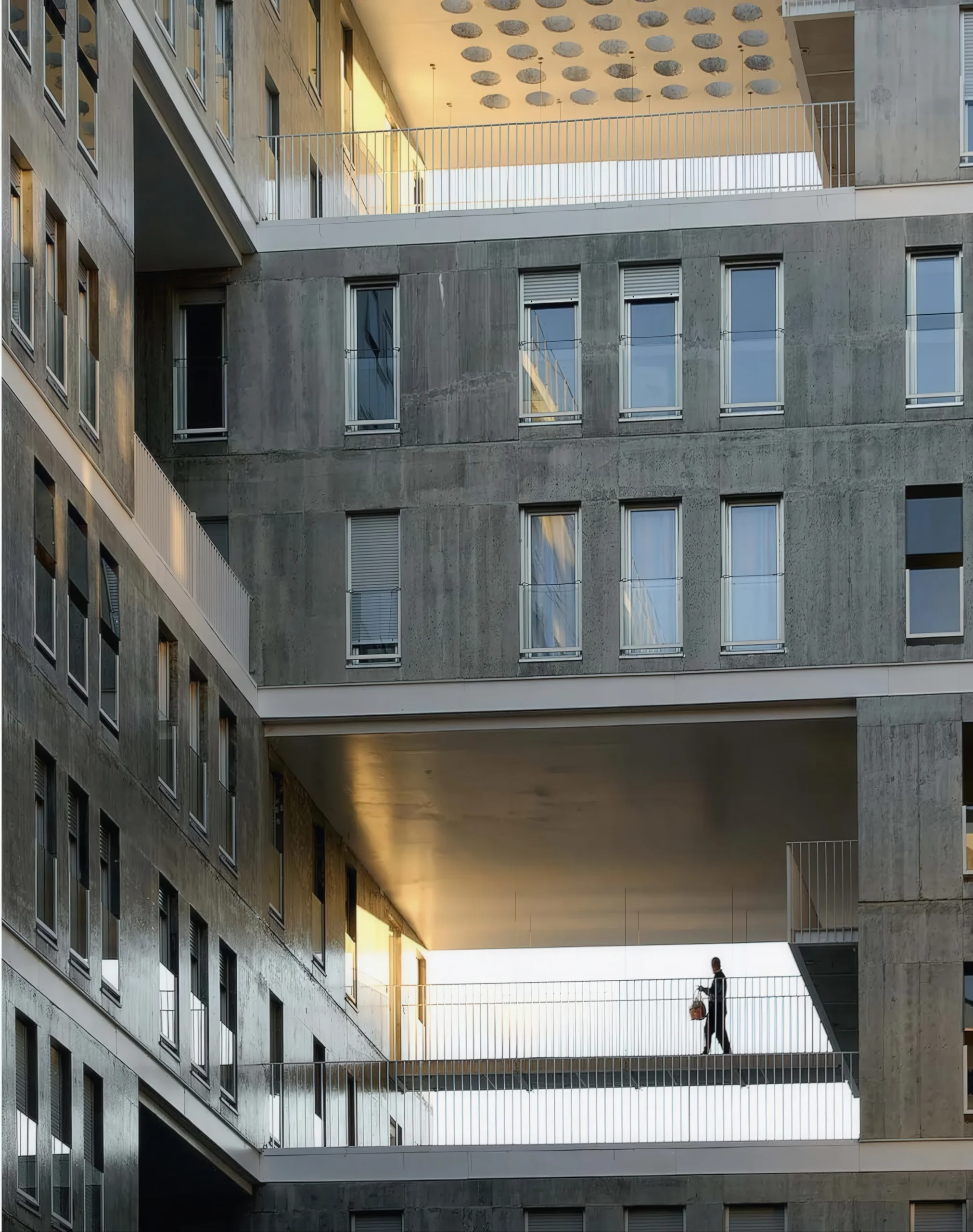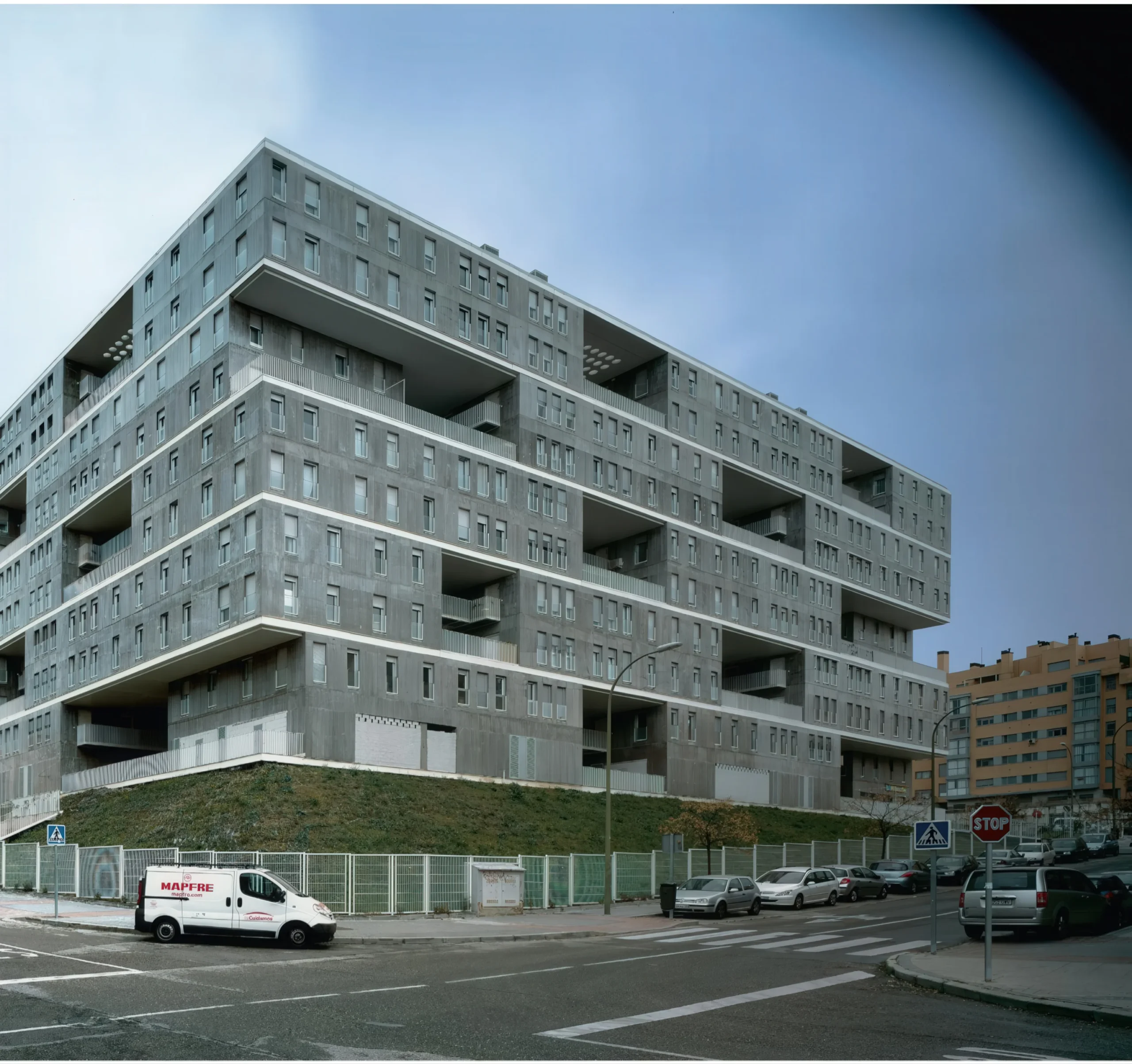 Celosia 社会住房公寓 | MVRDV 建筑事务所 MVRDV • 2025-10-28 下午12:50 • 公共建筑设计, 建筑师设计, 建筑设计, 文化建筑设计 Celosia 社会住房公寓是 MVRDV 与 Blanca Lleó Arquitectos 在马德里 Sanchinarro 区合作设计的创新住宅项目。该项目通过棋盘式布局的预制混凝土模块,创造了通透的视线与通风系统,打破了传统封闭街区的压抑感,为社区提供了开放共享的花园空间。 设计: MVRDV 类型: 文化建筑设计 功能: 公寓住宅 风格: 现代主义 材料: 混凝土 钢材 玻璃 尺度: 中型建筑 地点:西班牙 时间: 2000年 项目简介 Celosia 社会住房公寓位于西班牙马德里 Sanchinarro 区,是一座采用预制混凝土系统的住宅建筑。项目建筑面积较大,设计于2000年代初期,旨在为密集的城市住宅区提供创新的居住解决方案。 设计理念 设计团队以“逃离封闭街区”为核心概念,通过棋盘式错位布局打破传统六层住宅的单调性。每个住宅模块被视为独立预制单元,通过精确排列形成通透的视觉通道与共享花园,回应西班牙开放文化的同时解决气候限制。 空间与功能 建筑由八个住宅单元组成的模块以棋盘模式叠加构成,模块间留出的空隙形成社区花园。这种布局创造了从街道穿透建筑的视野,同时保证各户的采光与通风。内部空间采用刚性结构系统,功能分区明确但不可随意改动。 材料与技术 全建筑采用预制裸露混凝土系统,包括楼梯在内的所有构件均在铝模具中浇筑成型。这种从哥伦比亚引进的技术可在24小时内完成整个构件的生产与干燥。外表面涂覆聚氨酯涂层,根据日光条件产生闪烁效果。 设计团队 MVRDV 是荷兰知名建筑事务所,以创新城市策略和实验性建筑闻名。Blanca Lleó Arquitectos 是西班牙本土事务所,专注于住宅与城市更新项目。两方合作实现了技术革新与地域文化的融合。 项目简介 Celosia 社会住房公寓位于西班牙马德里 Sanchinarro 区,是一座采用预制混凝土系统的住宅建筑。项目建筑面积较大,设计于2000年代初期,旨在为密集的城市住宅区提供创新的居住解决方案。 设计理念 设计团队以“逃离封闭街区”为核心概念,通过棋盘式错位布局打破传统六层住宅的单调性。每个住宅模块被视为独立预制单元,通过精确排列形成通透的视觉通道与共享花园,回应西班牙开放文化的同时解决气候限制。 空间与功能 建筑由八个住宅单元组成的模块以棋盘模式叠加构成,模块间留出的空隙形成社区花园。这种布局创造了从街道穿透建筑的视野,同时保证各户的采光与通风。内部空间采用刚性结构系统,功能分区明确但不可随意改动。 材料与技术 全建筑采用预制裸露混凝土系统,包括楼梯在内的所有构件均在铝模具中浇筑成型。这种从哥伦比亚引进的技术可在24小时内完成整个构件的生产与干燥。外表面涂覆聚氨酯涂层,根据日光条件产生闪烁效果。 设计团队 MVRDV 是荷兰知名建筑事务所,以创新城市策略和实验性建筑闻名。Blanca Lleó Arquitectos 是西班牙本土事务所,专注于住宅与城市更新项目。两方合作实现了技术革新与地域文化的融合。 本文来自 © MVRDV, 发布于 © 建筑学院官方网站。 未经授权,禁止转载或摘编。 编辑版本版权归 © 建筑学院官方网站 所有, 设计、图纸及照片版权归设计方 © MVRDV ↗ 所有。 查看作者在建筑学院发布的更多作品: MVRDV @ 建筑学院官方网站 Celosia 社会住房公寓MVRDV棋盘式布局预制混凝土建筑马德里住宅 MVRDV事务所 & 设计师 下载原图 收藏 0 关于作者 MVRDV事务所 & 设计师 关注私信 17 文章 0 评论 0 粉丝 帕拉尔德·奥洛韦迪大学讲座厅 Lecture Halls for Pablo de Olavide University | MGM 建筑师事务所 上一篇 2025-10-28 下午12:50 巴塞罗那音乐和舞蹈学院 Ibiza and Formentera Music and Dance Conservatory | 阿尔弗雷多·帕亚|Alfredo Payá 下一篇 2025-10-29 上午1:22 猜你喜欢 城市混合,埃姆登 Urban Hybrid, Emmen | MVRDV 建筑事务所|MVRDV 2025-10-30 公共建筑设计 大运河未来艺术科技中心 / MVRDV 2023-05-19 公共建筑设计 武汉图书馆新馆:‘知识峡谷’方案中标 / MVRDV+浙大院 2023-01-12 公共建筑设计 生机盎然——MVRDV设计的 “垂直绿谷” 2017-09-08 城市综合体 鹿特丹博伊曼斯· 范· 伯宁恩博物馆 / MVRDV 2020-09-30 公共建筑设计 建筑师,我抄我自己 2019-05-07 学生 发表回复 请登录后评论...登录后才能评论 提交