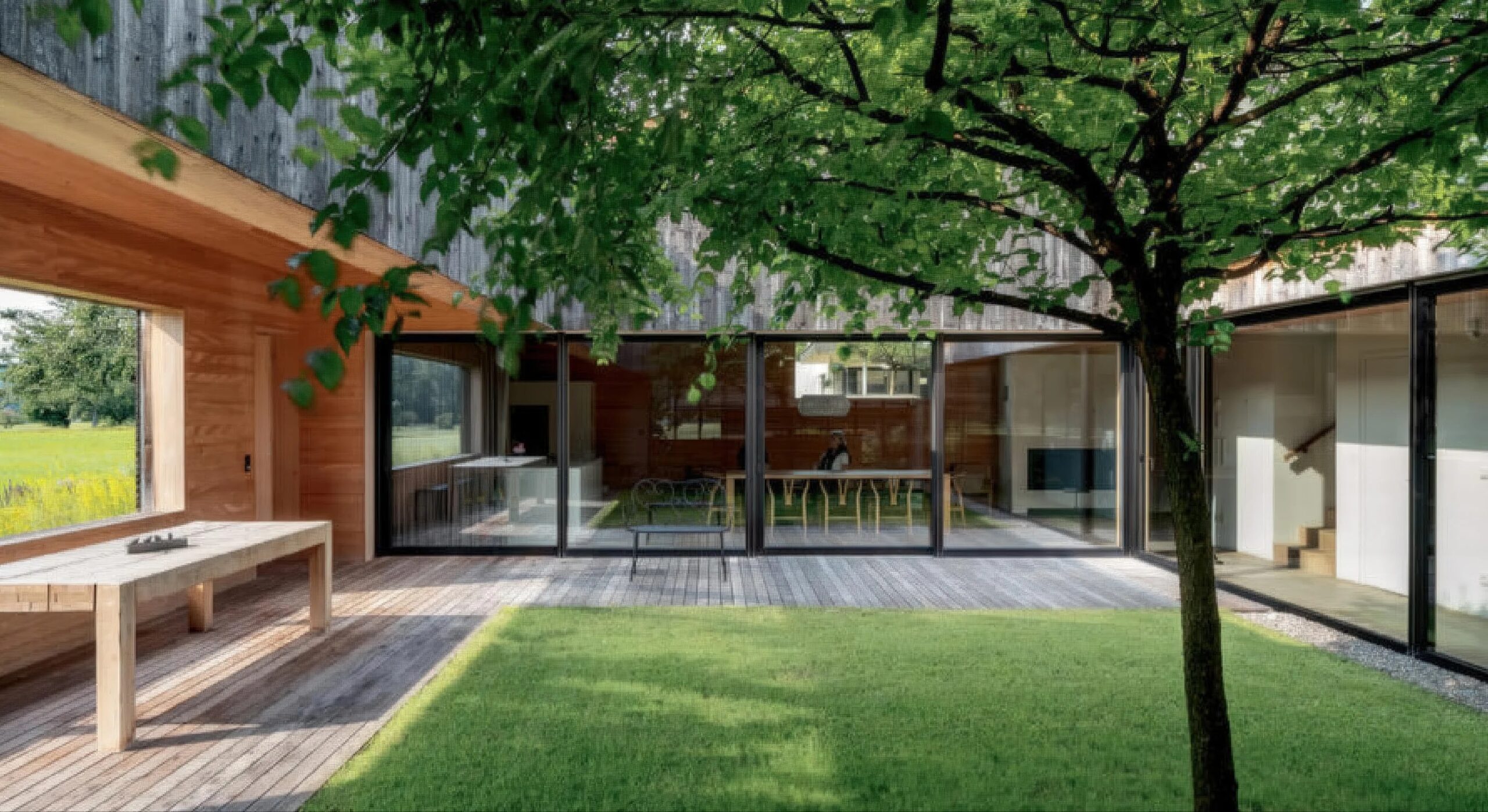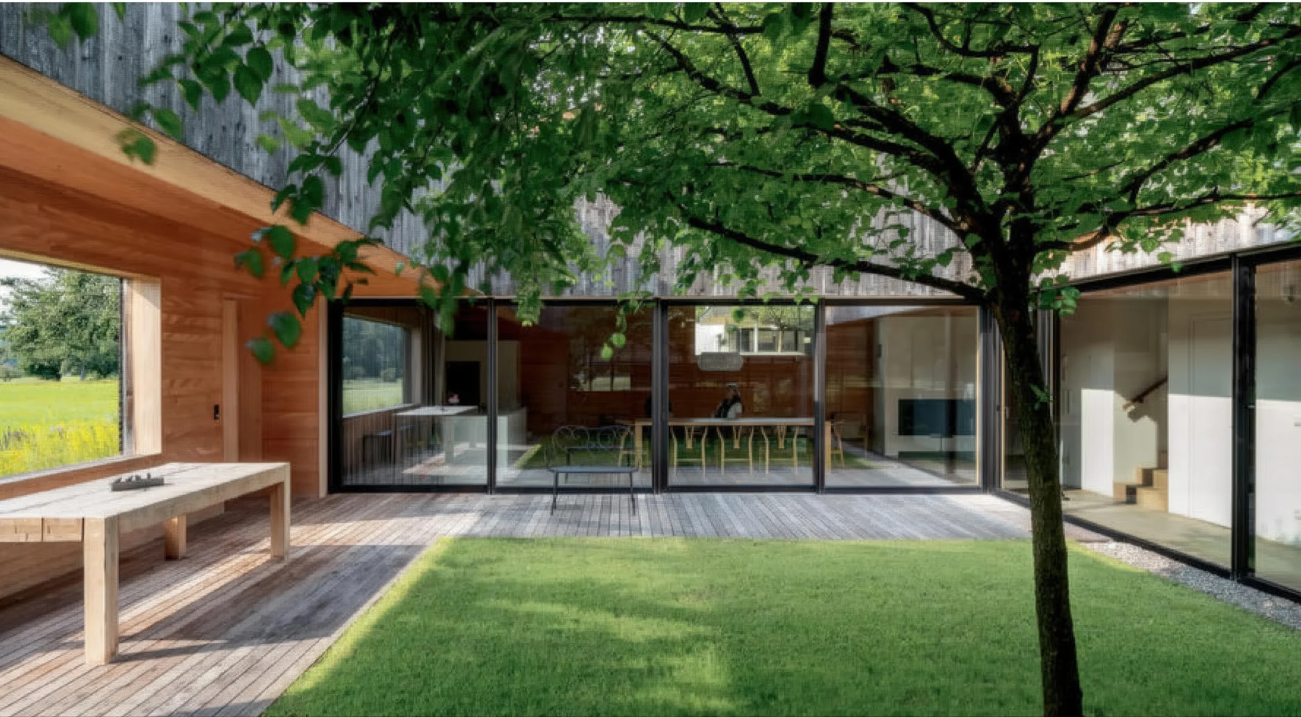 田舍屋,苏尔茨 House in the Field, Sulz | 贝尔纳多·巴德尔|Bernardo Bader 贝尔纳多·巴德尔|Bernardo Bader • 2025-10-28 下午12:50 • 公共建筑设计, 建筑师设计, 建筑设计, 文化建筑设计 田舍屋是贝尔纳多·巴德尔建筑事务所在奥地利福拉尔贝格州苏尔茨设计的独立住宅项目。这座庭院住宅通过封闭式庭院设计,在有限地块上创造了高品质生活空间。项目采用双坡屋顶基本形式,通过可移动百叶窗实现庭院与瑞士阿尔卑斯山景观的灵活互动,展现了现代主义与地域主义的完美融合。 设计: 贝尔纳多·巴德尔|Bernardo Bader 类型: 文化建筑设计 功能: 独立住宅 风格: 地域主义 材料: 木材 玻璃 金属板 尺度: 小型建筑 地点:奥地利 时间: 2009年 项目简介 田舍屋位于奥地利福拉尔贝格州苏尔茨市,是一座独立住宅建筑。项目建筑面积约200平方米,设计于2009年,建成于2010年。 设计理念 设计团队以创造高品质生活方式为核心目标,通过封闭式庭院屏蔽外部视线,在有限地块上实现私密居住体验。项目巧妙借鉴当地农舍建筑语汇,为莱茵河谷地区独栋住宅提供了创新解决方案。 空间与功能 建筑采用L形布局,底层设置起居区、厨房、餐厅及服务空间,上层布置卧室、浴室和工作区。中央庭院通过大型滑动窗与室内空间无缝连接,半覆盖的木制露台环绕草坪区域,中央种植树木,形成内外交融的空间序列。 材料与技术 项目采用木材作为主要建筑材料,包括木地板、木板饰面和白色漆面固定家具。建筑结构采用木框架系统,填充纤维素保温材料,屋顶使用铝制立缝屋面系统,体现了可持续建造理念。 设计团队 贝尔纳多·巴德尔建筑事务所是奥地利知名建筑设计工作室,专注于住宅建筑领域,以对地域文脉的深刻理解和现代建筑语言的创新运用而著称。 项目简介 田舍屋位于奥地利福拉尔贝格州苏尔茨市,是一座独立住宅建筑。项目建筑面积约200平方米,设计于2009年,建成于2010年。 设计理念 设计团队以创造高品质生活方式为核心目标,通过封闭式庭院屏蔽外部视线,在有限地块上实现私密居住体验。项目巧妙借鉴当地农舍建筑语汇,为莱茵河谷地区独栋住宅提供了创新解决方案。 空间与功能 建筑采用L形布局,底层设置起居区、厨房、餐厅及服务空间,上层布置卧室、浴室和工作区。中央庭院通过大型滑动窗与室内空间无缝连接,半覆盖的木制露台环绕草坪区域,中央种植树木,形成内外交融的空间序列。 材料与技术 项目采用木材作为主要建筑材料,包括木地板、木板饰面和白色漆面固定家具。建筑结构采用木框架系统,填充纤维素保温材料,屋顶使用铝制立缝屋面系统,体现了可持续建造理念。 设计团队 贝尔纳多·巴德尔建筑事务所是奥地利知名建筑设计工作室,专注于住宅建筑领域,以对地域文脉的深刻理解和现代建筑语言的创新运用而著称。 本文来自 © 贝尔纳多·巴德尔|Bernardo Bader, 发布于 © 建筑学院官方网站。 未经授权,禁止转载或摘编。 编辑版本版权归 © 建筑学院官方网站 所有, 设计、图纸及照片版权归设计方 © 贝尔纳多·巴德尔|Bernardo Bader ↗ 所有。 查看作者在建筑学院发布的更多作品: 贝尔纳多·巴德尔|Bernardo Bader @ 建筑学院官方网站 木材建筑独立住宅田舍屋苏尔茨贝尔纳多·巴德尔 贝尔纳多·巴德尔|Bernardo Bader事务所 & 设计师 下载原图 收藏 0 关于作者 贝尔纳多·巴德尔|Bernardo Bader事务所 & 设计师 关注私信 21 文章 0 评论 0 粉丝 贝尔纳多·巴德尔(Bernardo Bader)是一位出生于布雷根策瓦尔的奥地利建筑师-2。他于2003年创立自己的事务所,其作品深深植根于地域性,以精巧的细节和对自然与文化关系的独特诠释而闻名。巴德尔曾多次获奖,包括2007年青年建筑Weissenhof奖、2012年及2017年的Piranesi奖,并在2013年荣获著名的阿卡汗建筑奖。 丹麦摇滚博物馆 Danish Rock Museum | MVRDV 建筑事务所 上一篇 2025-10-28 下午12:50 帕拉尔德·奥洛韦迪大学讲座厅 Lecture Halls for Pablo de Olavide University | MGM 建筑师事务所 下一篇 2025-10-28 下午12:50 猜你喜欢 闲庭悠步,韩国首尔江南区GA ON JAI 住宅 2014-01-13 独立住宅设计 曲径通幽,简单几何——北斋之家 2019-05-22 建筑设计 微光之宅 / Wutopia Lab 2023-07-09 建筑设计 木质立方体,湖边木屋 / Appels Architekten 2023-07-02 建筑设计 崖之家 / 郦文曦建筑事务所 2023-07-20 建筑设计 理性之下,飘逸优雅:库萨别墅 / Next Office–Alireza Taghaboni 2019-10-10 建筑设计 发表回复 请登录后评论...登录后才能评论 提交