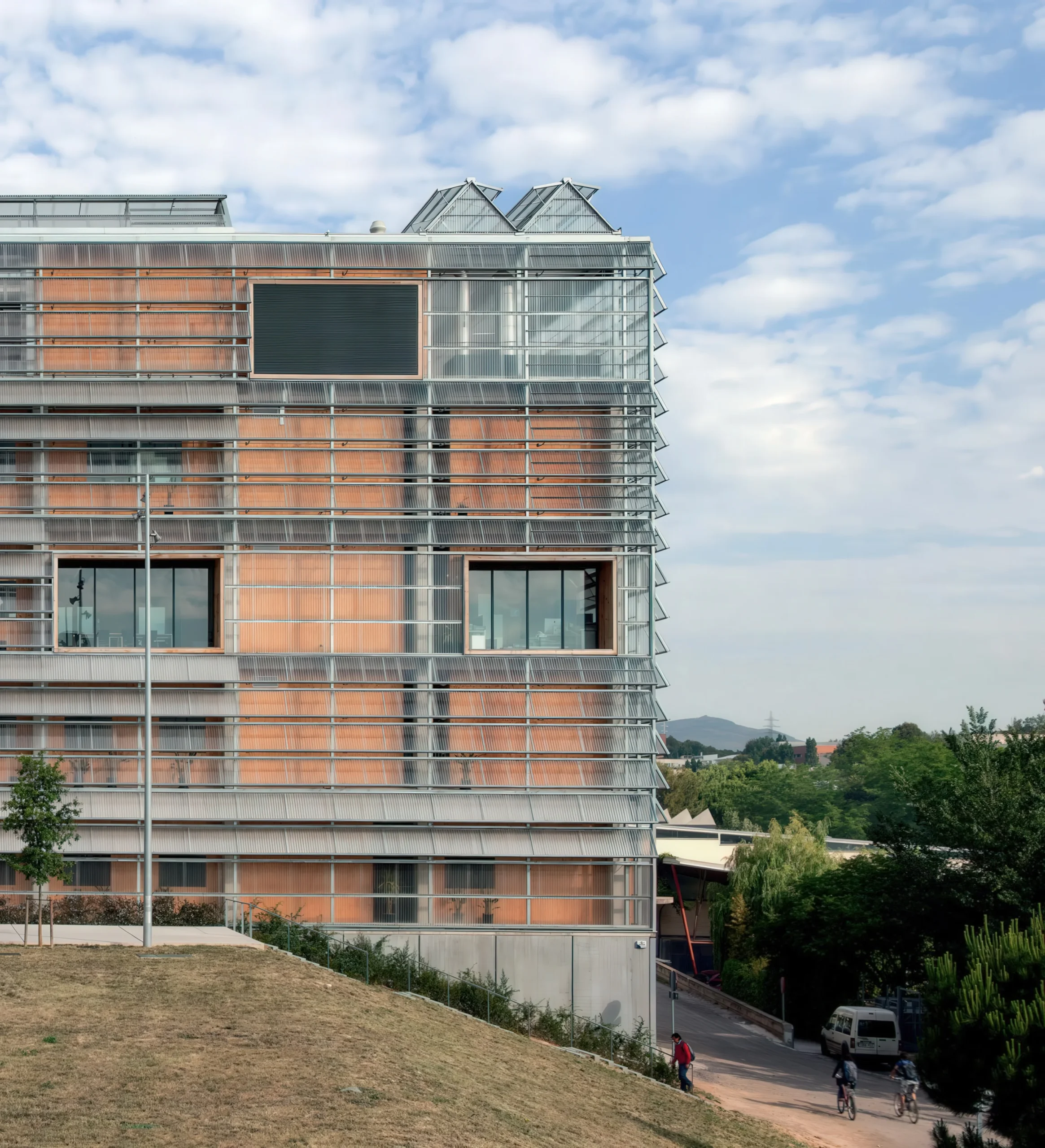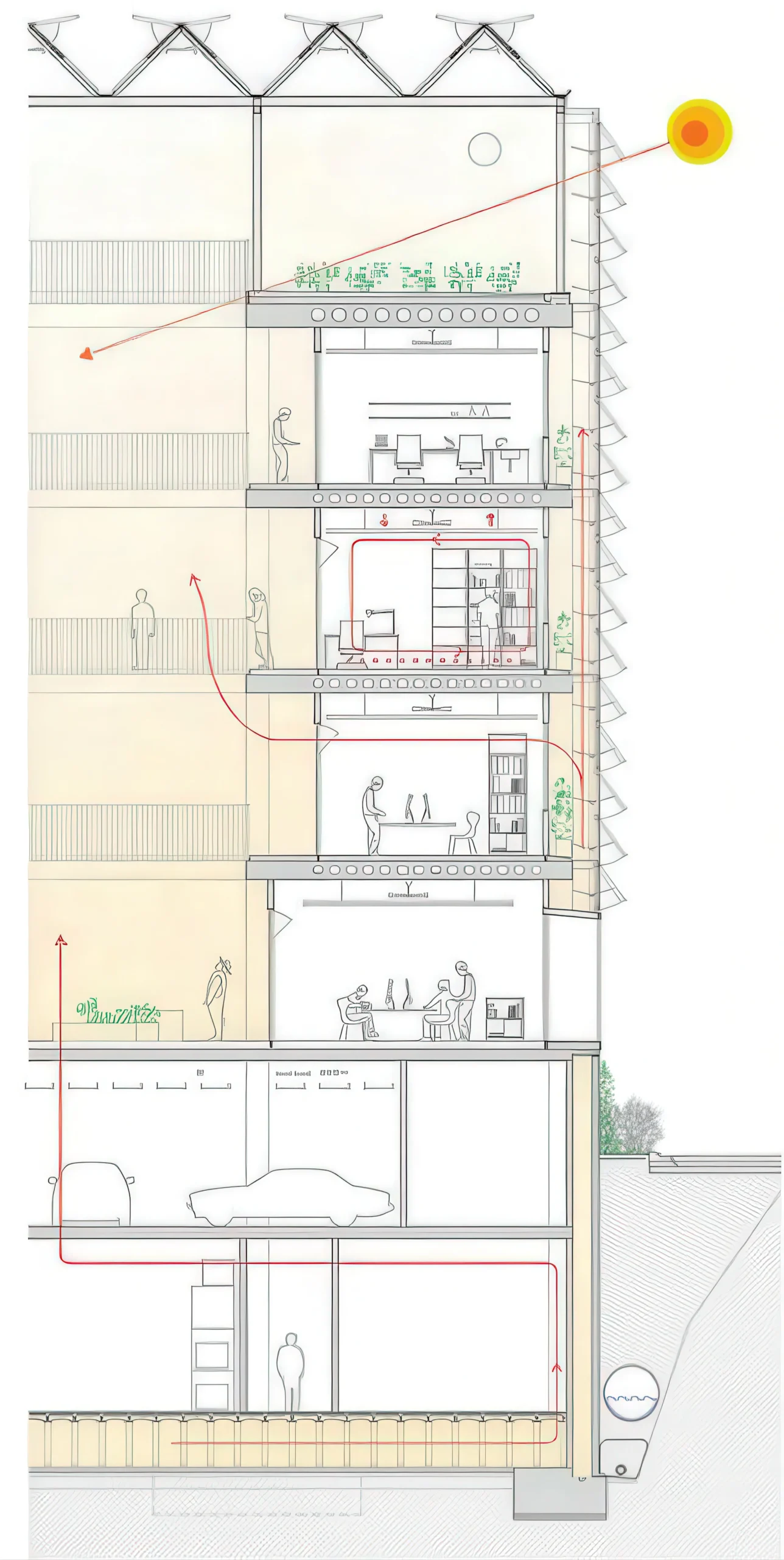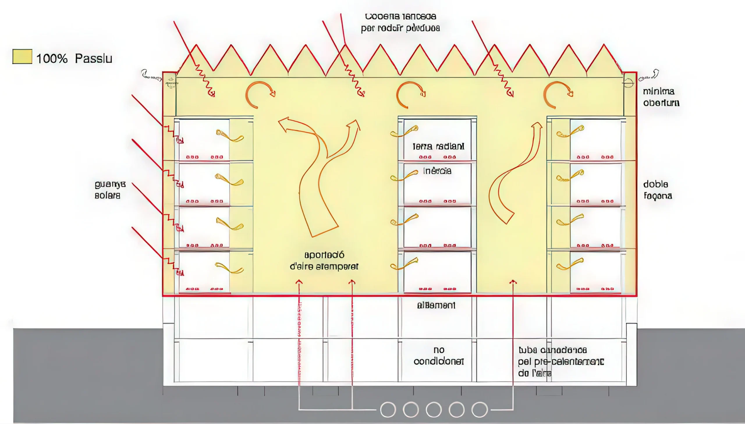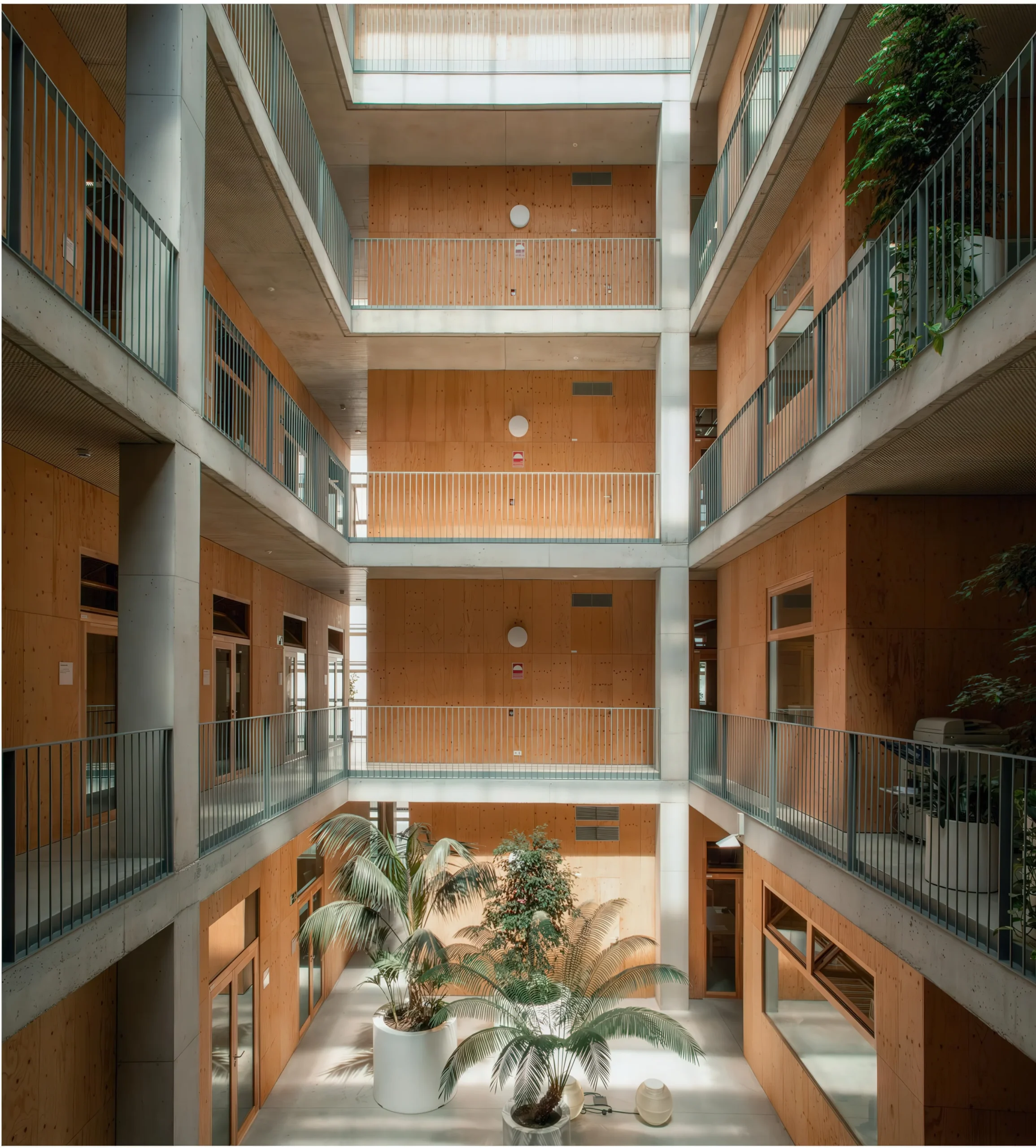 ICTA-ICP 研究中心 | Harquitectes 建筑师事务所 Harquitectes 建筑师事务所|Harquitectes • 2025-10-29 上午8:50 • 公共建筑设计, 建筑师设计, 建筑设计, 文化建筑设计 ICTA-ICP研究中心位于西班牙巴塞罗那自治大学校园内,是一座专注于环境科学与古生物学研究的科研建筑。该项目由Harquitectes事务所设计,采用创新的生物气候策略,通过混凝土结构的热惰性和自动化温室表皮系统实现被动式节能。建筑包含五层地上空间和两层地下室,总面积达8000平方米,于2014年建成。 设计: Harquitectes 建筑师事务所|Harquitectes 类型: 文化建筑设计 功能: 学校 风格: 可持续建筑 材料: 混凝土 钢材 木材 玻璃 再生材料 尺度: 中型建筑 地点:西班牙 时间: 2014年 项目简介 ICTA-ICP研究中心位于西班牙巴塞罗那塞尔达尼奥拉-德尔巴列斯,是一座科研教育建筑。建筑为5层地上结构加2层地下室,每层面积40×40平方米,总建筑面积约8000平方米。项目于2011年设计,2014年建成。 设计理念 设计团队以可持续发展为核心目标,将建筑视为可适应未来使用需求的基础设施。通过分层气候控制系统,针对不同功能空间采用差异化的环境策略,最大化利用被动式设计减少能源消耗。 空间与功能 建筑功能分区明确:地面层设大厅、酒吧、教室和会议室;中间三层为办公室和实验室;屋顶布置菜园和休息区;地下层包含停车场、设备间和仓储空间。四个垂直庭院贯穿建筑,提供自然采光通风,连接各层交通流线。 材料与技术 主体采用混凝土结构,优化热惰性性能。外围护系统使用低成本工业化温室组件构成生物气候表皮,可自动调节开合。内部采用干燥构造系统和可再生材料,实现水资源循环利用和地热能应用。 设计团队 Harquitectes是西班牙知名建筑事务所,专注于可持续建筑设计和环境响应策略。团队以严谨的材料研究和创新的构造解决方案著称,在教育和科研建筑领域具有丰富经验。 项目简介 ICTA-ICP研究中心位于西班牙巴塞罗那塞尔达尼奥拉-德尔巴列斯,是一座科研教育建筑。建筑为5层地上结构加2层地下室,每层面积40×40平方米,总建筑面积约8000平方米。项目于2011年设计,2014年建成。 设计理念 设计团队以可持续发展为核心目标,将建筑视为可适应未来使用需求的基础设施。通过分层气候控制系统,针对不同功能空间采用差异化的环境策略,最大化利用被动式设计减少能源消耗。 空间与功能 建筑功能分区明确:地面层设大厅、酒吧、教室和会议室;中间三层为办公室和实验室;屋顶布置菜园和休息区;地下层包含停车场、设备间和仓储空间。四个垂直庭院贯穿建筑,提供自然采光通风,连接各层交通流线。 材料与技术 主体采用混凝土结构,优化热惰性性能。外围护系统使用低成本工业化温室组件构成生物气候表皮,可自动调节开合。内部采用干燥构造系统和可再生材料,实现水资源循环利用和地热能应用。 设计团队 Harquitectes是西班牙知名建筑事务所,专注于可持续建筑设计和环境响应策略。团队以严谨的材料研究和创新的构造解决方案著称,在教育和科研建筑领域具有丰富经验。 本文来自 © Harquitectes 建筑师事务所|Harquitectes, 发布于 © 建筑学院官方网站。 未经授权,禁止转载或摘编。 编辑版本版权归 © 建筑学院官方网站 所有, 设计、图纸及照片版权归设计方 © Harquitectes 建筑师事务所|Harquitectes ↗ 所有。 查看作者在建筑学院发布的更多作品: Harquitectes 建筑师事务所|Harquitectes @ 建筑学院官方网站 HarquitectesICTA-ICP研究中心巴塞罗那混凝土结构科研建筑 Harquitectes 建筑师事务所|Harquitectes事务所 & 设计师 下载原图 收藏 0 关于作者 Harquitectes 建筑师事务所|Harquitectes事务所 & 设计师 关注私信 21 文章 0 评论 0 粉丝 Harquitectes是西班牙备受赞誉的建筑师事务所,以其对环境、材料和建造逻辑的深刻洞察而闻名。其官网harquitectes.com展示了众多获奖作品,涵盖学校、住宅及公共建筑。他们擅长运用本土、可持续的策略,创造舒适、高效且充满诗意的空间。 克伦尼亚考古遗址游客中心 Clunia Archaeological Site Visitor Centre | AMID.cero9 建筑事务所 上一篇 2025-10-29 上午8:50 兰登贝格豪斯剧院 Landenberghaus Theater | Karamuk Kuo 建筑事务所 下一篇 2025-10-29 上午8:50 猜你喜欢 Arnau剧院翻新 / Arnau Theatre Renovation | HArquitectes 7小时前 公共建筑设计 晶莹剔透果冻般幼儿园,只为给孩子最好的引导认知空间 2017-03-06 教育建筑设计 纯净而原始——葡萄牙桑巴住宅 / spaceworkers 2019-06-25 建筑设计 我们为什么迷恋高迪 2018-04-16 建筑设计 弗朗茨·麦卡利亚街上的房子 / House on Francesc Macià Street | HArquitectes 4天前 住宅建筑设计 塞塔克戈特-德-瓦利斯区的房屋 / House in Sant Cugat del Vallés | HArquitectes 4天前 住宅建筑设计 发表回复 请登录后评论...登录后才能评论 提交