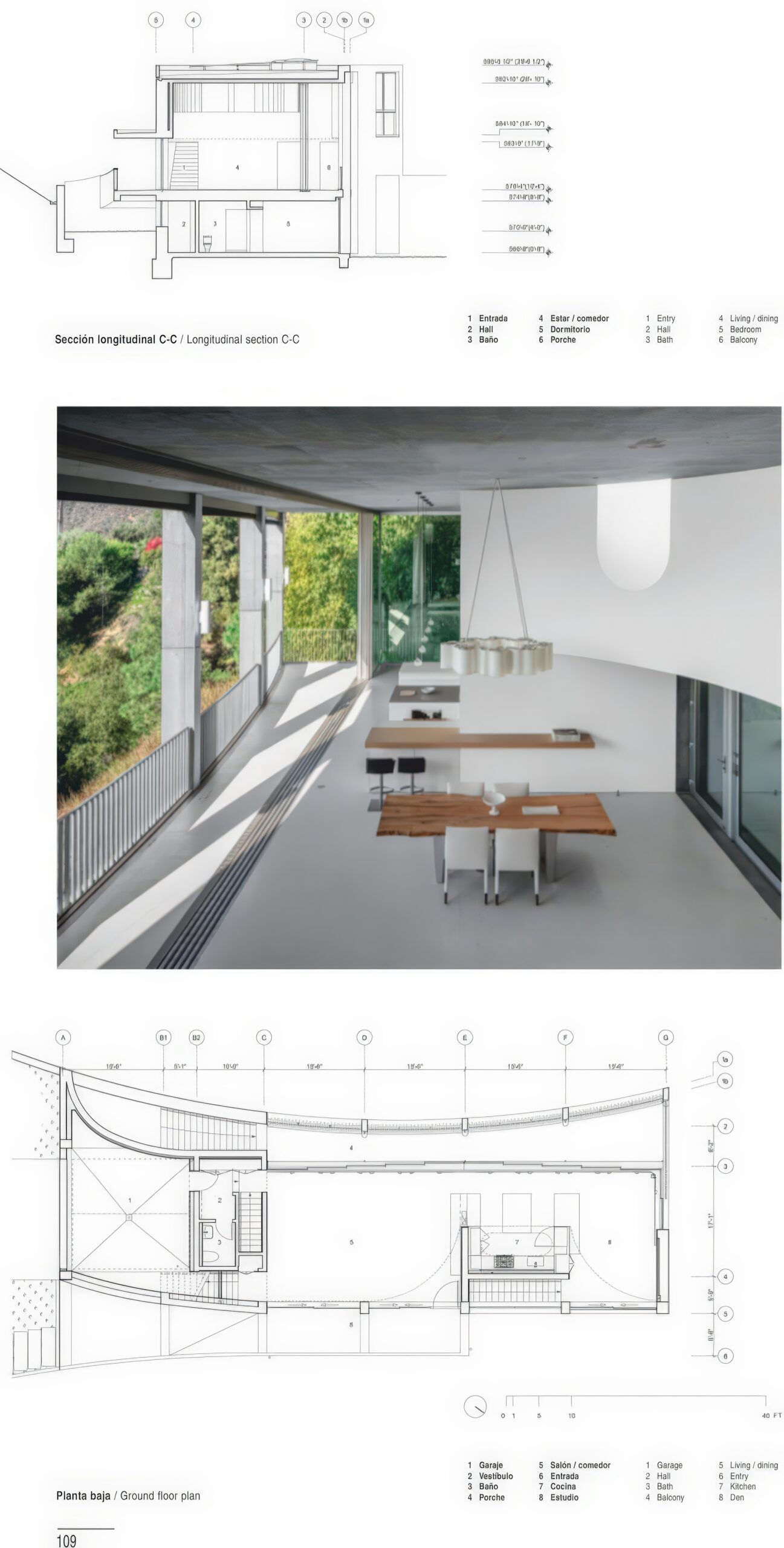 Porch House / Porch House | MARKLEE 建筑事务所 MARKLEE 建筑事务所|MARKLEE • 2025-11-02 下午12:50 • 公共建筑设计, 建筑师设计, 建筑设计, 文化建筑设计 Porch House 由 MARKLEE 建筑事务所设计,是一座位于陡峭草坡顶部的独立住宅,面向州立公园和海洋。建筑通过曲线挡土墙与场地自然融合,以混凝土柱廊和玻璃体量重新诠释传统门廊空间,创造内外交融的居住体验。 设计: MARKLEE 建筑事务所|MARKLEE 类型: 文化建筑设计 功能: 独立住宅 风格: 当代建筑 材料: 混凝土 木材 玻璃 尺度: 小型建筑 地点:美国 时间: 2018年 项目概述 Porch House 是一座独立住宅,位于陡峭草坡顶部,面向州立公园和海洋。建筑通过两个体量的组合,重新定义了住宅与自然环境的关系。 设计理念 设计灵感来源于美国传统门廊类型学,通过曲线挡土墙和混凝土柱廊,在私人 interior 与外部世界之间建立对话。建筑整体成为门廊,实现了内外空间的自然过渡。 空间与功能 Porch House 颠覆传统住宅布局,将公共生活空间置于上层,私人卧室位于下层。混凝土柱廊与玻璃体量之间的过渡空间成为核心体验区,水磨石和混凝土地面从室内延伸至室外。 材料与技术 建筑采用混凝土柱廊结构、玻璃幕墙和水磨石地面。热质量设计使住宅在大部分时间实现气候自主,天窗和大型窗墙系统优化自然采光。 项目特色与启发 Porch House 重新诠释了传统门廊空间,展示了如何通过建筑语言实现人与自然的和谐共生,为当代住宅设计提供了创新思路。 设计团队 MARKLEE 建筑事务所擅长通过简洁的建筑语言回应场地特征,在住宅设计中注重空间体验与环境的融合。 项目概述 Porch House 是一座独立住宅,位于陡峭草坡顶部,面向州立公园和海洋。建筑通过两个体量的组合,重新定义了住宅与自然环境的关系。 设计理念 设计灵感来源于美国传统门廊类型学,通过曲线挡土墙和混凝土柱廊,在私人 interior 与外部世界之间建立对话。建筑整体成为门廊,实现了内外空间的自然过渡。 空间与功能 Porch House 颠覆传统住宅布局,将公共生活空间置于上层,私人卧室位于下层。混凝土柱廊与玻璃体量之间的过渡空间成为核心体验区,水磨石和混凝土地面从室内延伸至室外。 材料与技术 建筑采用混凝土柱廊结构、玻璃幕墙和水磨石地面。热质量设计使住宅在大部分时间实现气候自主,天窗和大型窗墙系统优化自然采光。 项目特色与启发 Porch House 重新诠释了传统门廊空间,展示了如何通过建筑语言实现人与自然的和谐共生,为当代住宅设计提供了创新思路。 设计团队 MARKLEE 建筑事务所擅长通过简洁的建筑语言回应场地特征,在住宅设计中注重空间体验与环境的融合。 本文来自 © MARKLEE 建筑事务所|MARKLEE, 发布于 © 建筑学院官方网站。 未经授权,禁止转载或摘编。 编辑版本版权归 © 建筑学院官方网站 所有, 设计、图纸及照片版权归设计方 © MARKLEE 建筑事务所|MARKLEE ↗ 所有。 查看作者在建筑学院发布的更多作品: MARKLEE 建筑事务所|MARKLEE @ 建筑学院官方网站 Porch House独立住宅设计现代住宅门廊建筑 MARKLEE 建筑事务所|MARKLEE事务所 & 设计师 下载原图 收藏 0 关于作者 MARKLEE 建筑事务所|MARKLEE事务所 & 设计师 关注私信 17 文章 0 评论 0 粉丝 MARKLEE建筑事务所是一家致力于提供前瞻性建筑与空间解决方案的国际化团队。我们秉持“设计重塑体验”的理念,擅长将客户独特需求与场地文脉相结合,通过严谨的逻辑与创意构思,打造兼具现代美学、实用价值与可持续性的建筑作品。从概念到落地,MARKLEE为您提供专业化、个性化的全程设计服务,共创卓越空间。 李尔斯艺术中心 / Lewis Center for the Arts | 霍尔 Steven Holl 上一篇 2025-11-02 下午12:50 瑞士卢塞蒂体育中心与大厅 / Campus Ruetli Sports Hall | Karamuk Kuo 建筑事务所 下一篇 2025-11-03 上午8:50 猜你喜欢 圣皮埃德拉帕斯的房屋 / House in San Pedro de la Paz | Pezo Von Ellrichshausen 2026-02-03 住宅建筑设计 巴西贝萨雷斯保护区两座房子 | 曼努埃尔·塞万提斯|Manuel Cervantes 2025-12-07 公共建筑设计 马略阿的房子 / House in Maia | 阿尔瓦罗·西扎 & 安东尼奥·马杜雷拉 2026-03-05 住宅建筑设计 库拉卡维房屋 / House in Curacaví | Pezo Von Ellrichshausen 2026-02-07 住宅建筑设计 京都的房子 / House in Kyodo | 长谷川豪建筑事务所 2025-11-01 公共建筑设计 Catarina House / Casa Catarina | Taller Héctor Barroso 2026-02-21 住宅建筑设计 发表回复 请登录后评论...登录后才能评论 提交