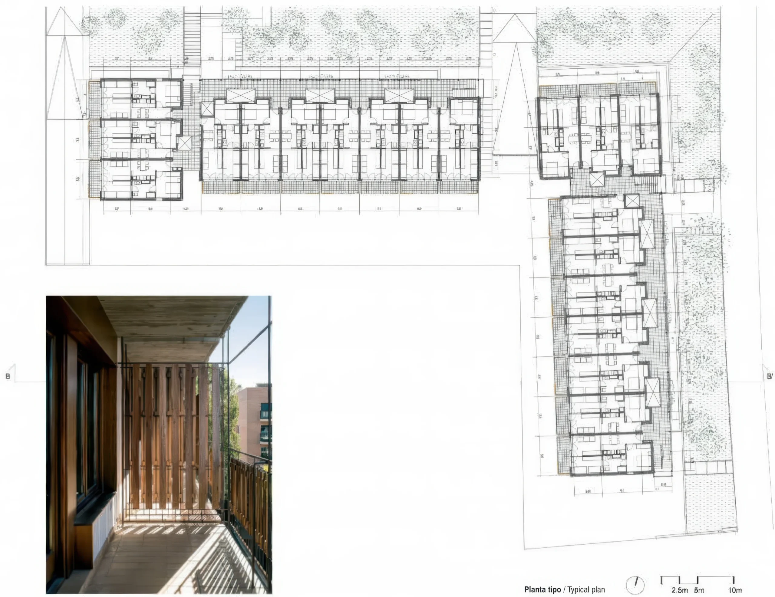 80 社区住宅在萨洛 / 80 Social Dwellings in Salou | 托尼·希罗内斯|Toni Gironès 托尼·希罗内斯|Toni Gironès • 2025-11-03 上午8:50 • 公共建筑设计, 建筑师设计, 建筑设计, 文化建筑设计 80 社区住宅在萨洛由托尼·希罗内斯建筑事务所设计,位于西班牙塔拉戈纳省萨洛市,是一个社会住宅项目。设计通过创新的空间过渡与自然互动策略,在农业景观与城市扩张之间建立和谐连接,展现了当代社会住宅的可持续性与社区价值。 设计: 托尼·希罗内斯|Toni Gironès 类型: 文化建筑设计 功能: 公寓住宅 风格: 地域主义 材料: 混凝土 钢材 木材 玻璃 尺度: 中型建筑 地点:洛萨 时间: 2009年 项目概述 80 社区住宅在萨洛项目位于西班牙塔拉戈纳省萨洛市,是一个社会住宅开发项目。该项目由两栋地面+3层建筑组成,每层包含10套住宅单元,总建筑面积约8000平方米,设计于2007年,建成于2009年。 设计理念 托尼·希罗内斯建筑事务所在80 社区住宅在萨洛项目中,以农业景观逻辑与自然循环为灵感,通过中间空间、过渡区域和阈值的精心设计,在不同现实之间建立连续性。设计团队致力于打破城市增长模式与自然环境之间的界限,创造开放而连贯的居住体验。 空间与功能 80 社区住宅在萨洛采用标准化住宅单元设计,每套住宅享有两个相对朝向,形成走廊、居住空间与露台的横向序列。入口和社区空间被设计为互动场所,连接住宅与外部环境。轻微斜坡引入自然光线和空气到停车场,而波纹钢网走道则根据功能需求调整密度,容纳植物生长并与杨树林共同在炎热季节提供遮阳降温。 材料与技术 项目选用经济、低维护的材料,包括混凝土结构、钢材、木材和玻璃。波纹钢网用于走道栏杆和遮阳系统,结合滴灌技术支持垂直绿化。建筑采用交叉通风和自然采光策略, inverted屋顶和钢筋混凝土悬挑结构增强环境性能,展现了社会住宅在材料表达与被动式气候控制方面的创新。 项目特色与启发 80 社区住宅在萨洛通过空间序列与材料诚实性,重新定义了社会住宅的设计标准。项目在有限的预算内实现了高度的适应性与可持续性,为经济适用房项目提供了如何在社区构建、环境响应与用户现实之间取得平衡的重要参考。 设计团队 托尼·希罗内斯建筑事务所专注于建筑与环境的融合设计,以简洁的材料语言和细致的空间处理著称。事务所在住宅与公共项目中强调社会价值与可持续性,80 社区住宅在萨洛体现了其对用户需求与场地文脉的深入理解。 项目概述 80 社区住宅在萨洛项目位于西班牙塔拉戈纳省萨洛市,是一个社会住宅开发项目。该项目由两栋地面+3层建筑组成,每层包含10套住宅单元,总建筑面积约8000平方米,设计于2007年,建成于2009年。 设计理念 托尼·希罗内斯建筑事务所在80 社区住宅在萨洛项目中,以农业景观逻辑与自然循环为灵感,通过中间空间、过渡区域和阈值的精心设计,在不同现实之间建立连续性。设计团队致力于打破城市增长模式与自然环境之间的界限,创造开放而连贯的居住体验。 空间与功能 80 社区住宅在萨洛采用标准化住宅单元设计,每套住宅享有两个相对朝向,形成走廊、居住空间与露台的横向序列。入口和社区空间被设计为互动场所,连接住宅与外部环境。轻微斜坡引入自然光线和空气到停车场,而波纹钢网走道则根据功能需求调整密度,容纳植物生长并与杨树林共同在炎热季节提供遮阳降温。 材料与技术 项目选用经济、低维护的材料,包括混凝土结构、钢材、木材和玻璃。波纹钢网用于走道栏杆和遮阳系统,结合滴灌技术支持垂直绿化。建筑采用交叉通风和自然采光策略, inverted屋顶和钢筋混凝土悬挑结构增强环境性能,展现了社会住宅在材料表达与被动式气候控制方面的创新。 项目特色与启发 80 社区住宅在萨洛通过空间序列与材料诚实性,重新定义了社会住宅的设计标准。项目在有限的预算内实现了高度的适应性与可持续性,为经济适用房项目提供了如何在社区构建、环境响应与用户现实之间取得平衡的重要参考。 设计团队 托尼·希罗内斯建筑事务所专注于建筑与环境的融合设计,以简洁的材料语言和细致的空间处理著称。事务所在住宅与公共项目中强调社会价值与可持续性,80 社区住宅在萨洛体现了其对用户需求与场地文脉的深入理解。 本文来自 © 托尼·希罗内斯|Toni Gironès, 发布于 © 建筑学院官方网站。 未经授权,禁止转载或摘编。 编辑版本版权归 © 建筑学院官方网站 所有, 设计、图纸及照片版权归设计方 © 托尼·希罗内斯|Toni Gironès ↗ 所有。 查看作者在建筑学院发布的更多作品: 托尼·希罗内斯|Toni Gironès @ 建筑学院官方网站 80 Social Dwellings in SalouSalou architecturesocial housingToni Gironès 托尼·希罗内斯|Toni Gironès事务所 & 设计师 下载原图 收藏 0 关于作者 托尼·希罗内斯|Toni Gironès事务所 & 设计师 关注私信 8 文章 4 评论 0 粉丝 托尼·希罗内斯是西班牙加泰罗尼亚地区备受瞩目的建筑师与教授。他的作品深深植根于当地环境,擅长运用本土材料与可持续策略,创造性地处理边界、光线与中间空间的过渡,以此提升空间的可居住性。其代表作如塞罗巨石陵墓文化服务空间、巴达洛纳35住宅等,都体现了对场地历史的尊重与现代的转译,展现出一种诗意的、缓慢的建筑叙事。 森林里的房子 / House in a Forest | 长谷川豪建筑事务所 上一篇 2025-11-03 上午