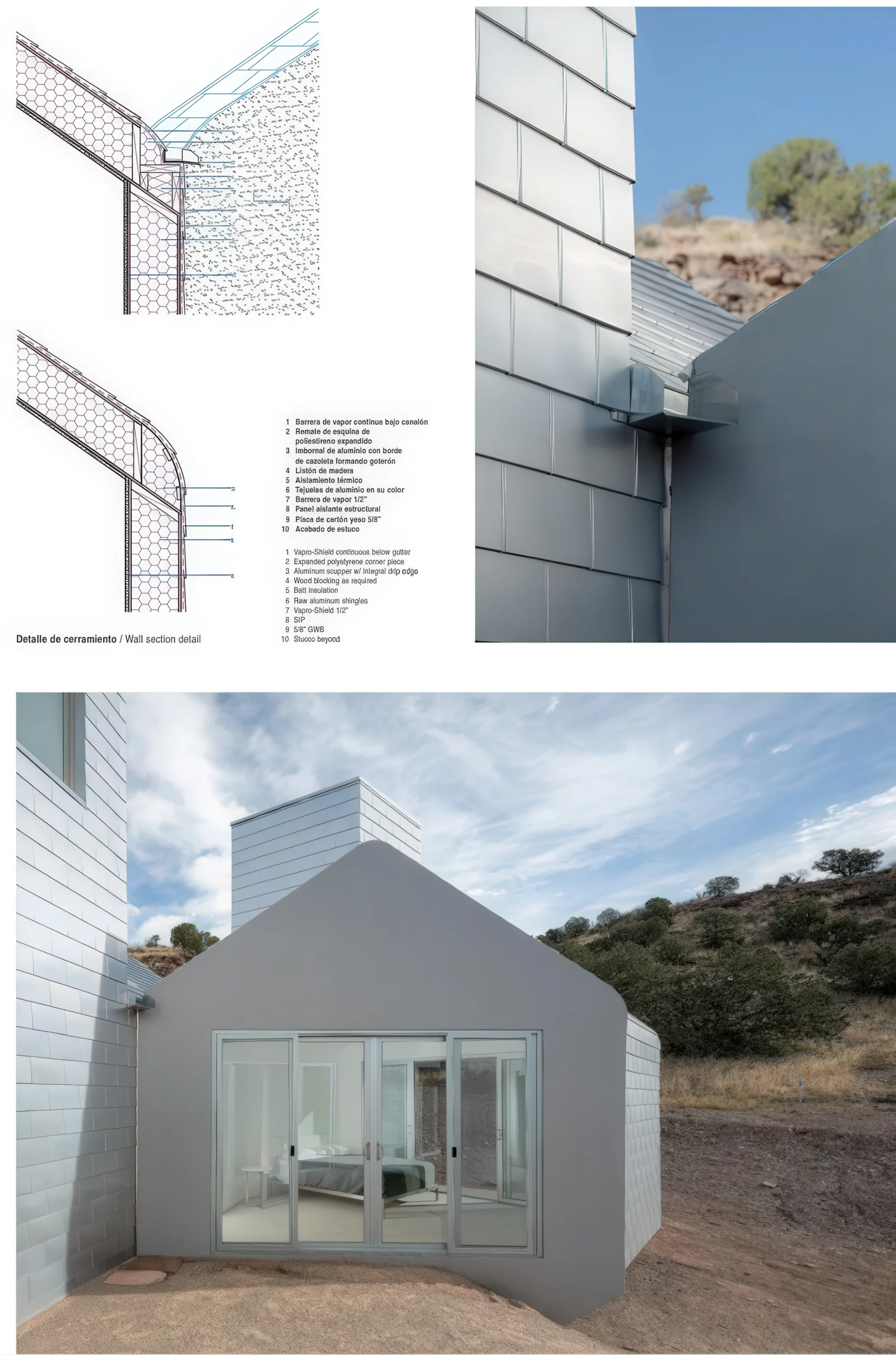 第五座房子,室外艺术博物馆元素屋 / House No. 5, Museum of Outdoor Arts Element House | MOS 建筑事务所 MOS 建筑事务所|MOS • 2025-11-03 下午12:50 • 公共建筑设计, 建筑师设计, 建筑设计, 文化建筑设计 第五座房子,室外艺术博物馆元素屋由 MOS 建筑事务所设计,位于新墨西哥州,是一座采用结构保温板建造的模块化建筑。该项目作为 Star Axis 大地艺术项目的访客中心与客房,通过被动式设计与现场能源生成实现完全离网运行,展现了可持续建筑与环境融合的创新实践。 设计: MOS 建筑事务所|MOS 类型: 文化建筑设计 功能: 独立住宅 风格: 现代主义 材料: 木材 玻璃 金属板 尺度: 小型建筑 地点:新墨西哥 时间: 2018年 项目概述 第五座房子,室外艺术博物馆元素屋位于美国新墨西哥州,是一座模块化建筑,功能包括访客中心与客房。建筑采用结构保温板系统建造,设计完全脱离公共设施网络,通过整合被动式系统与现场能源生成实现自主运行。 设计理念 MOS 建筑事务所将建筑分解为基本组件,采用几何增长系统组织空间,模块依次向外扩展。设计颠覆传统烟囱概念,将其转化为分散的垂直天窗开口与太阳能烟囱阵列,强化建筑与环境的热力学互动。 空间与功能 建筑空间基于加法几何系统组织,模块依次连接扩展。功能布局包含卧室、厨房、餐厅与起居区域,太阳能烟囱不仅提供采光通风,还成为空间体验的核心元素,塑造流动而连贯的使用体验。 材料与技术 建筑主要采用结构保温板系统,外墙覆盖天然铝质瓦片,与结构间留有空隙形成热缓冲层。太阳能烟囱与天窗系统实现被动冷却与自然通风,结合现场能源生成技术,使建筑完全脱离电网运行。 项目特色与启发 第五座房子,室外艺术博物馆元素屋展示了模块化建筑与可持续技术的深度融合,为离网建筑提供了创新范本。MOS 建筑事务所的设计重新定义了建筑与环境的关系,对生态建筑与大地艺术空间的整合具有重要参考价值。 设计团队 MOS 建筑事务所是一家以研究为导向的设计实践,专注于建筑与环境系统的创新整合。事务所在可持续建筑、模块化构造与空间体验领域具有丰富经验,第五座房子项目体现了其对建筑性能与形式语言的探索。 项目概述 第五座房子,室外艺术博物馆元素屋位于美国新墨西哥州,是一座模块化建筑,功能包括访客中心与客房。建筑采用结构保温板系统建造,设计完全脱离公共设施网络,通过整合被动式系统与现场能源生成实现自主运行。 设计理念 MOS 建筑事务所将建筑分解为基本组件,采用几何增长系统组织空间,模块依次向外扩展。设计颠覆传统烟囱概念,将其转化为分散的垂直天窗开口与太阳能烟囱阵列,强化建筑与环境的热力学互动。 空间与功能 建筑空间基于加法几何系统组织,模块依次连接扩展。功能布局包含卧室、厨房、餐厅与起居区域,太阳能烟囱不仅提供采光通风,还成为空间体验的核心元素,塑造流动而连贯的使用体验。 材料与技术 建筑主要采用结构保温板系统,外墙覆盖天然铝质瓦片,与结构间留有空隙形成热缓冲层。太阳能烟囱与天窗系统实现被动冷却与自然通风,结合现场能源生成技术,使建筑完全脱离电网运行。 项目特色与启发 第五座房子,室外艺术博物馆元素屋展示了模块化建筑与可持续技术的深度融合,为离网建筑提供了创新范本。MOS 建筑事务所的设计重新定义了建筑与环境的关系,对生态建筑与大地艺术空间的整合具有重要参考价值。 设计团队 MOS 建筑事务所是一家以研究为导向的设计实践,专注于建筑与环境系统的创新整合。事务所在可持续建筑、模块化构造与空间体验领域具有丰富经验,第五座房子项目体现了其对建筑性能与形式语言的探索。 本文来自 © MOS 建筑事务所|MOS, 发布于 © 建筑学院官方网站。 未经授权,禁止转载或摘编。 编辑版本版权归 © 建筑学院官方网站 所有, 设计、图纸及照片版权归设计方 © MOS 建筑事务所|MOS ↗ 所有。 查看作者在建筑学院发布的更多作品: MOS 建筑事务所|MOS @ 建筑学院官方网站 MOS ArchitectsMuseum of Outdoor Arts Element House新墨西哥建筑模块化建筑 MOS 建筑事务所|MOS事务所 & 设计师 下载原图 收藏 0 关于作者 MOS 建筑事务所|MOS事务所 & 设计师 关注私信 12 文章 0 评论 0 粉丝 MOS建筑事务所是成立于纽约的知名建筑设计团队,以其研究性、协作性和概念前瞻性在当代建筑界独树一帜。他们的作品涵盖文化、教育及住宅领域,擅长通过独特的材料运用和构造逻辑,创造出既具实验精神又回应环境与功能的建筑。 店号2,厅室 / Store No.2, Chamber | +MOS 建筑事务所 上一篇 2025-11-03 下午12:50 IST脚手架 / IST Footbridge | RCR 建筑事务所 下一篇 2025-11-03 下午12:50 猜你喜欢 木偶剧场一号馆 / Puppet Theater | MOS 建筑事务所 2025-11-03 公共建筑设计 凯林眼镜新总部大楼 / Kering Eyewear New Headquarters | SANAA 2026-02-09 公共建筑设计 Directional Module Rocha / Directional Module Rocha | 布兰德胡伯建筑事务所|Brandlhuber 2025-11-17 公共建筑设计 发表回复 请登录后评论...登录后才能评论 提交
