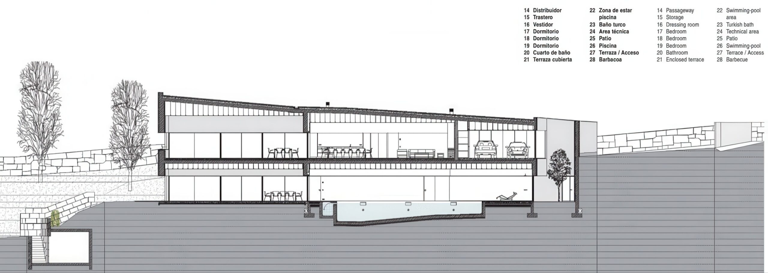 奥利维尔多杜罗之家 House in Oliveira do Douro | 德莫拉建筑事务所|De Mora 德莫拉建筑事务所|De Mora • 2025-11-05 上午8:50 • 公共建筑设计, 建筑师设计, 建筑设计, 文化建筑设计 奥利维尔多杜罗之家是德莫拉建筑事务所在葡萄牙奥利维尔多杜罗设计的独立住宅项目。建筑以楔形形态嵌入山坡地形,采用单坡屋顶设计,所有生活空间均面向杜罗河,创造出全方位的观景体验。项目巧妙结合地形高差,将游泳池、露台与室内空间有机整合,实现建筑与自然景观的完美融合。 设计: 德莫拉建筑事务所|De Mora 类型: 文化建筑设计 功能: 独立住宅 风格: 当代建筑 材料: 混凝土 钢材 木材 金属板 尺度: 小型建筑 地点:葡萄牙 时间: 2018年 项目简介 奥利维尔多杜罗之家位于葡萄牙奥利维尔多杜罗,是一座独立住宅建筑。项目建筑面积约300平方米,设计于2018年,建成于2020年,坐落于杜罗河畔的坡地上。 设计理念 设计团队以”观景台”为核心概念,将建筑塑造为嵌入山坡的楔形体量。单坡屋顶向河流方向抬升,强化了建筑与杜罗河的视觉联系。设计追求建筑与地形的有机融合,让河流景观渗透到每个生活空间。 空间与功能 建筑采用分层布局,地面层设置起居室、厨房、餐厅等公共空间,下层布置卧室区、土耳其浴室和技术区域。通过精心设计的动线,将室内空间与室外露台、游泳池无缝连接,创造出流畅的空间体验。 材料与技术 项目采用混凝土结构体系,外立面使用当地石材和木材,体现地域特色。单坡屋顶采用金属板材,施工工艺注重细节处理。建筑充分利用地形高差,实现自然通风和采光。 设计团队 德莫拉建筑事务所是葡萄牙知名建筑设计机构,专注于住宅建筑和文化遗产保护项目。事务所以对场地文脉的深刻理解和精致的材料运用著称,在当代建筑与传统语境的融合方面具有丰富经验。 项目简介 奥利维尔多杜罗之家位于葡萄牙奥利维尔多杜罗,是一座独立住宅建筑。项目建筑面积约300平方米,设计于2018年,建成于2020年,坐落于杜罗河畔的坡地上。 设计理念 设计团队以”观景台”为核心概念,将建筑塑造为嵌入山坡的楔形体量。单坡屋顶向河流方向抬升,强化了建筑与杜罗河的视觉联系。设计追求建筑与地形的有机融合,让河流景观渗透到每个生活空间。 空间与功能 建筑采用分层布局,地面层设置起居室、厨房、餐厅等公共空间,下层布置卧室区、土耳其浴室和技术区域。通过精心设计的动线,将室内空间与室外露台、游泳池无缝连接,创造出流畅的空间体验。 材料与技术 项目采用混凝土结构体系,外立面使用当地石材和木材,体现地域特色。单坡屋顶采用金属板材,施工工艺注重细节处理。建筑充分利用地形高差,实现自然通风和采光。 设计团队 德莫拉建筑事务所是葡萄牙知名建筑设计机构,专注于住宅建筑和文化遗产保护项目。事务所以对场地文脉的深刻理解和精致的材料运用著称,在当代建筑与传统语境的融合方面具有丰富经验。 本文来自 © 德莫拉建筑事务所|De Mora, 发布于 © 建筑学院官方网站。 未经授权,禁止转载或摘编。 编辑版本版权归 © 建筑学院官方网站 所有, 设计、图纸及照片版权归设计方 © 德莫拉建筑事务所|De Mora ↗ 所有。 查看作者在建筑学院发布的更多作品: 德莫拉建筑事务所|De Mora @ 建筑学院官方网站 坡地建筑奥利维尔多杜罗之家德莫拉建筑事务所独立住宅设计葡萄牙建筑 德莫拉建筑事务所|De Mora事务所 & 设计师 下载原图 收藏 0 关于作者 德莫拉建筑事务所|De Mora事务所 & 设计师 关注私信 8 文章 0 评论 0 粉丝 德莫拉建筑事务所是普利兹克奖得主阿尔瓦罗·西扎的事务所,代表葡萄牙现代建筑的巅峰。其作品以极简的几何形态、对光与场所的敏锐感知著称,擅长运用白色墙体与当地材料。从塞拉尔维斯博物馆到住宅改造,西扎的事务所展现了建筑与自然、历史文脉的深刻对话,是全球建筑师与学子研究的典范。 圣萨菲温泉 / Fuente Santa Spa | AMID.cero9 建筑事务所 上一篇 2025-11-04 下午12:50 丹麦广播音乐会馆,哥本哈根 Danish Radio Concert House, Copenhagen | 让·努维尔建筑事务所|Jean Nouvel 下一篇 2025-11-05 上午8:50 猜你喜欢 希尔之家 / Hill House | MARKLEE 建筑事务所 2025-11-15 公共建筑设计 圣楚尔瓦住宅 House in Stürcherwald | 贝尔纳多·巴德尔|Bernardo Bader 2025-10-30 公共建筑设计 Gotanda的房子 / House in Gotanda | 长谷川豪建筑事务所 6天前 公共建筑设计 物理花园3实验室楼 ‘Physic Garden 3’Laboratory Building | 德莫拉建筑事务所|De Mora 2025-11-24 公共建筑设计 弗恩斯住宅,克鲁姆赫希 / House by the Fens, Krumbach | 贝尔纳多·巴德尔|Bernardo Bader 2025-11-14 公共建筑设计 川崎住宅 / House in Kawasaki | 长谷川豪建筑事务所 2025-11-22 公共建筑设计 发表回复 请登录后评论...登录后才能评论 提交