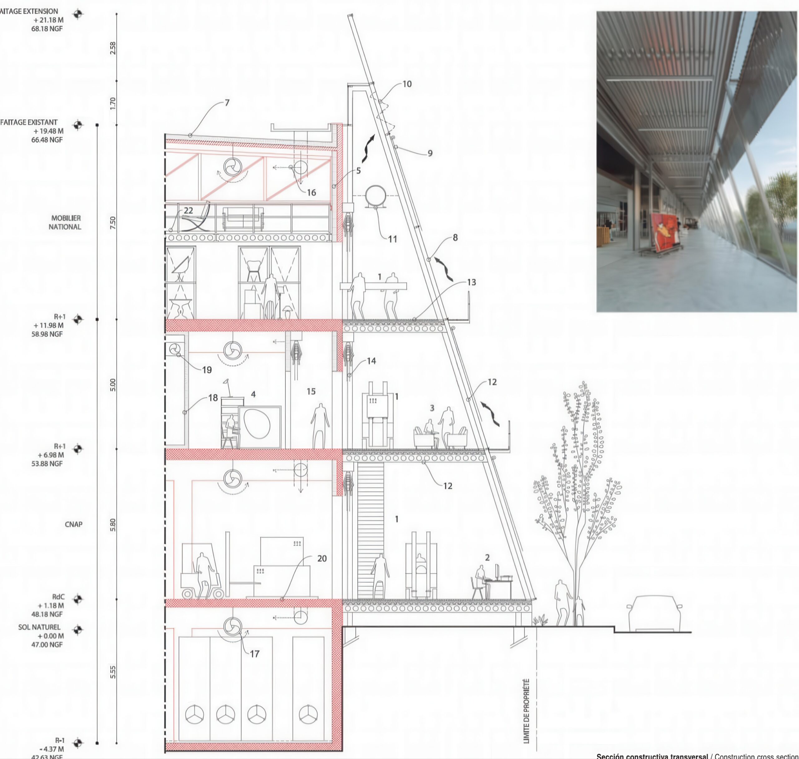 国家塑料艺术与移动家具中心存储设施 National Centre for the Plastic Arts and Mobilier National Storage Facility | 布鲁瑟建筑事务所|Bruther 布鲁瑟建筑事务所|Bruther • 2025-11-06 上午8:50 • 公共建筑设计, 建筑师设计, 建筑设计, 文化建筑设计 布鲁瑟建筑事务所在法国庞坦设计的国家塑料艺术与移动家具中心存储设施,将21世纪艺术融入旧工业区机库群。项目通过改造现有仓库和新建圆形建筑与三层廊道,创造集存储保护、交流讨论与艺术品展示于一体的多功能空间。设计采用经济实用策略,充分利用工业建筑特质满足文物保护需求。 设计: 布鲁瑟建筑事务所|Bruther 类型: 文化建筑设计 功能: 独立住宅 风格: 现代主义 材料: 混凝土 钢材 玻璃 金属板 尺度: 微型建筑与装置 地点:法国 时间: 2018年 项目简介 国家塑料艺术与移动家具中心存储设施位于法国庞坦,是一座文化存储建筑,建筑面积未公开,设计于2018年竞赛一等奖,预计近年建成。 设计理念 布鲁瑟建筑事务所采用经济实用策略,通过最小化改造现有机库并新建自主结构,实现艺术存储与公共功能的融合。设计灵感来自工业建筑特质,强调光线质量与热工性能。 空间与功能 项目包含改造的存储机库与新建圆形生活空间及三层廊道。地面层设7米宽艺术大道,上层空间更私密,形成从艺术品接收到展示的完整动线。 材料与技术 采用铝制滑动框架、高性能隔热玻璃、混凝土楼板与钢材结构。注重热工绝缘与自然采光,利用现有墙体热惰性,配备先进通风与湿度控制系统。 设计团队 布鲁瑟建筑事务所是法国新兴建筑实践,以简洁形式、工业美学和可持续策略著称,专注于文化建筑与城市更新项目。 项目简介 国家塑料艺术与移动家具中心存储设施位于法国庞坦,是一座文化存储建筑,建筑面积未公开,设计于2018年竞赛一等奖,预计近年建成。 设计理念 布鲁瑟建筑事务所采用经济实用策略,通过最小化改造现有机库并新建自主结构,实现艺术存储与公共功能的融合。设计灵感来自工业建筑特质,强调光线质量与热工性能。 空间与功能 项目包含改造的存储机库与新建圆形生活空间及三层廊道。地面层设7米宽艺术大道,上层空间更私密,形成从艺术品接收到展示的完整动线。 材料与技术 采用铝制滑动框架、高性能隔热玻璃、混凝土楼板与钢材结构。注重热工绝缘与自然采光,利用现有墙体热惰性,配备先进通风与湿度控制系统。 设计团队 布鲁瑟建筑事务所是法国新兴建筑实践,以简洁形式、工业美学和可持续策略著称,专注于文化建筑与城市更新项目。 本文来自 © 布鲁瑟建筑事务所|Bruther, 发布于 © 建筑学院官方网站。 未经授权,禁止转载或摘编。 编辑版本版权归 © 建筑学院官方网站 所有, 设计、图纸及照片版权归设计方 © 布鲁瑟建筑事务所|Bruther ↗ 所有。 查看作者在建筑学院发布的更多作品: 布鲁瑟建筑事务所|Bruther @ 建筑学院官方网站 国家塑料艺术中心存储设施布鲁瑟建筑事务所庞坦文化建筑 布鲁瑟建筑事务所|Bruther事务所 & 设计师 下载原图 收藏 0 关于作者 布鲁瑟建筑事务所|Bruther事务所 & 设计师 关注私信 20 文章 0 评论 1 粉丝 布鲁瑟建筑事务所(Bruther)由亚历克西斯·博德与斯蒂芬妮·布鲁诺创立于巴黎,是当代极具前瞻性的先锋建筑团队。他们以“动态功能”与“空间灵活性”为核心,作品横跨文化、教育及研究建筑领域,以前瞻性思维与技术精确性,创造出开放、适应性强且充满张力的建筑,持续拓展建筑实践的边界,重新定义当代建筑语言。 格罗斯贝尔大爆炸办公大楼 Grosser Burstah Office Building | 卡鲁索·圣约翰建筑事务所|Caruso St John 上一篇 2025-11-06 上午8:50 气球 Balloon | 石上纯也建筑事务所|Junya Ishigami 下一篇 2025-11-06 下午12:50 猜你喜欢 丹麦罗斯基勒音乐学校 / MVRDV + COBE 2019-03-01 建筑设计 布列塔尼街14套住宅 14 Housing Units on Rue des Bergers | 布鲁瑟建筑事务所|Bruther 2025-11-28 公共建筑设计 轻触湖面,御风而立的架空展厅/Aguilo +佩德拉萨 2018-12-29 建筑设计 新作!浇铸在大地之上的巨型圆椎古铜城堡——天津滨海城市博物馆 2019-01-30 公共建筑设计 超现实月球场景般的艺术馆 — 阿莫斯·雷克斯艺术馆 2018-08-31 建筑设计 华茂艺术教育博物馆 / 阿尔瓦罗·西扎 + 卡洛斯·卡斯塔涅拉 2020-11-26 公共建筑设计 发表回复 请登录后评论...登录后才能评论 提交