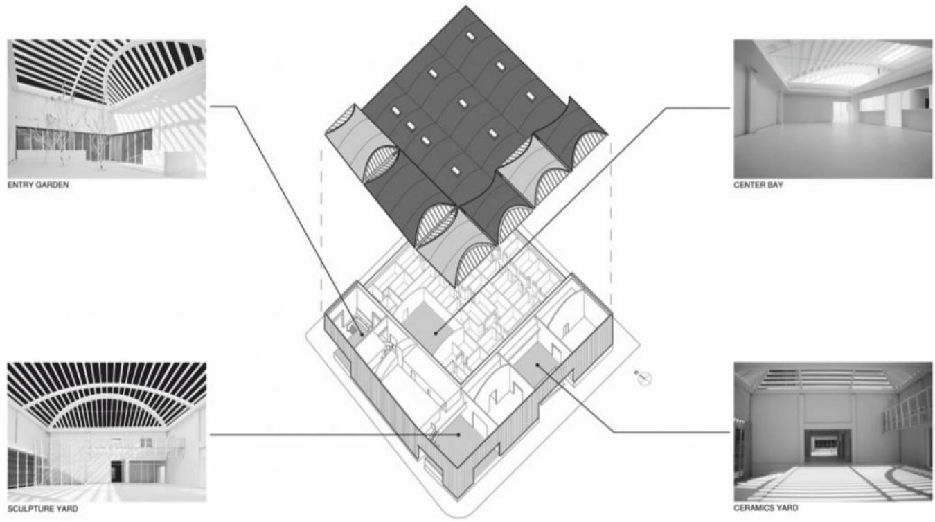 加州大学洛杉矶分校马戈雷文研究生艺术工作室 / UCLA Margo Leavin Graduate Art Studios | MARKLEE 建筑事务所 MARKLEE 建筑事务所|MARKLEE • 2025-11-08 上午8:50 • 公共建筑设计, 建筑师设计, 建筑设计, 文化建筑设计 加州大学洛杉矶分校马戈雷文研究生艺术工作室由 MARKLEE 建筑事务所设计,位于洛杉矶卡尔弗城工业区,通过改造历史墙纸工厂与新建结构融合,为艺术研究生提供创作空间。项目以”微型城市”概念组织空间,结合新旧建筑元素,打造灵活的艺术教育环境。 设计: MARKLEE 建筑事务所|MARKLEE 类型: 文化建筑设计 功能: 学校 风格: 当代建筑 材料: 混凝土 木材 玻璃 尺度: 中型建筑 地点:洛杉矶 时间: 2016年 项目概述 加州大学洛杉矶分校马戈雷文研究生艺术工作室位于美国洛杉矶卡尔弗城,总建筑面积4459平方米,包含对1858平方米历史墙纸工厂的适应性改造和2601平方米新建结构。该项目自2016年起设计建造,为陶瓷、跨学科研究、新媒体、绘画与素描、摄影及雕塑六大学科提供专业工作室与教学空间。 设计理念 MARKLEE 建筑事务所将加州大学洛杉矶分校马戈雷文研究生艺术工作室构想为”微型城市”,通过新旧建筑融合创造差异化与复杂性的使用体验。设计保留工业建筑特质的同时,以现代建筑语言重新诠释空间组织,强化艺术创作与社区交流的互动关系。 空间与功能 加州大学洛杉矶分校马戈雷文研究生艺术工作室内部空间以艺术家个人工作室为基本单元,集群形成街区式布局。流通区域通过材料存储壁龛、共享入口和集体评图空间界定,双高多功能庭院环绕原有仓库,拱形木结构屋顶覆盖室内外空间,支持灵活的艺术生产、安装与展示活动。 材料与技术 项目采用预制混凝土外墙板,优化热工性能同时减少额外保温层。拱形胶合木梁屋顶结构呼应原有仓库曲线桁架,结合屋顶膜与半透明玻璃板覆层。室内采用极简饰面,营造适合艺术家工作室的原始未完成感材料景观。 项目特色与启发 加州大学洛杉矶分校马戈雷文研究生艺术工作室展示了工业建筑适应性再利用的典范,通过空间重组与材料创新,为艺术教育机构提供了灵活多变的工作环境。该项目对城市更新与教育建筑设计具有重要参考价值。 设计团队 MARKLEE 建筑事务所专注于文化教育与城市更新项目,以创新材料运用与空间策略著称。在本项目中,团队成功将工业遗产转化为充满活力的艺术创作社区,体现了其对建筑语境与功能需求的深刻理解。 项目概述 加州大学洛杉矶分校马戈雷文研究生艺术工作室位于美国洛杉矶卡尔弗城,总建筑面积4459平方米,包含对1858平方米历史墙纸工厂的适应性改造和2601平方米新建结构。该项目自2016年起设计建造,为陶瓷、跨学科研究、新媒体、绘画与素描、摄影及雕塑六大学科提供专业工作室与教学空间。 设计理念 MARKLEE 建筑事务所将加州大学洛杉矶分校马戈雷文研究生艺术工作室构想为”微型城市”,通过新旧建筑融合创造差异化与复杂性的使用体验。设计保留工业建筑特质的同时,以现代建筑语言重新诠释空间组织,强化艺术创作与社区交流的互动关系。 空间与功能 加州大学洛杉矶分校马戈雷文研究生艺术工作室内部空间以艺术家个人工作室为基本单元,集群形成街区式布局。流通区域通过材料存储壁龛、共享入口和集体评图空间界定,双高多功能庭院环绕原有仓库,拱形木结构屋顶覆盖室内外空间,支持灵活的艺术生产、安装与展示活动。 材料与技术 项目采用预制混凝土外墙板,优化热工性能同时减少额外保温层。拱形胶合木梁屋顶结构呼应原有仓库曲线桁架,结合屋顶膜与半透明玻璃板覆层。室内采用极简饰面,营造适合艺术家工作室的原始未完成感材料景观。 项目特色与启发 加州大学洛杉矶分校马戈雷文研究生艺术工作室展示了工业建筑适应性再利用的典范,通过空间重组与材料创新,为艺术教育机构提供了灵活多变的工作环境。该项目对城市更新与教育建筑设计具有重要参考价值。 设计团队 MARKLEE 建筑事务所专注于文化教育与城市更新项目,以创新材料运用与空间策略著称。在本项目中,团队成功将工业遗产转化为充满活力的艺术创作社区,体现了其对建筑语境与功能需求的深刻理解。 本文来自 © MARKLEE 建筑事务所|MARKLEE, 发布于 © 建筑学院官方网站。 未经授权,禁止转载或摘编。 编辑版本版权归 © 建筑学院官方网站 所有, 设计、图纸及照片版权归设计方 © MARKLEE 建筑事务所|MARKLEE ↗ 所有。 查看作者在建筑学院发布的更多作品: MARKLEE 建筑事务所|MARKLEE @ 建筑学院官方网站 UCLA Margo Leavin Graduate Art Studios工业建筑改造洛杉矶教育建筑艺术教育建筑 MARKLEE 建筑事务所|MARKLEE事务所 & 设计师 下载原图 收藏 0 关于作者 MARKLEE 建筑事务所|MARKLEE事务所 & 设计师 关注私信 17 文章 0 评论 0 粉丝 MARKLEE建筑事务所是一家致力于提供前瞻性建筑与空间解决方案的国际化团队。我们秉持“设计重塑体验”的理念,擅长将客户独特需求与场地文脉相结合,通过严谨的逻辑与创意构思,打造兼具现代美学、实用价值与可持续性的建筑作品。从概念到落地,MARKLEE为您提供专业化、个性化的全程设计服务,共创卓越空间。 西安国际足球中心 / 扎哈事务所新作 上一篇 2025-11-07 下午10:54 巴黎瑞吉大厦 Rise Building, Paris | 布鲁瑟建筑事务所|Bruther 下一篇 2025-11-09 