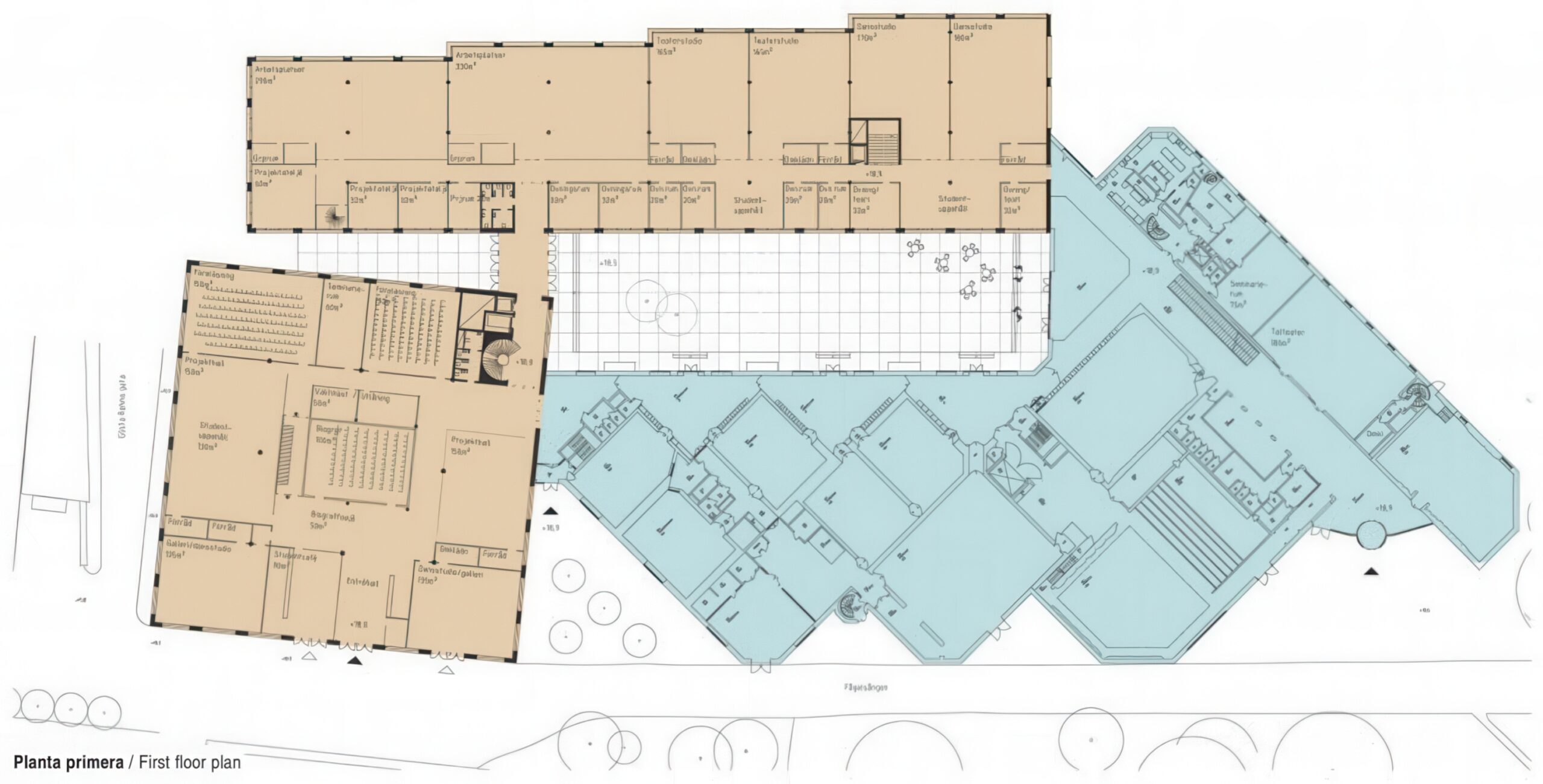 哥本哈根大学新建建筑 New Buildings for the University of Gothenburg | 谭姆与维德高德建筑事务所|Tham & Videgård 谭姆与维德高德建筑事务所|Tham & Videgård • 2025-11-09 上午8:50 • 公共建筑设计, 建筑师设计, 建筑设计, 文化建筑设计 哥德堡大学新建建筑项目由谭姆与维德高德建筑事务所设计,位于瑞典哥德堡市中心。该项目将艺术学院、设计学院与音乐学院整合于一体,围绕历史公园布局,采用红黄双色砖材与工业节奏立面,形成与周边新古典建筑和谐共生的教育建筑群。设计通过庭院空间与悬挑体量,创造开放互动的学术环境。 设计: 谭姆与维德高德建筑事务所|Tham & Videgård 类型: 文化建筑设计 功能: 独立住宅 风格: 现代主义 材料: 钢材 玻璃 砖材 尺度: 大型建筑 地点:哥德堡 时间: 2015年 项目简介 哥德堡大学新建建筑项目位于瑞典哥德堡市中心,毗邻Götaplatsen广场。项目包含艺术学院、设计学院与音乐学院,建筑面积约25,000平方米,设计于2015年启动,目前处于建设阶段。 设计理念 设计团队以”开放校园”为核心策略,通过新建建筑与历史建筑的有机整合,打破大学与城市的边界。采用工业节奏的立面与双色砖材,既呼应场地历史文脉,又展现当代教育建筑的开放特质。 空间与功能 项目围绕中央庭院组织空间,形成完整的城市街区。庭院兼具露天工作室功能,新建建筑通过连廊与既有建筑相连,包含工作室、教室、排练厅及现代化媒体图书馆,各功能空间垂直堆叠,形成高效的教学流线。 材料与技术 主要采用深红与浅黄双色砖材立面,与周边新古典建筑形成对话。图书馆部分使用玻璃与耐候钢悬挑体量,屋顶设置双坡天窗系统,优化自然采光。设计注重历史保护与当代功能的平衡。 设计团队 谭姆与维德高德建筑事务所是瑞典知名建筑事务所,以文化建筑与教育建筑设计见长,擅长通过材料表达与空间组织创造与环境和谱共生的建筑作品。 项目简介 哥德堡大学新建建筑项目位于瑞典哥德堡市中心,毗邻Götaplatsen广场。项目包含艺术学院、设计学院与音乐学院,建筑面积约25,000平方米,设计于2015年启动,目前处于建设阶段。 设计理念 设计团队以”开放校园”为核心策略,通过新建建筑与历史建筑的有机整合,打破大学与城市的边界。采用工业节奏的立面与双色砖材,既呼应场地历史文脉,又展现当代教育建筑的开放特质。 空间与功能 项目围绕中央庭院组织空间,形成完整的城市街区。庭院兼具露天工作室功能,新建建筑通过连廊与既有建筑相连,包含工作室、教室、排练厅及现代化媒体图书馆,各功能空间垂直堆叠,形成高效的教学流线。 材料与技术 主要采用深红与浅黄双色砖材立面,与周边新古典建筑形成对话。图书馆部分使用玻璃与耐候钢悬挑体量,屋顶设置双坡天窗系统,优化自然采光。设计注重历史保护与当代功能的平衡。 设计团队 谭姆与维德高德建筑事务所是瑞典知名建筑事务所,以文化建筑与教育建筑设计见长,擅长通过材料表达与空间组织创造与环境和谱共生的建筑作品。 本文来自 © 谭姆与维德高德建筑事务所|Tham & Videgård, 发布于 © 建筑学院官方网站。 未经授权,禁止转载或摘编。 编辑版本版权归 © 建筑学院官方网站 所有, 设计、图纸及照片版权归设计方 © 谭姆与维德高德建筑事务所|Tham & Videgård ↗ 所有。 查看作者在建筑学院发布的更多作品: 谭姆与维德高德建筑事务所|Tham & Videgård @ 建筑学院官方网站 哥德堡大学新建建筑哥德堡建筑教育建筑设计砖材立面谭姆与维德高德 谭姆与维德高德建筑事务所|Tham & Videgård事务所 & 设计师 下载原图 收藏 0 关于作者 谭姆与维德高德建筑事务所|Tham & Videgård事务所 & 设计师 关注私信 12 文章 0 评论 0 粉丝 谭姆与维德高德建筑事务所(Tham & Videgård Arkitekter)是成立于瑞典斯德哥尔摩的知名建筑事务所,由波勒·谭姆与马丁·维德高德于1999年创立。他们以其深刻的实践哲学著称,坚信“建筑必须被建造出来”以供体验与评估。其作品涵盖博物馆、学校及住宅,以独特的材料运用、清晰的形体表达以及对文脉的敏锐回应而闻名。代表作包括卡尔马艺术博物馆、镜立方树屋及瑞典皇家理工学院建筑学院等。 哥伦比亚大学新博士生楼 / New Doctorate’s Building, National University of Colombia | 霍尔 Steven Holl 上一篇 2025-11-08 上午8:50 穆拉赫宣言城市 Cité Manifeste, Mulhouse | 拉卡东与瓦萨尔建筑师事务所|Lacaton & Vassal 下一篇 2025-11-09 下午12:50 猜你喜欢 克利斯堡住宅楼 Killesberg Residential Building | 大卫·奇珀菲尔德建筑事务所|David Chipperfield 2025-11-25 公共建筑设计 特鲁尼建筑学院 / Architecture Faculty in Tournai | 艾雷斯·马特乌斯建筑事务所 2025-11-14 公共建筑设计 陶土展馆 / Clay Pavilion in Oaxaca | 阿尔瓦罗·西扎|Álvaro Siza 2026-03-05 公共建筑设计 赫赫斯特大学经济学院 / Faculty of Economics, Ghent University | Xaveer de Geyter 2026-02-27 公共建筑设计 舞与文本设计学院的扩展,伯尔尼 / Extension for the School of Dance and Textile Design, Bern | 巴罗齐与维加建筑事务所|Barozzi Veiga 2026-04-17 公共建筑设计 斯特拉斯堡经济学院 / Faculty of Economics, Strasbourg | Xaveer de Geyter 2026-02-28 公共建筑设计 发表回复 请登录后评论...登录后才能评论 提交