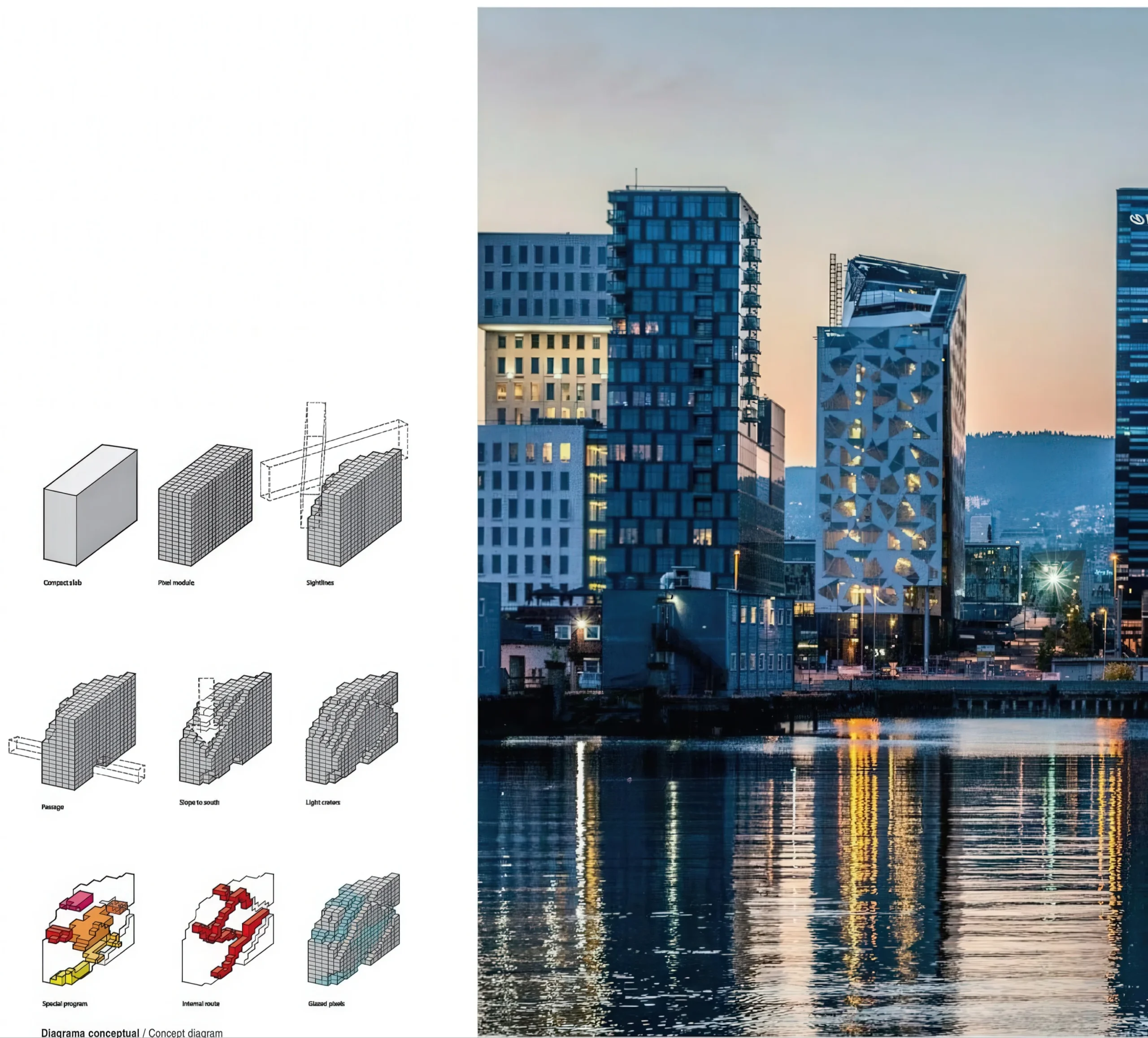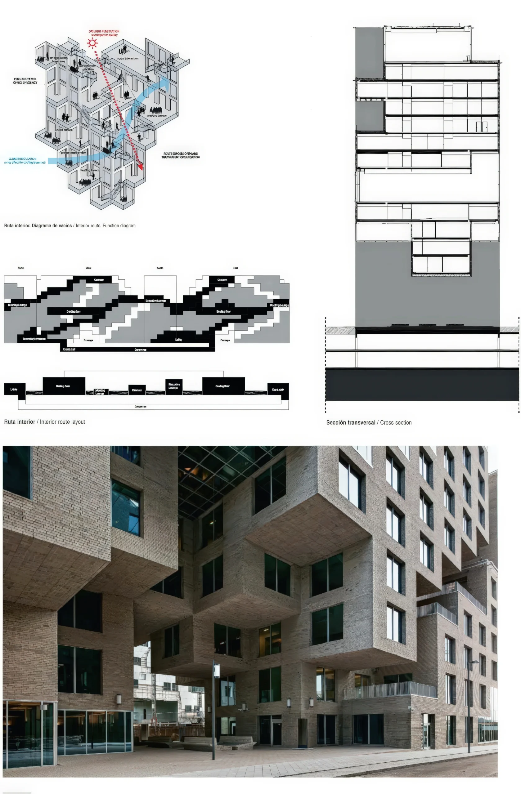 DNB总部大厦,中央大楼 / DNB Headquarters, Central Building | MVRDV 建筑事务所 MVRDV • 2025-11-09 上午8:50 • 公共建筑设计, 建筑师设计, 建筑设计, 文化建筑设计 DNB总部大厦中央大楼由MVRDV建筑事务所设计,位于挪威奥斯陆,是一座现代化办公建筑。项目通过像素化设计概念整合银行分散的办公空间,创造高效协作环境,同时建立清晰的机构身份认同。 设计: MVRDV 类型: 文化建筑设计 功能: 办公楼 风格: 当代建筑 材料: 钢材 玻璃 砖材 尺度: 大型建筑 地点:奥斯陆 时间: 2013年 项目概述 DNB总部大厦中央大楼位于挪威奥斯陆,是一座大型办公建筑,由MVRDV建筑事务所设计。项目将挪威银行原先分散在城市各处的办公空间集中整合,创造协同效应和明确的机构身份。建筑采用创新的像素化设计策略,提供超过2000个灵活工作空间。 设计理念 设计核心是将银行的社会性和民主性特征转化为建筑语言,通过6×6米的工作单元像素网格系统,实现空间的高度适应性和灵活性。像素化设计既保证了建筑效率,又能针对城市文脉做出具体回应,将通用性转化为独特性。 空间与功能 建筑包含17层办公空间,通过一条连续的内部路径连接所有公共区域。这条蜿蜒上升的路线设有木质楼梯和桥梁,连接着非正式会议区、阅读室、休息区和壁炉等社交空间。顶层设有可容纳140人的全景餐厅、行政休息室、董事会会议室,以及拥有250个工作站的交易大厅。 材料与技术 建筑采用钢结构框架外包砖材表皮,所有外部露台、墙壁和天花板均使用砖材覆盖,既符合挪威环保标准,又赋予建筑人性化尺度。高性能玻璃幕墙系统适应挪威寒冷冬季,同时提供自然通风。 项目特色与启发 DNB总部大厦中央大楼展示了如何通过创新的像素化设计策略,将大型办公建筑转化为促进员工交流和协作的活力空间。项目在标准化与个性化、效率与人性化之间找到了平衡,为当代办公建筑设计提供了重要参考。 设计团队 MVRDV建筑事务所是荷兰知名建筑设计事务所,以创新性和研究导向的设计方法著称。事务所在城市规划、建筑设计和景观设计领域具有丰富经验,擅长通过数据驱动和概念性思考创造独特的建筑解决方案。 项目概述 DNB总部大厦中央大楼位于挪威奥斯陆,是一座大型办公建筑,由MVRDV建筑事务所设计。项目将挪威银行原先分散在城市各处的办公空间集中整合,创造协同效应和明确的机构身份。建筑采用创新的像素化设计策略,提供超过2000个灵活工作空间。 设计理念 设计核心是将银行的社会性和民主性特征转化为建筑语言,通过6×6米的工作单元像素网格系统,实现空间的高度适应性和灵活性。像素化设计既保证了建筑效率,又能针对城市文脉做出具体回应,将通用性转化为独特性。 空间与功能 建筑包含17层办公空间,通过一条连续的内部路径连接所有公共区域。这条蜿蜒上升的路线设有木质楼梯和桥梁,连接着非正式会议区、阅读室、休息区和壁炉等社交空间。顶层设有可容纳140人的全景餐厅、行政休息室、董事会会议室,以及拥有250个工作站的交易大厅。 材料与技术 建筑采用钢结构框架外包砖材表皮,所有外部露台、墙壁和天花板均使用砖材覆盖,既符合挪威环保标准,又赋予建筑人性化尺度。高性能玻璃幕墙系统适应挪威寒冷冬季,同时提供自然通风。 项目特色与启发 DNB总部大厦中央大楼展示了如何通过创新的像素化设计策略,将大型办公建筑转化为促进员工交流和协作的活力空间。项目在标准化与个性化、效率与人性化之间找到了平衡,为当代办公建筑设计提供了重要参考。 设计团队 MVRDV建筑事务所是荷兰知名建筑设计事务所,以创新性和研究导向的设计方法著称。事务所在城市规划、建筑设计和景观设计领域具有丰富经验,擅长通过数据驱动和概念性思考创造独特的建筑解决方案。 本文来自 © MVRDV, 发布于 © 建筑学院官方网站。 未经授权,禁止转载或摘编。 编辑版本版权归 © 建筑学院官方网站 所有, 设计、图纸及照片版权归设计方 © MVRDV ↗ 所有。 查看作者在建筑学院发布的更多作品: MVRDV @ 建筑学院官方网站 DNB HeadquartersMVRDV办公建筑设计奥斯陆办公建筑 MVRDV事务所 & 设计师 下载原图 收藏 0 关于作者 MVRDV事务所 & 设计师 关注私信 17 文章 0 评论 0 粉丝 加州大学洛杉矶分校马戈雷文研究生艺术工作室 / UCLA Margo Leavin Graduate Art Studios | MARKLEE 建筑事务所 上一篇 2025-11-08 上午8:50 广州博物馆 Guangzhou Museum | 拉卡东与瓦萨尔建筑师事务所|Lacaton & Vassal 下一篇 2025-11-09 下午12:50 猜你喜欢 大运河未来艺术科技中心 / MVRDV 2023-05-19 公共建筑设计 鹿特丹博伊曼斯· 范· 伯宁恩博物馆 / MVRDV 2020-09-30 公共建筑设计 王开:从OMA到JOA, 以讲故事的方式审视空间 2019-04-11 建筑设计 天津滨海图书馆 / MVRDV + 天津城市规划设计院 2017-11-14 文化建筑设计 台南河乐广场——老商场改造激发城区活力 / MVRDV 2020-03-16 广场景观设计 EDP集团总部大楼 / EDP Group Head Office | 艾雷斯·马特乌斯建筑事务所|Aires Mateus 2025-11-11 公共建筑设计 发表回复 请登录后评论...登录后才能评论 提交
