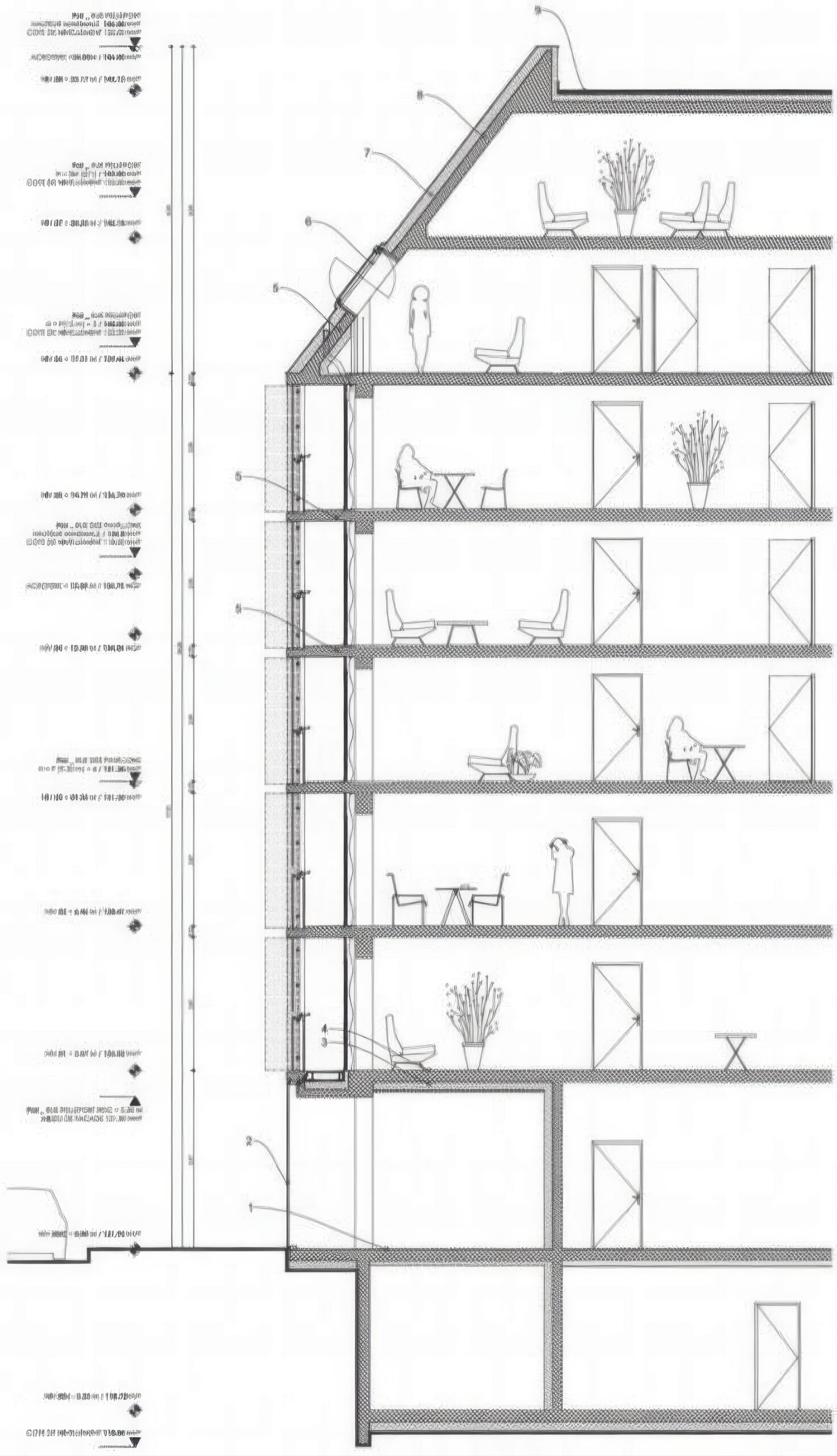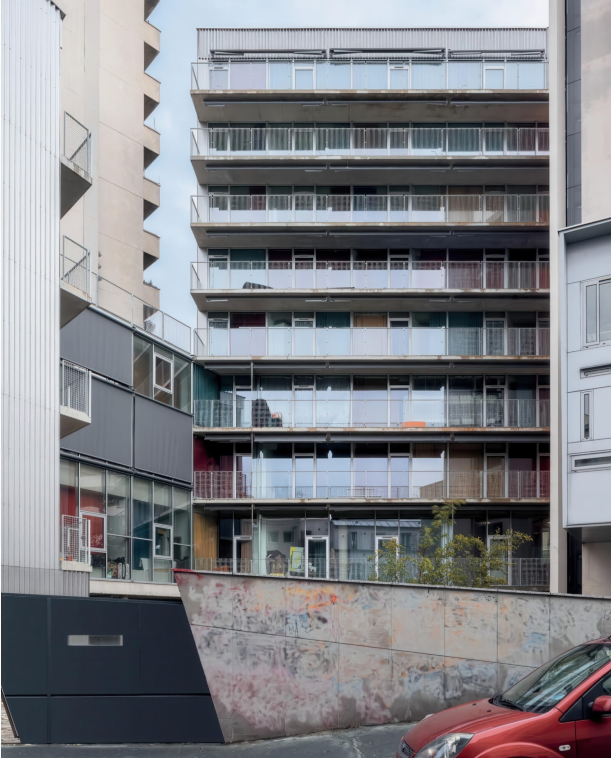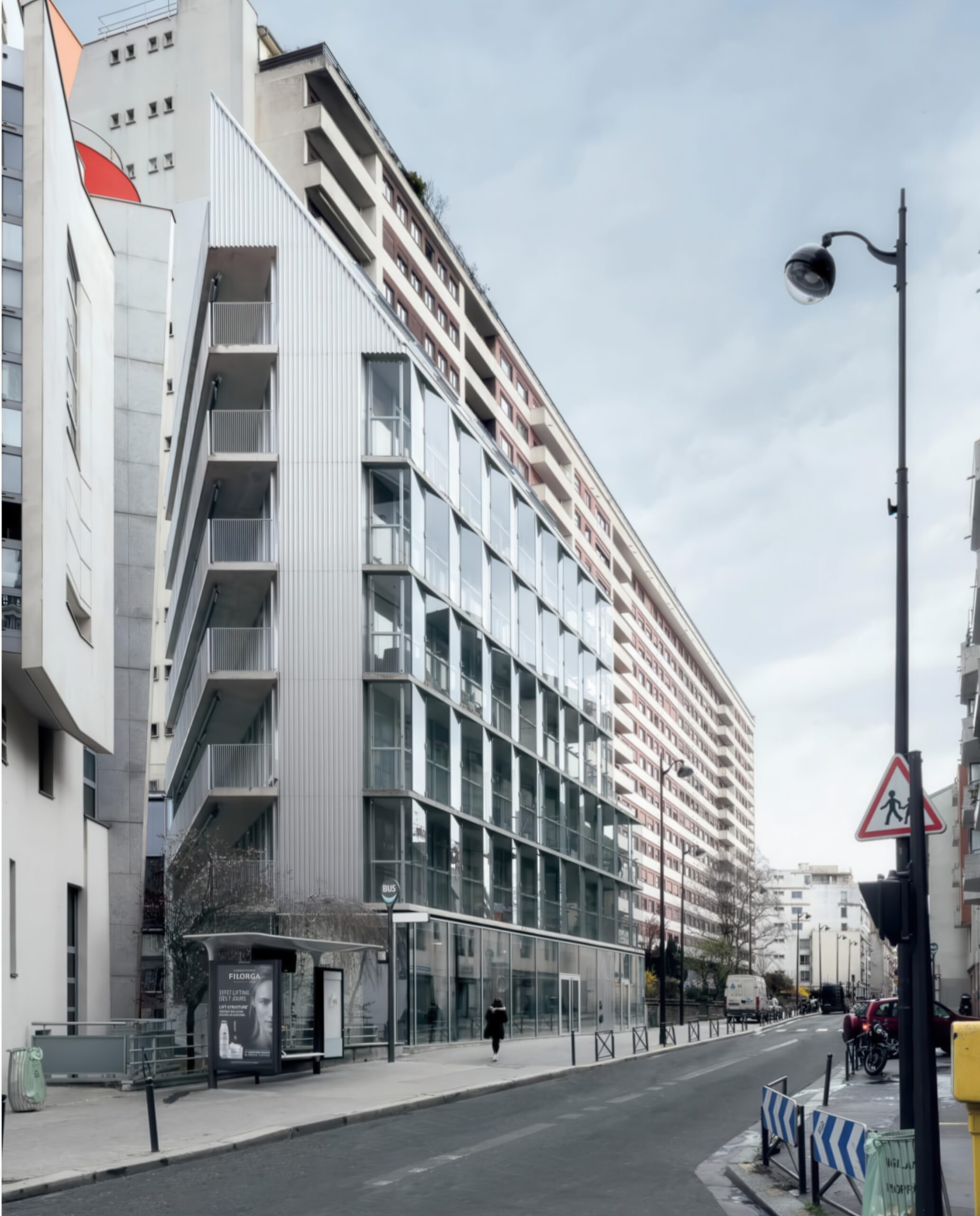 巴黎25户住房项目 25 Housing Units in Paris | 布鲁瑟建筑事务所|Bruther 布鲁瑟建筑事务所|Bruther • 2025-11-11 上午10:30 • 公共建筑设计, 建筑师设计, 建筑设计, 文化建筑设计 巴黎25户住房项目由布鲁瑟建筑事务所设计,位于法国巴黎第20区。该项目巧妙应对复杂城市地形,通过两个不同高度的体量连接Pelleport街和Pavillons街。设计采用玻璃幕墙、清水混凝土和阳极氧化铝板等材料,创造具有丰富朝向和巴黎城市景观视野的穿堂公寓,展现了现代住宅建筑的创新解决方案。 设计: 布鲁瑟建筑事务所|Bruther 类型: 文化建筑设计 功能: 公寓住宅 风格: 当代建筑 材料: 混凝土 玻璃 尺度: 中型建筑 地点:巴黎 时间: 2014年 项目简介 巴黎25户住房项目位于法国巴黎第20区,是一座集合住宅建筑,建筑面积约2500平方米,于2016年设计建成。 设计理念 布鲁瑟建筑事务所针对连接两条街道的复杂地形,采用梯形和三角形体量回应城市退线和对齐要求,创造双重立面表情:面向主街的统一立面与面向次街的宁静花园。 空间与功能 项目由七层和四层两个体量组成,所有公寓均为穿堂式布局,拥有多朝向和开阔视野。东侧双层玻璃立面面向内部花园,西侧线性阳台俯瞰巴黎城市景观,空间组织兼顾采光与隐私。 材料与技术 采用玻璃幕墙、清水混凝土楼板边缘和阳极氧化铝板山墙覆层,通过双层玻璃厚度和阳台阴影提供视觉保护,室内配有色泽窗帘增强居住私密性。 设计团队 布鲁瑟建筑事务所由Stéphanie Bru和Alexandre Theriot创立,以严谨的城市分析和创新的建筑语言著称,专注于公共建筑和住宅项目,擅长在复杂城市环境中创造高质量空间。 项目简介 巴黎25户住房项目位于法国巴黎第20区,是一座集合住宅建筑,建筑面积约2500平方米,于2016年设计建成。 设计理念 布鲁瑟建筑事务所针对连接两条街道的复杂地形,采用梯形和三角形体量回应城市退线和对齐要求,创造双重立面表情:面向主街的统一立面与面向次街的宁静花园。 空间与功能 项目由七层和四层两个体量组成,所有公寓均为穿堂式布局,拥有多朝向和开阔视野。东侧双层玻璃立面面向内部花园,西侧线性阳台俯瞰巴黎城市景观,空间组织兼顾采光与隐私。 材料与技术 采用玻璃幕墙、清水混凝土楼板边缘和阳极氧化铝板山墙覆层,通过双层玻璃厚度和阳台阴影提供视觉保护,室内配有色泽窗帘增强居住私密性。 设计团队 布鲁瑟建筑事务所由Stéphanie Bru和Alexandre Theriot创立,以严谨的城市分析和创新的建筑语言著称,专注于公共建筑和住宅项目,擅长在复杂城市环境中创造高质量空间。 本文来自 © 布鲁瑟建筑事务所|Bruther, 发布于 © 建筑学院官方网站。 未经授权,禁止转载或摘编。 编辑版本版权归 © 建筑学院官方网站 所有, 设计、图纸及照片版权归设计方 © 布鲁瑟建筑事务所|Bruther ↗ 所有。 查看作者在建筑学院发布的更多作品: 布鲁瑟建筑事务所|Bruther @ 建筑学院官方网站 巴黎25户住房巴黎住宅布鲁瑟建筑事务所玻璃幕墙集合住宅 布鲁瑟建筑事务所|Bruther事务所 & 设计师 下载原图 收藏 0 关于作者 布鲁瑟建筑事务所|Bruther事务所 & 设计师 关注私信 20 文章 0 评论 1 粉丝 布鲁瑟建筑事务所(Bruther)由亚历克西斯·博德与斯蒂芬妮·布鲁诺创立于巴黎,是当代极具前瞻性的先锋建筑团队。他们以“动态功能”与“空间灵活性”为核心,作品横跨文化、教育及研究建筑领域,以前瞻性思维与技术精确性,创造出开放、适应性强且充满张力的建筑,持续拓展建筑实践的边界,重新定义当代建筑语言。 圣埃斯特拉山的温泉 / Thermal Baths in Serra da Estrela | 艾雷斯·马特乌斯建筑事务所 上一篇 2025-11-11 上午8:50 “景镇融合”魔鬼城-西部乌镇2025首届艺术装置设计大赛 | 竞赛 下一篇 2025-11-11 下午12:00 猜你喜欢 法国图尔国家舞蹈编导中心 National Choreographic Centre of Tours | 布鲁瑟建筑事务所|Bruther 2025-11-20 公共建筑设计 Blaise Blaise | 布鲁瑟建筑事务所|Bruther 2025-11-20 公共建筑设计 Lormont Housing, Bordeaux | 让·努维尔建筑事务所|Jean Nouvel 2025-12-05 公共建筑设计 勒哈弗多功能社会文化体育设施 Multifunction Sociocultural and Sports Facility, Le Havre | 布鲁瑟建筑事务所|Bruther 2025-11-24 公共建筑设计 蒙彼利埃市政厅 City Hall, Montpellier | 让·努维尔建筑事务所|Jean Nouvel 2025-11-22 公共建筑设计 上海浦东嘉华E18创新住宅 / EID Arch + 上海天华建筑设计 + Aedas 2023-10-16 住宅建筑设计 发表回复 请登录后评论...登录后才能评论 提交