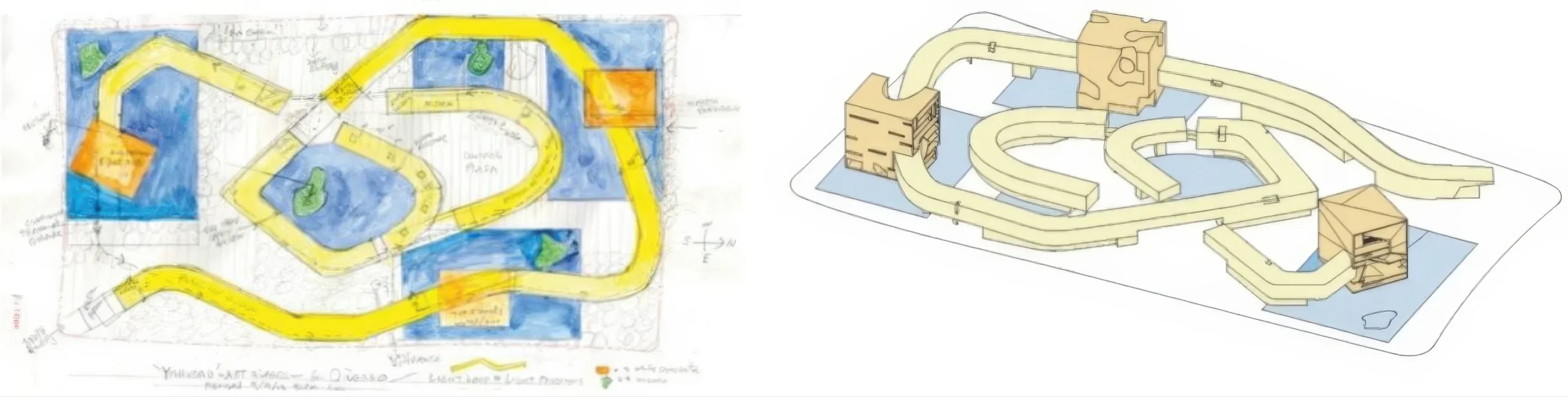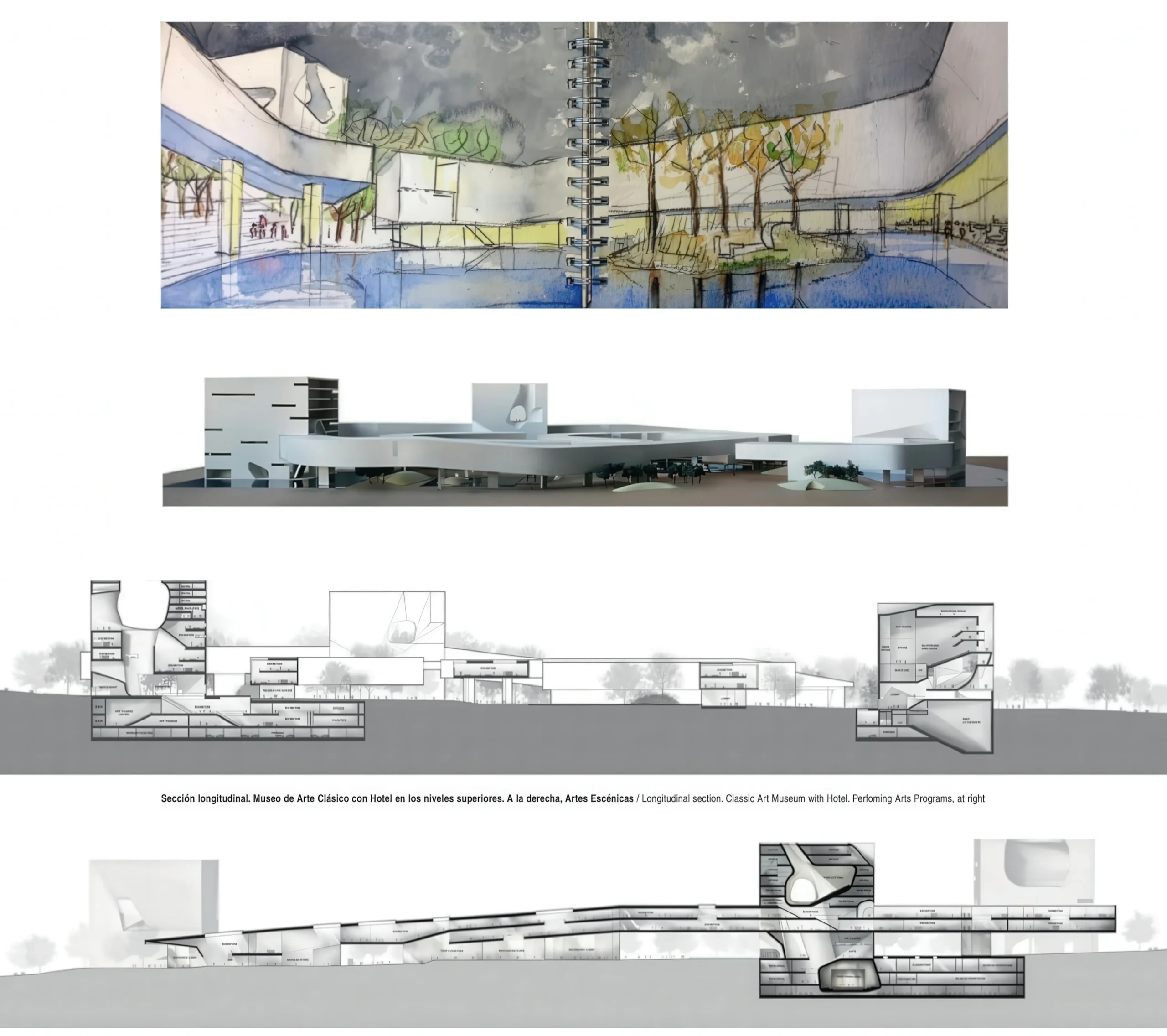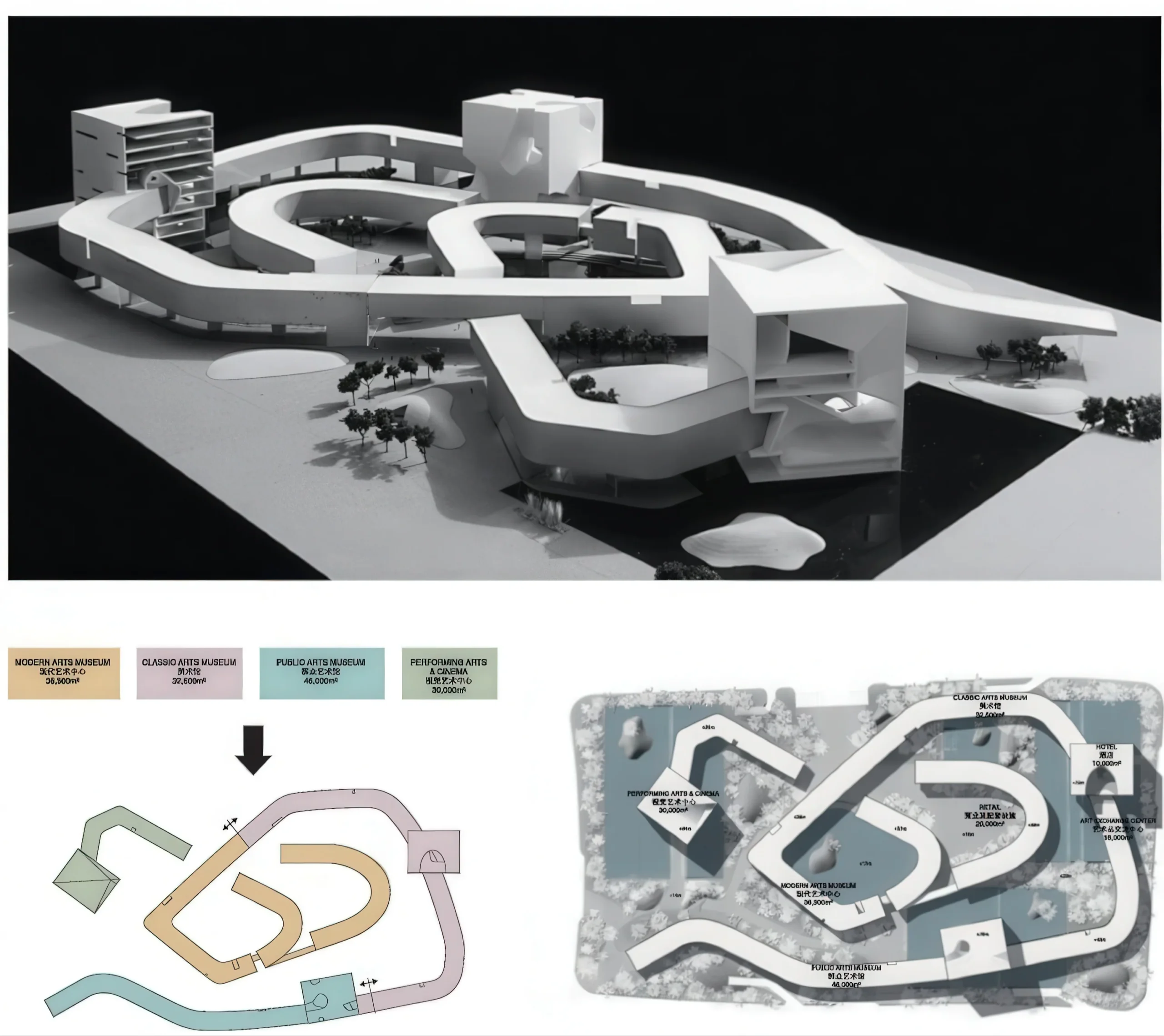 青岛文化艺术中心 / Qingdao Culture and Art Center | 霍尔 Steven Holl 霍尔 | Steven Holl Architects • 2025-11-11 下午12:50 • 公共建筑设计, 建筑师设计, 建筑设计, 文化建筑设计 青岛文化艺术中心由霍尔 Steven Holl 建筑事务所设计,位于中国青岛,是一座集现代艺术博物馆、古典艺术博物馆、表演艺术空间与酒店功能于一体的文化建筑群。项目以”光之环”和”艺术岛”为核心概念,通过抬高的环形画廊连接各功能体量,创造流动的公共空间与自然通风路径。 设计: 霍尔 | Steven Holl Architects 类型: 文化建筑设计 功能: 文化中心 风格: 当代建筑 材料: 混凝土 钢材 玻璃 金属板 尺度: 大型建筑 地点:青岛 时间: 2013年 项目概述 青岛文化艺术中心位于中国青岛,是一座综合性文化建筑群,包含现代艺术博物馆、古典艺术博物馆、表演艺术空间及酒店功能。项目由霍尔 Steven Holl 建筑事务所设计,自2013年起规划建设,占地面积广阔,通过”光之环”与”艺术岛”的概念组织空间结构。 设计理念 设计灵感源自青岛胶州湾大桥的线性形态,将其延伸至场地形成”光之环”概念。这一抬高的环形画廊不仅连接各展览空间,更将景观与公共空间融为一体,借鉴中国传统园林的空间策略,创造充满惊喜的游览体验。艺术岛以三个雕塑立方体形态嵌入环内,呼应中国古代建筑的多彩意境。 空间与功能 项目以中央广场和水景花园为核心,四周分布四大主要功能体量。北侧艺术岛容纳古典艺术博物馆与酒店,南侧艺术岛悬浮于反射池上承载表演艺术功能,现代艺术博物馆界定中央广场边界,公共艺术博物馆形成南侧主入口体验。20米宽的光之环画廊提供双向流线,避免尽端式交通。 材料与技术 建筑主体采用染色混凝土与磨砂船用铝板的单色组合,光之环底面则运用中国古代建筑丰富的多色彩装饰。项目采用多项可持续技术:光伏电池满足80%电力需求,地热井提供供暖制冷,回收水用于反射池系统,透水铺装与植被覆盖保持场地生态性能。 项目特色与启发 青岛文化艺术中心通过建筑与景观的深度融合,重新定义了文化建筑的公共性。其”光之环”概念不仅创造了独特的空间体验,更通过可持续技术实现了环境友好设计,为当代文化建筑提供了将传统元素与现代技术相结合的创新范例。 设计团队 霍尔 Steven Holl 建筑事务所以其对光线、空间与场所精神的独特探索闻名,作品涵盖文化、教育、住宅等多个领域。事务所在每个项目中都致力于创造与场地特征深度对话的建筑表达,在青岛文化艺术中心项目中成功实现了西方现代建筑语言与中国传统园林智慧的融合。 项目概述 青岛文化艺术中心位于中国青岛,是一座综合性文化建筑群,包含现代艺术博物馆、古典艺术博物馆、表演艺术空间及酒店功能。项目由霍尔 Steven Holl 建筑事务所设计,自2013年起规划建设,占地面积广阔,通过”光之环”与”艺术岛”的概念组织空间结构。 设计理念 设计灵感源自青岛胶州湾大桥的线性形态,将其延伸至场地形成”光之环”概念。这一抬高的环形画廊不仅连接各展览空间,更将景观与公共空间融为一体,借鉴中国传统园林的空间策略,创造充满惊喜的游览体验。艺术岛以三个雕塑立方体形态嵌入环内,呼应中国古代建筑的多彩意境。 空间与功能 项目以中央广场和水景花园为核心,四周分布四大主要功能体量。北侧艺术岛容纳古典艺术博物馆与酒店,南侧艺术岛悬浮于反射池上承载表演艺术功能,现代艺术博物馆界定中央广场边界,公共艺术博物馆形成南侧主入口体验。20米宽的光之环画廊提供双向流线,避免尽端式交通。 材料与技术 建筑主体采用染色混凝土与磨砂船用铝板的单色组合,光之环底面则运用中国古代建筑丰富的多色彩装饰。项目采用多项可持续技术:光伏电池满足80%电力需求,地热井提供供暖制冷,回收水用于反射池系统,透水铺装与植被覆盖保持场地生态性能。 项目特色与启发 青岛文化艺术中心通过建筑与景观的深度融合,重新定义了文化建筑的公共性。其”光之环”概念不仅创造了独特的空间体验,更通过可持续技术实现了环境友好设计,为当代文化建筑提供了将传统元素与现代技术相结合的创新范例。 设计团队 霍尔 Steven Holl 建筑事务所以其对光线、空间与场所精神的独特探索闻名,作品涵盖文化、教育、住宅等多个领域。事务所在每个项目中都致力于创造与场地特征深度对话的建筑表达,在青岛文化艺术中心项目中成功实现了西方现代建筑语言与中国传统园林智慧的融合。 本文来自 © 霍尔 | Steven Holl Architects, 发布于 © 建筑学院官方网站。 未经授权,禁止转载或摘编。 编辑版本版权归 © 建筑学院官方网站 所有, 设计、图纸及照片版权归设计方 © 霍尔 | Steven Holl Architects ↗ 所有。 查看作者在建筑学院发布的更多作品: 霍尔 | Steven Holl Architects @ 建筑学院官方网站 Aires MateusQingdao Culture and Art Center文化建筑设计霍尔 Steven Holl青岛文化建筑 霍尔 | Steven Holl Architects事务所 & 设计师 下载原图 收藏 0 关于作者 霍尔 | Steven Holl Architects事务所 & 设计师 关注私信 22 文章 0 评论 0 粉丝 史蒂文·霍尔建筑事务所(Steven Holl Architects)是一家国际知名的建筑设计公司,以光线与空间的创新运用著称。代表作品包括堪萨斯城艺术博物馆扩建与北京Linked Hybrid等。 “景镇融合”魔鬼城-西部乌镇2025首届