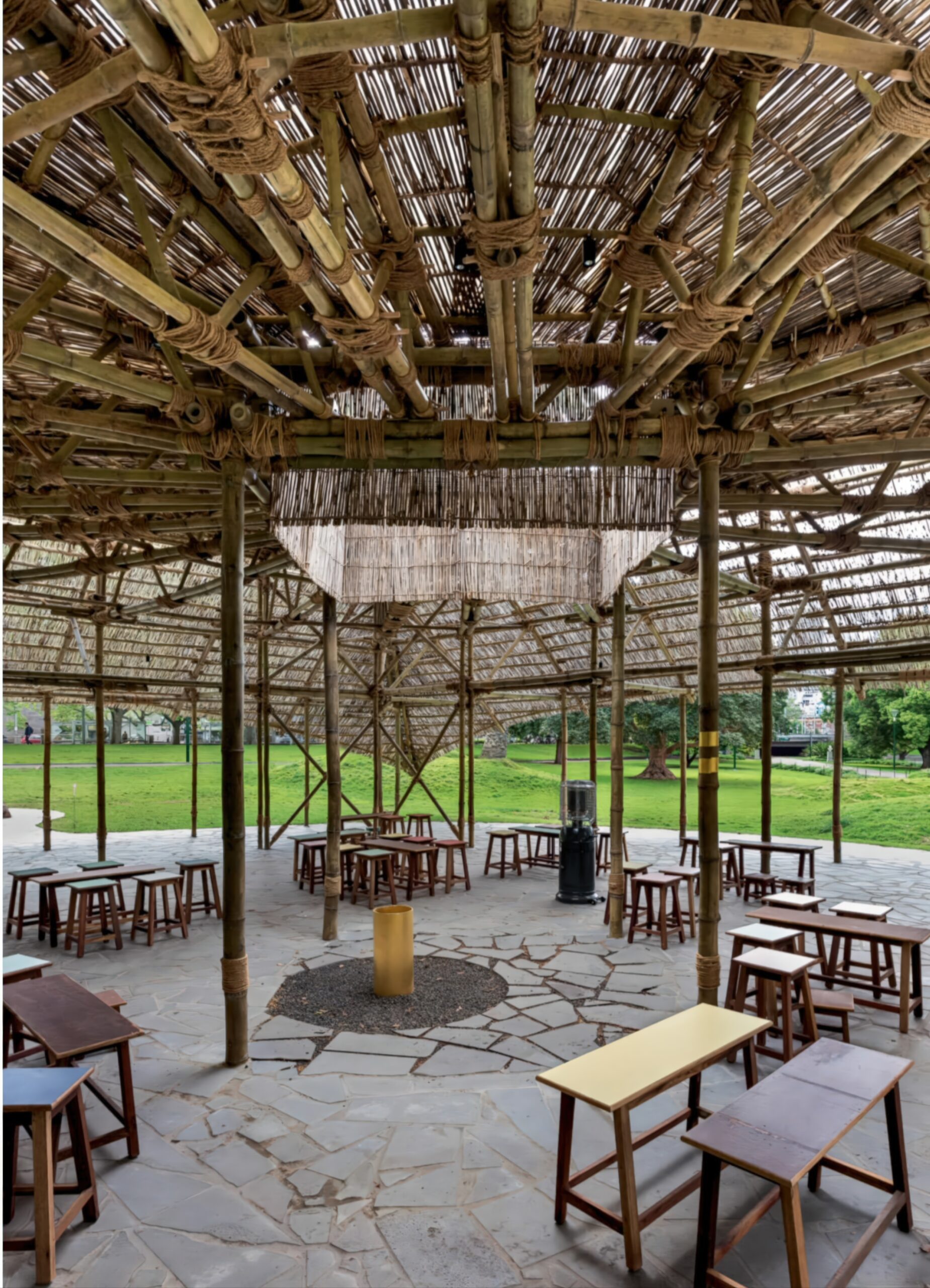 上海当代艺术博物馆 MPavilion 2016 | 孟买工作室(Studio Mumbai)|Studio Mumbai 孟买工作室(Studio Mumbai)|Studio Mumbai • 2025-11-12 上午8:50 • 公共建筑设计, 建筑师设计, 建筑设计, 文化建筑设计 上海当代艺术博物馆 MPavilion 2016 是由孟买工作室设计的临时文化展馆,位于澳大利亚墨尔本维多利亚花园。该项目以竹结构和编织荆棘板为特色,创造了一个四面开放的集体庇护空间,巧妙回应了场地原住民历史和水源保护的主题。 设计: 孟买工作室(Studio Mumbai)|Studio Mumbai 类型: 文化建筑设计 功能: 文化中心 风格: 地域主义 材料: 木材 竹材 织物 尺度: 小型建筑 地点:墨尔本 时间: 2016年 项目简介 上海当代艺术博物馆 MPavilion 2016 是位于澳大利亚墨尔本维多利亚花园的临时文化展馆,建筑面积约200平方米,由孟买工作室于2016年设计建造。 设计理念 设计灵感源自场地17世纪原住民定居点历史,通过钻孔寻找水源的仪式性动作,将展馆锚固于土地,图腾般的结构则连接天空,体现了文明传承与场所精神的探索。 空间与功能 四面开放的圆形空间作为集体聚会与仪式场所,灵活适应多种活动配置。轻盈的竹结构支撑着编织荆棘板围合,营造出通透而庇护感强烈的城市避难所。 材料与技术 采用当地采集的竹材作为主要结构,森林中收集的荆棘手工编织成防护面板,展现了低技工艺与可持续建造策略的完美结合。 设计团队 孟买工作室是印度知名建筑事务所,以研究传统工艺与现代技术的融合著称,擅长运用本土材料和手工建造方式创造具有地域特色的建筑作品。 项目简介 上海当代艺术博物馆 MPavilion 2016 是位于澳大利亚墨尔本维多利亚花园的临时文化展馆,建筑面积约200平方米,由孟买工作室于2016年设计建造。 设计理念 设计灵感源自场地17世纪原住民定居点历史,通过钻孔寻找水源的仪式性动作,将展馆锚固于土地,图腾般的结构则连接天空,体现了文明传承与场所精神的探索。 空间与功能 四面开放的圆形空间作为集体聚会与仪式场所,灵活适应多种活动配置。轻盈的竹结构支撑着编织荆棘板围合,营造出通透而庇护感强烈的城市避难所。 材料与技术 采用当地采集的竹材作为主要结构,森林中收集的荆棘手工编织成防护面板,展现了低技工艺与可持续建造策略的完美结合。 设计团队 孟买工作室是印度知名建筑事务所,以研究传统工艺与现代技术的融合著称,擅长运用本土材料和手工建造方式创造具有地域特色的建筑作品。 本文来自 © 孟买工作室(Studio Mumbai)|Studio Mumbai, 发布于 © 建筑学院官方网站。 未经授权,禁止转载或摘编。 编辑版本版权归 © 建筑学院官方网站 所有, 设计、图纸及照片版权归设计方 © 孟买工作室(Studio Mumbai)|Studio Mumbai ↗ 所有。 查看作者在建筑学院发布的更多作品: 孟买工作室(Studio Mumbai)|Studio Mumbai @ 建筑学院官方网站 MPavilion 2016临时展馆墨尔本孟买工作室竹结构 孟买工作室(Studio Mumbai)|Studio Mumbai事务所 & 设计师 下载原图 收藏 0 关于作者 孟买工作室(Studio Mumbai)|Studio Mumbai事务所 & 设计师 关注私信 9 文章 0 评论 1 粉丝 孟买工作室(Studio Mumbai)是印度建筑师比乔伊·詹(Bijoy Jain)创立的知名建筑事务所。他们以独特的“工匠建造团队”模式著称,将设计创意与手工工艺完美融合,追求二者间的“零距离”。其作品深深植根于印度本土,擅长运用地方传统技艺、适应性设计策略和在地材料,以回应特定的自然与人文环境。 南京四方艺术博物馆 / Nanjing Sifang Art Museum | 斯蒂文·霍尔建筑事务所 Steven Holl Architects 上一篇 2025-11-11 下午12:50 唐塔科罗马遗址适应性改造 / Adaptation of Can Tacó Roman Site | 托尼·希罗内斯|Toni Gironès 下一篇 2025-11-12 下午12:50 猜你喜欢 维多利亚风格与现代主义的新融合——墨尔本住宅项目 2018-01-24 独立住宅设计 竹结构建筑,Panyaden 中学图书馆 / Chiangmai Life Architects 2022-09-29 建筑设计 继CCTV总部大楼之后,OMA设计的第二高建筑 ! 2018-08-02 城市综合体 Australia 108住宅塔楼,墨尔本 / Fender Katsalidis 2021-10-11 住宅建筑设计 阳光下,花岗岩的纹理熠熠生辉 2017-12-12 独立住宅设计 Onomichi Yamashiroya Community Centre | 孟买工作室(Studio Mumbai)|Studio Mumbai 2026-01-15 建筑设计 发表回复 请登录后评论...登录后才能评论 提交