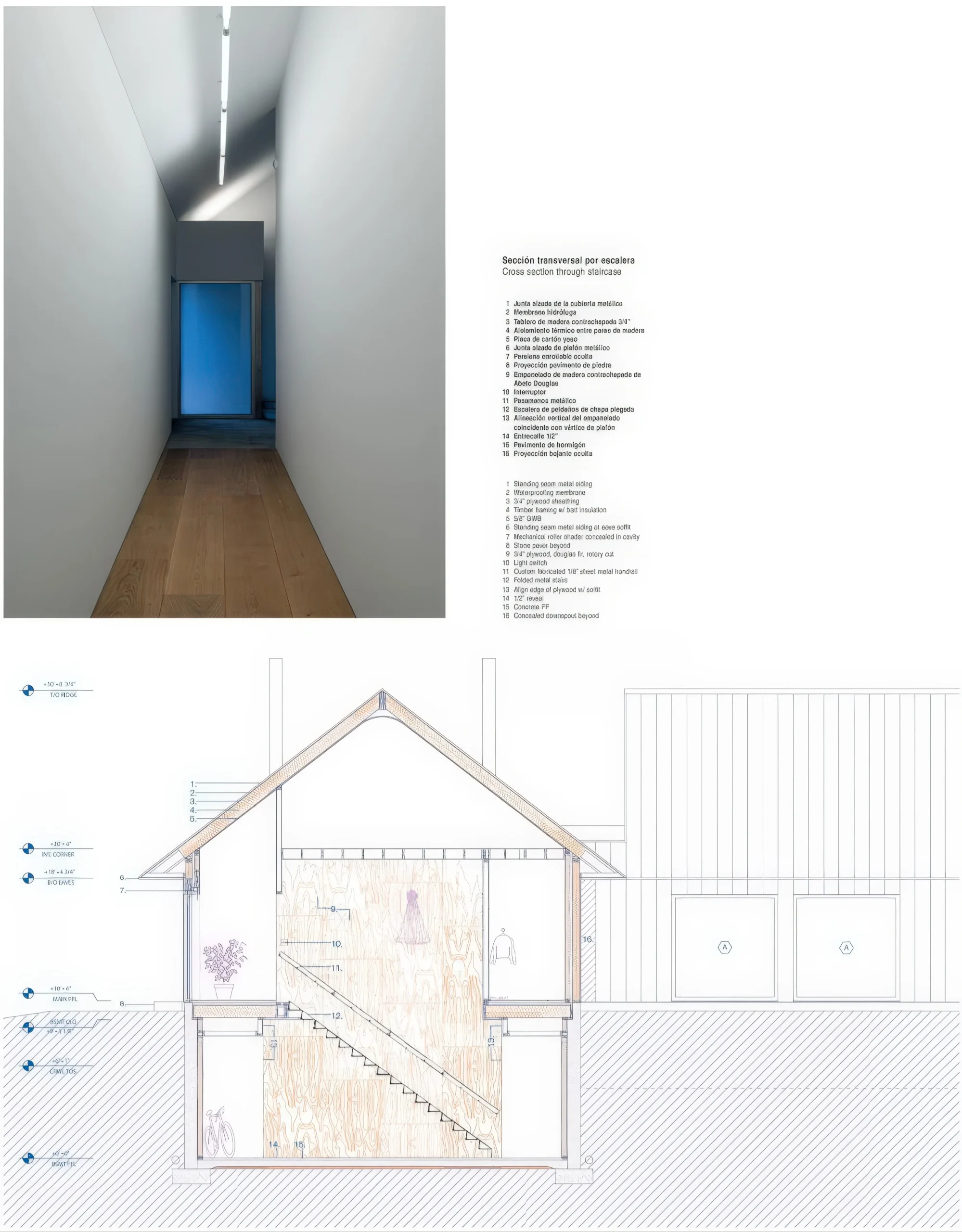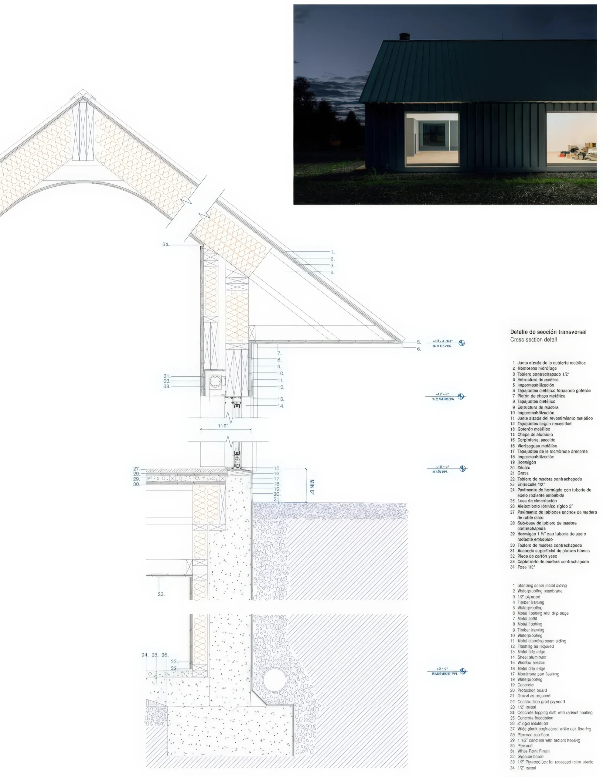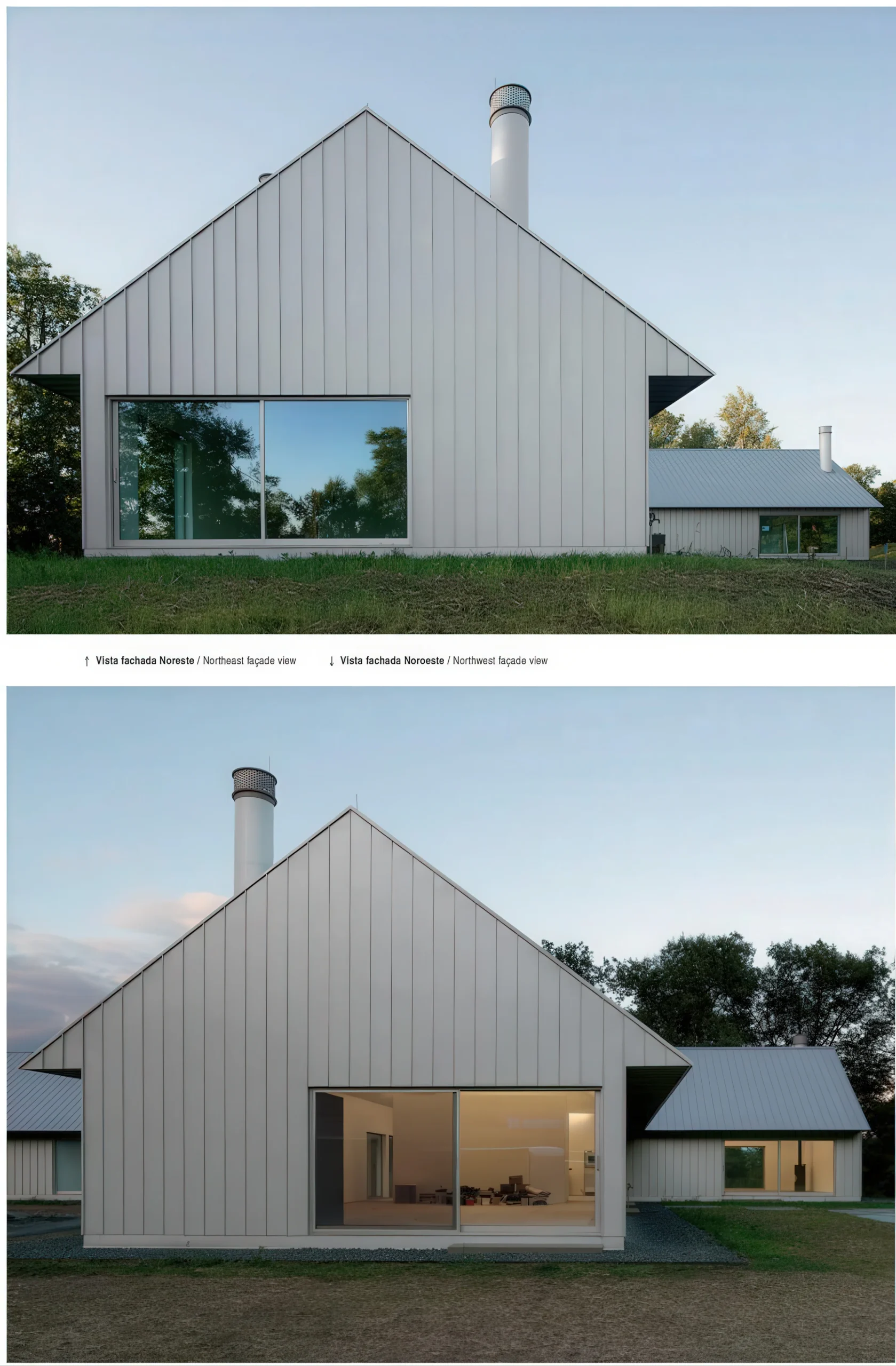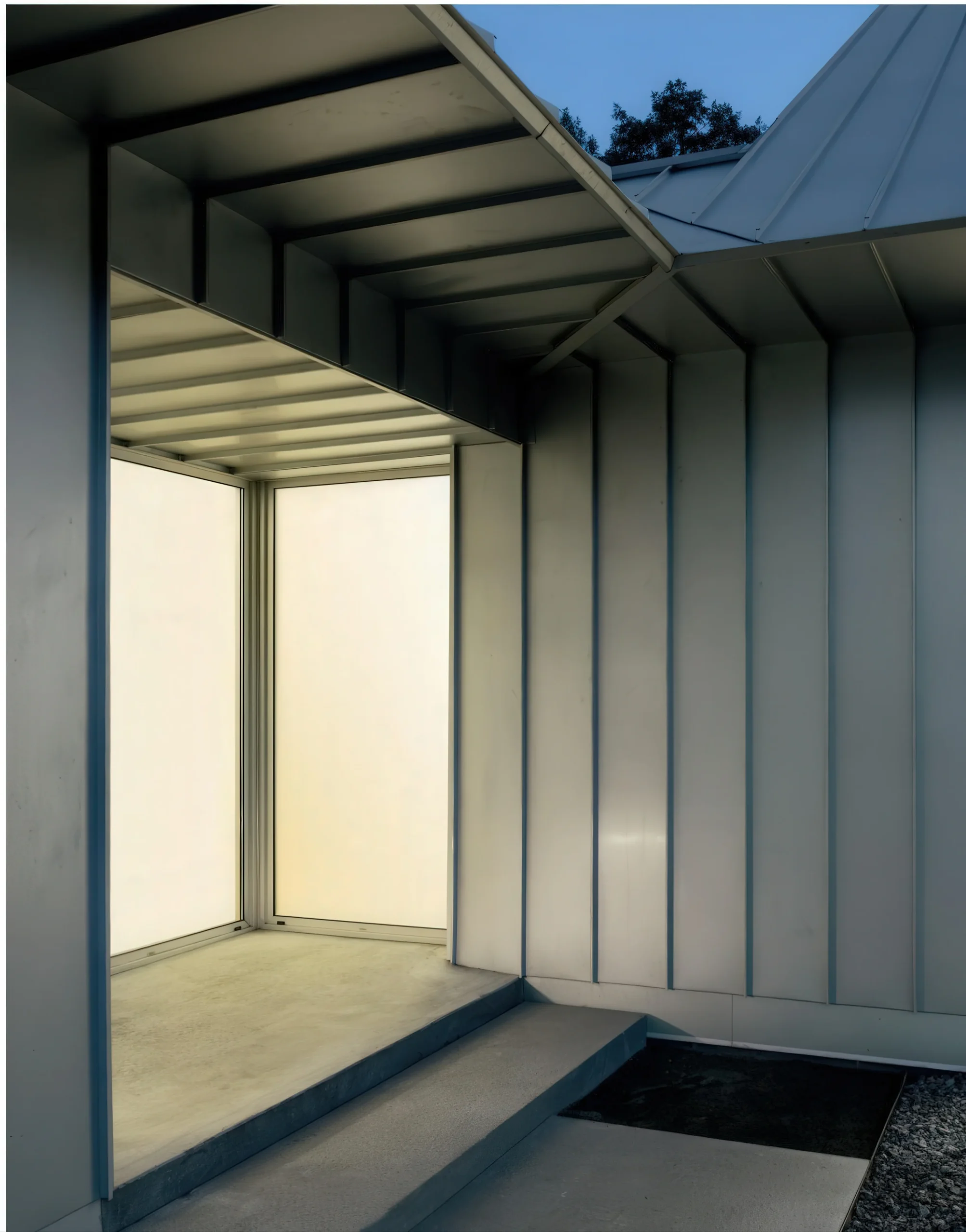 艺术家之家No.7号房 / House No.7, Artist’s House | +MOS 建筑事务所 MOS 建筑事务所|MOS • 2025-11-15 下午12:50 • 公共建筑设计, 建筑师设计, 建筑设计, 文化建筑设计 艺术家之家No.7号房由+MOS建筑事务所设计,是一座位于自然景观中的单层独立住宅。建筑采用T形布局,以镀锌钢板覆层和双坡屋顶为特色,创造与景观紧密相连的流动空间体验。 设计: MOS 建筑事务所|MOS 类型: 文化建筑设计 功能: 独立住宅 风格: 现代主义 材料: 钢材 金属板 尺度: 小型建筑 地点:加拿大 时间: 2011年 项目概述 艺术家之家No.7号房是+MOS建筑事务所设计的单层独立住宅项目,建筑采用T形平面布局,以镀锌钢板覆层和双坡屋顶为特色,营造与自然环境紧密融合的居住体验。 设计理念 +MOS建筑事务所以两个传统双坡屋顶体量的垂直组合形成T形结构,通过工业化的镀锌钢板覆层与自然环境建立非正式但紧密的联系,创造既私密又开阔的景观视野。 空间与功能 建筑的长翼容纳私密功能区,短翼作为主要起居和用餐空间。室内采用连续流动的空间组织,插入低矮的独立体量容纳卧室和卫生间,形成开放而分层的空间体验。 材料与技术 项目采用工业化的镀锌钢板立缝覆层系统,方形开口精准地提供采光、通风和出入口。结构体系简洁明了,材料选择强调耐久性与场地特征的呼应。 项目特色与启发 艺术家之家No.7号房展示了如何通过简单的几何形式和工业材料创造丰富的空间体验,为小型住宅设计提供了将建筑与景观融为一体的创新思路。 设计团队 +MOS建筑事务所专注于建筑设计与研究,以其对材料、形式和空间的独特理解而闻名,在住宅和文化建筑领域有着丰富的实践经验。 项目概述 艺术家之家No.7号房是+MOS建筑事务所设计的单层独立住宅项目,建筑采用T形平面布局,以镀锌钢板覆层和双坡屋顶为特色,营造与自然环境紧密融合的居住体验。 设计理念 +MOS建筑事务所以两个传统双坡屋顶体量的垂直组合形成T形结构,通过工业化的镀锌钢板覆层与自然环境建立非正式但紧密的联系,创造既私密又开阔的景观视野。 空间与功能 建筑的长翼容纳私密功能区,短翼作为主要起居和用餐空间。室内采用连续流动的空间组织,插入低矮的独立体量容纳卧室和卫生间,形成开放而分层的空间体验。 材料与技术 项目采用工业化的镀锌钢板立缝覆层系统,方形开口精准地提供采光、通风和出入口。结构体系简洁明了,材料选择强调耐久性与场地特征的呼应。 项目特色与启发 艺术家之家No.7号房展示了如何通过简单的几何形式和工业材料创造丰富的空间体验,为小型住宅设计提供了将建筑与景观融为一体的创新思路。 设计团队 +MOS建筑事务所专注于建筑设计与研究,以其对材料、形式和空间的独特理解而闻名,在住宅和文化建筑领域有着丰富的实践经验。 本文来自 © MOS 建筑事务所|MOS, 发布于 © 建筑学院官方网站。 未经授权,禁止转载或摘编。 编辑版本版权归 © 建筑学院官方网站 所有, 设计、图纸及照片版权归设计方 © MOS 建筑事务所|MOS ↗ 所有。 查看作者在建筑学院发布的更多作品: MOS 建筑事务所|MOS @ 建筑学院官方网站 House No.7 Artist's HouseMOS建筑事务所单层住宅独立住宅设计 MOS 建筑事务所|MOS事务所 & 设计师 下载原图 收藏 0 关于作者 MOS 建筑事务所|MOS事务所 & 设计师 关注私信 12 文章 0 评论 0 粉丝 MOS建筑事务所是成立于纽约的知名建筑设计团队,以其研究性、协作性和概念前瞻性在当代建筑界独树一帜。他们的作品涵盖文化、教育及住宅领域,擅长通过独特的材料运用和构造逻辑,创造出既具实验精神又回应环境与功能的建筑。 克罗洛克图书馆 / De Krook Library | RCR 建筑事务所|RCR Arquitectes 上一篇 2025-11-15 上午8:50 伯格曼中心基金会 Bergman Center Foundation | 谭姆与维德高德建筑事务所|Tham & Videgård 下一篇 2025-11-16 上午8:50 猜你喜欢 Oyagi 住宅 / Oyagi House | SANAA 2026-02-08 住宅建筑设计 梅诺卡的Son Parc住宅 / Son Parc House in Menorca | RCR 建筑事务所|RCR Arquitectes 2025-11-19 公共建筑设计 马德雷德萨里亚街上的房子 / House on Major de Sarrià Street | HArquitectes 2026-01-03 住宅建筑设计 土胚房 / Hut House | MARKLEE 建筑事务所 2025-11-15 公共建筑设计 卡马之家和艾瓦哈之家 / Kama House and Alwah House | RCR 建筑事务所 2025-11-13 公共建筑设计 Velamsund 住宅 / House in Velamsund | Arrhov Frick 2026-01-23 建筑设计 发表回复 请登录后评论...登录后才能评论 提交