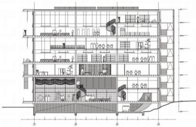 卢米埃大学Lyon 2大学校园学习中心 Learning Centre in Lumière Lyon 2 University campus | 布鲁瑟建筑事务所|Bruther 布鲁瑟建筑事务所|Bruther • 2025-11-23 上午10:50 • 公共建筑设计, 建筑师, 建筑设计, 文化建筑设计 卢米埃大学Lyon 2大学校园学习中心位于法国里昂大学校园核心区,由布鲁瑟建筑事务所设计。该项目采用简洁的平行六面体造型,通过透明玻璃幕墙展现内部活动活力。建筑巧妙利用地形高差,设置三层复式空间与夹层,提供灵活的学习与交流环境,成为连接校园与城市的重要枢纽。 设计: 布鲁瑟建筑事务所|Bruther 类型: 文化建筑设计 功能: 学校 风格: 当代建筑 材料: 混凝土 钢材 玻璃 金属板 尺度: 中型建筑 地点:法国 时间: 2018年 项目简介 卢米埃大学Lyon 2大学校园学习中心位于法国里昂大学校园核心区,是一座教育建筑,建筑面积未公开,设计于2018年竞赛中获胜。 设计理念 设计团队以简洁几何体量回应校园历史文脉,通过透明立面强化建筑与环境的对话。建筑顺应地形高差,创造多层次公共空间,促进学术交流与城市连接。 空间与功能 建筑包含三层复式空间与夹层,设有图书馆、协作学习区、实验教学空间、行政办公、咖啡厅及两个报告厅。空间组织灵活,动线清晰连接校园与城市入口。 材料与技术 采用混凝土框架结构(12×12米网格)、全玻璃幕墙、金属板覆面及聚碳酸酯面板。技术设备集中布置于西北侧,优化运营效率。 设计团队 布鲁瑟建筑事务所(Bruther)是法国知名建筑事务所,以简洁理性的设计语言、对公共建筑功能与形式的深入研究著称,作品注重空间灵活性与结构表达。 项目简介 卢米埃大学Lyon 2大学校园学习中心位于法国里昂大学校园核心区,是一座教育建筑,建筑面积未公开,设计于2018年竞赛中获胜。 设计理念 设计团队以简洁几何体量回应校园历史文脉,通过透明立面强化建筑与环境的对话。建筑顺应地形高差,创造多层次公共空间,促进学术交流与城市连接。 空间与功能 建筑包含三层复式空间与夹层,设有图书馆、协作学习区、实验教学空间、行政办公、咖啡厅及两个报告厅。空间组织灵活,动线清晰连接校园与城市入口。 材料与技术 采用混凝土框架结构(12×12米网格)、全玻璃幕墙、金属板覆面及聚碳酸酯面板。技术设备集中布置于西北侧,优化运营效率。 设计团队 布鲁瑟建筑事务所(Bruther)是法国知名建筑事务所,以简洁理性的设计语言、对公共建筑功能与形式的深入研究著称,作品注重空间灵活性与结构表达。 本文来自 © 布鲁瑟建筑事务所|Bruther, 发布于 © 建筑学院官方网站。 未经授权,禁止转载或摘编。 编辑版本版权归 © 建筑学院官方网站 所有, 设计、图纸及照片版权归设计方 © 布鲁瑟建筑事务所|Bruther ↗ 所有。 查看作者在建筑学院发布的更多作品: 布鲁瑟建筑事务所|Bruther @ 建筑学院官方网站 卢米埃大学学习中心布鲁瑟建筑事务所教育建筑混凝土结构里昂 布鲁瑟建筑事务所|Bruther事务所 & 设计师 下载原图 收藏 0 关于作者 布鲁瑟建筑事务所|Bruther事务所 & 设计师 关注私信 20 文章 0 评论 0 粉丝 布鲁瑟建筑事务所(Bruther)由亚历克西斯·博德与斯蒂芬妮·布鲁诺创立于巴黎,是当代极具前瞻性的先锋建筑团队。他们以“动态功能”与“空间灵活性”为核心,作品横跨文化、教育及研究建筑领域,以前瞻性思维与技术精确性,创造出开放、适应性强且充满张力的建筑,持续拓展建筑实践的边界,重新定义当代建筑语言。 100 11th Avenue Apartments in Chelsea | 让·努维尔建筑事务所|Jean Nouvel 上一篇 2025-11-23 上午10:50 60个社会住宅,梅里纳克 60 Social Dwellings, Merignac | 布鲁瑟建筑事务所|Bruther 下一篇 2025-11-24 上午8:50 猜你喜欢 卡特雷利亚住宅楼 Residential Building in Cantareira | 德莫拉建筑事务所|De Mora 2025-12-01 公共建筑设计 蓬皮奥购物中心修复项目 Renovation of Galeries Lafayette, Pau | 布鲁瑟建筑事务所|Bruther 2025-11-10 公共建筑设计 OpenAsia 集团总部,两个核心筒吊起的桥梁办公楼 / G8A Architecture & UrbanPlanning 2019-08-09 办公建筑设计 巴黎瑞吉大厦 Rise Building, Paris | 布鲁瑟建筑事务所|Bruther 2025-11-09 公共建筑设计 伯吉岛游泳池楼 Burgh Island Pool House | 卡莫迪·格罗克建筑事务所|Carmody Groarke 2025-11-27 公共建筑设计 成都文化艺术中心 Chengdu Centre for the Arts | MVRDV 建筑事务所 2025-10-28 公共建筑设计 发表回复 请登录后评论...登录后才能评论 提交