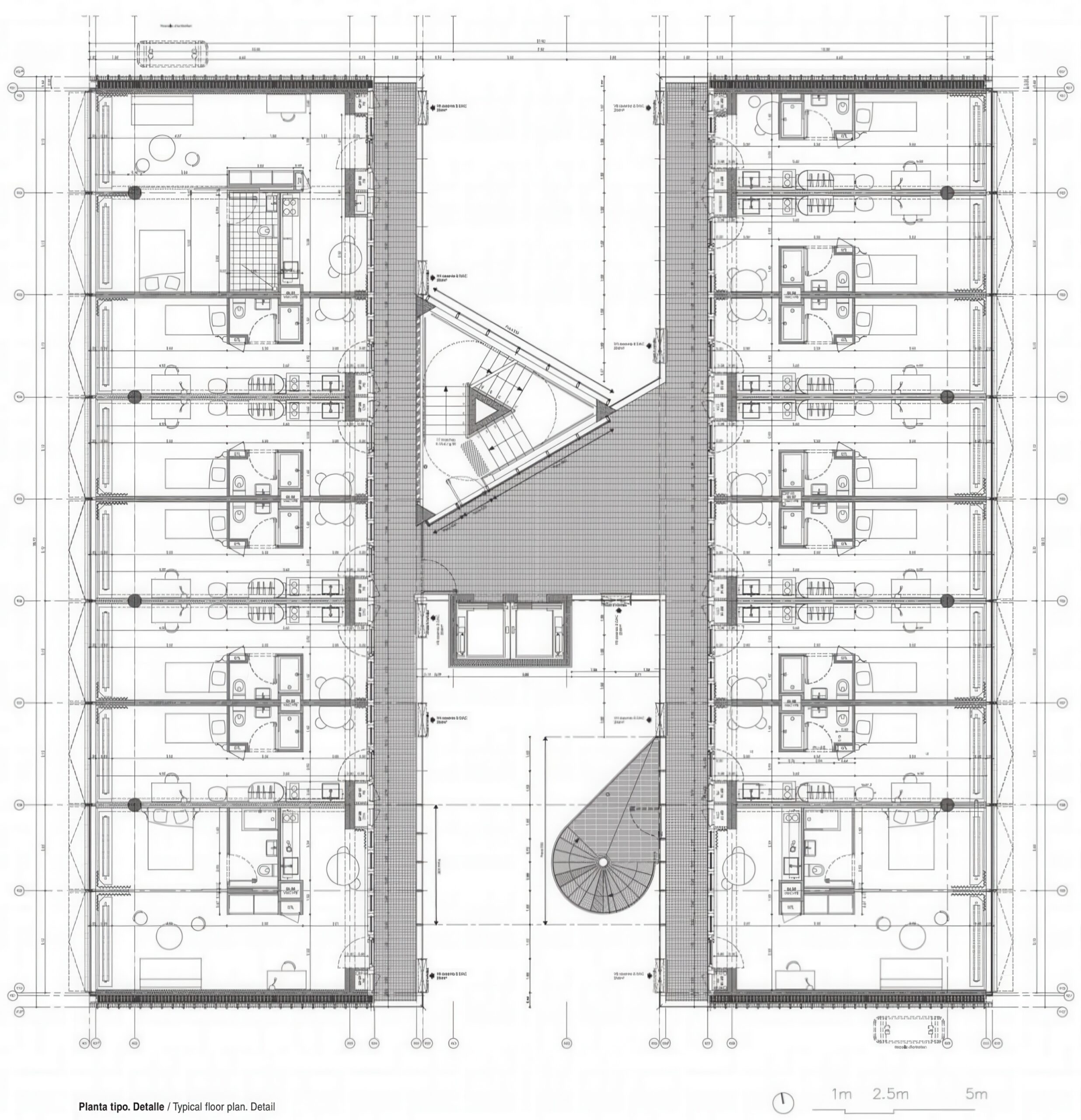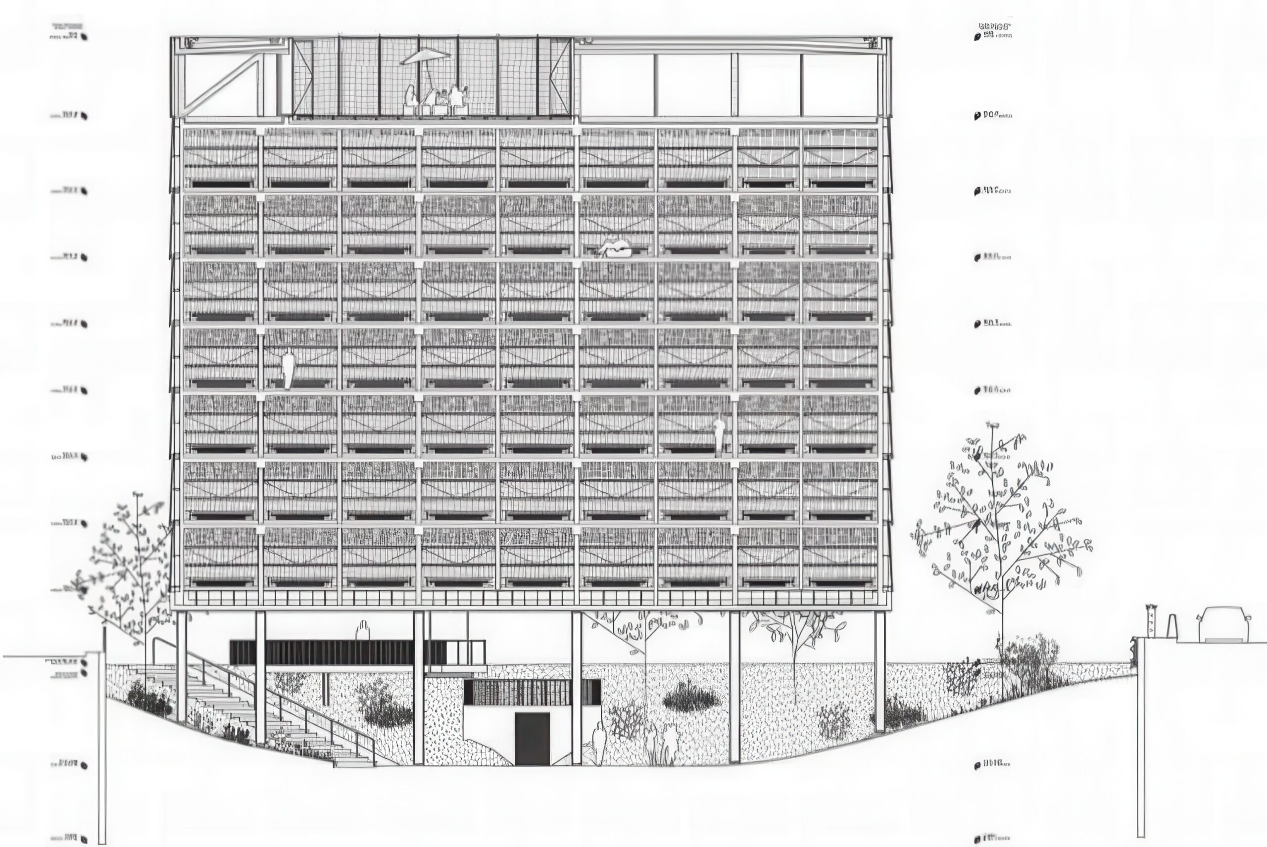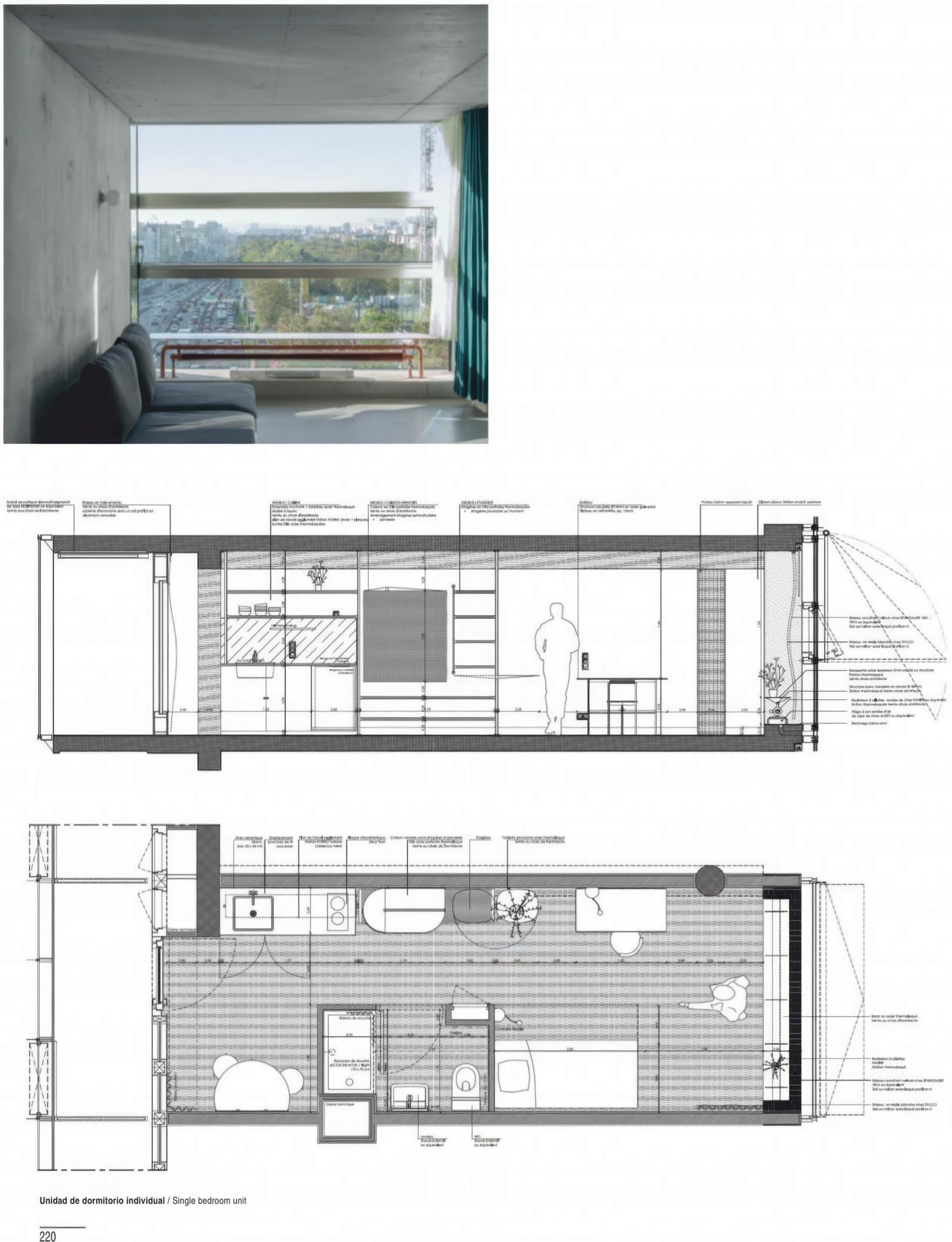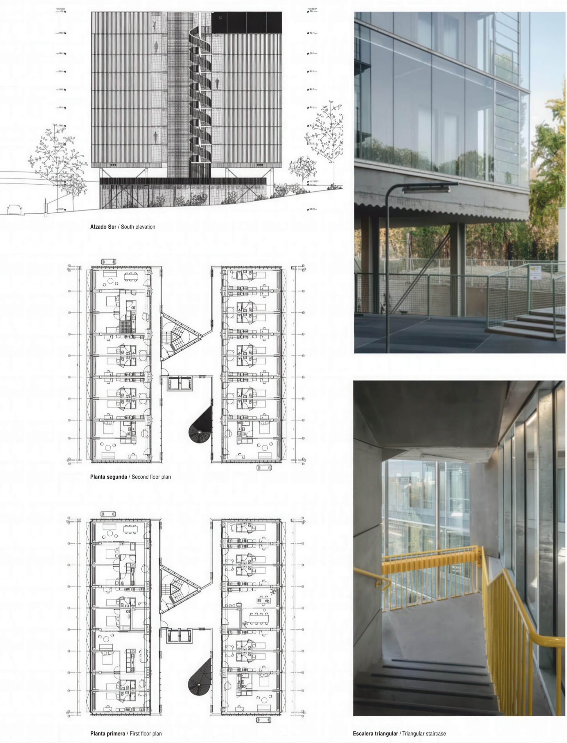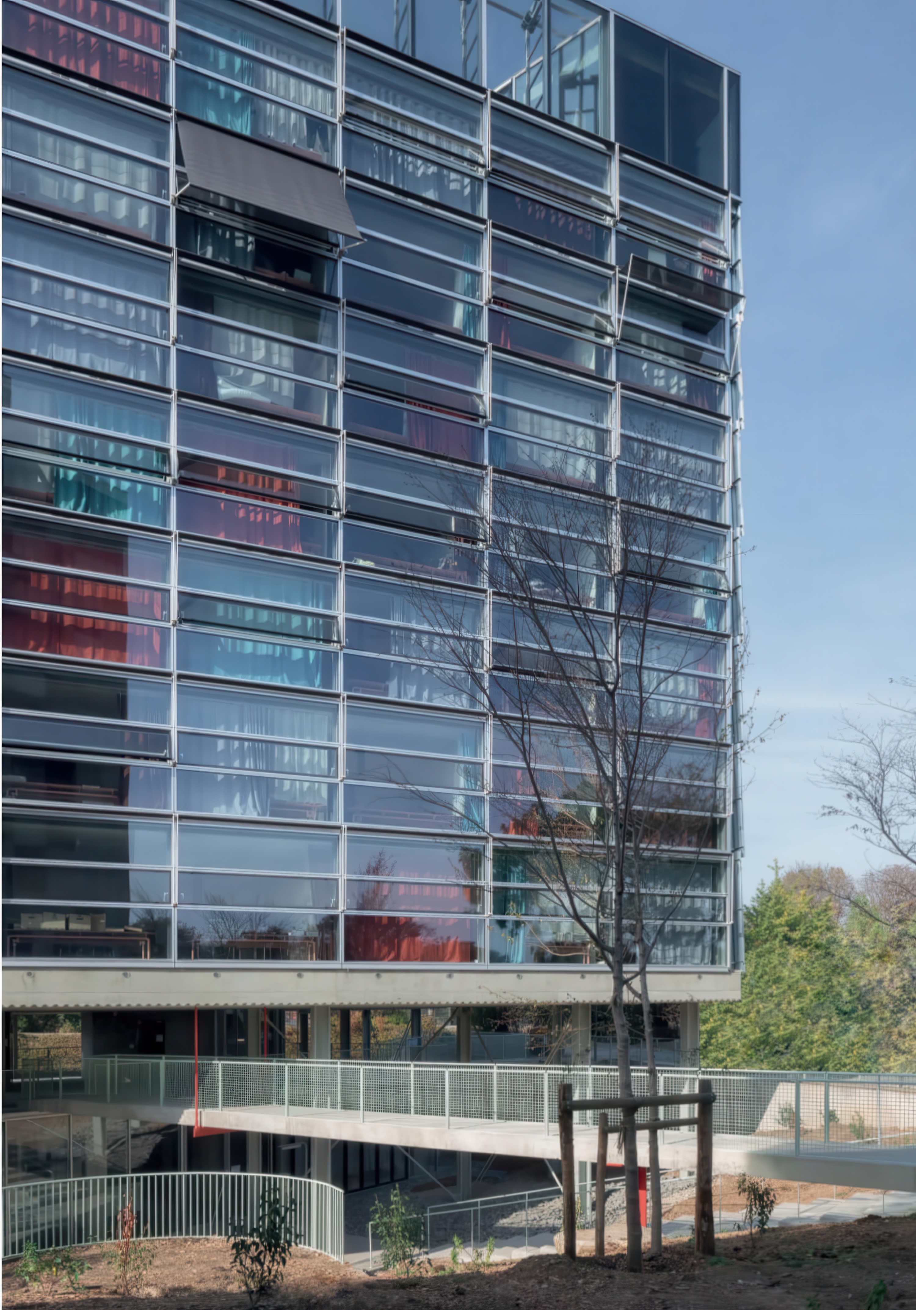 维克多·达比伊研究员住宅 Victoire Daubié Residence for Researchers | 布鲁瑟建筑事务所|Bruther 布鲁瑟建筑事务所|Bruther • 2025-11-24 上午8:50 • 公共建筑设计, 建筑师, 建筑设计, 文化建筑设计 维克多·达比伊研究员住宅位于巴黎大学城公园南缘,由布鲁瑟建筑事务所设计。这座青年研究员公寓以独特的立方体形态悬浮于半地下花园之上,采用紧凑的体量策略应对狭小场地。建筑通过高性能隔音幕墙、分层空间组织和通透的玻璃立面,在环城公路旁创造出开放明亮的居住环境,成为巴黎现代建筑收藏中的新地标。 设计: 布鲁瑟建筑事务所|Bruther 类型: 文化建筑设计 功能: 公寓住宅 风格: 当代建筑 材料: 混凝土 钢材 玻璃 金属板 尺度: 中型建筑 地点:巴黎 时间: 2017年 项目简介 维克多·达比伊研究员住宅位于法国巴黎大学城公园南缘,是一座青年研究员公寓。建筑面积1629平方米,包含106套公寓单元,建筑高度24.95米,于近年建成。 设计理念 布鲁瑟建筑事务所采用”分裂悬浮立方体”概念,通过紧凑的体量策略应对1000平方米的狭小场地。设计巧妙处理环城公路的噪音干扰,创造出既保护隐私又向城市开放的建筑形象,重新诠释了现代主义馆式建筑的当代意义。 空间与功能 建筑平面采用三条平行带状布局:两侧为居住单元,中间为交通核心。七层空间容纳106套一至四室公寓,底层设置半地下接待区和花园。顶层设有集体露台和健身房,强调建筑的集体维度。滑动隔墙设计使公寓可转变为开放式大空间。 材料与技术 建筑采用高性能隔音幕墙系统,立面由玻璃和金属构成。结构采用6.30×6.65米的紧凑网格,使用带肋纹的精致混凝土板。全高彩色窗帘在玻璃幕墙后形成独特的视觉效果,白天展现庄严气质,夜晚则如灯笼般明亮。 设计团队 布鲁瑟建筑事务所是法国知名建筑设计团队,以创新的建筑语言和对城市环境的敏锐回应著称。事务所关注建筑与城市的互动关系,在住宅、文化设施等领域有着丰富的设计经验,作品强调结构逻辑与空间体验的完美结合。 项目简介 维克多·达比伊研究员住宅位于法国巴黎大学城公园南缘,是一座青年研究员公寓。建筑面积1629平方米,包含106套公寓单元,建筑高度24.95米,于近年建成。 设计理念 布鲁瑟建筑事务所采用”分裂悬浮立方体”概念,通过紧凑的体量策略应对1000平方米的狭小场地。设计巧妙处理环城公路的噪音干扰,创造出既保护隐私又向城市开放的建筑形象,重新诠释了现代主义馆式建筑的当代意义。 空间与功能 建筑平面采用三条平行带状布局:两侧为居住单元,中间为交通核心。七层空间容纳106套一至四室公寓,底层设置半地下接待区和花园。顶层设有集体露台和健身房,强调建筑的集体维度。滑动隔墙设计使公寓可转变为开放式大空间。 材料与技术 建筑采用高性能隔音幕墙系统,立面由玻璃和金属构成。结构采用6.30×6.65米的紧凑网格,使用带肋纹的精致混凝土板。全高彩色窗帘在玻璃幕墙后形成独特的视觉效果,白天展现庄严气质,夜晚则如灯笼般明亮。 设计团队 布鲁瑟建筑事务所是法国知名建筑设计团队,以创新的建筑语言和对城市环境的敏锐回应著称。事务所关注建筑与城市的互动关系,在住宅、文化设施等领域有着丰富的设计经验,作品强调结构逻辑与空间体验的完美结合。 本文来自 © 布鲁瑟建筑事务所|Bruther, 发布于 © 建筑学院官方网站。 未经授权,禁止转载或摘编。 编辑版本版权归 © 建筑学院官方网站 所有, 设计、图纸及照片版权归设计方 © 布鲁瑟建筑事务所|Bruther ↗ 所有。 查看作者在建筑学院发布的更多作品: 布鲁瑟建筑事务所|Bruther @ 建筑学院官方网站 布鲁瑟建筑事务所|Bruther事务所 & 设计师 下载原图 收藏 0 关于作者 布鲁瑟建筑事务所|Bruther事务所 & 设计师 关注私信 20 文章 0 评论 0 粉丝 布鲁瑟建筑事务所(Bruther)由亚历克西斯·博德与斯蒂芬妮·布鲁诺创立于巴黎,是当代极具前瞻性的先锋建筑团队。他们以“动态功能”与“空间灵活性”为核心,作品横跨文化、教育及研究建筑领域,以前瞻性思维与技术精确性,创造出开放、适应性强且充满张力的建筑,持续拓展建筑实践的边界,重新定义当代建筑语言。 卢米埃大学Lyon 2大学校园学习中心 Learning Centre in Lumière Lyon 2 University campus | 布鲁瑟建筑事务所|Bruther 上一篇 2025-11-23 上午10:50 勒哈弗多功能社会文化体育设施 Multifunction Sociocultural and Sports Facility, Le Havre | 布鲁瑟建筑事务所|Bruther 下一篇 2025-11-24 下午12:50 猜你喜欢 可以作为出版社,也适合独居老人阳台养花 — 韩国“KL”出版社办公楼 2018-07-06 住宅室内设计 由BIG打造的“扭体博物馆”在挪威 kistefos 雕塑公园落成开放 2019-09-20 建筑设计 10级地震模拟,故宫模型岿然不倒!外国工匠连赞天才! 2017-07-28 建筑设计 冥想小教堂 / Lee Eunseok + ATELIER KOMA 2023-12-07 建筑设计 巨构与小人儿,筑紫森林幼儿园 / UID Architects 2021-10-14 建筑设计 “折叠”出的山地退台公寓—“托莱多城堡” 2018-10-11 住宅建筑设计 发表回复 请登录后评论...登录后才能评论 提交