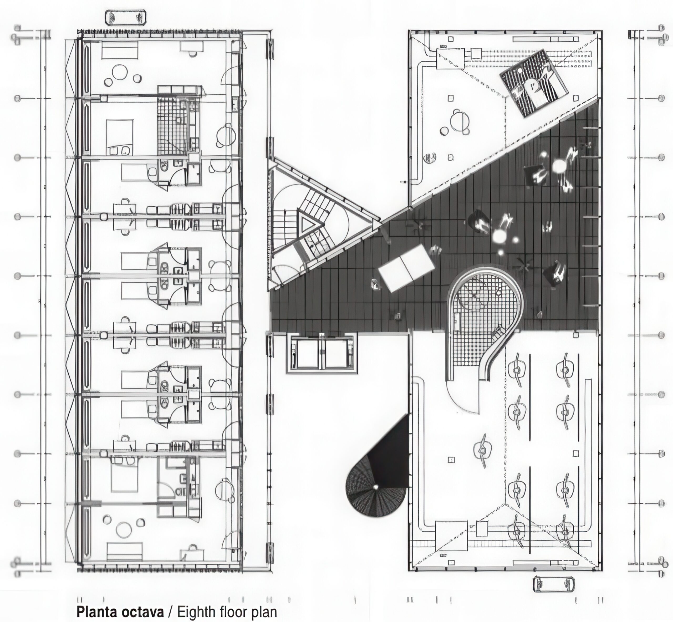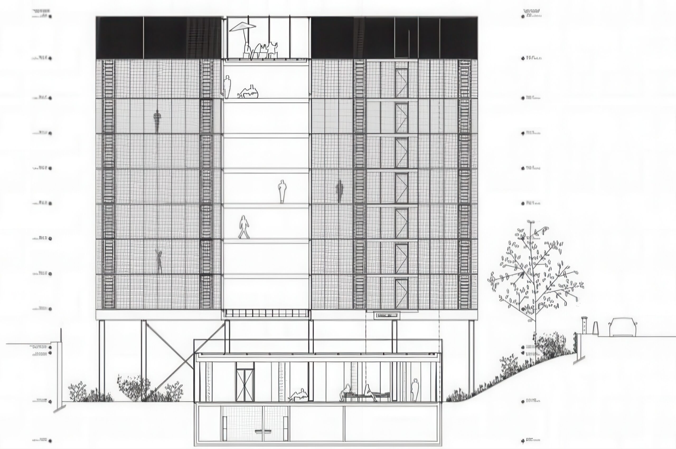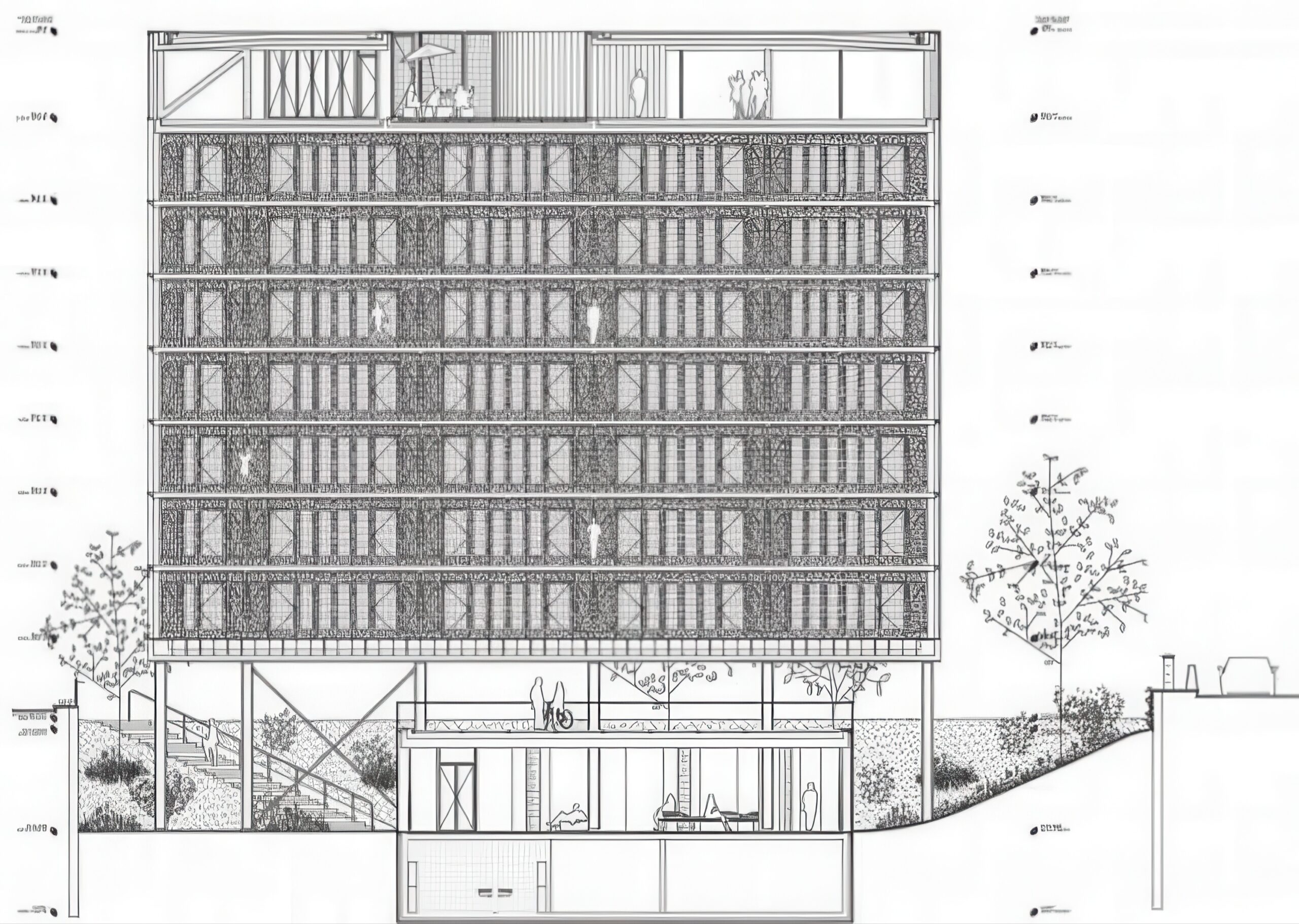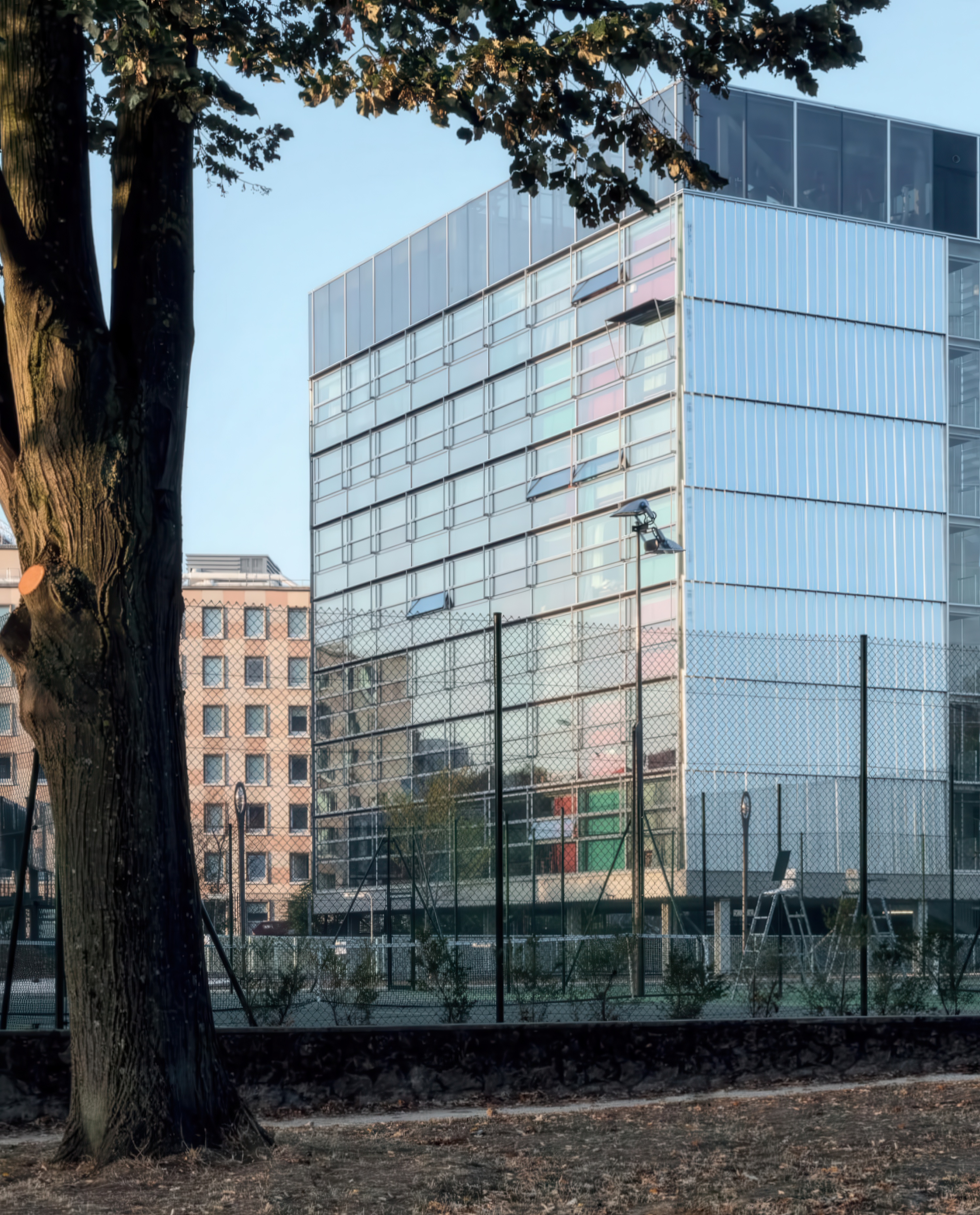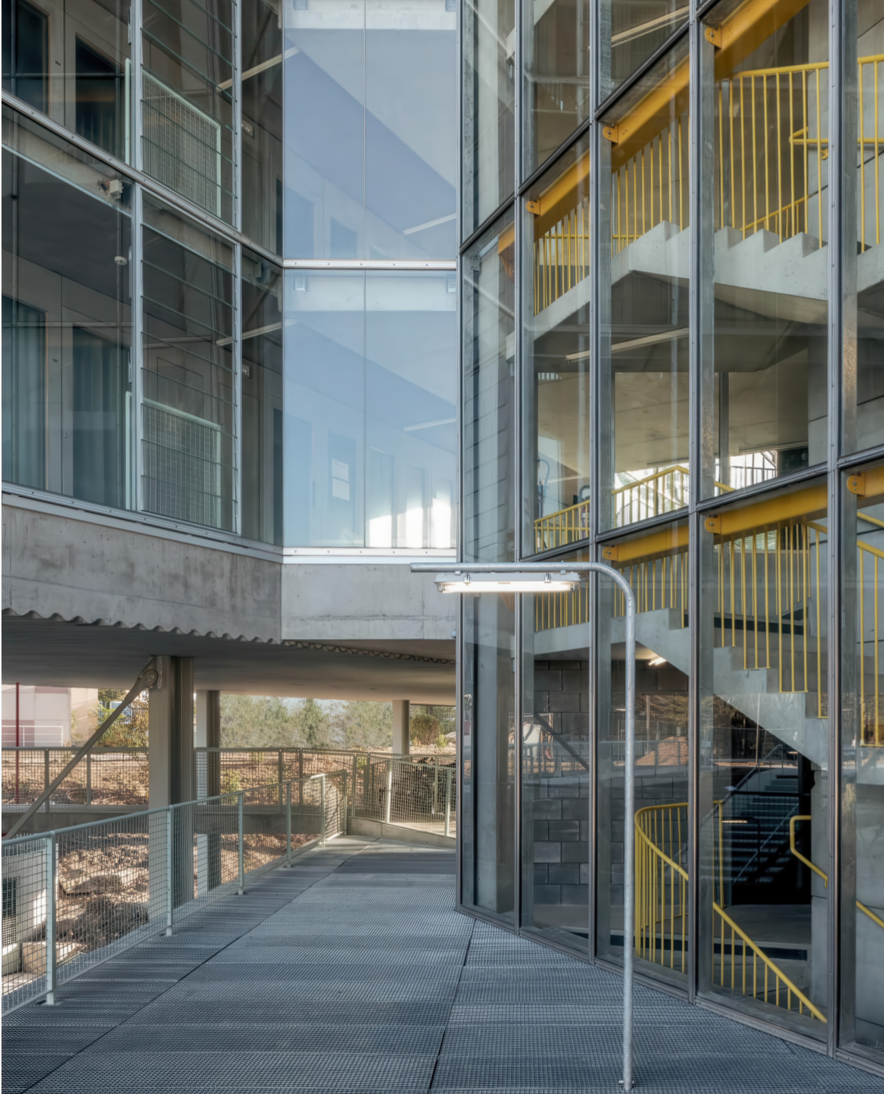 维克多·达比伊研究员住宅 Victoire Daubié Residence for Researchers | 布鲁瑟建筑事务所|Bruther 布鲁瑟建筑事务所|Bruther • 2025-11-24 上午8:50 • 公共建筑设计, 建筑师, 建筑设计, 文化建筑设计 维克多·达比伊研究员住宅位于巴黎大学城公园南缘,由布鲁瑟建筑事务所设计。这座青年研究员公寓以独特的立方体形态悬浮于半地下花园之上,采用紧凑的体量策略应对狭小场地。建筑通过高性能隔音幕墙、分层空间组织和通透的玻璃立面,在环城公路旁创造出开放明亮的居住环境,成为巴黎现代建筑收藏中的新地标。 设计: 布鲁瑟建筑事务所|Bruther 类型: 文化建筑设计 功能: 公寓住宅 风格: 当代建筑 材料: 混凝土 钢材 玻璃 金属板 尺度: 中型建筑 地点:巴黎 时间: 2017年 项目简介 维克多·达比伊研究员住宅位于法国巴黎大学城公园南缘,是一座青年研究员公寓。建筑面积1629平方米,包含106套公寓单元,建筑高度24.95米,于近年建成。 设计理念 布鲁瑟建筑事务所采用”分裂悬浮立方体”概念,通过紧凑的体量策略应对1000平方米的狭小场地。设计巧妙处理环城公路的噪音干扰,创造出既保护隐私又向城市开放的建筑形象,重新诠释了现代主义馆式建筑的当代意义。 空间与功能 建筑平面采用三条平行带状布局:两侧为居住单元,中间为交通核心。七层空间容纳106套一至四室公寓,底层设置半地下接待区和花园。顶层设有集体露台和健身房,强调建筑的集体维度。滑动隔墙设计使公寓可转变为开放式大空间。 材料与技术 建筑采用高性能隔音幕墙系统,立面由玻璃和金属构成。结构采用6.30×6.65米的紧凑网格,使用带肋纹的精致混凝土板。全高彩色窗帘在玻璃幕墙后形成独特的视觉效果,白天展现庄严气质,夜晚则如灯笼般明亮。 设计团队 布鲁瑟建筑事务所是法国知名建筑设计团队,以创新的建筑语言和对城市环境的敏锐回应著称。事务所关注建筑与城市的互动关系,在住宅、文化设施等领域有着丰富的设计经验,作品强调结构逻辑与空间体验的完美结合。 项目简介 维克多·达比伊研究员住宅位于法国巴黎大学城公园南缘,是一座青年研究员公寓。建筑面积1629平方米,包含106套公寓单元,建筑高度24.95米,于近年建成。 设计理念 布鲁瑟建筑事务所采用”分裂悬浮立方体”概念,通过紧凑的体量策略应对1000平方米的狭小场地。设计巧妙处理环城公路的噪音干扰,创造出既保护隐私又向城市开放的建筑形象,重新诠释了现代主义馆式建筑的当代意义。 空间与功能 建筑平面采用三条平行带状布局:两侧为居住单元,中间为交通核心。七层空间容纳106套一至四室公寓,底层设置半地下接待区和花园。顶层设有集体露台和健身房,强调建筑的集体维度。滑动隔墙设计使公寓可转变为开放式大空间。 材料与技术 建筑采用高性能隔音幕墙系统,立面由玻璃和金属构成。结构采用6.30×6.65米的紧凑网格,使用带肋纹的精致混凝土板。全高彩色窗帘在玻璃幕墙后形成独特的视觉效果,白天展现庄严气质,夜晚则如灯笼般明亮。 设计团队 布鲁瑟建筑事务所是法国知名建筑设计团队,以创新的建筑语言和对城市环境的敏锐回应著称。事务所关注建筑与城市的互动关系,在住宅、文化设施等领域有着丰富的设计经验,作品强调结构逻辑与空间体验的完美结合。 本文来自 © 布鲁瑟建筑事务所|Bruther, 发布于 © 建筑学院官方网站。 未经授权,禁止转载或摘编。 编辑版本版权归 © 建筑学院官方网站 所有, 设计、图纸及照片版权归设计方 © 布鲁瑟建筑事务所|Bruther ↗ 所有。 查看作者在建筑学院发布的更多作品: 布鲁瑟建筑事务所|Bruther @ 建筑学院官方网站 布鲁瑟建筑事务所|Bruther事务所 & 设计师 下载原图 收藏 0 关于作者 布鲁瑟建筑事务所|Bruther事务所 & 设计师 关注私信 20 文章 0 评论 0 粉丝 布鲁瑟建筑事务所(Bruther)由亚历克西斯·博德与斯蒂芬妮·布鲁诺创立于巴黎,是当代极具前瞻性的先锋建筑团队。他们以“动态功能”与“空间灵活性”为核心,作品横跨文化、教育及研究建筑领域,以前瞻性思维与技术精确性,创造出开放、适应性强且充满张力的建筑,持续拓展建筑实践的边界,重新定义当代建筑语言。 卢米埃大学Lyon 2大学校园学习中心 Learning Centre in Lumière Lyon 2 University campus | 布鲁瑟建筑事务所|Bruther 上一篇 2025-11-23 上午10:50 勒哈弗多功能社会文化体育设施 Multifunction Sociocultural and Sports Facility, Le Havre | 布鲁瑟建筑事务所|Bruther 下一篇 2025-11-24 下午12:50 猜你喜欢 可以作为出版社,也适合独居老人阳台养花 — 韩国“KL”出版社办公楼 2018-07-06 住宅室内设计 由BIG打造的“扭体博物馆”在挪威 kistefos 雕塑公园落成开放 2019-09-20 建筑设计 10级地震模拟,故宫模型岿然不倒!外国工匠连赞天才! 2017-07-28 建筑设计 冥想小教堂 / Lee Eunseok + ATELIER KOMA 2023-12-07 建筑设计 巨构与小人儿,筑紫森林幼儿园 / UID Architects 2021-10-14 建筑设计 “折叠”出的山地退台公寓—“托莱多城堡” 2018-10-11 住宅建筑设计 发表回复 请登录后评论...登录后才能评论 提交