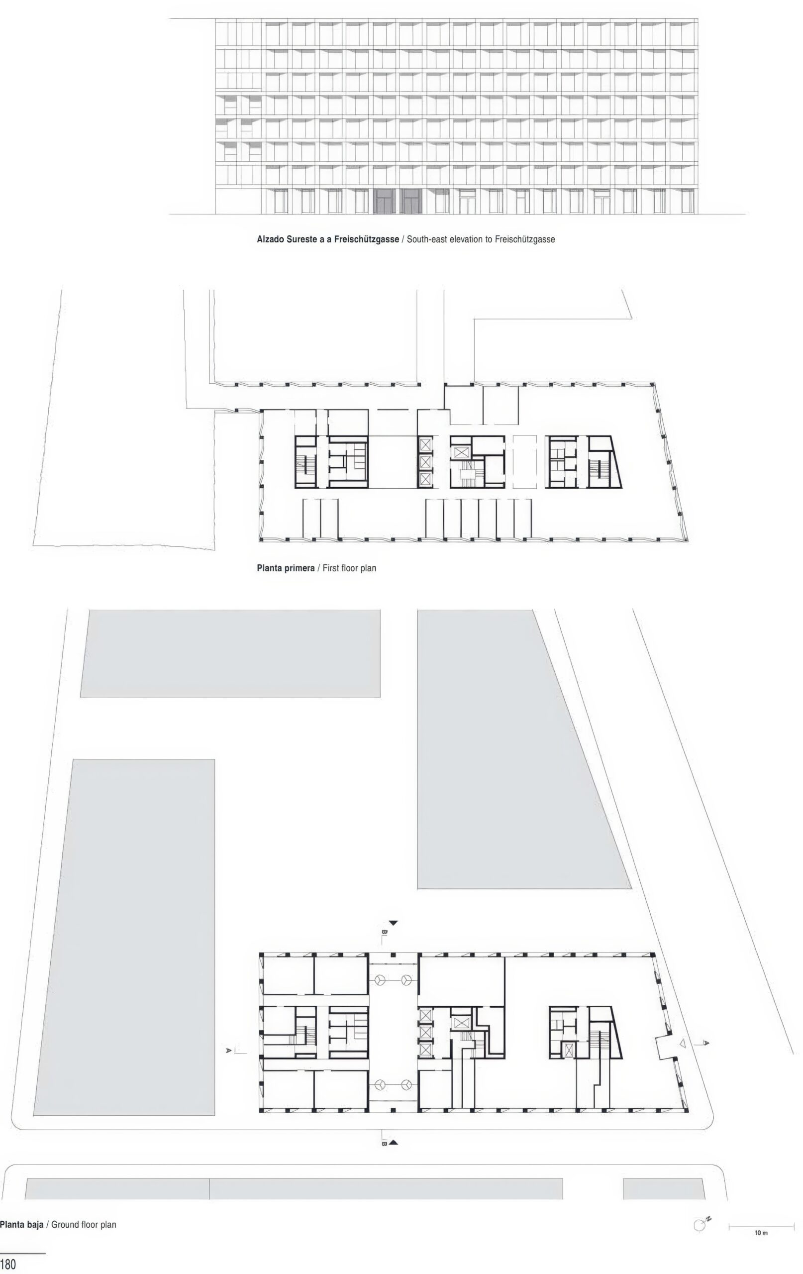 欧洲艾莱大道21号办公楼 Office Building ‘Europaallee 21’ | 大卫·奇珀菲尔德建筑事务所|David Chipperfield 大卫·奇珀菲尔德建筑事务所|David Chipperfield • 2025-11-24 下午12:50 • 公共建筑设计, 建筑师, 建筑设计, 文化建筑设计 欧洲艾莱大道21号办公楼位于瑞士苏黎世中央火车站旁,由大卫·奇珀菲尔德建筑事务所设计。这座八层办公建筑采用清晰的几何形态与理性平面布局,无柱室内空间提供最大灵活性。建筑立面通过水平带状窗与铝网幕墙交替,形成韵律感强烈的视觉表达,同时创造出一系列倒置的观景窗台。 设计: 大卫·奇珀菲尔德建筑事务所|David Chipperfield 类型: 文化建筑设计 功能: 办公楼 风格: 现代主义 材料: 混凝土 钢材 玻璃 金属板 尺度: 中型建筑 地点:瑞士 时间: 2015年 项目简介 欧洲艾莱大道21号办公楼位于瑞士苏黎世,是Europaallee城市开发项目第二阶段的办公综合体组成部分。建筑占地约2,500平方米,八层结构,于2015年建成,由大卫·奇珀菲尔德建筑事务所设计。 设计理念 设计团队以理性主义为核心,通过清晰的几何形态和严谨的立面构成,在严谨与趣味、围合与开放之间取得平衡。建筑采用连续周边街区布局,围绕中央公共庭院组织空间。 空间与功能 建筑占据场地东北角,八层办公空间通过内部连桥与其他三栋建筑相连。无柱室内设计提供最大空间灵活性,主要入口正对通往中央庭院的宽敞通道,形成流畅的动线组织。 材料与技术 立面采用水平带状窗与楼板交替的简洁处理,落地窗配以不同穿孔率的铝网幕墙。玻璃窗扇在立面内凹后退,然后以对角线转折与建筑外平面相接,形成独特的倒置窗台系统。 设计团队 大卫·奇珀菲尔德建筑事务所成立于1985年,以严谨的现代主义设计语言著称,专注于文化、办公和住宅建筑,强调材料真实性与空间品质。 项目简介 欧洲艾莱大道21号办公楼位于瑞士苏黎世,是Europaallee城市开发项目第二阶段的办公综合体组成部分。建筑占地约2,500平方米,八层结构,于2015年建成,由大卫·奇珀菲尔德建筑事务所设计。 设计理念 设计团队以理性主义为核心,通过清晰的几何形态和严谨的立面构成,在严谨与趣味、围合与开放之间取得平衡。建筑采用连续周边街区布局,围绕中央公共庭院组织空间。 空间与功能 建筑占据场地东北角,八层办公空间通过内部连桥与其他三栋建筑相连。无柱室内设计提供最大空间灵活性,主要入口正对通往中央庭院的宽敞通道,形成流畅的动线组织。 材料与技术 立面采用水平带状窗与楼板交替的简洁处理,落地窗配以不同穿孔率的铝网幕墙。玻璃窗扇在立面内凹后退,然后以对角线转折与建筑外平面相接,形成独特的倒置窗台系统。 设计团队 大卫·奇珀菲尔德建筑事务所成立于1985年,以严谨的现代主义设计语言著称,专注于文化、办公和住宅建筑,强调材料真实性与空间品质。 本文来自 © 大卫·奇珀菲尔德建筑事务所|David Chipperfield, 发布于 © 建筑学院官方网站。 未经授权,禁止转载或摘编。 编辑版本版权归 © 建筑学院官方网站 所有, 设计、图纸及照片版权归设计方 © 大卫·奇珀菲尔德建筑事务所|David Chipperfield ↗ 所有。 查看作者在建筑学院发布的更多作品: 大卫·奇珀菲尔德建筑事务所|David Chipperfield @ 建筑学院官方网站 办公建筑大卫·奇珀菲尔德欧洲艾莱大道21号苏黎世铝网幕墙 大卫·奇珀菲尔德建筑事务所|David Chipperfield事务所 & 设计师 下载原图 收藏 0 关于作者 大卫·奇珀菲尔德建筑事务所|David Chipperfield事务所 & 设计师 关注私信 22 文章 0 评论 1 粉丝 大卫·奇珀菲尔德建筑事务所由2023年普利兹克奖得主大卫·奇珀菲尔德爵士于1985年创立,在伦敦、柏林、米兰、上海等地设有办公室。事务所以优雅克制、注重永恒感的设计风格闻名,尤其擅长文化建筑与历史建筑改造,代表作包括柏林新博物馆重建、上海西岸美术馆和洛克外滩源项目。 圣罗伦索纽约新店 Valentino New York | 大卫·奇珀菲尔德建筑事务所|David Chipperfield 上一篇 2025-11-24 上午8:50 Bötzow啤酒厂的改造 Conversion of Bötzow Brewery | 大卫·奇珀菲尔德建筑事务所|David Chipperfield 下一篇 2025-11-25 上午12:50 猜你喜欢 爱茉莉太平洋总部 Amorepacific Headquarters | 大卫·奇珀菲尔德建筑事务所|David Chipperfield 2025-11-05 公共建筑设计 古老“希腊街区”的一座现代办公楼,散发着深深的肃杀气息 2017-07-20 办公建筑设计 莱特博格博物馆扩建 | Alfred Grazioli 与 Adolf Krischanitz 2025-08-30 公共建筑设计 K+ 建筑 / pbm 2021-08-18 办公建筑设计 三角形布局与曲面弧形在几何形式的精妙结合——Stibbe法务总部大楼 2018-11-07 办公建筑设计 墨西哥国立人类学博物馆 Museo Jumex | 大卫·奇珀菲尔德建筑事务所|David Chipperfield 2025-11-20 公共建筑设计 发表回复 请登录后评论...登录后才能评论 提交