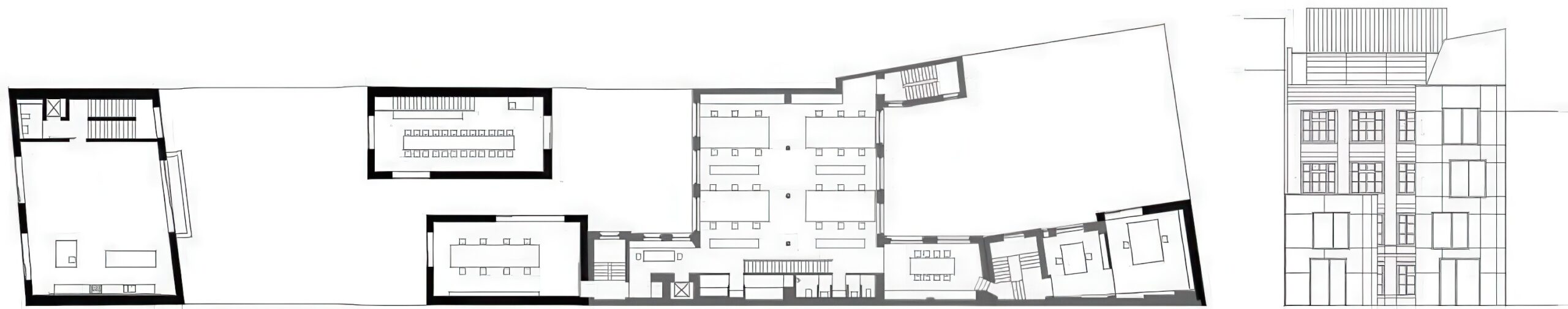 乔阿奇姆斯特大街校园 Joachimstrasse Campus | 大卫·奇珀菲尔德建筑事务所|David Chipperfield 大卫·奇珀菲尔德建筑事务所|David Chipperfield • 2025-11-24 上午8:50 • 公共建筑设计, 建筑师, 建筑设计, 文化建筑设计 乔阿奇姆斯特大街校园位于德国柏林市中心,是一座融合历史保护与现代设计的城市更新项目。该项目在二战严重受损的城市街区中,通过插入两个不同高度的立方体建筑,平衡了战前庭院结构与战后独立建筑的配置。设计保留了原有砖砌建筑的视野,同时创造了展览空间、办公区域和三个层次分明的庭院空间。 设计: 大卫·奇珀菲尔德建筑事务所|David Chipperfield 类型: 文化建筑设计 功能: 办公楼 风格: 当代建筑 材料: 混凝土 木材 石材 尺度: 中型建筑 地点:柏林 时间: 2015年 项目简介 乔阿奇姆斯特大街校园位于德国柏林市中心,是一座城市更新与办公建筑综合体。项目占地面积约一个城市街区,建筑面积未明确,设计始于1990年代,是柏林战后城市重建的重要案例。 设计理念 设计团队以尊重历史文脉为核心,在严重受损的二战街区中寻求新旧建筑的平衡。通过插入两个不同高度的立方体体量,既恢复了战前典型的庭院结构,又保留了原有建筑的视野,体现了对城市肌理的细腻回应。 空间与功能 项目包含临街建筑的展览空间和地下服务区,中部两个体量分别作为咖啡厅和办公空间。三个庭院从公共到私密依次排列:第一个庭院最为开放,第二个增加私密性,第三个成为花园空间,形成层次丰富的空间序列。 材料与技术 新建建筑采用全深度保温混凝土外墙,内外表面均保持裸露状态。所有墙体均为承重结构,支撑大跨度楼板,无需额外柱网支撑。地面使用抛光混凝土,门、隔墙和设施采用清漆木材或大理石,与混凝土形成质感对比。 设计团队 大卫·奇珀菲尔德建筑事务所是国际知名建筑设计事务所,以精致简约的设计语言和对历史文脉的尊重著称,在文化建筑、城市更新和办公建筑领域具有丰富经验。 项目简介 乔阿奇姆斯特大街校园位于德国柏林市中心,是一座城市更新与办公建筑综合体。项目占地面积约一个城市街区,建筑面积未明确,设计始于1990年代,是柏林战后城市重建的重要案例。 设计理念 设计团队以尊重历史文脉为核心,在严重受损的二战街区中寻求新旧建筑的平衡。通过插入两个不同高度的立方体体量,既恢复了战前典型的庭院结构,又保留了原有建筑的视野,体现了对城市肌理的细腻回应。 空间与功能 项目包含临街建筑的展览空间和地下服务区,中部两个体量分别作为咖啡厅和办公空间。三个庭院从公共到私密依次排列:第一个庭院最为开放,第二个增加私密性,第三个成为花园空间,形成层次丰富的空间序列。 材料与技术 新建建筑采用全深度保温混凝土外墙,内外表面均保持裸露状态。所有墙体均为承重结构,支撑大跨度楼板,无需额外柱网支撑。地面使用抛光混凝土,门、隔墙和设施采用清漆木材或大理石,与混凝土形成质感对比。 设计团队 大卫·奇珀菲尔德建筑事务所是国际知名建筑设计事务所,以精致简约的设计语言和对历史文脉的尊重著称,在文化建筑、城市更新和办公建筑领域具有丰富经验。 本文来自 © 大卫·奇珀菲尔德建筑事务所|David Chipperfield, 发布于 © 建筑学院官方网站。 未经授权,禁止转载或摘编。 编辑版本版权归 © 建筑学院官方网站 所有, 设计、图纸及照片版权归设计方 © 大卫·奇珀菲尔德建筑事务所|David Chipperfield ↗ 所有。 查看作者在建筑学院发布的更多作品: 大卫·奇珀菲尔德建筑事务所|David Chipperfield @ 建筑学院官方网站 乔阿奇姆斯特大街校园办公建筑大卫·奇珀菲尔德柏林城市更新混凝土建筑 大卫·奇珀菲尔德建筑事务所|David Chipperfield事务所 & 设计师 下载原图 收藏 0 关于作者 大卫·奇珀菲尔德建筑事务所|David Chipperfield事务所 & 设计师 关注私信 22 文章 0 评论 1 粉丝 大卫·奇珀菲尔德建筑事务所由2023年普利兹克奖得主大卫·奇珀菲尔德爵士于1985年创立,在伦敦、柏林、米兰、上海等地设有办公室。事务所以优雅克制、注重永恒感的设计风格闻名,尤其擅长文化建筑与历史建筑改造,代表作包括柏林新博物馆重建、上海西岸美术馆和洛克外滩源项目。 卢米埃大学Lyon 2大学校园学习中心 Learning Centre in Lumière Lyon 2 University campus | 布鲁瑟建筑事务所|Bruther 上一篇 2025-11-23 上午10:50 Okachimachi公寓 / Apartments in Okachimachi | 长谷川豪建筑事务所 下一篇 2025-11-24 下午12:50 猜你喜欢 巴塞罗那音乐和舞蹈学院 Ibiza and Formentera Music and Dance Conservatory | 阿尔弗雷多·帕亚|Alfredo Payá 2025-10-29 公共建筑设计 贝亲办公改造:关乎情感与心灵的设计 / COLORFULL 昱景设计 2021-01-05 办公建筑设计 捷克POHL总部 / Rusina Frei Architekti 2021-09-16 办公建筑设计 Next Hydroponic Plant Next Hydroponic Plant | 曼努埃尔·塞万提斯|Manuel Cervantes 2025-12-04 公共建筑设计 维勒花园住宅区 De Vere Gardens Residential | 大卫·奇珀菲尔德建筑事务所|David Chipperfield 2025-11-18 公共建筑设计 物理花园3实验室楼 ‘Physic Garden 3’Laboratory Building | 德莫拉建筑事务所|De Mora 2025-11-24 公共建筑设计 发表回复 请登录后评论...登录后才能评论 提交