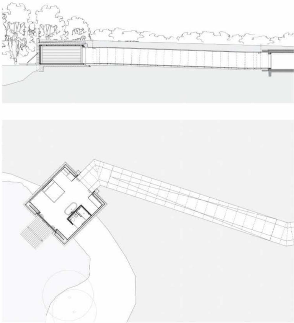 Studio in a Ruin and Lake Pavilion, East Sussex | 卡莫迪·格罗克建筑事务所|Carmody Groarke 卡莫迪·格罗克建筑事务所|Carmody Groarke • 2025-11-28 上午12:50 • 住宅室内设计, 公共建筑设计, 室内设计, 建筑师, 建筑设计, 文化建筑设计 该项目位于英国东萨塞克斯郡,由卡莫迪·格罗克建筑事务所设计,包含两个独立展馆:湖边客房展馆和艺术家工作室展馆。湖边展馆采用现浇混凝土建造,通过40米长地下隧道连接主屋;艺术家工作室则利用废弃农舍砖墙重建,融合新旧材料。设计巧妙回应场地地形,创造独特的隐居体验与创作空间。 设计: 卡莫迪·格罗克建筑事务所|Carmody Groarke 类型: 文化建筑设计 功能: 独立住宅 风格: 当代建筑 材料: 混凝土 钢材 木材 砖材 金属板 尺度: 小型建筑 地点:英国 时间: 2018年 项目简介 Studio in a Ruin and Lake Pavilion 位于英国东萨塞克斯郡,包含两个独立建筑展馆:湖边客房展馆和艺术家工作室。项目通过对现有农庄的扩建,创造隐居休憩与艺术创作空间。 设计理念 设计团队采用”分离式展馆”策略,在保持原有农庄尺度的同时,通过两个独立建筑回应不同功能需求。湖边展馆追求原始地质感,艺术家工作室则强调新旧材料的对话,展现对历史建筑的尊重与创新。 空间与功能 湖边展馆为独立客房套间,包含卧室、浴室和小厨房,通过地下镀锌钢隧道与主屋连接。艺术家工作室保留原有砖墙结构,设置大型创作空间和室外工作区。两个展馆均精心组织视线与动线,与周围景观形成紧密联系。 材料与技术 湖边展馆采用水平模板纹理现浇混凝土,内部为橡木饰面;艺术家工作室融合保留砖墙与抛光混凝土,屋顶为钢板结构。地下隧道采用镀锌钢板建造,展现精致的施工工艺与材料表现力。 设计团队 卡莫迪·格罗克建筑事务所是英国知名建筑设计事务所,以精致的材料运用、对场地文脉的敏锐回应著称,在文化建筑、住宅改造等领域具有丰富经验。 项目简介 Studio in a Ruin and Lake Pavilion 位于英国东萨塞克斯郡,包含两个独立建筑展馆:湖边客房展馆和艺术家工作室。项目通过对现有农庄的扩建,创造隐居休憩与艺术创作空间。 设计理念 设计团队采用”分离式展馆”策略,在保持原有农庄尺度的同时,通过两个独立建筑回应不同功能需求。湖边展馆追求原始地质感,艺术家工作室则强调新旧材料的对话,展现对历史建筑的尊重与创新。 空间与功能 湖边展馆为独立客房套间,包含卧室、浴室和小厨房,通过地下镀锌钢隧道与主屋连接。艺术家工作室保留原有砖墙结构,设置大型创作空间和室外工作区。两个展馆均精心组织视线与动线,与周围景观形成紧密联系。 材料与技术 湖边展馆采用水平模板纹理现浇混凝土,内部为橡木饰面;艺术家工作室融合保留砖墙与抛光混凝土,屋顶为钢板结构。地下隧道采用镀锌钢板建造,展现精致的施工工艺与材料表现力。 设计团队 卡莫迪·格罗克建筑事务所是英国知名建筑设计事务所,以精致的材料运用、对场地文脉的敏锐回应著称,在文化建筑、住宅改造等领域具有丰富经验。 本文来自 © 卡莫迪·格罗克建筑事务所|Carmody Groarke, 发布于 © 建筑学院官方网站。 未经授权,禁止转载或摘编。 编辑版本版权归 © 建筑学院官方网站 所有, 设计、图纸及照片版权归设计方 © 卡莫迪·格罗克建筑事务所|Carmody Groarke ↗ 所有。 查看作者在建筑学院发布的更多作品: 卡莫迪·格罗克建筑事务所|Carmody Groarke @ 建筑学院官方网站 Studio in a Ruin and Lake Pavilion东萨塞克斯郡卡莫迪·格罗克建筑事务所展馆建筑现浇混凝土 卡莫迪·格罗克建筑事务所|Carmody Groarke事务所 & 设计师 下载原图 收藏 0 关于作者 卡莫迪·格罗克建筑事务所|Carmody Groarke事务所 & 设计师 关注私信 14 文章 0 评论 0 粉丝 卡莫迪·格罗克(Carmody Groarke)是一家位于伦敦的建筑事务所,由凯文·卡莫迪(Kevin Carmody)和安迪·格罗克(Andy Groarke)于2006年共同创立。该事务所以其在国际范围内开展的一系列艺术、文化和遗产项目而闻名。他们善于通过精巧的建筑介入,对特定的场地文脉与历史做出深刻而细腻的当代回应,其作品范围涵盖大型公共装置、美术馆、酒店以及私人住宅等多个领域,形成了独特的设计语言。 沙漠方舟 / 中国首座极端沙漠环境下的 3D 打印混凝土建筑 上一篇 2025-11-27 下午2:00 肯辛顿私人住宅 Private House in Kensington | 大卫·奇珀菲尔德建筑事务所|David Chipperfield 下一篇 2025-11-28 上午8:50 猜你喜欢 Regent’s Place Pavilion | 卡莫迪·格罗克建筑事务所|Carmody Groarke 2025-11-27 公共建筑设计 坡上的房子 House on a Slope | Karamuk Kuo 建筑事务所|Karamuk Kuo 2025-10-26 公共建筑设计 曼彻斯特科学与工业博物馆特别展览馆 Special Exhibition Gallery,Museum of Science and Industry, Manchester | 卡莫迪·格罗克建筑事务所|Carmody Groarke 2025-11-27 公共建筑设计 发表回复 请登录后评论...登录后才能评论 提交