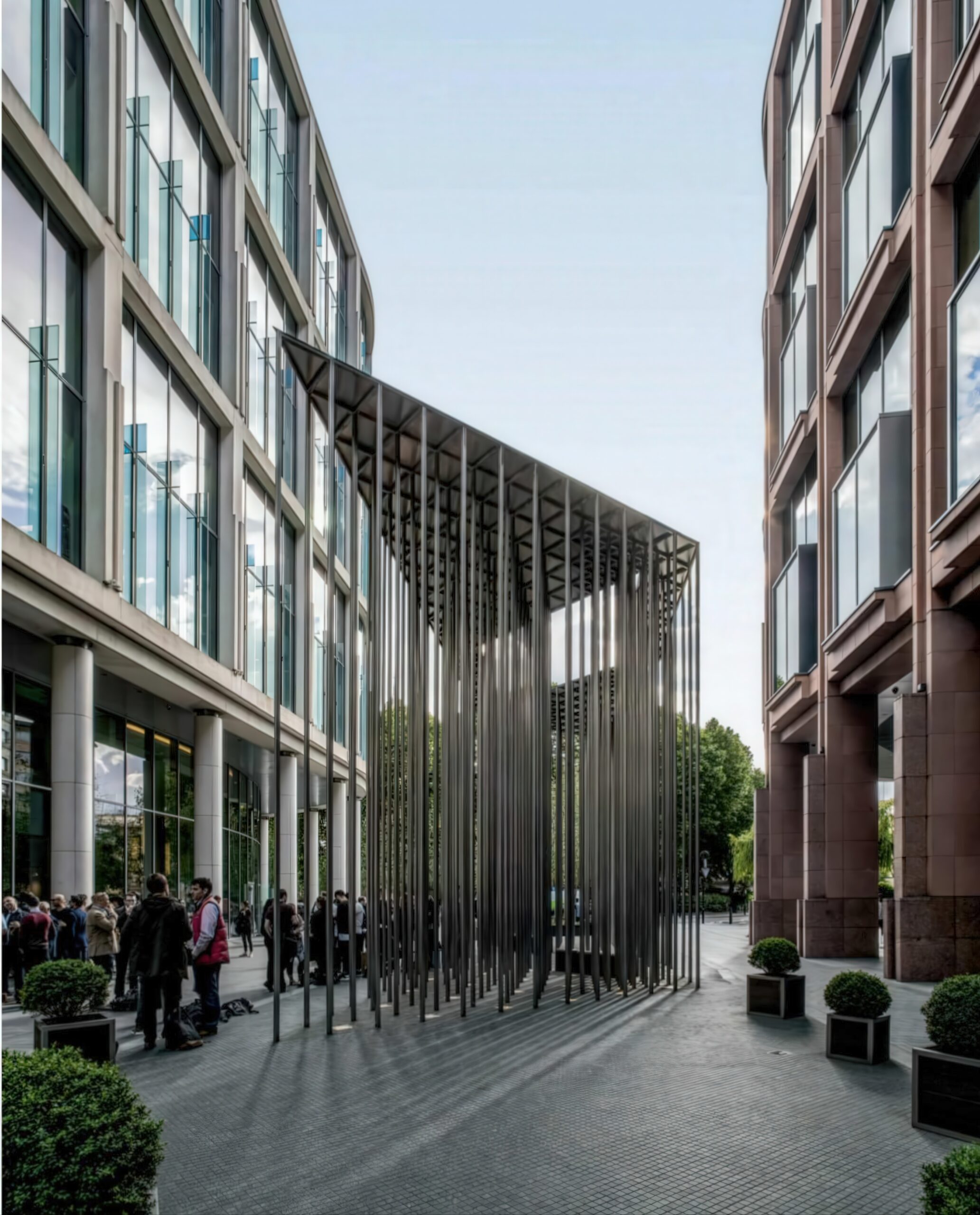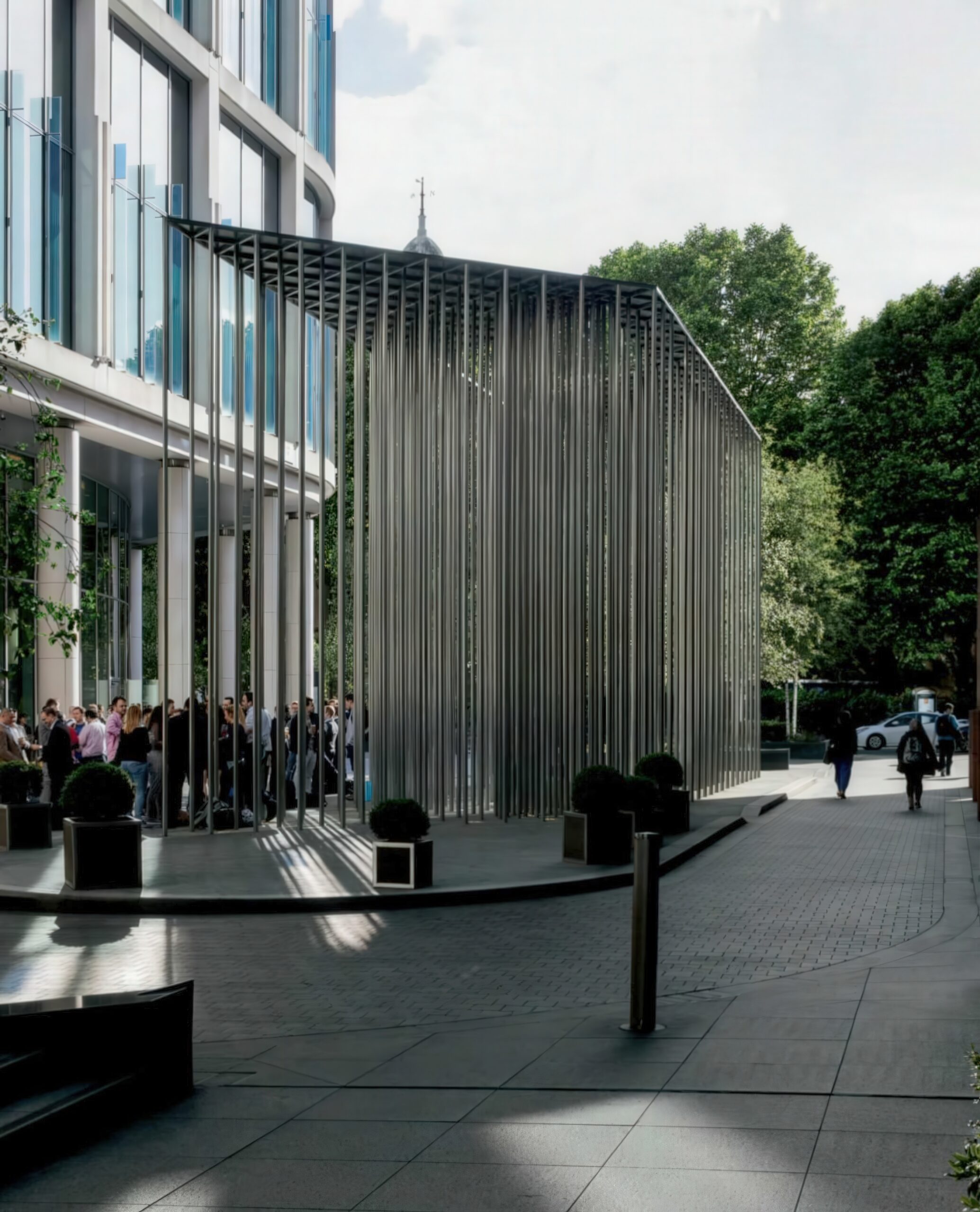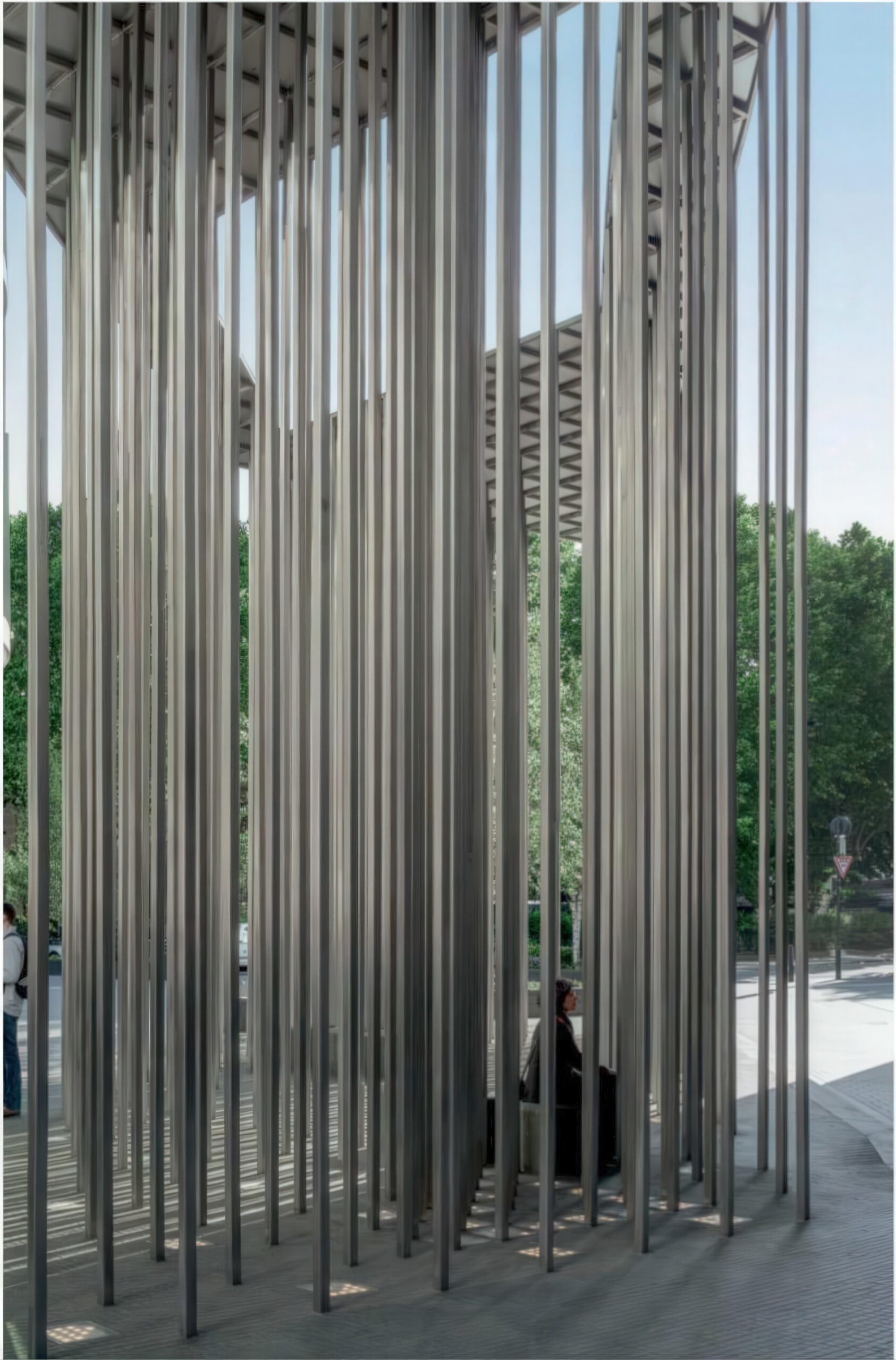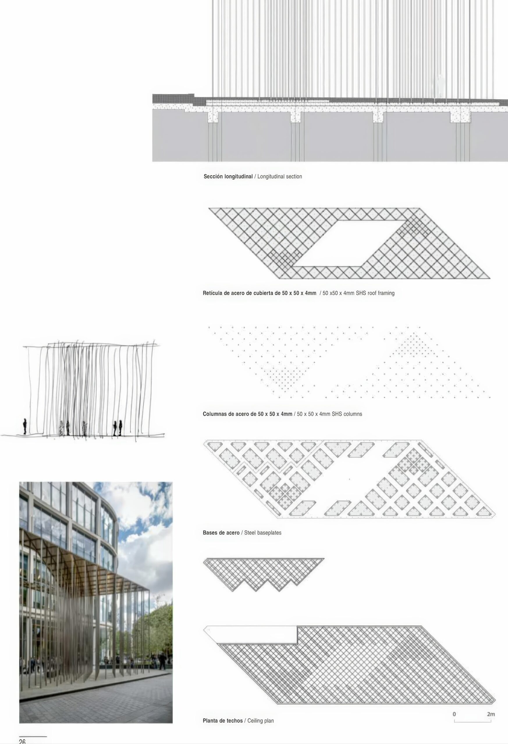 Regent’s Place Pavilion | 卡莫迪·格罗克建筑事务所|Carmody Groarke 卡莫迪·格罗克建筑事务所|Carmody Groarke • 2025-11-27 上午8:50 • 公共建筑设计, 建筑师, 建筑设计, 文化建筑设计 Regent’s Place Pavilion是位于伦敦尤斯顿路北侧的一座永久性公共建筑装置。该项目由卡莫迪·格罗克建筑事务所设计,通过8米高的不锈钢杆阵列支撑薄钢板顶篷,在商业开发区内创造了一个标志性的公共空间节点。设计通过移除部分结构集群形成通道和休息区,在白天和夜晚分别产生不同的光影效果,增强了行人穿越公共空间的体验。 设计: 卡莫迪·格罗克建筑事务所|Carmody Groarke 类型: 文化建筑设计 功能: 社区中心 风格: 当代建筑 材料: 钢材 金属板 尺度: 小型建筑 地点:伦敦 时间: 2011年 项目简介 Regent’s Place Pavilion是位于英国伦敦的一座永久性公共建筑装置,建筑面积约200平方米,设计于2010年,建成于2011年。 设计理念 设计团队以”城市孤岛”为概念,在总体规划中作为一个独立的标志性元素,清晰地标示出步行街的两端。通过不锈钢杆阵列的密度变化和光影效果,创造出动态的视觉体验。 空间与功能 装置通过移除部分结构集群形成蜿蜒的通道和宽敞的休息区域,在不围合空间的前提下定义了公共领域。路径设计引导行人流动,同时提供停留休憩的功能。 材料与技术 采用拉丝不锈钢杆作为主要结构材料,支撑薄钢板顶篷。夜间通过向上照明技术强化结构的视觉通透性,使整个装置仿佛在结构中”容纳”光线。 设计团队 卡莫迪·格罗克建筑事务所是英国知名建筑设计事务所,专注于文化建筑、展览设计和公共空间装置,以其精致的材料运用和创新的空间策略著称。 项目简介 Regent’s Place Pavilion是位于英国伦敦的一座永久性公共建筑装置,建筑面积约200平方米,设计于2010年,建成于2011年。 设计理念 设计团队以”城市孤岛”为概念,在总体规划中作为一个独立的标志性元素,清晰地标示出步行街的两端。通过不锈钢杆阵列的密度变化和光影效果,创造出动态的视觉体验。 空间与功能 装置通过移除部分结构集群形成蜿蜒的通道和宽敞的休息区域,在不围合空间的前提下定义了公共领域。路径设计引导行人流动,同时提供停留休憩的功能。 材料与技术 采用拉丝不锈钢杆作为主要结构材料,支撑薄钢板顶篷。夜间通过向上照明技术强化结构的视觉通透性,使整个装置仿佛在结构中”容纳”光线。 设计团队 卡莫迪·格罗克建筑事务所是英国知名建筑设计事务所,专注于文化建筑、展览设计和公共空间装置,以其精致的材料运用和创新的空间策略著称。 本文来自 © 卡莫迪·格罗克建筑事务所|Carmody Groarke, 发布于 © 建筑学院官方网站。 未经授权,禁止转载或摘编。 编辑版本版权归 © 建筑学院官方网站 所有, 设计、图纸及照片版权归设计方 © 卡莫迪·格罗克建筑事务所|Carmody Groarke ↗ 所有。 查看作者在建筑学院发布的更多作品: 卡莫迪·格罗克建筑事务所|Carmody Groarke @ 建筑学院官方网站 Regent's Place Pavilion不锈钢伦敦公共建筑装置卡莫迪·格罗克建筑事务所 卡莫迪·格罗克建筑事务所|Carmody Groarke事务所 & 设计师 下载原图 收藏 0 关于作者 卡莫迪·格罗克建筑事务所|Carmody Groarke事务所 & 设计师 关注私信 15 文章 0 评论 0 粉丝 卡莫迪·格罗克(Carmody Groarke)是一家位于伦敦的建筑事务所,由凯文·卡莫迪(Kevin Carmody)和安迪·格罗克(Andy Groarke)于2006年共同创立。该事务所以其在国际范围内开展的一系列艺术、文化和遗产项目而闻名。他们善于通过精巧的建筑介入,对特定的场地文脉与历史做出深刻而细腻的当代回应,其作品范围涵盖大型公共装置、美术馆、酒店以及私人住宅等多个领域,形成了独特的设计语言。 曼彻斯特科学与工业博物馆特别展览馆 Special Exhibition Gallery,Museum of Science and Industry, Manchester | 卡莫迪·格罗克建筑事务所|Carmody Groarke 上一篇 2025-11-27 上午12:50 新昌小球中心Sports Mall / line+ 下一篇 2025-11-27 下午12:36 猜你喜欢 七七事变纪念碑 7 July Memorial | 卡莫迪·格罗克建筑事务所|Carmody Groarke 2025-12-27 建筑师设计 阳光雨房——多层次的城市花园 / Tonkin Liu Architects 2017-12-19 住宅建筑设计 南伦敦美术馆 South London Gallery | 6a 建筑事务所|6a architects 2025-10-28 公共建筑设计 Studio in a Ruin and Lake Pavilion, East Sussex | 卡莫迪·格罗克建筑事务所|Carmody Groarke 2025-11-28 住宅室内设计 凹凸有致,方正有形的伦敦联排小住宅 2017-12-14 住宅建筑设计 福斯特事务所公布伦敦新地标“郁金香”方案,俯瞰“小黄瓜” 2018-11-23 办公建筑设计 发表回复 请登录后评论...登录后才能评论 提交