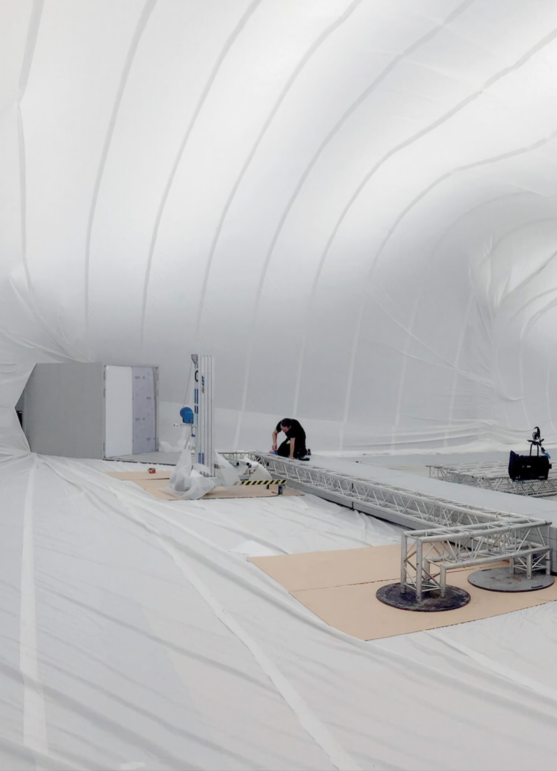 8分钟克莱内尔 Pavilion 8 Minutes… Celiné Pavilion | 斯米里扬·拉迪奇|Smiljan Radić 斯米里扬·拉迪奇|Smiljan Radić • 2025-11-28 上午12:50 • 公共建筑设计, 建筑师, 建筑设计, 文化建筑设计 8分钟克莱内尔 Pavilion 是智利建筑师斯米里扬·拉迪奇为2017年巴黎时装周Celine品牌设计的临时展馆。项目位于巴黎郊区的网球馆内,采用充气尼龙降落伞布料构建的巨型气泡结构,为900名观众创造了8分钟的时装秀体验空间,展现了临时建筑的轻盈与诗意。 设计: 斯米里扬·拉迪奇|Smiljan Radić 类型: 文化建筑设计 功能: 展览馆 风格: 当代建筑 材料: 织物 尺度: 微型建筑与装置 地点:巴黎 时间: 2017年 项目简介 8分钟克莱内尔 Pavilion 是位于法国巴黎郊区的临时展馆建筑,建筑面积约800平方米,专为2017年巴黎时装周Celine品牌秀设计建造。 设计理念 设计师斯米里扬·拉迪奇采用”反技术”策略,放弃复杂的双曲面建模系统,转而选择简单的平面几何充气袋。这种设计让现有建筑结构自然塑造气泡形态,创造出具有纺织品质感和感官体验的临时空间。 空间与功能 展馆内部为完全自主的洁净空间,无褶皱的充气结构为时装秀提供了理想的展示环境。900名观众在缓慢、轻盈且张力适中的气泡空间内,体验了由Phoebe Philo设计的8分钟时装表演。 材料与技术 采用尼龙降落伞布料替代常规的PVC涂层聚酯纤维,赋予建筑丝绸般的质感。简单的充气技术使结构能够快速安装和拆卸,体现了临时建筑的可持续性。 设计团队 斯米里扬·拉迪奇是智利著名建筑师,以其独特的临时建筑和装置艺术闻名,作品常探索材料、结构和空间的诗意表达。 项目简介 8分钟克莱内尔 Pavilion 是位于法国巴黎郊区的临时展馆建筑,建筑面积约800平方米,专为2017年巴黎时装周Celine品牌秀设计建造。 设计理念 设计师斯米里扬·拉迪奇采用”反技术”策略,放弃复杂的双曲面建模系统,转而选择简单的平面几何充气袋。这种设计让现有建筑结构自然塑造气泡形态,创造出具有纺织品质感和感官体验的临时空间。 空间与功能 展馆内部为完全自主的洁净空间,无褶皱的充气结构为时装秀提供了理想的展示环境。900名观众在缓慢、轻盈且张力适中的气泡空间内,体验了由Phoebe Philo设计的8分钟时装表演。 材料与技术 采用尼龙降落伞布料替代常规的PVC涂层聚酯纤维,赋予建筑丝绸般的质感。简单的充气技术使结构能够快速安装和拆卸,体现了临时建筑的可持续性。 设计团队 斯米里扬·拉迪奇是智利著名建筑师,以其独特的临时建筑和装置艺术闻名,作品常探索材料、结构和空间的诗意表达。 本文来自 © 斯米里扬·拉迪奇|Smiljan Radić, 发布于 © 建筑学院官方网站。 未经授权,禁止转载或摘编。 编辑版本版权归 © 建筑学院官方网站 所有, 设计、图纸及照片版权归设计方 © 斯米里扬·拉迪奇|Smiljan Radić ↗ 所有。 查看作者在建筑学院发布的更多作品: 斯米里扬·拉迪奇|Smiljan Radić @ 建筑学院官方网站 8分钟克莱内尔 Pavilion临时展馆充气结构巴黎时装周斯米里扬·拉迪奇 斯米里扬·拉迪奇|Smiljan Radić事务所 & 设计师 下载原图 收藏 0 关于作者 斯米里扬·拉迪奇|Smiljan Radić事务所 & 设计师 关注私信 19 文章 0 评论 0 粉丝 斯米里扬·拉迪奇(Smiljan Radić)是智利最具代表性的当代建筑师之一,以其独特的形式探索、材料创新及与自然环境的深刻对话而闻名。他1965年生于圣地亚哥,毕业于智利天主教大学,1995年创立个人事务所。拉迪克的作品多聚焦于中小型建筑,擅长通过手工生产与非工业材料展现建筑的"脆弱性"与临时感。其最广为人知的作品是2014年为伦敦蛇形画廊设计的展馆,被形容为"栖息于新石器时代遗址的外星太空舱"。其他重要项目包括Mestizo餐厅、VIK酒庄及铜屋二号等,其设计常融入巨石、粗糙混凝土等元素,在景观中创造既原始又诗意的空间体验。 沙漠方舟 / 中国首座极端沙漠环境下的 3D 打印混凝土建筑 上一篇 2025-11-27 下午2:00 布列塔尼街14套住宅 14 Housing Units on Rue des Bergers | 布鲁瑟建筑事务所|Bruther 下一篇 2025-11-28 上午8:50 猜你喜欢 黄色水塔house Yellow Water House | 斯米里扬·拉迪奇|Smiljan Radić 2025-12-08 公共建筑设计 黄色水塔house Yellow Water House | 斯米里扬·拉迪奇|Smiljan Radić 2026-01-16 建筑设计 触摸建筑 Touching Houses | 斯米里扬·拉迪奇|Smiljan Radić 2025-11-29 住宅室内设计 隐藏的房子 Hidden House | 斯米里扬·拉迪奇|Smiljan Radić 2025-12-07 公共建筑设计 木质房屋 Wooden House | 斯米里扬·拉迪奇|Smiljan Radić 2025-12-11 住宅室内设计 Folly Serpentine Gallery Pavilion Folly. Serpentine Gallery Pavilion | 斯米里扬·拉迪奇|Smiljan Radić 2025-12-07 公共建筑设计 发表回复 请登录后评论...登录后才能评论 提交