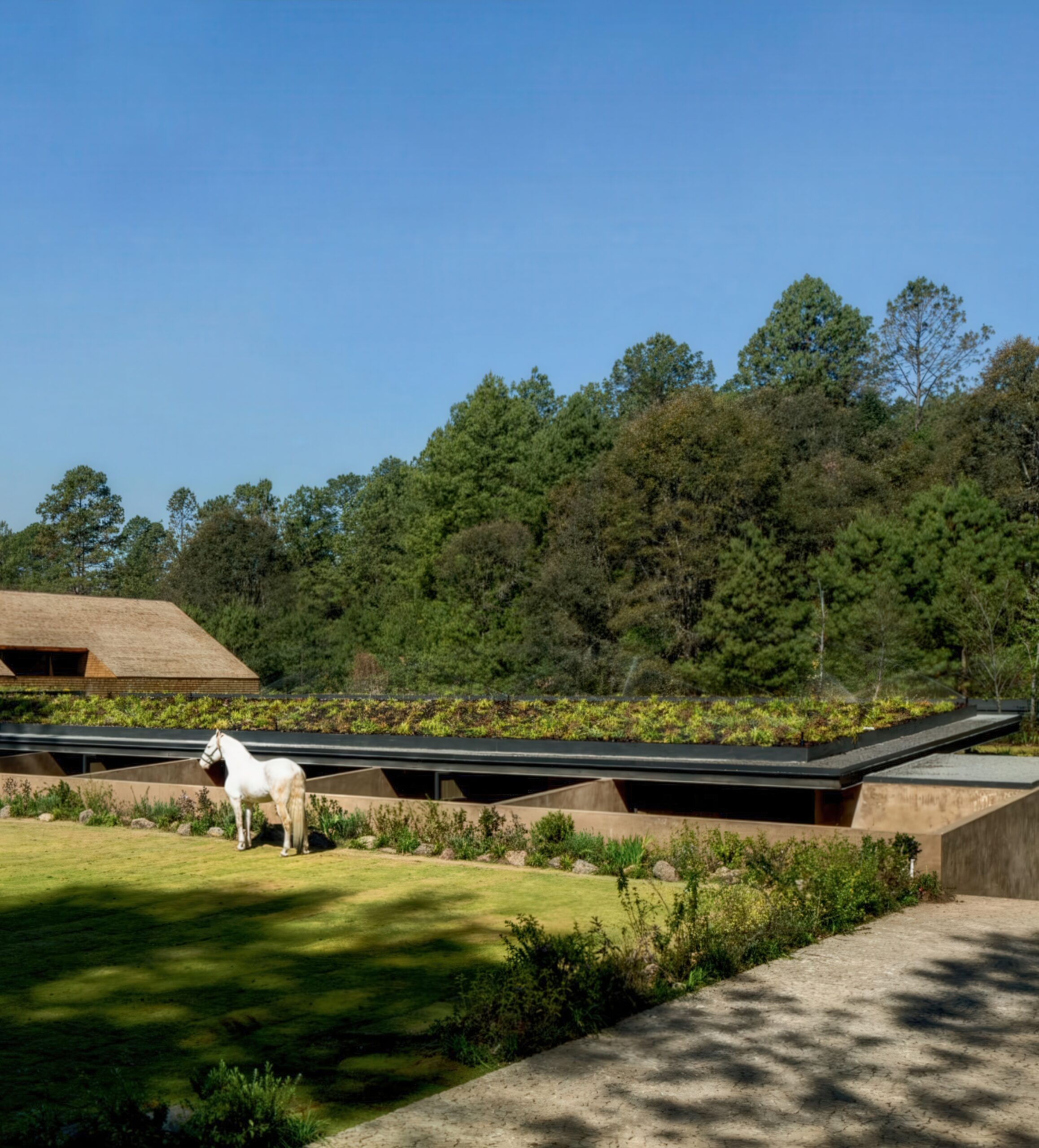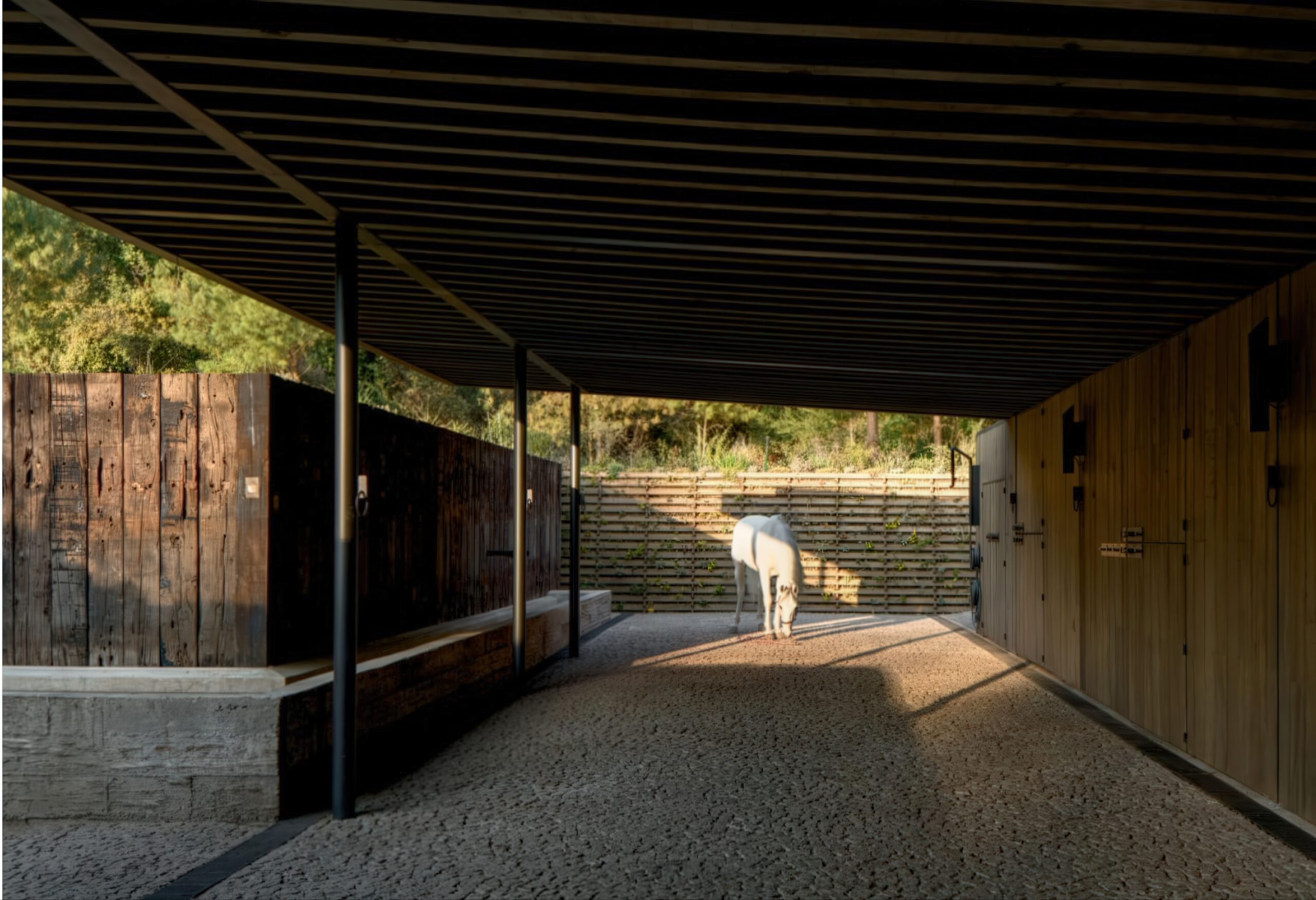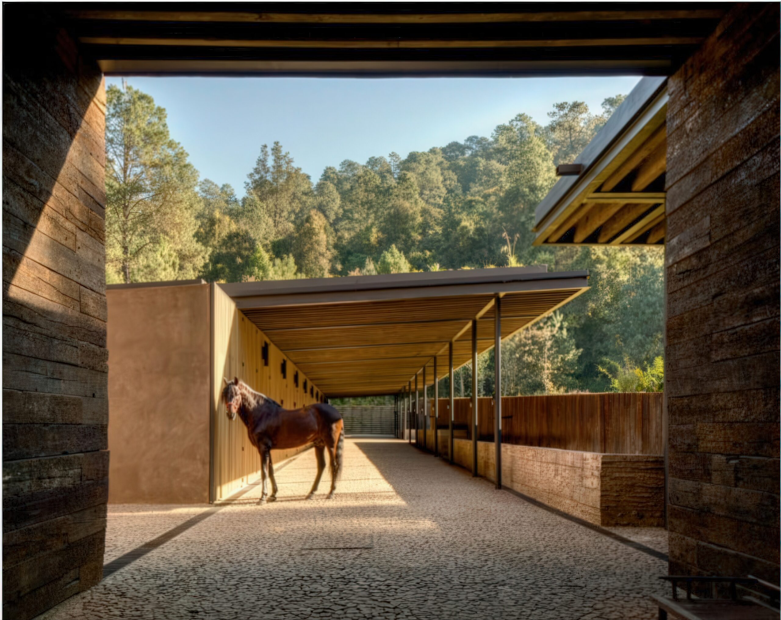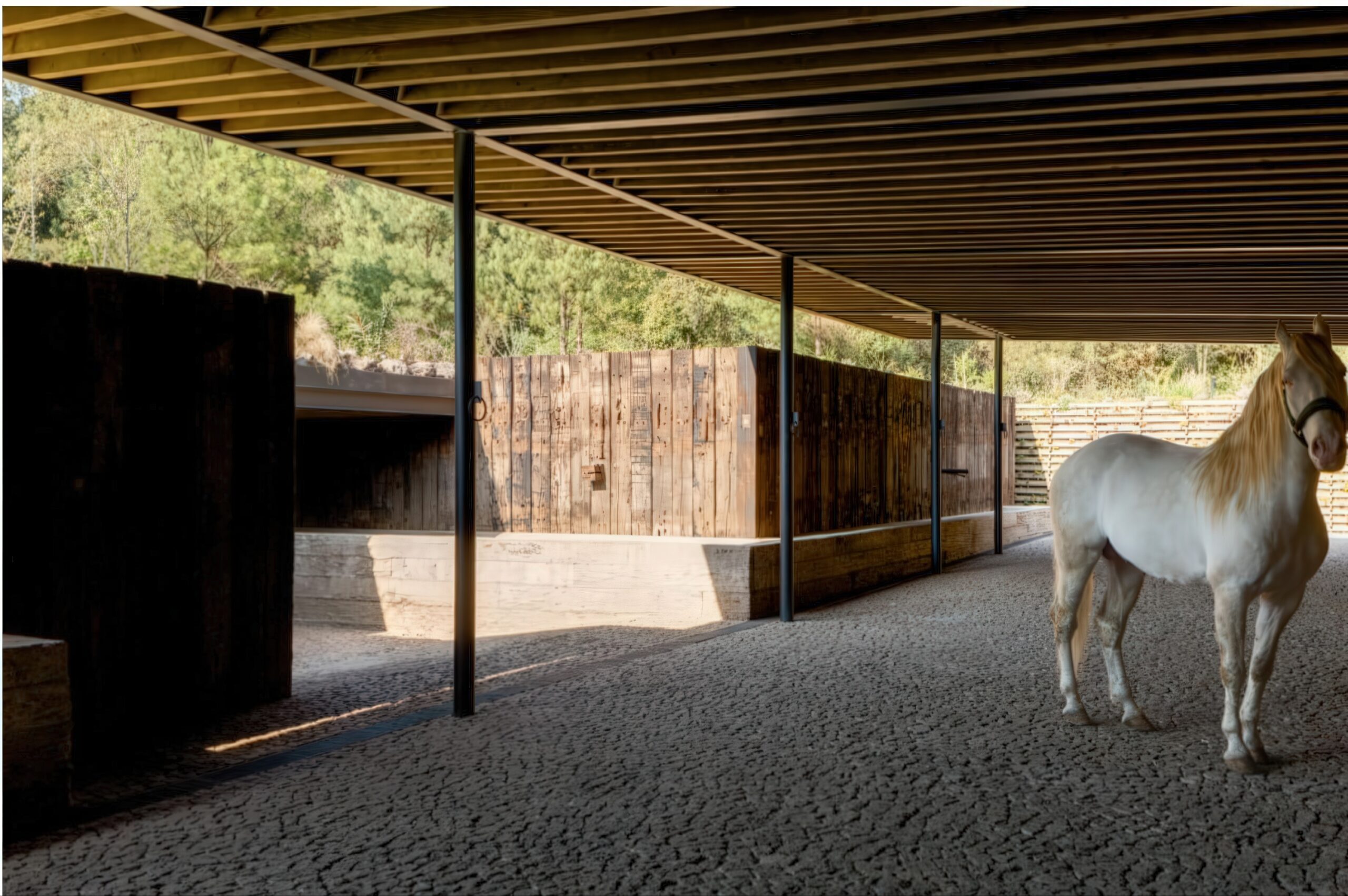 马术项目 Equestrian Project | 曼努埃尔·塞万提斯|Manuel Cervantes 曼努埃尔·塞万提斯|Manuel Cervantes • 2025-12-08 上午12:50 • 公共建筑设计, 建筑师, 建筑设计, 文化建筑设计 马术项目位于葡萄牙埃武拉,由曼努埃尔·塞万提斯设计,是一座融合住宅与马厩功能的建筑。项目巧妙利用缓坡地形,通过土方工程将马厩嵌入地形,保留山体植被视野。设计采用重复裸露木结构,营造温馨氛围,实现人与马匹亲密共处的空间体验。 设计: 曼努埃尔·塞万提斯|Manuel Cervantes 类型: 文化建筑设计 功能: 独立住宅 风格: 当代建筑 材料: 混凝土 木材 石材 金属板 尺度: 小型建筑 地点:葡萄牙 时间: 2015年 项目简介 马术项目位于葡萄牙埃武拉,是一座集住宅与马厩功能于一体的建筑。项目通过巧妙的地形处理,将建筑融入森林空地,最小化环境影响。 设计理念 设计核心是实现人与马匹的亲密共处。建筑师通过地形操作,将马厩锚固在缓坡上,保持山体植被视野的同时,通过重复裸露结构创造独特的空间氛围。 空间与功能 空间组织采用正负形体游戏,住宅与马厩通过共享路径连接。缓坡坡道引导人流,让人在漫步中逐步发现建筑。所有空间都渗透着森林、植被、空气和自然光线。 材料与技术 采用木材和金属元素构成主要结构,裸露的重复框架创造建筑真实性。使用陶瓷瓦屋顶、混凝土外墙和石材饰面,配合热绝缘和防水层,实现结构简洁与功能完善。 设计团队 曼努埃尔·塞万提斯建筑事务所专注于住宅和公共建筑,以对地形、材料和光线的敏感处理著称,善于创造与环境对话的建筑作品。 项目简介 马术项目位于葡萄牙埃武拉,是一座集住宅与马厩功能于一体的建筑。项目通过巧妙的地形处理,将建筑融入森林空地,最小化环境影响。 设计理念 设计核心是实现人与马匹的亲密共处。建筑师通过地形操作,将马厩锚固在缓坡上,保持山体植被视野的同时,通过重复裸露结构创造独特的空间氛围。 空间与功能 空间组织采用正负形体游戏,住宅与马厩通过共享路径连接。缓坡坡道引导人流,让人在漫步中逐步发现建筑。所有空间都渗透着森林、植被、空气和自然光线。 材料与技术 采用木材和金属元素构成主要结构,裸露的重复框架创造建筑真实性。使用陶瓷瓦屋顶、混凝土外墙和石材饰面,配合热绝缘和防水层,实现结构简洁与功能完善。 设计团队 曼努埃尔·塞万提斯建筑事务所专注于住宅和公共建筑,以对地形、材料和光线的敏感处理著称,善于创造与环境对话的建筑作品。 本文来自 © 曼努埃尔·塞万提斯|Manuel Cervantes, 发布于 © 建筑学院官方网站。 未经授权,禁止转载或摘编。 编辑版本版权归 © 建筑学院官方网站 所有, 设计、图纸及照片版权归设计方 © 曼努埃尔·塞万提斯|Manuel Cervantes ↗ 所有。 查看作者在建筑学院发布的更多作品: 曼努埃尔·塞万提斯|Manuel Cervantes @ 建筑学院官方网站 住宅马厩综合体埃武拉建筑曼努埃尔·塞万提斯木结构建筑马术项目 曼努埃尔·塞万提斯|Manuel Cervantes事务所 & 设计师 下载原图 收藏 0 关于作者 曼努埃尔·塞万提斯|Manuel Cervantes事务所 & 设计师 关注私信 19 文章 0 评论 0 粉丝 曼努埃尔·塞万提斯是墨西哥极具影响力的新生代建筑师。他的事务所以对材料、光线与构造的深刻理解和娴熟运用而闻名,尤其擅长运用夯土、木材和混凝土等本土材料,创造出与场地和环境紧密相连的现代建筑。其作品涵盖住宅、文化及商业项目,展现了简洁、宁静而富有 tactile 质感的设计美学。 巴西贝萨雷斯保护区两座房子 | 曼努埃尔·塞万提斯|Manuel Cervantes 上一篇 2025-12-07 下午5:00 铜屋II Copper House II | 孟买工作室(Studio Mumbai)|Studio Mumbai 下一篇 2025-12-08 上午8:50 猜你喜欢 玫瑰渡口运输交换点 El Rosario Transport Interchange | 曼努埃尔·塞万提斯|Manuel Cervantes 2025-12-10 公共建筑设计 迪森尼斯修道院农场 / Disentis Monastery Farm | 吉翁·A·卡米纳达|Gion A. Caminada 2天前 公共空间设计 阿瓦纳达罗之家 Avándaro House | 曼努埃尔·塞万提斯|Manuel Cervantes 2026-01-03 住宅建筑设计 阿马特佩克的房子 House in Amatepec | 曼努埃尔·塞万提斯|Manuel Cervantes 2025-12-04 公共建筑设计 Obernau村酒店 / Guesthouse in Obernau | 吉翁·A·卡米纳达|Gion A. Caminada 4天前 商业与综合建筑 多内塞尔大厦 Donceles Building | 曼努埃尔·塞万提斯|Manuel Cervantes 2025-12-09 公共建筑设计 发表回复 请登录后评论...登录后才能评论 提交