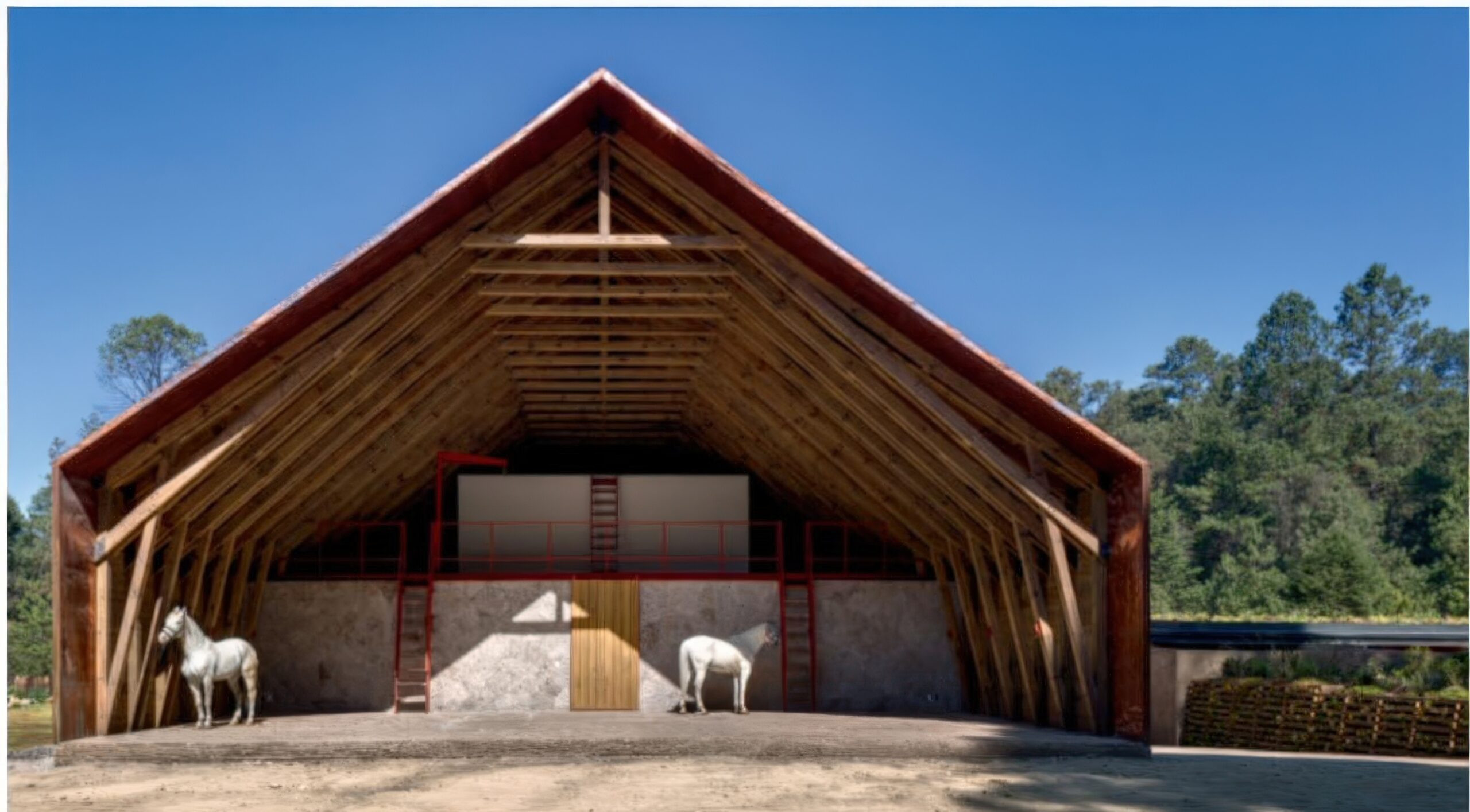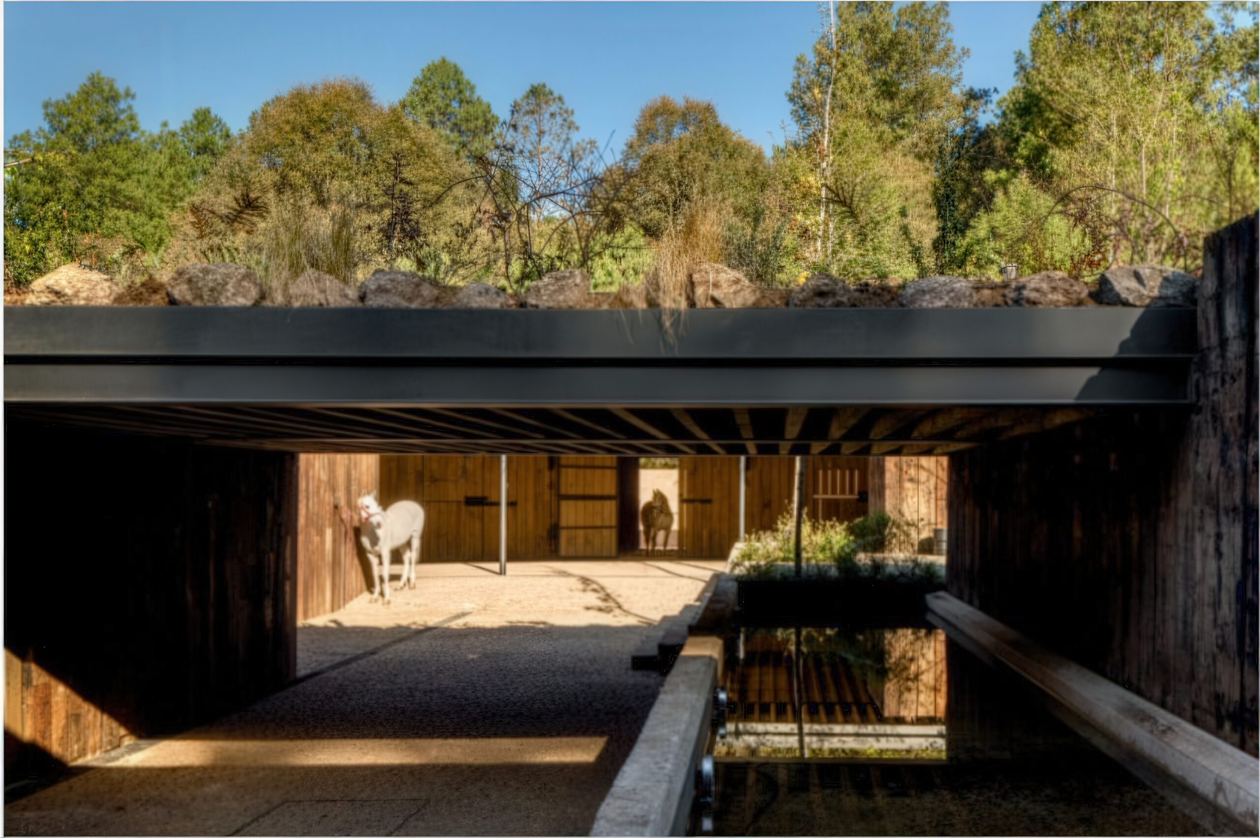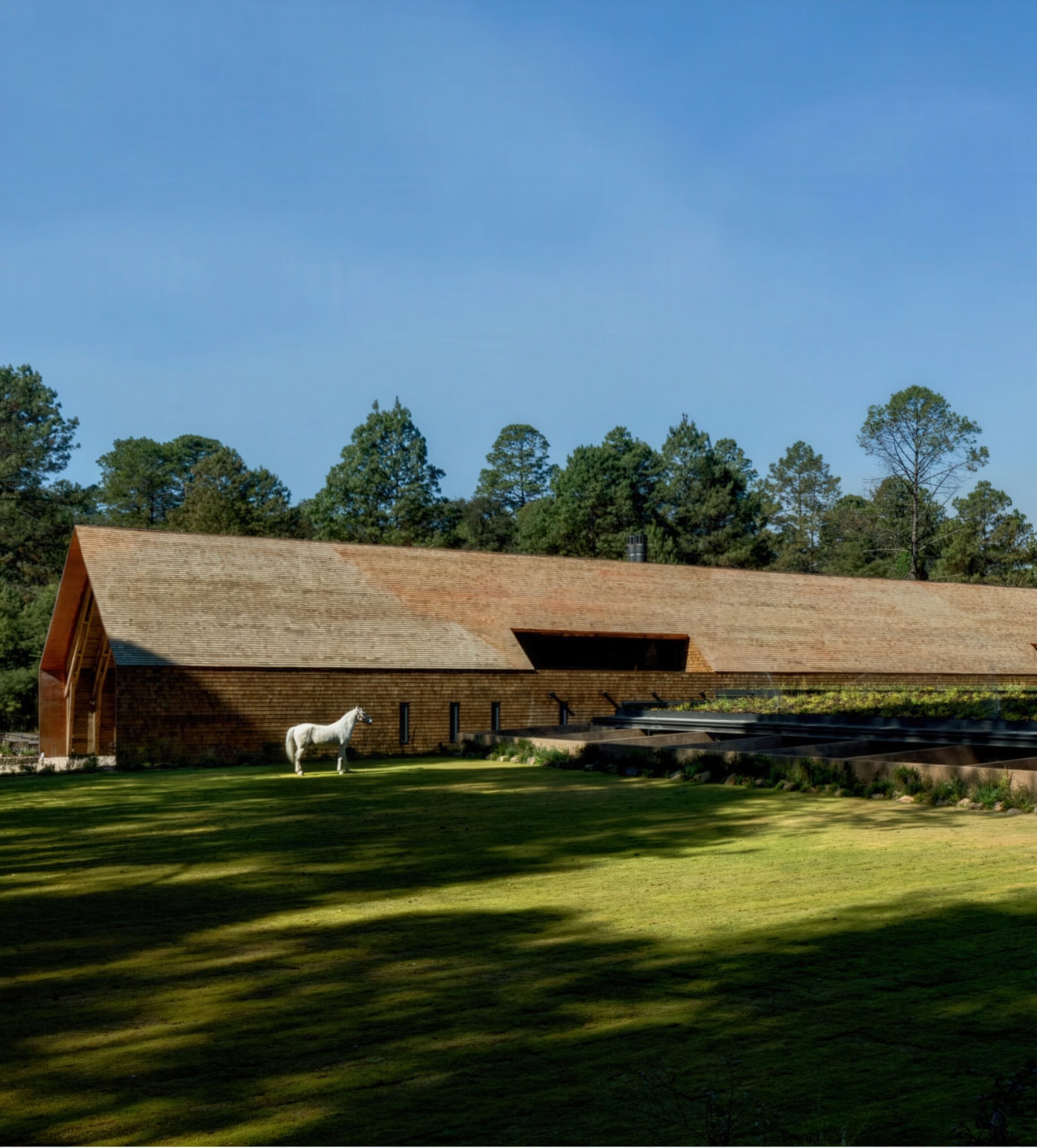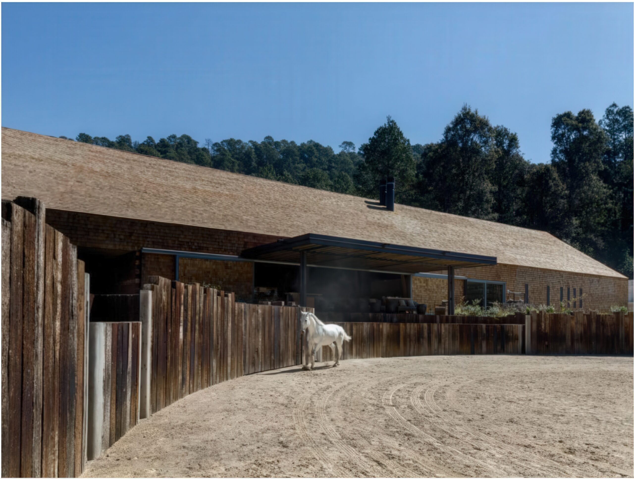 马术项目 Equestrian Project | 曼努埃尔·塞万提斯|Manuel Cervantes 曼努埃尔·塞万提斯|Manuel Cervantes • 2025-12-08 上午12:50 • 公共建筑设计, 建筑师, 建筑设计, 文化建筑设计 马术项目位于葡萄牙埃武拉,由曼努埃尔·塞万提斯设计,是一座融合住宅与马厩功能的建筑。项目巧妙利用缓坡地形,通过土方工程将马厩嵌入地形,保留山体植被视野。设计采用重复裸露木结构,营造温馨氛围,实现人与马匹亲密共处的空间体验。 设计: 曼努埃尔·塞万提斯|Manuel Cervantes 类型: 文化建筑设计 功能: 独立住宅 风格: 当代建筑 材料: 混凝土 木材 石材 金属板 尺度: 小型建筑 地点:葡萄牙 时间: 2015年 项目简介 马术项目位于葡萄牙埃武拉,是一座集住宅与马厩功能于一体的建筑。项目通过巧妙的地形处理,将建筑融入森林空地,最小化环境影响。 设计理念 设计核心是实现人与马匹的亲密共处。建筑师通过地形操作,将马厩锚固在缓坡上,保持山体植被视野的同时,通过重复裸露结构创造独特的空间氛围。 空间与功能 空间组织采用正负形体游戏,住宅与马厩通过共享路径连接。缓坡坡道引导人流,让人在漫步中逐步发现建筑。所有空间都渗透着森林、植被、空气和自然光线。 材料与技术 采用木材和金属元素构成主要结构,裸露的重复框架创造建筑真实性。使用陶瓷瓦屋顶、混凝土外墙和石材饰面,配合热绝缘和防水层,实现结构简洁与功能完善。 设计团队 曼努埃尔·塞万提斯建筑事务所专注于住宅和公共建筑,以对地形、材料和光线的敏感处理著称,善于创造与环境对话的建筑作品。 项目简介 马术项目位于葡萄牙埃武拉,是一座集住宅与马厩功能于一体的建筑。项目通过巧妙的地形处理,将建筑融入森林空地,最小化环境影响。 设计理念 设计核心是实现人与马匹的亲密共处。建筑师通过地形操作,将马厩锚固在缓坡上,保持山体植被视野的同时,通过重复裸露结构创造独特的空间氛围。 空间与功能 空间组织采用正负形体游戏,住宅与马厩通过共享路径连接。缓坡坡道引导人流,让人在漫步中逐步发现建筑。所有空间都渗透着森林、植被、空气和自然光线。 材料与技术 采用木材和金属元素构成主要结构,裸露的重复框架创造建筑真实性。使用陶瓷瓦屋顶、混凝土外墙和石材饰面,配合热绝缘和防水层,实现结构简洁与功能完善。 设计团队 曼努埃尔·塞万提斯建筑事务所专注于住宅和公共建筑,以对地形、材料和光线的敏感处理著称,善于创造与环境对话的建筑作品。 本文来自 © 曼努埃尔·塞万提斯|Manuel Cervantes, 发布于 © 建筑学院官方网站。 未经授权,禁止转载或摘编。 编辑版本版权归 © 建筑学院官方网站 所有, 设计、图纸及照片版权归设计方 © 曼努埃尔·塞万提斯|Manuel Cervantes ↗ 所有。 查看作者在建筑学院发布的更多作品: 曼努埃尔·塞万提斯|Manuel Cervantes @ 建筑学院官方网站 住宅马厩综合体埃武拉建筑曼努埃尔·塞万提斯木结构建筑马术项目 曼努埃尔·塞万提斯|Manuel Cervantes事务所 & 设计师 下载原图 收藏 0 关于作者 曼努埃尔·塞万提斯|Manuel Cervantes事务所 & 设计师 关注私信 19 文章 0 评论 0 粉丝 曼努埃尔·塞万提斯是墨西哥极具影响力的新生代建筑师。他的事务所以对材料、光线与构造的深刻理解和娴熟运用而闻名,尤其擅长运用夯土、木材和混凝土等本土材料,创造出与场地和环境紧密相连的现代建筑。其作品涵盖住宅、文化及商业项目,展现了简洁、宁静而富有 tactile 质感的设计美学。 巴西贝萨雷斯保护区两座房子 | 曼努埃尔·塞万提斯|Manuel Cervantes 上一篇 2025-12-07 下午5:00 铜屋II Copper House II | 孟买工作室(Studio Mumbai)|Studio Mumbai 下一篇 2025-12-08 上午8:50 猜你喜欢 玫瑰渡口运输交换点 El Rosario Transport Interchange | 曼努埃尔·塞万提斯|Manuel Cervantes 2025-12-10 公共建筑设计 迪森尼斯修道院农场 / Disentis Monastery Farm | 吉翁·A·卡米纳达|Gion A. Caminada 2天前 公共空间设计 阿瓦纳达罗之家 Avándaro House | 曼努埃尔·塞万提斯|Manuel Cervantes 2026-01-03 住宅建筑设计 阿马特佩克的房子 House in Amatepec | 曼努埃尔·塞万提斯|Manuel Cervantes 2025-12-04 公共建筑设计 Obernau村酒店 / Guesthouse in Obernau | 吉翁·A·卡米纳达|Gion A. Caminada 4天前 商业与综合建筑 多内塞尔大厦 Donceles Building | 曼努埃尔·塞万提斯|Manuel Cervantes 2025-12-09 公共建筑设计 发表回复 请登录后评论...登录后才能评论 提交