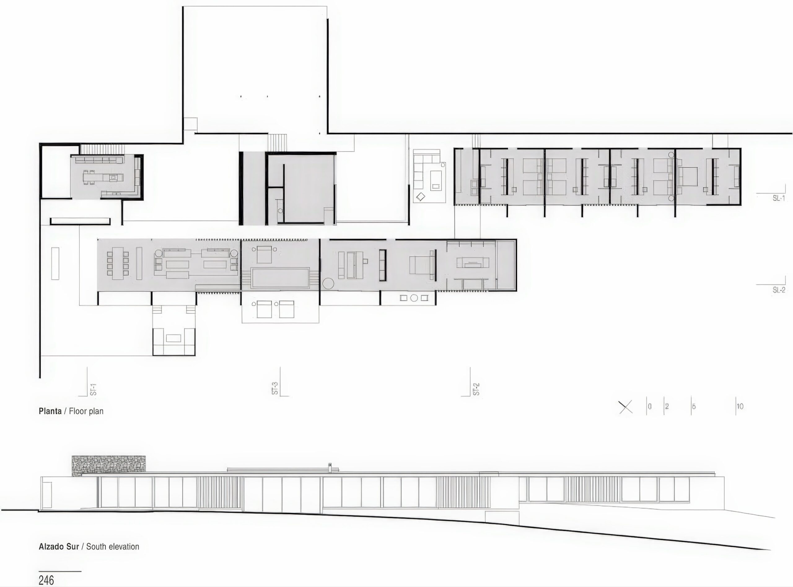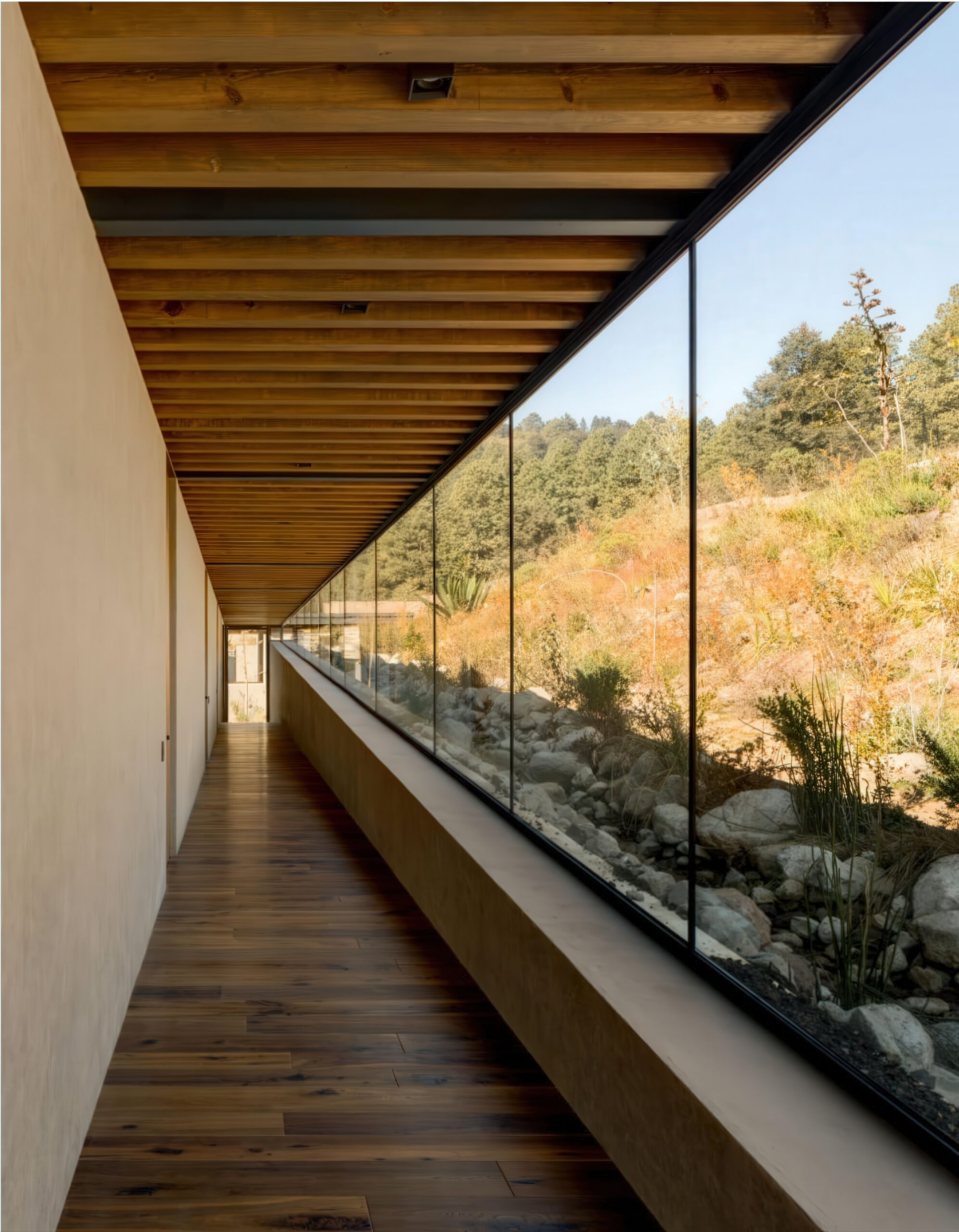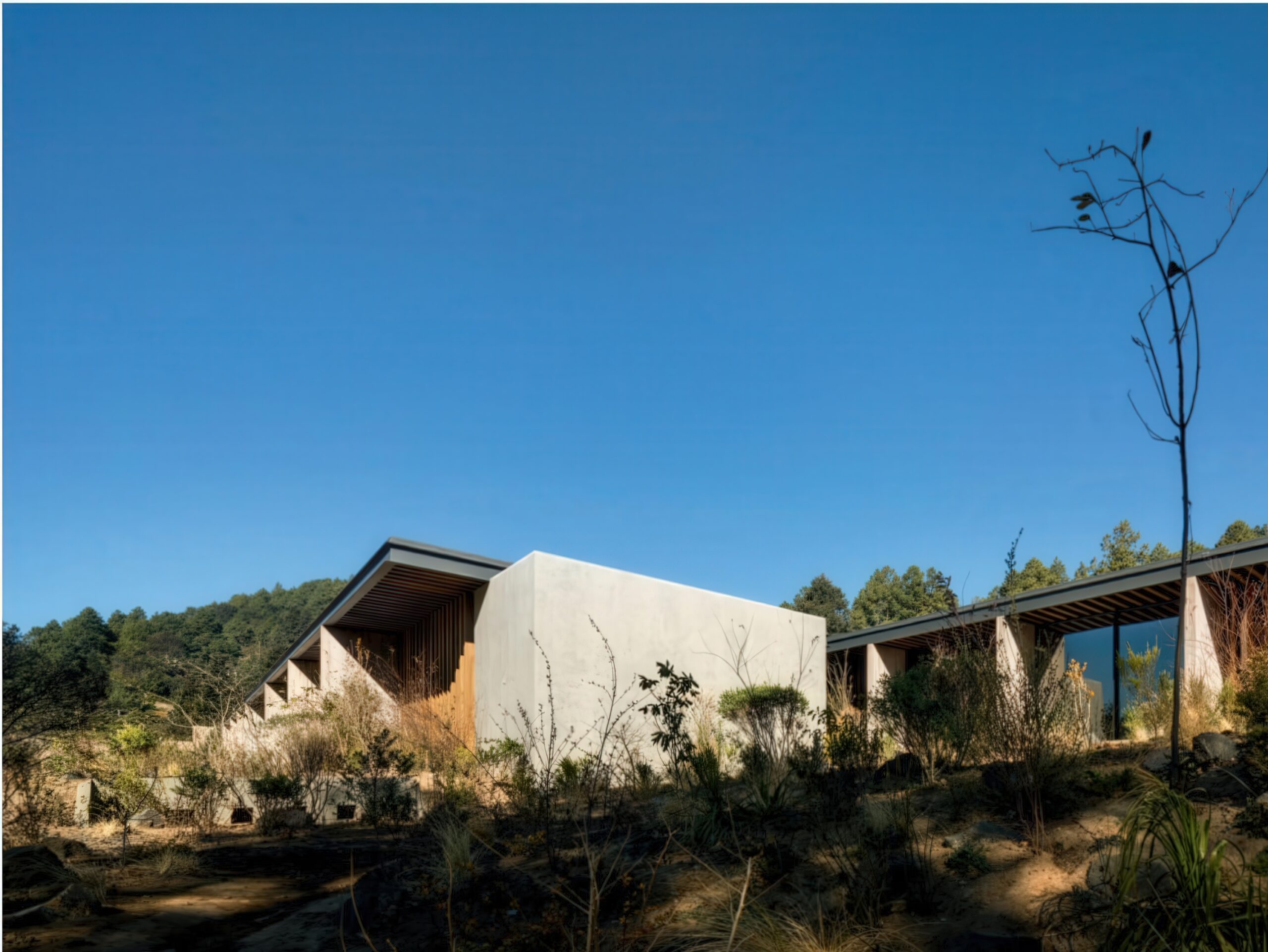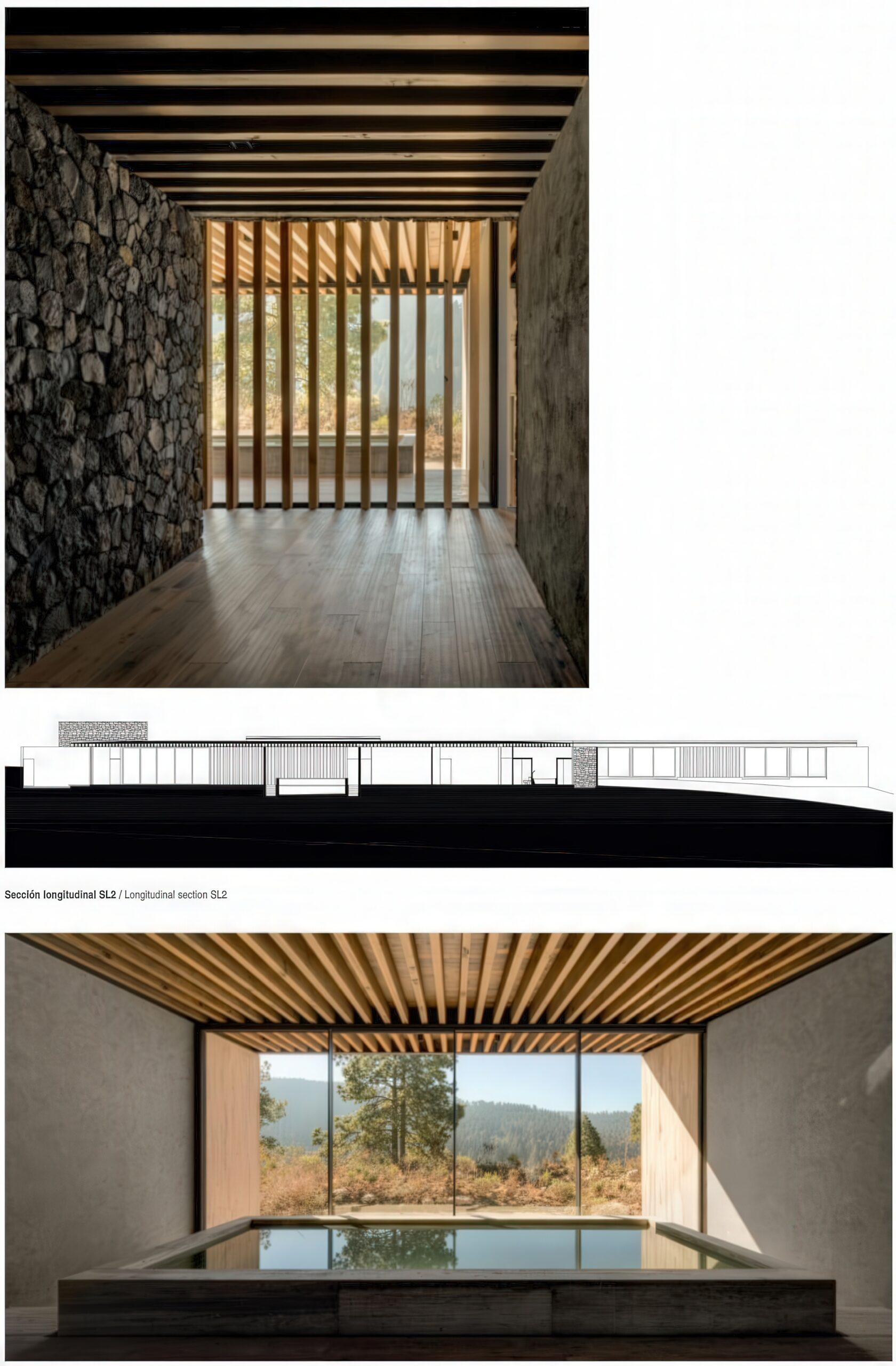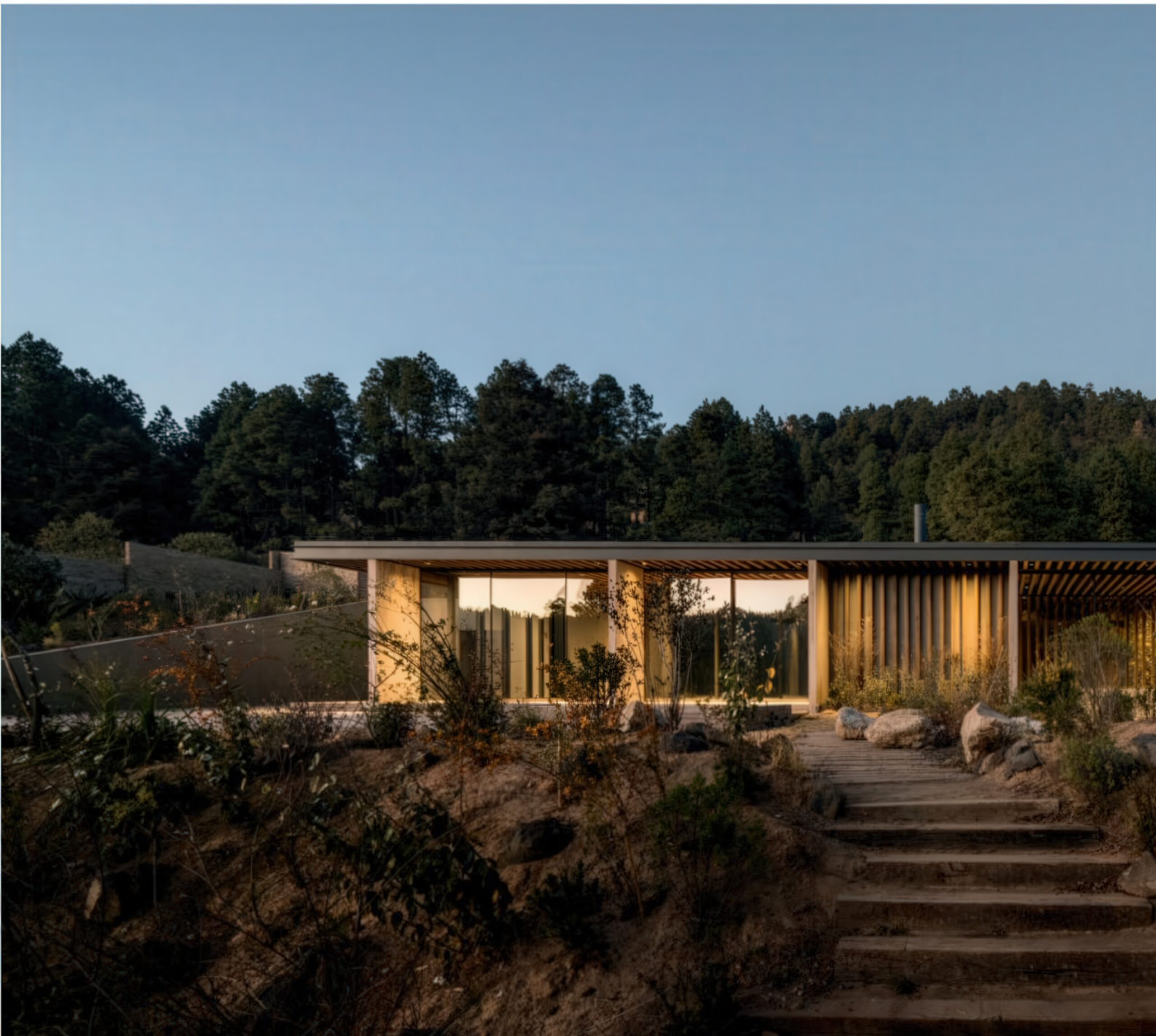 萨拉扎尔之家 Salazar House | 曼努埃尔·塞万提斯|Manuel Cervantes 曼努埃尔·塞万提斯|Manuel Cervantes • 2025-12-08 上午8:50 • 公共建筑设计, 建筑师, 建筑设计, 文化建筑设计 萨拉扎尔之家是由曼努埃尔·塞万提斯设计的独立住宅,位于墨西哥森林山坡上。项目采用线性布局与半埋式平台设计,充分利用地形优势与自然景观。建筑融合当地石材、木材与混凝土材料,通过开放式庭院与干砌石墙景观系统,实现与自然环境的完美融合。 设计: 曼努埃尔·塞万提斯|Manuel Cervantes 类型: 文化建筑设计 功能: 独立住宅 风格: 地域主义 材料: 混凝土 钢材 木材 石材 尺度: 小型建筑 地点:墨西哥 时间: 2018年 项目简介 萨拉扎尔之家位于墨西哥森林山坡上,是一座独立住宅项目,建筑面积约400平方米,设计于2018年,建成于2020年。 设计理念 设计团队以尊重自然环境为核心,采用半埋式平台策略,北侧嵌入山坡,南侧完全开放,优化采光与视野,实现建筑与森林景观的和谐共生。 空间与功能 线性布局的空间组织包括下沉式车辆庭院、社交区带开放式露台、厨房服务区、室内池塘、游戏室、客厅、主卧带画室,以及四个额外卧室,所有生活空间均享有开阔的森林视野。 材料与技术 采用混合结构体系,包括砌石墙、金属梁和裸露木材,结合当地石材地板、粗犺抹灰和清水混凝土墙,景观设计通过干砌石墙形成梯田系统,配合干河床实现雨水管理与防侵蚀。 设计团队 曼努埃尔·塞万提斯建筑事务所是墨西哥知名设计团队,专注于住宅建筑与自然环境融合,以材料真实性与空间体验著称。 项目简介 萨拉扎尔之家位于墨西哥森林山坡上,是一座独立住宅项目,建筑面积约400平方米,设计于2018年,建成于2020年。 设计理念 设计团队以尊重自然环境为核心,采用半埋式平台策略,北侧嵌入山坡,南侧完全开放,优化采光与视野,实现建筑与森林景观的和谐共生。 空间与功能 线性布局的空间组织包括下沉式车辆庭院、社交区带开放式露台、厨房服务区、室内池塘、游戏室、客厅、主卧带画室,以及四个额外卧室,所有生活空间均享有开阔的森林视野。 材料与技术 采用混合结构体系,包括砌石墙、金属梁和裸露木材,结合当地石材地板、粗犺抹灰和清水混凝土墙,景观设计通过干砌石墙形成梯田系统,配合干河床实现雨水管理与防侵蚀。 设计团队 曼努埃尔·塞万提斯建筑事务所是墨西哥知名设计团队,专注于住宅建筑与自然环境融合,以材料真实性与空间体验著称。 本文来自 © 曼努埃尔·塞万提斯|Manuel Cervantes, 发布于 © 建筑学院官方网站。 未经授权,禁止转载或摘编。 编辑版本版权归 © 建筑学院官方网站 所有, 设计、图纸及照片版权归设计方 © 曼努埃尔·塞万提斯|Manuel Cervantes ↗ 所有。 查看作者在建筑学院发布的更多作品: 曼努埃尔·塞万提斯|Manuel Cervantes @ 建筑学院官方网站 墨西哥曼努埃尔·塞万提斯独立住宅设计石材木材混凝土萨拉扎尔之家 曼努埃尔·塞万提斯|Manuel Cervantes事务所 & 设计师 下载原图 收藏 0 关于作者 曼努埃尔·塞万提斯|Manuel Cervantes事务所 & 设计师 关注私信 19 文章 0 评论 0 粉丝 曼努埃尔·塞万提斯是墨西哥极具影响力的新生代建筑师。他的事务所以对材料、光线与构造的深刻理解和娴熟运用而闻名,尤其擅长运用夯土、木材和混凝土等本土材料,创造出与场地和环境紧密相连的现代建筑。其作品涵盖住宅、文化及商业项目,展现了简洁、宁静而富有 tactile 质感的设计美学。 马术项目 Equestrian Project | 曼努埃尔·塞万提斯|Manuel Cervantes 上一篇 2025-12-08 上午12:50 Cuatro Caminos Transport Interchange | 曼努埃尔·塞万提斯|Manuel Cervantes 下一篇 2025-12-09 上午8:50 猜你喜欢 别墅托维诺森 / Villa Toivonen | Arrhov Frick 2026-01-24 住宅建筑设计 瓜达拉哈拉机场2号航站楼:CRTKL为墨西哥古城打造净零交通枢纽 2021-01-25 交通建筑设计 原生态拱顶海岸酒店 / Taller de Arquitectura X / Alberto Kalach 2022-03-14 建筑设计 三个农村住房原型 Three Rural Housing Prototypes | 曼努埃尔·塞万提斯|Manuel Cervantes 2025-12-12 住宅室内设计 Bredören 住宅 / House in Bredören | Arrhov Frick 建筑事务所 2026-01-02 住宅建筑设计 嵌入深巷的狭长住宅——梅里达住宅 2020-05-19 建筑设计 发表回复 请登录后评论...登录后才能评论 提交