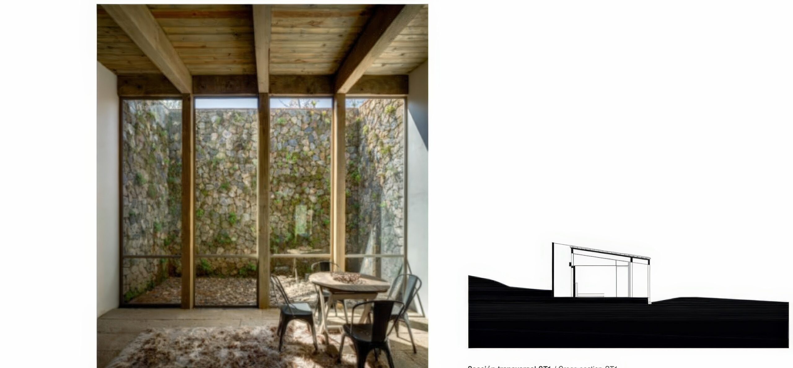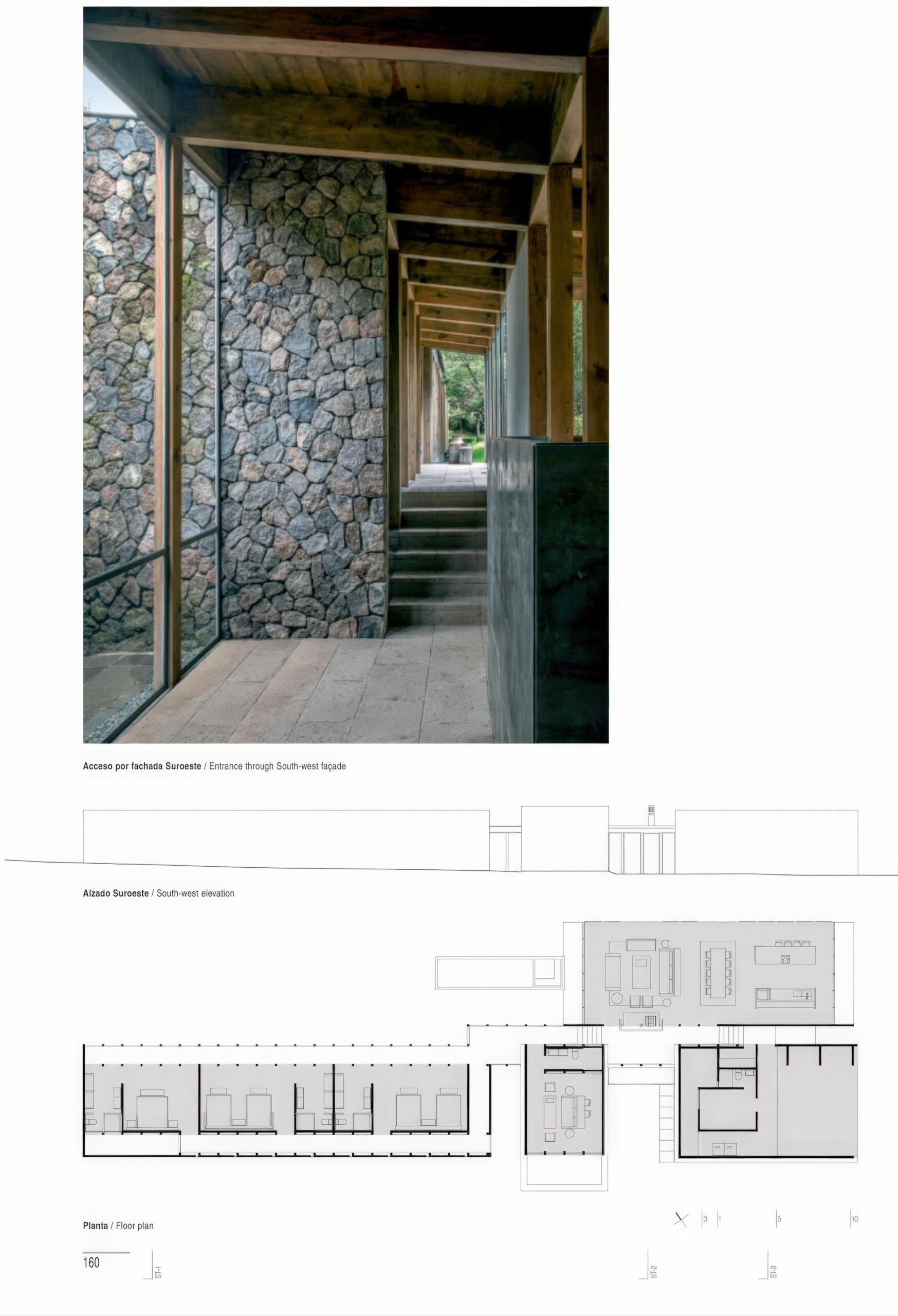 萨尔瓦多山谷的房子 House in Valle Santana | 曼努埃尔·塞万提斯|Manuel Cervantes 曼努埃尔·塞万提斯|Manuel Cervantes • 2小时前 • 公共建筑设计, 建筑师, 建筑设计, 文化建筑设计 萨尔瓦多山谷的房子是曼努埃尔·塞万提斯设计的独立住宅项目,位于墨西哥萨尔瓦多山谷。项目以现有树木为中心构建入口庭院,采用暴露木结构和当地材料,实现与森林环境的和谐共生。设计巧妙融合室内外空间,提供全景森林视野,体现了地域主义与可持续建筑理念。 设计: 曼努埃尔·塞万提斯|Manuel Cervantes 类型: 文化建筑设计 功能: 独立住宅 风格: 地域主义 材料: 木材 石材 砖材 尺度: 小型建筑 地点:墨西哥 时间: 2020年 项目简介 萨尔瓦多山谷的房子位于墨西哥萨尔瓦多山谷,是一座独立住宅项目,建筑面积约300平方米,设计于2018年,2020年建成。 设计理念 设计团队以最小化环境干预为核心理念,利用场地现有树木作为空间组织中心,通过倾斜木框架结构塑造建筑形态,实现建筑与森林环境的无缝融合。 空间与功能 项目围绕入口庭院组织空间布局,社交区域整合客厅、餐厅和厨房,通过走廊连接工作室和三间卧室。卧室设有覆盖廊道,确保所有生活空间都能欣赏森林全景。 材料与技术 采用暴露木结构体系,结合当地石材、粗抹灰和砖墙等本土材料,提供气候防护和视觉私密性。现场定制家具使用石材饰面和结构木材,强化材料统一性。 设计团队 曼努埃尔·塞万提斯是墨西哥知名建筑师,其事务所专注于住宅设计,以对场地环境的敏感回应、材料真实表达和可持续建造策略著称。 项目简介 萨尔瓦多山谷的房子位于墨西哥萨尔瓦多山谷,是一座独立住宅项目,建筑面积约300平方米,设计于2018年,2020年建成。 设计理念 设计团队以最小化环境干预为核心理念,利用场地现有树木作为空间组织中心,通过倾斜木框架结构塑造建筑形态,实现建筑与森林环境的无缝融合。 空间与功能 项目围绕入口庭院组织空间布局,社交区域整合客厅、餐厅和厨房,通过走廊连接工作室和三间卧室。卧室设有覆盖廊道,确保所有生活空间都能欣赏森林全景。 材料与技术 采用暴露木结构体系,结合当地石材、粗抹灰和砖墙等本土材料,提供气候防护和视觉私密性。现场定制家具使用石材饰面和结构木材,强化材料统一性。 设计团队 曼努埃尔·塞万提斯是墨西哥知名建筑师,其事务所专注于住宅设计,以对场地环境的敏感回应、材料真实表达和可持续建造策略著称。 本文来自 © 曼努埃尔·塞万提斯|Manuel Cervantes, 发布于 © 建筑学院官方网站。 未经授权,禁止转载或摘编。 编辑版本版权归 © 建筑学院官方网站 所有, 设计、图纸及照片版权归设计方 © 曼努埃尔·塞万提斯|Manuel Cervantes ↗ 所有。 查看作者在建筑学院发布的更多作品: 曼努埃尔·塞万提斯|Manuel Cervantes @ 建筑学院官方网站 墨西哥曼努埃尔·塞万提斯木结构独立住宅设计萨尔瓦多山谷的房子 曼努埃尔·塞万提斯|Manuel Cervantes事务所 & 设计师 下载原图 收藏 0 关于作者 曼努埃尔·塞万提斯|Manuel Cervantes事务所 & 设计师 关注私信 4 文章 0 评论 0 粉丝 曼努埃尔·塞万提斯是墨西哥极具影响力的新生代建筑师。他的事务所以对材料、光线与构造的深刻理解和娴熟运用而闻名,尤其擅长运用夯土、木材和混凝土等本土材料,创造出与场地和环境紧密相连的现代建筑。其作品涵盖住宅、文化及商业项目,展现了简洁、宁静而富有 tactile 质感的设计美学。 伊维萨与福门特拉音乐舞蹈学院 / Music and Dance Conservatory of Ibiza and Formentera | 阿尔弗雷多·帕亚|Alfredo Payá 上一篇 1天前 越过山丘,去咖啡馆上看风景 下一篇 2018-11-06 上午9:30 猜你喜欢 Next Hydroponic Plant Next Hydroponic Plant | 曼努埃尔·塞万提斯|Manuel Cervantes 1天前 公共建筑设计 梅尔迪斯的房子 II / House in Melides II | 艾雷斯·马特乌斯建筑事务所 2025-11-11 公共建筑设计 吉贝住宅 2019-04-15 建筑设计 荒漠火山脊上的萨卡特卡斯4号别墅 / Campos Leckie Studio 2019-12-31 建筑设计 未完成的废墟感——墨西哥八梁宅 / Covachita Taller 2020-02-13 建筑设计 珊瑚岛住宅 Archipelago House | 谭姆与维德高德建筑事务所|Tham & Videgård 2025-11-09 住宅室内设计 发表回复 请登录后评论...登录后才能评论 提交