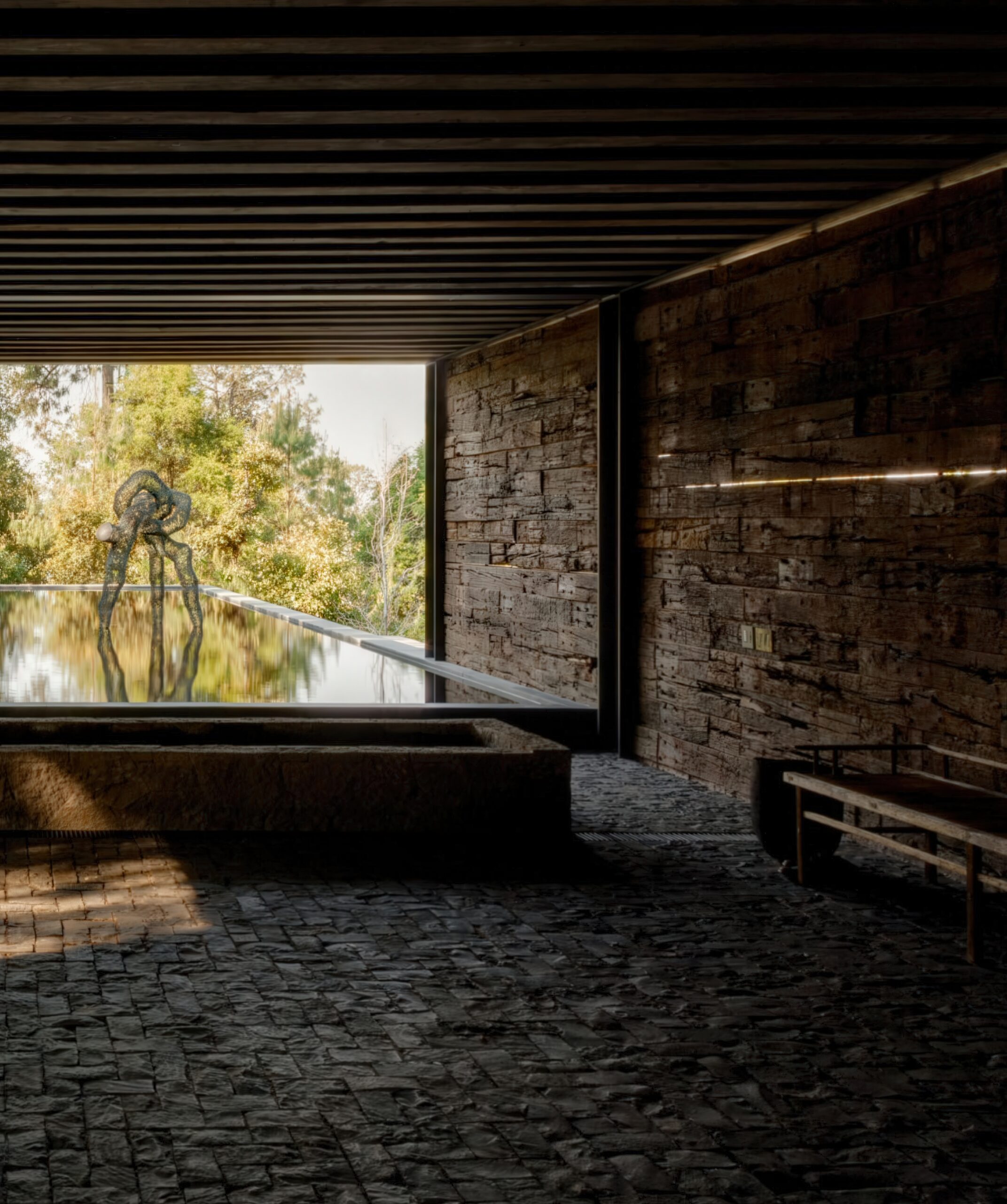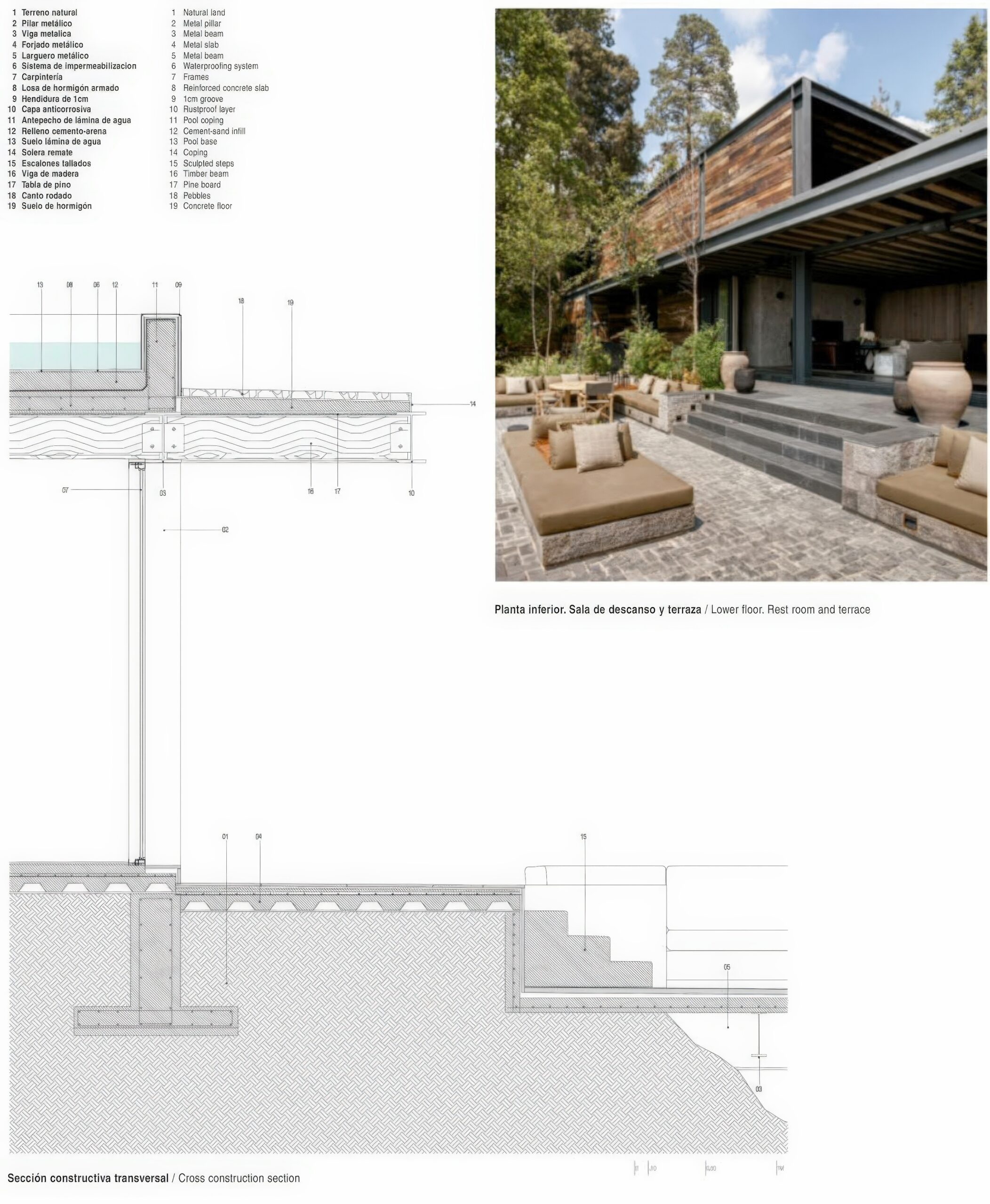 天顶观景台 El Mirador Pavilion | 曼努埃尔·塞万提斯|Manuel Cervantes 曼努埃尔·塞万提斯|Manuel Cervantes • 2025-12-08 上午8:50 • 公共建筑设计, 建筑师, 建筑设计, 文化建筑设计 天顶观景台 El Mirador Pavilion 是由曼努埃尔·塞万提斯设计的森林观景建筑,位于墨西哥的山丘顶端。项目采用双层结构顺应地形轮廓,为骑马者提供休憩空间。设计运用金属框架与回收铁路枕木,结合雨水收集系统,实现与自然环境的完美融合。 设计: 曼努埃尔·塞万提斯|Manuel Cervantes 类型: 文化建筑设计 功能: 独立住宅 风格: 地域主义 材料: 钢材 木材 石材 再生材料 尺度: 景观与场地尺度 地点:墨西哥 时间: 2020年 项目简介 天顶观景台 El Mirador Pavilion 位于墨西哥山丘森林中,是一座观景休憩建筑,建筑面积约150平方米,设计于2020年建成。 设计理念 设计团队以”从景观中生长”为核心理念,让建筑顺应地形轮廓自然浮现。通过双层结构清晰定义功能分区,强调建筑与森林环境的有机对话。 空间与功能 建筑分为两个明确层级:首层设有宽敞入口,供骑马者与马匹使用,配备饮水槽;二层为观景休憩平台。空间组织流畅,动线自然衔接室内外环境。 材料与技术 采用金属框架结构支撑回收铁路枕木立面与木梁屋顶,系统完全暴露展现构造美学。石材铺地与森林色调相融,接缝处允许植物自然生长,体现可持续设计策略。 设计团队 曼努埃尔·塞万提斯建筑事务所专注于地域性建筑与可持续设计,作品强调材料真实性与环境融合,在墨西哥当代建筑界具有重要影响力。 项目简介 天顶观景台 El Mirador Pavilion 位于墨西哥山丘森林中,是一座观景休憩建筑,建筑面积约150平方米,设计于2020年建成。 设计理念 设计团队以”从景观中生长”为核心理念,让建筑顺应地形轮廓自然浮现。通过双层结构清晰定义功能分区,强调建筑与森林环境的有机对话。 空间与功能 建筑分为两个明确层级:首层设有宽敞入口,供骑马者与马匹使用,配备饮水槽;二层为观景休憩平台。空间组织流畅,动线自然衔接室内外环境。 材料与技术 采用金属框架结构支撑回收铁路枕木立面与木梁屋顶,系统完全暴露展现构造美学。石材铺地与森林色调相融,接缝处允许植物自然生长,体现可持续设计策略。 设计团队 曼努埃尔·塞万提斯建筑事务所专注于地域性建筑与可持续设计,作品强调材料真实性与环境融合,在墨西哥当代建筑界具有重要影响力。 本文来自 © 曼努埃尔·塞万提斯|Manuel Cervantes, 发布于 © 建筑学院官方网站。 未经授权,禁止转载或摘编。 编辑版本版权归 © 建筑学院官方网站 所有, 设计、图纸及照片版权归设计方 © 曼努埃尔·塞万提斯|Manuel Cervantes ↗ 所有。 查看作者在建筑学院发布的更多作品: 曼努埃尔·塞万提斯|Manuel Cervantes @ 建筑学院官方网站 回收材料墨西哥天顶观景台曼努埃尔·塞万提斯观景建筑 曼努埃尔·塞万提斯|Manuel Cervantes事务所 & 设计师 下载原图 收藏 0 关于作者 曼努埃尔·塞万提斯|Manuel Cervantes事务所 & 设计师 关注私信 19 文章 0 评论 0 粉丝 曼努埃尔·塞万提斯是墨西哥极具影响力的新生代建筑师。他的事务所以对材料、光线与构造的深刻理解和娴熟运用而闻名,尤其擅长运用夯土、木材和混凝土等本土材料,创造出与场地和环境紧密相连的现代建筑。其作品涵盖住宅、文化及商业项目,展现了简洁、宁静而富有 tactile 质感的设计美学。 马术项目 Equestrian Project | 曼努埃尔·塞万提斯|Manuel Cervantes 上一篇 2025-12-08 上午12:50 Equestrian Puebla,马术综合体,普埃布拉,曼努埃尔·塞万提斯,大理石,分层布局 下一篇 2025-12-09 上午8:50 猜你喜欢 三个农村住房原型 Three Rural Housing Prototypes | 曼努埃尔·塞万提斯|Manuel Cervantes 2025-12-12 住宅室内设计 这是一座有艺术内涵的“网红”建筑 | 墨西哥门洞之宅 2020-12-26 住宅建筑设计 水泥和木材结合出奇妙的空间结构 — 图卢姆树屋美术馆 2018-05-08 展览空间 内向外表下营造巧妙诗意:Nizuc 01住宅 / WEWI Studio 2020-04-12 建筑设计 天堂小屋 Empírea House/TACO taller de arquitectura contextual 2021-05-23 住宅建筑设计 原生态拱顶海岸酒店 / Taller de Arquitectura X / Alberto Kalach 2022-03-14 建筑设计 发表回复 请登录后评论...登录后才能评论 提交