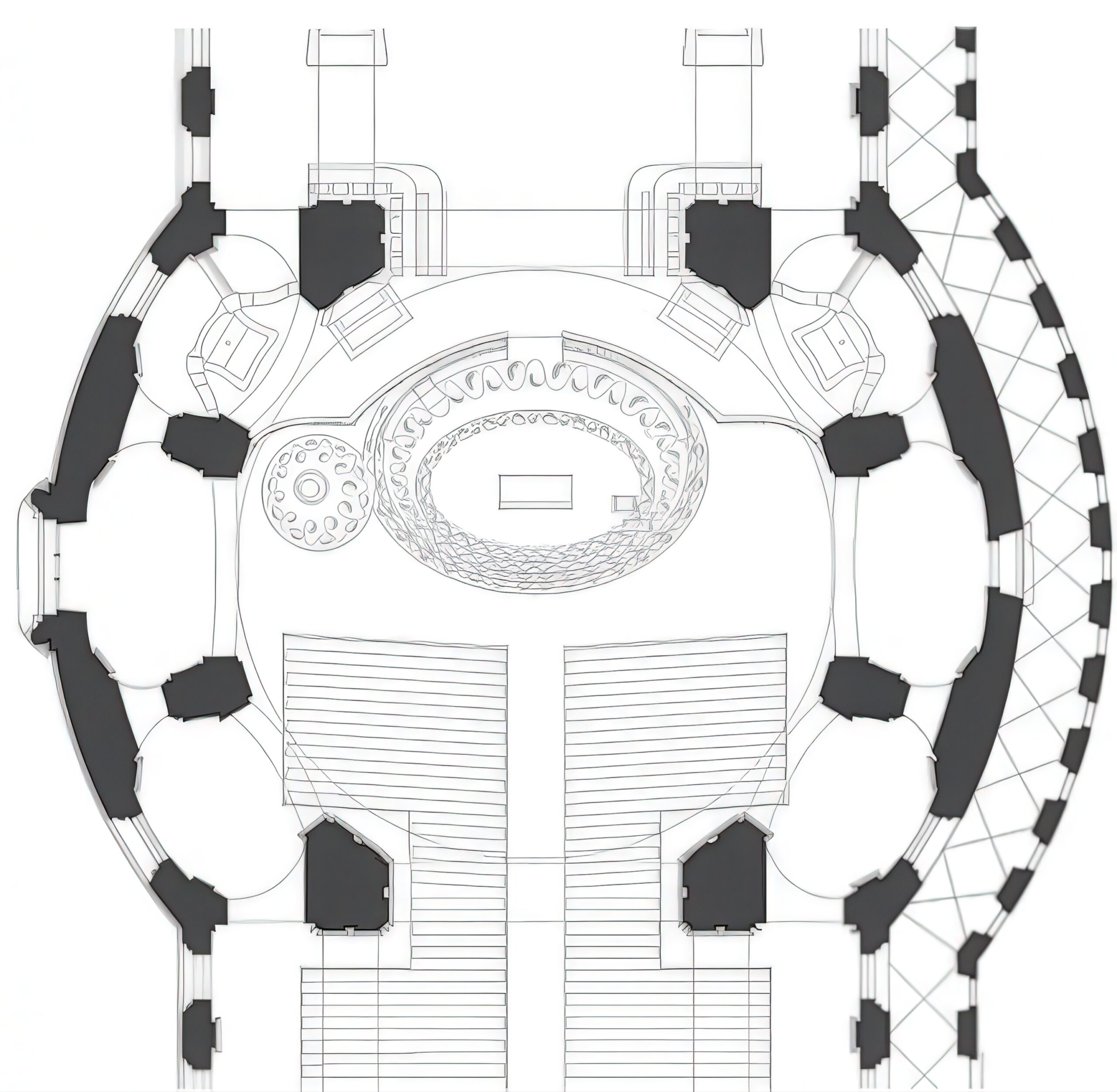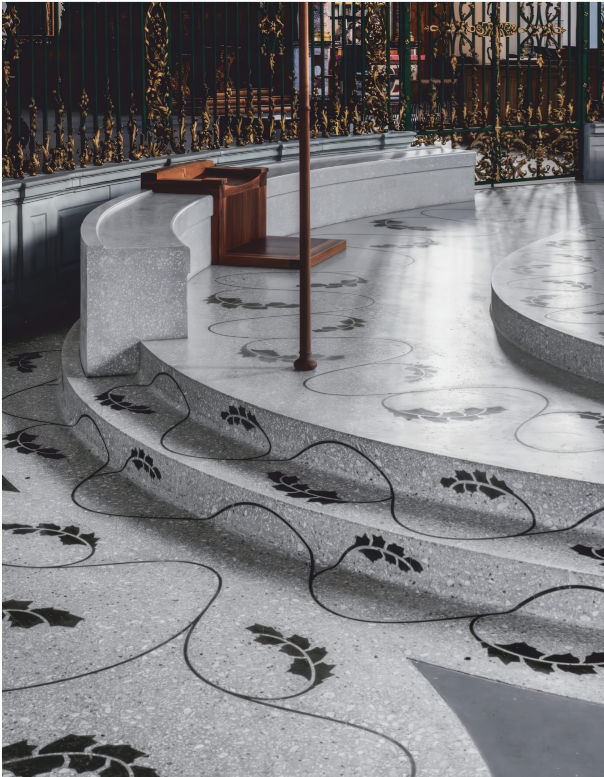 圣加尔教堂钟楼 St Gallen Cathedral Chancel | 卡鲁索·圣约翰建筑事务所|Caruso St John 卡鲁索·圣约翰建筑事务所|Caruso St John • 2025-12-08 上午12:50 • 公共建筑设计, 室内设计, 建筑师, 建筑设计, 文化建筑设计 圣加尔教堂钟楼是瑞士圣加尔市一座历史悠久的教堂内部空间改造项目。卡鲁索·圣约翰建筑事务所在2011-2013年间重新设计了教堂的圣坛区域,通过同心椭圆台阶和特制水磨石家具,为现代礼拜仪式创造了一个亲密的聚集空间,同时尊重原有洛可可式建筑的宏伟特质。 设计: 卡鲁索·圣约翰建筑事务所|Caruso St John 类型: 文化建筑设计 功能: 独立住宅 风格: 当代建筑 材料: 木材 石材 金属板 尺度: 室内空间 地点:瑞士 时间: 2011年 项目简介 圣加尔教堂钟楼位于瑞士圣加尔市,是一座历史教堂的内部空间改造项目。设计面积约200平方米,设计时间为2011年,建成于2013年。 设计理念 设计团队旨在解决1960年代临时木制圣坛造成的空间问题,通过建立新的垂直轴线,在教堂中心创造亲密的聚集空间,同时平衡原有洛可可式建筑的宏伟特质。 空间与功能 项目重新组织了教堂中心区域,设置了同心椭圆台阶形成的圣坛基座,配备祭坛、讲坛、洗礼池和神职人员半圆形座椅等仪式家具,优化了现代礼拜仪式的空间体验。 材料与技术 主要采用水磨石材料制作圣坛基座和仪式家具,辅以大理石、胡桃木和抛光金属镶嵌。设计通过精密的几何构图与原有建筑元素形成和谐对话。 设计团队 卡鲁索·圣约翰建筑事务所是英国知名建筑事务所,以对历史建筑的敏感介入和精致的材料运用著称,擅长在传统与现代之间建立深刻联系。 项目简介 圣加尔教堂钟楼位于瑞士圣加尔市,是一座历史教堂的内部空间改造项目。设计面积约200平方米,设计时间为2011年,建成于2013年。 设计理念 设计团队旨在解决1960年代临时木制圣坛造成的空间问题,通过建立新的垂直轴线,在教堂中心创造亲密的聚集空间,同时平衡原有洛可可式建筑的宏伟特质。 空间与功能 项目重新组织了教堂中心区域,设置了同心椭圆台阶形成的圣坛基座,配备祭坛、讲坛、洗礼池和神职人员半圆形座椅等仪式家具,优化了现代礼拜仪式的空间体验。 材料与技术 主要采用水磨石材料制作圣坛基座和仪式家具,辅以大理石、胡桃木和抛光金属镶嵌。设计通过精密的几何构图与原有建筑元素形成和谐对话。 设计团队 卡鲁索·圣约翰建筑事务所是英国知名建筑事务所,以对历史建筑的敏感介入和精致的材料运用著称,擅长在传统与现代之间建立深刻联系。 本文来自 © 卡鲁索·圣约翰建筑事务所|Caruso St John, 发布于 © 建筑学院官方网站。 未经授权,禁止转载或摘编。 编辑版本版权归 © 建筑学院官方网站 所有, 设计、图纸及照片版权归设计方 © 卡鲁索·圣约翰建筑事务所|Caruso St John ↗ 所有。 查看作者在建筑学院发布的更多作品: 卡鲁索·圣约翰建筑事务所|Caruso St John @ 建筑学院官方网站 卡鲁索·圣约翰圣加尔市圣加尔教堂钟楼教堂改造水磨石 卡鲁索·圣约翰建筑事务所|Caruso St John事务所 & 设计师 下载原图 收藏 0 关于作者 卡鲁索·圣约翰建筑事务所|Caruso St John事务所 & 设计师 关注私信 20 文章 0 评论 0 粉丝 卡鲁索·圣约翰建筑事务所(Caruso St John)是成立于1990年的英国知名建筑事务所,由亚当·卡鲁索(Adam Caruso)和彼得·圣约翰(Peter St John)合伙创立。该事务所以其深刻的概念思考、对历史文脉的尊重及精湛的材料运用而闻名于世,致力于创造“可随岁月流转缓慢感知的、拥有情感内容的建筑”。其代表作——伦敦纽波特街美术馆(Newport Street Gallery)曾荣获2016年英国斯特林建筑奖,砖屋(Brick House)和沃尔索尔新艺术画廊等项目也曾入围该奖项。 巴西贝萨雷斯保护区两座房子 | 曼努埃尔·塞万提斯|Manuel Cervantes 上一篇 2025-12-07 下午5:00 铜屋II Copper House II | 孟买工作室(Studio Mumbai)|Studio Mumbai 下一篇 2025-12-08 上午8:50 猜你喜欢 柏林艺术家之家 House for an Artist, Berlin | 卡鲁索·圣约翰建筑事务所|Caruso St John 2025-11-22 公共建筑设计 里尔酒店学院 Lycée Hôtelier de Lille | 卡鲁索·圣约翰建筑事务所|Caruso St John 2025-12-02 公共建筑设计 威尼斯国际建筑双年展,英国馆,2018年,威尼斯 Island, British Pavilion,Biennale Architettura 2018, Venice | 卡鲁索·圣约翰建筑事务所|Caruso St John 2025-12-11 公共建筑设计 山林里的隐秘餐厅 —— 三时享院,北京 / 谜舍设计工作室 2018-09-25 公共建筑设计 英国纳粹大屠杀纪念馆 United Kingdom Holocaust Memorial | 卡鲁索·圣约翰建筑事务所|Caruso St John 2025-12-09 公共建筑设计 一边迷失,一边寻找——Aesop 忠孝概念店 / CJ Studio 2017-08-07 商业建筑设计 发表回复 请登录后评论...登录后才能评论 提交