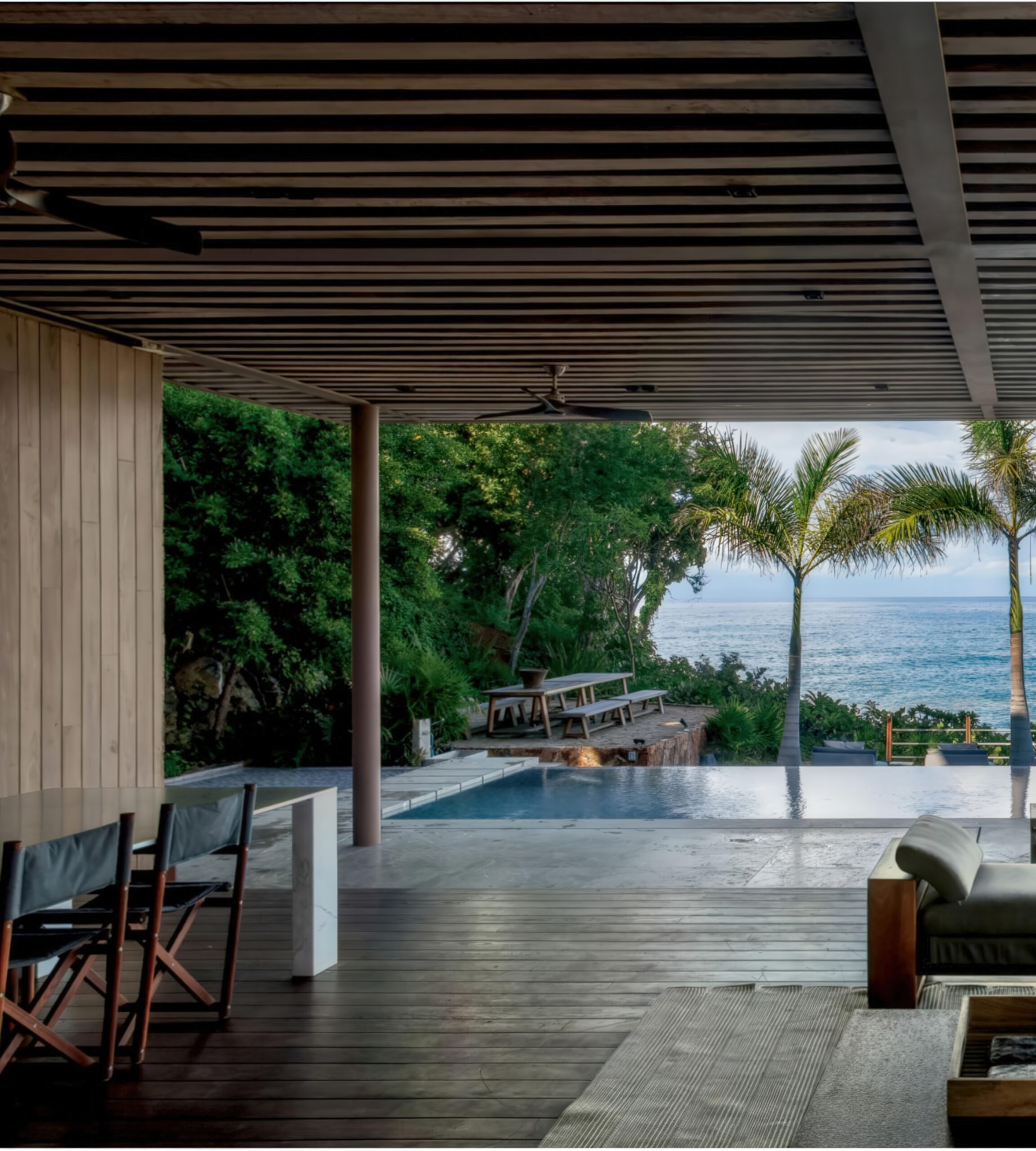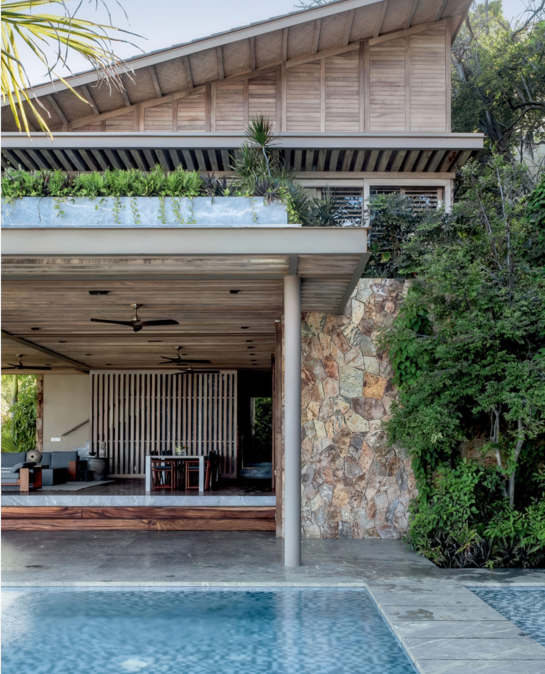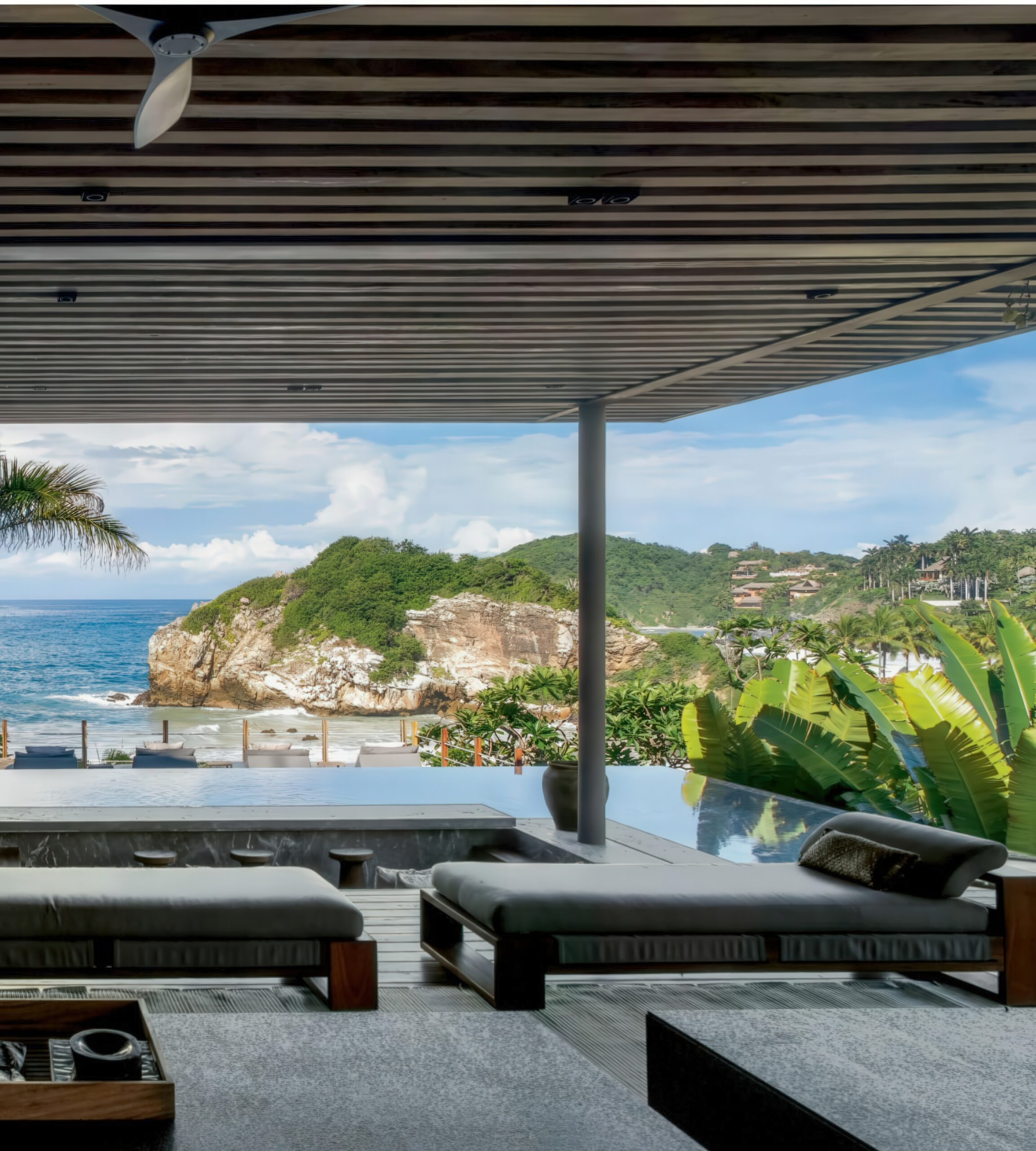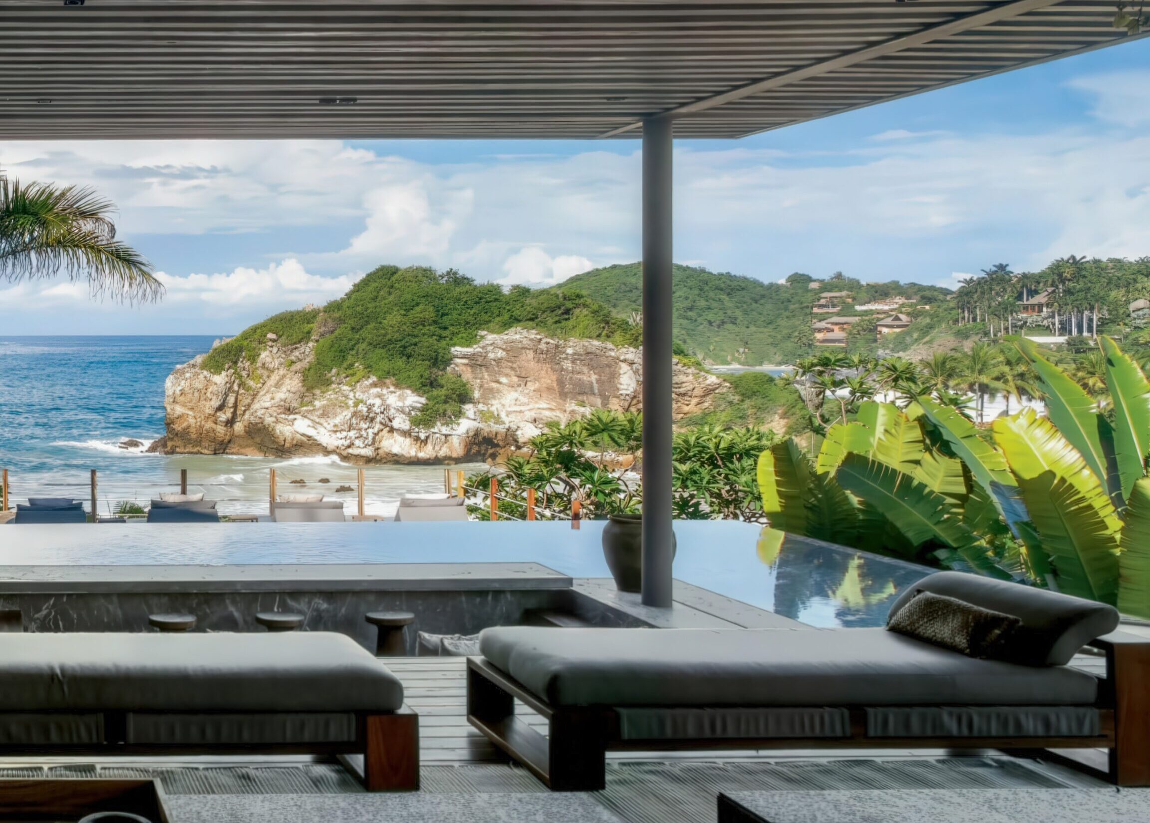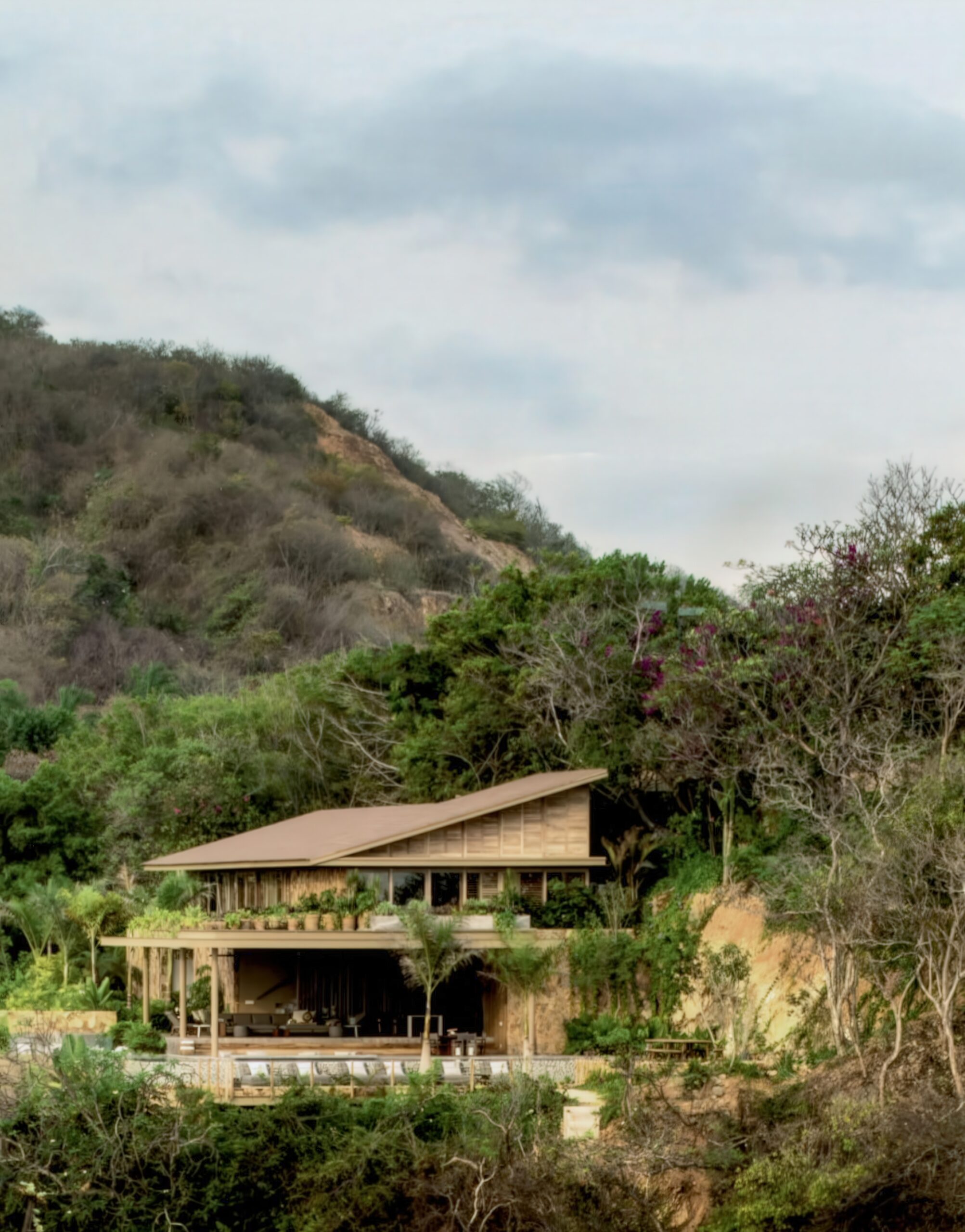 伊克塔帕半岛上的房子 House in Punta Ixtapa | 曼努埃尔·塞万提斯|Manuel Cervantes 曼努埃尔·塞万提斯|Manuel Cervantes • 2025-12-10 上午8:50 • 公共建筑设计, 建筑师, 建筑设计, 文化建筑设计 伊克塔帕半岛上的房子是曼努埃尔·塞万提斯在墨西哥太平洋沿岸设计的独立住宅。项目充分利用地形、海景与自然条件,通过金属木结构凉棚、滑动格栅和下沉式空间创造开放通透的居住环境。设计注重隐私保护与自然融合,选用当地大理石、帕罗塔木和石材,展现地域特色与可持续理念。 设计: 曼努埃尔·塞万提斯|Manuel Cervantes 类型: 文化建筑设计 功能: 独立住宅 风格: 地域主义 材料: 木材 玻璃 石材 金属板 尺度: 小型建筑 地点:墨西哥 时间: 2020年 项目简介 伊克塔帕半岛上的房子位于墨西哥伊克塔帕半岛,是一座独立住宅项目,建筑面积约300平方米,设计于2020年,2022年建成。 设计理念 设计团队以尊重场地自然环境为核心,充分利用地形高差、海景视野、植被与自然通风采光条件,通过空间布局与材料选择实现建筑与自然的有机融合。 空间与功能 住宅分为上下两层,主生活区通过金属木结构凉棚向海洋延伸,形成开放通透的社交空间。上层卧室区设有植被遮蔽的私密露台,主卧室、更衣室和浴室均享有海景视野。下沉式房间依地形布置,创造相互关联的室内外环境。 材料与技术 选用特佩阿卡大理石、帕罗塔木和当地石材等本土材料,采用金属木混合结构,暴露结构构件以增强与环境的互动。滑动格栅系统根据太阳方位调节,提供遮阳与隐私保护。 设计团队 曼努埃尔·塞万提斯是墨西哥知名建筑师,其事务所专注于住宅与小型建筑项目,以对场地环境敏感回应、材料真实表达和空间品质塑造著称。 项目简介 伊克塔帕半岛上的房子位于墨西哥伊克塔帕半岛,是一座独立住宅项目,建筑面积约300平方米,设计于2020年,2022年建成。 设计理念 设计团队以尊重场地自然环境为核心,充分利用地形高差、海景视野、植被与自然通风采光条件,通过空间布局与材料选择实现建筑与自然的有机融合。 空间与功能 住宅分为上下两层,主生活区通过金属木结构凉棚向海洋延伸,形成开放通透的社交空间。上层卧室区设有植被遮蔽的私密露台,主卧室、更衣室和浴室均享有海景视野。下沉式房间依地形布置,创造相互关联的室内外环境。 材料与技术 选用特佩阿卡大理石、帕罗塔木和当地石材等本土材料,采用金属木混合结构,暴露结构构件以增强与环境的互动。滑动格栅系统根据太阳方位调节,提供遮阳与隐私保护。 设计团队 曼努埃尔·塞万提斯是墨西哥知名建筑师,其事务所专注于住宅与小型建筑项目,以对场地环境敏感回应、材料真实表达和空间品质塑造著称。 本文来自 © 曼努埃尔·塞万提斯|Manuel Cervantes, 发布于 © 建筑学院官方网站。 未经授权,禁止转载或摘编。 编辑版本版权归 © 建筑学院官方网站 所有, 设计、图纸及照片版权归设计方 © 曼努埃尔·塞万提斯|Manuel Cervantes ↗ 所有。 查看作者在建筑学院发布的更多作品: 曼努埃尔·塞万提斯|Manuel Cervantes @ 建筑学院官方网站 伊克塔帕半岛上的房子墨西哥太平洋沿岸曼努埃尔·塞万提斯本土材料独立住宅设计 曼努埃尔·塞万提斯|Manuel Cervantes事务所 & 设计师 下载原图 收藏 0 关于作者 曼努埃尔·塞万提斯|Manuel Cervantes事务所 & 设计师 关注私信 19 文章 0 评论 0 粉丝 曼努埃尔·塞万提斯是墨西哥极具影响力的新生代建筑师。他的事务所以对材料、光线与构造的深刻理解和娴熟运用而闻名,尤其擅长运用夯土、木材和混凝土等本土材料,创造出与场地和环境紧密相连的现代建筑。其作品涵盖住宅、文化及商业项目,展现了简洁、宁静而富有 tactile 质感的设计美学。 诺华展览馆 Novartis Exhibition Pavilion | 斯米里扬·拉迪奇|Smiljan Radić 上一篇 2025-12-09 上午8:50 小小动物园 Knie’s Kinderzoo | 卡鲁索·圣约翰建筑事务所|Caruso St John 下一篇 2025-12-11 上午8:50 猜你喜欢 沃尔彭之家 / Walpen House | 吉翁·A·卡米纳达|Gion A. Caminada 2025-12-20 住宅建筑设计 弗斯特纳布尔克的库伯尔之家 / Kübler House in Fürstenaubruck | 吉翁·A·卡米纳达|Gion A. Caminada 2025-12-28 住宅建筑设计 Sakuradai House / House in Sakuradai | 长谷川豪建筑事务所|Go Hasegawa 2025-11-22 公共建筑设计 沃尔彭之家 / Walpen House | 吉翁·A·卡米纳达|Gion A. Caminada 2天前 住宅建筑设计 莫利波之家 / Morimoto House | SANAA 2026-02-10 住宅建筑设计 格里丝尔海姆诺别墅 / Grisslehamn House | Arrhov Frick 2026-01-23 住宅建筑设计 发表回复 请登录后评论...登录后才能评论 提交