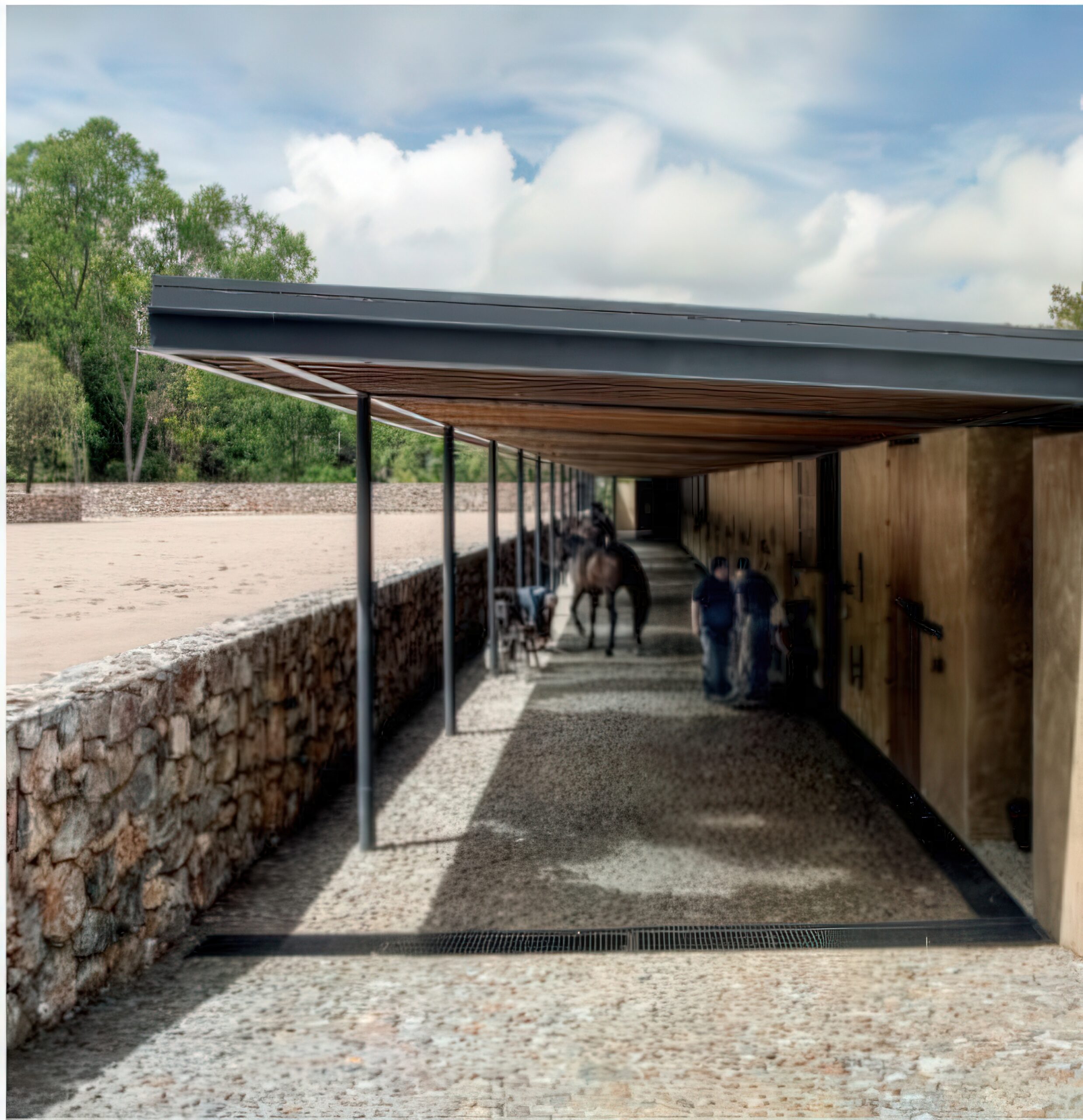 Equestrian Puebla,马术综合体,普埃布拉,曼努埃尔·塞万提斯,大理石,分层布局 曼努埃尔·塞万提斯|Manuel Cervantes • 2025-12-09 上午8:50 • 公共建筑设计, 建筑设计, 文化建筑设计 Equestrian Puebla Equestrian Puebla 是位于墨西哥普埃布拉西部的马术综合体项目,由曼努埃尔·塞万提斯设计。项目包含马厩、35×70米马术训练场、看台和六栋私人住宅,巧妙利用陡峭地形,通过分层布局实现人、马与自然的和谐共生。 设计: 曼努埃尔·塞万提斯|Manuel Cervantes 类型: 文化建筑设计 功能: 共居社区 风格: 地域主义 材料: 钢材 木材 石材 尺度: 中型建筑 地点:墨西哥 时间: 2018年 项目简介 Equestrian Puebla Equestrian Puebla 位于墨西哥普埃布拉市西部,是一个集马术训练、马厩和住宅于一体的综合性建筑。项目建筑面积约2000平方米,包含35×70米马术训练场、看台设施和六栋私人住宅,设计于2018年完成。 设计理念 设计团队以地形整合为核心策略,充分利用场地陡峭坡度,通过平衡挖方与填方的剖面设计,将不同功能安置在不同标高。这种分层布局不仅减少树木砍伐,还为每个功能区创造了理想条件,实现了建筑与自然地形的有机融合。 空间与功能 项目沿训练场长边布置模块化马厩,采用4×4米重复单元,可根据需求灵活扩展。六栋住宅位于场地最高处,成对布置面向训练场,背面通过茂密植被确保私密性。空间组织遵循地形等高线,形成清晰的竖向功能分区。 材料与技术 项目采用场地开挖产生的天然大理石作为马厩基座和挡土墙材料,体现了资源循环利用的可持续理念。建筑结构采用木材与钢材组合,屋顶为木钢混合结构,既保证了结构稳定性,又营造了温暖自然的空间氛围。 设计团队 曼努埃尔·塞万提斯建筑事务所是墨西哥知名建筑设计团队,专注于现代建筑与地域环境的融合,在住宅和公共建筑领域具有丰富经验,擅长通过材料创新和地形整合创造独特的建筑体验。 项目简介 Equestrian Puebla Equestrian Puebla 位于墨西哥普埃布拉市西部,是一个集马术训练、马厩和住宅于一体的综合性建筑。项目建筑面积约2000平方米,包含35×70米马术训练场、看台设施和六栋私人住宅,设计于2018年完成。 设计理念 设计团队以地形整合为核心策略,充分利用场地陡峭坡度,通过平衡挖方与填方的剖面设计,将不同功能安置在不同标高。这种分层布局不仅减少树木砍伐,还为每个功能区创造了理想条件,实现了建筑与自然地形的有机融合。 空间与功能 项目沿训练场长边布置模块化马厩,采用4×4米重复单元,可根据需求灵活扩展。六栋住宅位于场地最高处,成对布置面向训练场,背面通过茂密植被确保私密性。空间组织遵循地形等高线,形成清晰的竖向功能分区。 材料与技术 项目采用场地开挖产生的天然大理石作为马厩基座和挡土墙材料,体现了资源循环利用的可持续理念。建筑结构采用木材与钢材组合,屋顶为木钢混合结构,既保证了结构稳定性,又营造了温暖自然的空间氛围。 设计团队 曼努埃尔·塞万提斯建筑事务所是墨西哥知名建筑设计团队,专注于现代建筑与地域环境的融合,在住宅和公共建筑领域具有丰富经验,擅长通过材料创新和地形整合创造独特的建筑体验。 本文来自 © 曼努埃尔·塞万提斯|Manuel Cervantes, 发布于 © 建筑学院官方网站。 未经授权,禁止转载或摘编。 编辑版本版权归 © 建筑学院官方网站 所有, 设计、图纸及照片版权归设计方 © 曼努埃尔·塞万提斯|Manuel Cervantes ↗ 所有。 查看作者在建筑学院发布的更多作品: 曼努埃尔·塞万提斯|Manuel Cervantes @ 建筑学院官方网站 Equestrian Puebla大理石普埃布拉曼努埃尔·塞万提斯马术综合体 曼努埃尔·塞万提斯|Manuel Cervantes事务所 & 设计师 下载原图 收藏 0 关于作者 曼努埃尔·塞万提斯|Manuel Cervantes事务所 & 设计师 关注私信 19 文章 0 评论 0 粉丝 曼努埃尔·塞万提斯是墨西哥极具影响力的新生代建筑师。他的事务所以对材料、光线与构造的深刻理解和娴熟运用而闻名,尤其擅长运用夯土、木材和混凝土等本土材料,创造出与场地和环境紧密相连的现代建筑。其作品涵盖住宅、文化及商业项目,展现了简洁、宁静而富有 tactile 质感的设计美学。 天顶观景台 El Mirador Pavilion | 曼努埃尔·塞万提斯|Manuel Cervantes 上一篇 2025-12-08 上午8:50 Use Building Use Building | 卡鲁索·圣约翰建筑事务所|Caruso St John 下一篇 2025-12-10 上午8:50 猜你喜欢 多内塞尔大厦 Donceles Building | 曼努埃尔·塞万提斯|Manuel Cervantes 2025-12-09 公共建筑设计 萨尔瓦多山谷的房子 House in Valle Santana | 曼努埃尔·塞万提斯|Manuel Cervantes 2025-12-05 公共建筑设计 Next Hydroponic Plant Next Hydroponic Plant | 曼努埃尔·塞万提斯|Manuel Cervantes 2025-12-04 公共建筑设计 玫瑰渡口运输交换点 El Rosario Transport Interchange | 曼努埃尔·塞万提斯|Manuel Cervantes 2025-12-10 公共建筑设计 多元文化的融合——田纳西州立博物馆 2020-07-13 公共建筑设计 天顶观景台 El Mirador Pavilion | 曼努埃尔·塞万提斯|Manuel Cervantes 2025-12-08 公共建筑设计 发表回复 请登录后评论...登录后才能评论 提交