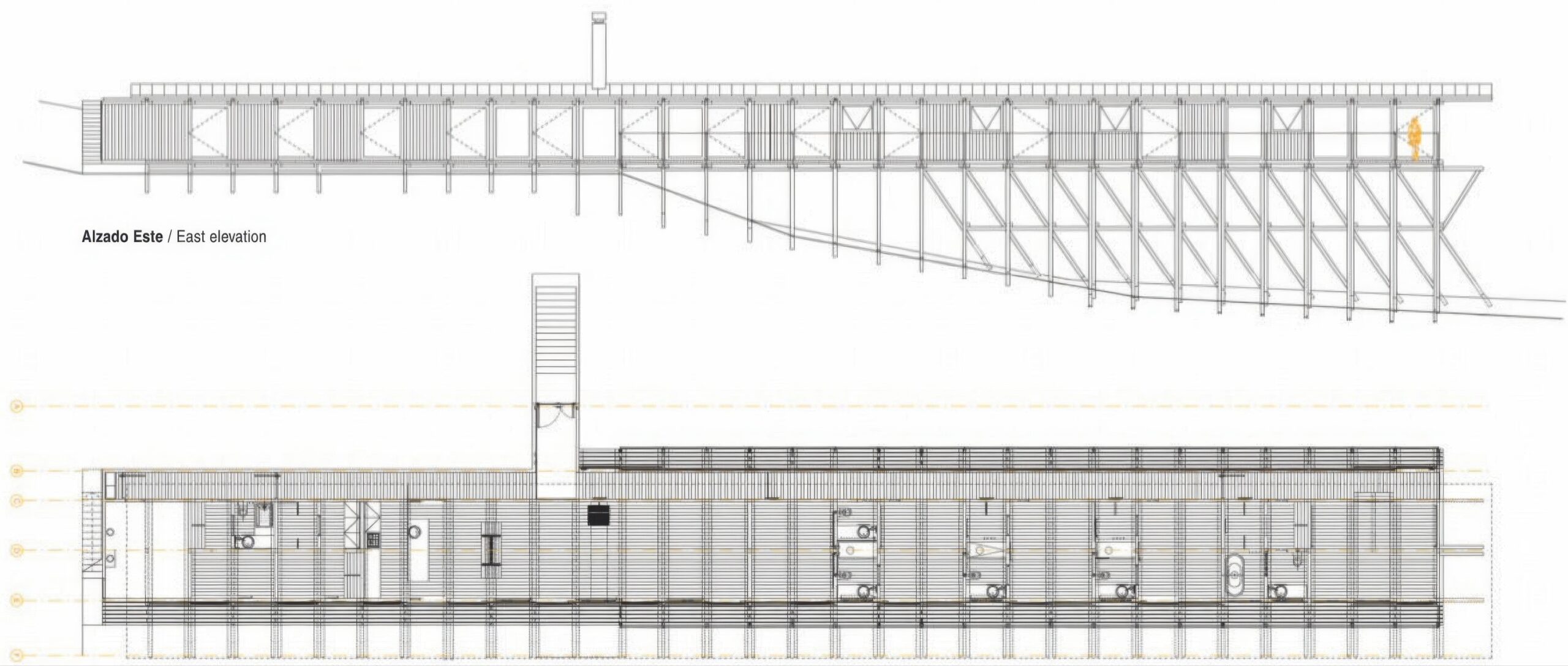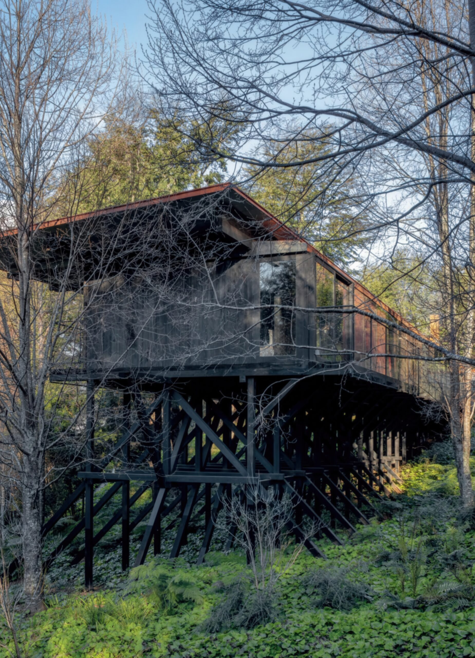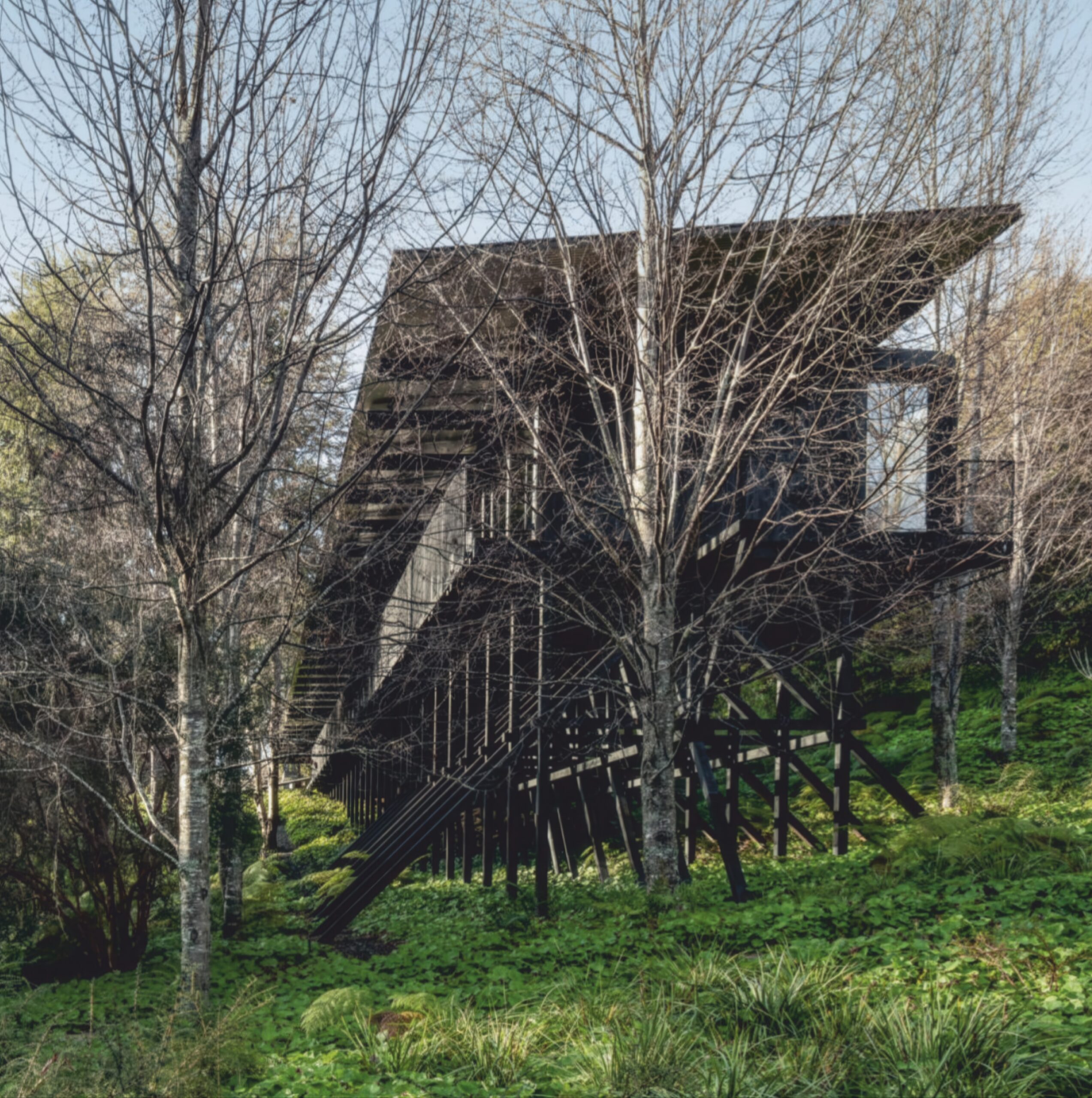 木质房屋 Wooden House | 斯米里扬·拉迪奇|Smiljan Radić 斯米里扬·拉迪奇|Smiljan Radić • 2025-12-11 上午8:50 • 住宅室内设计, 公共建筑设计, 室内设计, 建筑师, 建筑设计, 文化建筑设计 木质房屋 Wooden House 是一座位于湖畔森林中的独立住宅,由智利建筑师斯米里扬·拉迪奇设计。这座60米长的平台式建筑采用14×14厘米截面木梁柱的重复结构,通过螺栓连接技术实现快速组装。黑色涂装的内外表面营造出宁静的半暗室内空间,波纹铝板天花反射景观,实现建筑与自然的和谐对话。 设计: 斯米里扬·拉迪奇|Smiljan Radić 类型: 文化建筑设计 功能: 独立住宅 风格: 当代建筑 材料: 木材 金属板 尺度: 微型建筑与装置 地点:智利 时间: 2017年 项目简介 木质房屋 Wooden House 是一座位于智利湖畔森林中的独立住宅,建筑面积约60米长,采用平台式布局,设计于当代时期。 设计理念 设计团队以最大化景观视野为核心策略,将建筑作为地形延伸的平台,通过简洁的结构逻辑和材料表达,创造建筑与自然环境的深度对话。 空间与功能 建筑采用线性平台布局,内部空间组织简洁流畅,大尺寸窗户将森林与湖泊景观引入室内,营造连续的空间体验和视觉延伸。 材料与技术 采用14×14厘米截面木材构建重复结构体系,通过螺栓连接技术实现快速清洁组装。内外表面使用黑色涂料处理,天花采用波纹铝板覆层。 设计团队 斯米里扬·拉迪奇是智利著名建筑师,以其对材料本质的探索和建筑与景观关系的独特理解而闻名,作品注重结构表达与空间体验的融合。 项目简介 木质房屋 Wooden House 是一座位于智利湖畔森林中的独立住宅,建筑面积约60米长,采用平台式布局,设计于当代时期。 设计理念 设计团队以最大化景观视野为核心策略,将建筑作为地形延伸的平台,通过简洁的结构逻辑和材料表达,创造建筑与自然环境的深度对话。 空间与功能 建筑采用线性平台布局,内部空间组织简洁流畅,大尺寸窗户将森林与湖泊景观引入室内,营造连续的空间体验和视觉延伸。 材料与技术 采用14×14厘米截面木材构建重复结构体系,通过螺栓连接技术实现快速清洁组装。内外表面使用黑色涂料处理,天花采用波纹铝板覆层。 设计团队 斯米里扬·拉迪奇是智利著名建筑师,以其对材料本质的探索和建筑与景观关系的独特理解而闻名,作品注重结构表达与空间体验的融合。 本文来自 © 斯米里扬·拉迪奇|Smiljan Radić, 发布于 © 建筑学院官方网站。 未经授权,禁止转载或摘编。 编辑版本版权归 © 建筑学院官方网站 所有, 设计、图纸及照片版权归设计方 © 斯米里扬·拉迪奇|Smiljan Radić ↗ 所有。 查看作者在建筑学院发布的更多作品: 斯米里扬·拉迪奇|Smiljan Radić @ 建筑学院官方网站 斯米里扬·拉迪奇智利木结构木质房屋独立住宅 斯米里扬·拉迪奇|Smiljan Radić事务所 & 设计师 下载原图 收藏 0 关于作者 斯米里扬·拉迪奇|Smiljan Radić事务所 & 设计师 关注私信 19 文章 0 评论 0 粉丝 斯米里扬·拉迪奇(Smiljan Radić)是智利最具代表性的当代建筑师之一,以其独特的形式探索、材料创新及与自然环境的深刻对话而闻名。他1965年生于圣地亚哥,毕业于智利天主教大学,1995年创立个人事务所。拉迪克的作品多聚焦于中小型建筑,擅长通过手工生产与非工业材料展现建筑的"脆弱性"与临时感。其最广为人知的作品是2014年为伦敦蛇形画廊设计的展馆,被形容为"栖息于新石器时代遗址的外星太空舱"。其他重要项目包括Mestizo餐厅、VIK酒庄及铜屋二号等,其设计常融入巨石、粗糙混凝土等元素,在景观中创造既原始又诗意的空间体验。 生物区域剧院 Bío Regional Theatre | 斯米里扬·拉迪奇|Smiljan Radić 上一篇 2025-12-10 上午8:50 麦昆阿历山大系列项目 Alexander McQueen Project | 斯米里扬·拉迪奇|Smiljan Radić 下一篇 2025-12-11 上午8:50 猜你喜欢 用“减法”做出虚实结合的白房子/MFRMGR建筑师事务所 2018-10-31 住宅建筑设计 巷路尽头的住宅 / T2P Architects Office 2022-07-26 建筑设计 盘旋于森林之中的“鸟巢”:长岛木屋2.0 / Marchi Architects 2020-02-26 建筑设计 胡志明市花小姐之家,原始之中一簇自然绿 / H.2 2021-04-24 建筑设计 朴拙而精致——巴西 Nomades 住宅 / Mareines Arquitetura 2019-12-12 建筑设计 浓郁咖啡加拉花——斯里兰卡Kodikara住宅 2020-03-03 建筑设计 发表回复 请登录后评论...登录后才能评论 提交