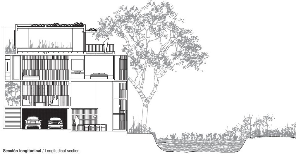 断层式住宅 / Striated House | 帕琳达·坎南加拉|Palinda Kannangara 帕琳达·坎南加拉|Palinda Kannangara • 2025-12-21 下午1:18 • 住宅建筑设计, 公寓住宅设计, 建筑设计, 独立住宅, 独立住宅设计 断层式住宅由斯里兰卡建筑师帕琳达·坎南加拉设计,位于科伦坡郊区的拉贾吉里亚。这座独立住宅巧妙利用176平方米的狭小地块,通过垂直条纹立面与湿地景观对话,展现了热带气候下的当代建筑创新。 设计: 帕琳达·坎南加拉|Palinda Kannangara 类型: 独立住宅设计 功能: 独立住宅 风格: 当代建筑 材料: 混凝土 木材 砖材 尺度: 小型建筑 地点:科伦坡 时间: 2019年 项目概述 断层式住宅位于斯里兰卡科伦坡郊区的拉贾吉里亚,是一座占地面积176平方米的三层独立住宅。项目由帕琳达·坎南加拉建筑师设计,于2017年设计,2019年建成,巧妙应对密集城市环境与湿地景观的独特场地条件。 设计理念 断层式住宅的核心设计理念是在密集城市环境中创造私密性与自然连接。建筑师帕琳达·坎南加拉通过垂直条纹立面屏蔽邻近高层建筑,同时将建筑向北侧湿地完全开放,形成从喧嚣街道到宁静自然的空间过渡序列。 空间与功能 断层式住宅采用垂直功能分区:首层设置餐厅、厨房与服务区,面向花园开放;二层容纳客厅与客房,享有湿地全景;三层为私密家庭空间,包括主卧室、儿童房及带酒吧的休闲凉亭。空间组织通过狭窄入口庭院、鱼池和细长楼梯营造渐进式空间体验。 材料与技术 项目采用简洁的热带材料语言:西立面使用纹理粗糙的混凝土薄板形成垂直条纹,其余部分为砖墙结构。屋顶采用本地碎红土建造的密集型绿色屋顶,配备生物池塘系统。设计运用被动式通风与采光策略,减少对人工系统的依赖。 项目特色与启发 断层式住宅展示了在密集城市环境中创造高质量居住空间的创新方法。帕琳达·坎南加拉通过巧妙的空间序列、材料选择和气候响应策略,为热带地区当代住宅设计提供了重要参考,特别是在有限用地条件下平衡隐私与景观的解决方案。 设计团队 帕琳达·坎南加拉是斯里兰卡知名建筑师,其工作室以探索热带现代主义建筑而闻名。团队专注于将本土材料、传统工艺与当代设计语言结合,在断层式住宅项目中展现了应对复杂城市环境的专业能力与设计敏感性。 项目概述 断层式住宅位于斯里兰卡科伦坡郊区的拉贾吉里亚,是一座占地面积176平方米的三层独立住宅。项目由帕琳达·坎南加拉建筑师设计,于2017年设计,2019年建成,巧妙应对密集城市环境与湿地景观的独特场地条件。 设计理念 断层式住宅的核心设计理念是在密集城市环境中创造私密性与自然连接。建筑师帕琳达·坎南加拉通过垂直条纹立面屏蔽邻近高层建筑,同时将建筑向北侧湿地完全开放,形成从喧嚣街道到宁静自然的空间过渡序列。 空间与功能 断层式住宅采用垂直功能分区:首层设置餐厅、厨房与服务区,面向花园开放;二层容纳客厅与客房,享有湿地全景;三层为私密家庭空间,包括主卧室、儿童房及带酒吧的休闲凉亭。空间组织通过狭窄入口庭院、鱼池和细长楼梯营造渐进式空间体验。 材料与技术 项目采用简洁的热带材料语言:西立面使用纹理粗糙的混凝土薄板形成垂直条纹,其余部分为砖墙结构。屋顶采用本地碎红土建造的密集型绿色屋顶,配备生物池塘系统。设计运用被动式通风与采光策略,减少对人工系统的依赖。 项目特色与启发 断层式住宅展示了在密集城市环境中创造高质量居住空间的创新方法。帕琳达·坎南加拉通过巧妙的空间序列、材料选择和气候响应策略,为热带地区当代住宅设计提供了重要参考,特别是在有限用地条件下平衡隐私与景观的解决方案。 设计团队 帕琳达·坎南加拉是斯里兰卡知名建筑师,其工作室以探索热带现代主义建筑而闻名。团队专注于将本土材料、传统工艺与当代设计语言结合,在断层式住宅项目中展现了应对复杂城市环境的专业能力与设计敏感性。 本文来自 © 帕琳达·坎南加拉|Palinda Kannangara, 发布于 © 建筑学院官方网站。 未经授权,禁止转载或摘编。 编辑版本版权归 © 建筑学院官方网站 所有, 设计、图纸及照片版权归设计方 © 帕琳达·坎南加拉|Palinda Kannangara ↗ 所有。 查看作者在建筑学院发布的更多作品: 帕琳达·坎南加拉|Palinda Kannangara @ 建筑学院官方网站 striated-house帕琳达·坎南加拉独立住宅设计科伦坡住宅 帕琳达·坎南加拉|Palinda Kannangara事务所 & 设计师 下载原图 收藏 0 关于作者 帕琳达·坎南加拉|Palinda Kannangara事务所 & 设计师 关注私信 10 文章 0 评论 0 粉丝 帕琳达·坎南加拉(Palinda Kannangara)是斯里兰卡最具影响力的当代建筑师之一,以其创新的热带现代主义设计而闻名。他的作品深刻诠释了建筑与自然、光线的对话,擅长运用本地材料与现代工艺,创造出既具私密性又开放于景观的空间。其官方网站 www.palindakannangara.com 全面展示了他的住宅、酒店与文化项目,是了解其设计哲学、完整作品集及所获国际奖项的重要窗口。 阿尔坎波塞修道院修复 / Alcobaça Monastery Renovation | 德·莫拉建筑事务所 上一篇 2025-12-20 下午2:06 博多库纳儿童村 / Children’s Village in Bodoquena | Estúdio Gustavo Utrabo 下一篇 2025-12-21 下午2:29 猜你喜欢 日本横滨的房子 / House in Yokohama | 长谷川豪建筑事务所 2025-11-04 公共建筑设计 马略阿的房子 / House in Maia | 阿尔瓦罗·