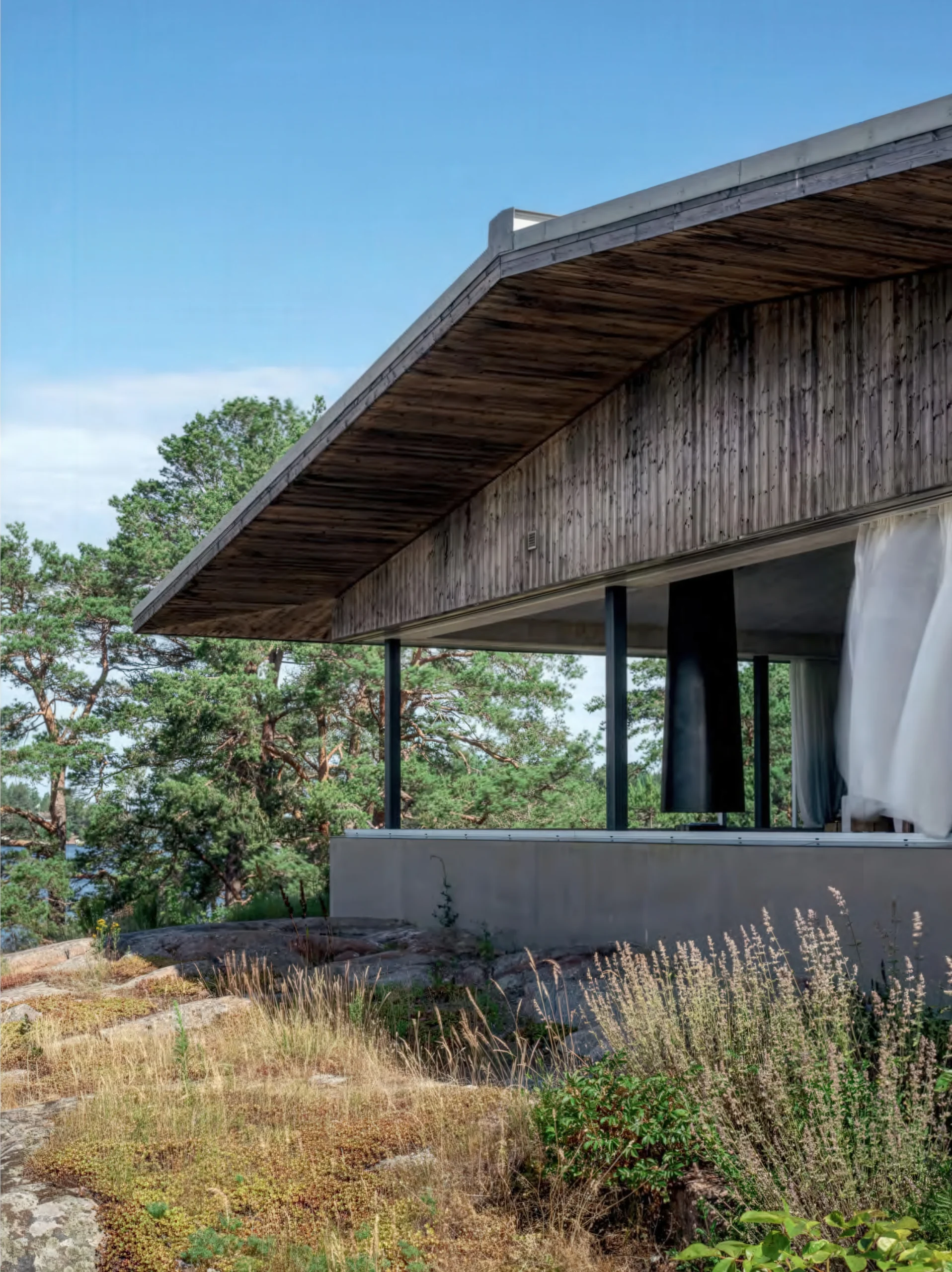 小拉格哈姆的房子 / House in Lilla Rågholmen | Arrhov Frick 建筑事务所 建筑学院 • 2025-12-23 下午4:20 • 住宅建筑设计, 公寓住宅设计, 建筑设计, 独立住宅, 独立住宅设计 小拉格哈姆的房子由 Arrhov Frick 建筑事务所设计,位于斯德哥尔摩群岛的小岛上,是一座独立住宅。设计以原始居住方式为理念,通过混凝土基座、大屋顶和滑动玻璃面板,创造与自然环境融为一体的居住体验。 设计: Arrhov Frick 类型: 独立住宅设计 功能: 独立住宅 风格: 极简主义 材料: 混凝土 钢材 玻璃 尺度: 小型建筑 地点:斯德哥尔摩 时间: 2017年 项目概述 小拉格哈姆的房子(House in Lilla Rågholmen)位于瑞典斯德哥尔摩群岛,是一座独立住宅建筑。项目在原渔屋旧址上重建,采用混凝土基座直接浇筑在岩石上,设计年份不详,建成年份未明确。 设计理念 Arrhov Frick 建筑事务所探索原始居住方式的本质,将建筑视为提供基本生活需求的庇护所。设计灵感来源于场地原有的渔屋,强调与自然环境的直接对话,通过极简形式回应岛屿的偏远、多风特征。 空间与功能 小拉格哈姆的房子采用开放式布局,单一空间容纳睡眠、烹饪与起居功能。大屋顶向外延伸两米,形成连续的遮蔽室外区域。三面滑动玻璃面板可开启三分之二立面,实现室内外空间的无缝连接。 材料与技术 建筑使用混凝土基座直接浇筑于岩石,模拟水平悬崖形态。屋顶结构轻巧,玻璃面板提供灵活开合。设计注重环境适应性,利用自然采光与通风,减少能源消耗。 项目特色与启发 小拉格哈姆的房子展现了极简主义住宅的设计潜力,通过基本元素重构居住体验。项目为建筑师提供了在偏远环境中实现可持续、适应性设计的参考,突出空间灵活性与自然共生的价值。 设计团队 Arrhov Frick 建筑事务所专注于住宅与小型建筑项目,以简洁形式、材料真实性和环境响应为设计核心。事务所在北欧建筑领域具有影响力,致力于探索居住本质与空间品质。 项目概述 小拉格哈姆的房子(House in Lilla Rågholmen)位于瑞典斯德哥尔摩群岛,是一座独立住宅建筑。项目在原渔屋旧址上重建,采用混凝土基座直接浇筑在岩石上,设计年份不详,建成年份未明确。 设计理念 Arrhov Frick 建筑事务所探索原始居住方式的本质,将建筑视为提供基本生活需求的庇护所。设计灵感来源于场地原有的渔屋,强调与自然环境的直接对话,通过极简形式回应岛屿的偏远、多风特征。 空间与功能 小拉格哈姆的房子采用开放式布局,单一空间容纳睡眠、烹饪与起居功能。大屋顶向外延伸两米,形成连续的遮蔽室外区域。三面滑动玻璃面板可开启三分之二立面,实现室内外空间的无缝连接。 材料与技术 建筑使用混凝土基座直接浇筑于岩石,模拟水平悬崖形态。屋顶结构轻巧,玻璃面板提供灵活开合。设计注重环境适应性,利用自然采光与通风,减少能源消耗。 项目特色与启发 小拉格哈姆的房子展现了极简主义住宅的设计潜力,通过基本元素重构居住体验。项目为建筑师提供了在偏远环境中实现可持续、适应性设计的参考,突出空间灵活性与自然共生的价值。 设计团队 Arrhov Frick 建筑事务所专注于住宅与小型建筑项目,以简洁形式、材料真实性和环境响应为设计核心。事务所在北欧建筑领域具有影响力,致力于探索居住本质与空间品质。 本文来自 © 建筑学院, 发布于 © 建筑学院官方网站。 未经授权,禁止转载或摘编。 编辑版本版权归 © 建筑学院官方网站 所有, 设计、图纸及照片版权归设计方 © 建筑学院 ↗ 所有。 查看作者在建筑学院发布的更多作品: 建筑学院 @ 建筑学院官方网站 Arrhov FrickHouse in Lilla Rågholmen斯德哥尔摩住宅独立住宅设计 建筑学院编辑 下载原图 收藏 0 关于作者 建筑学院编辑 关注私信 9.0K 文章 202 评论 12 粉丝 建筑学院(ArchCollege)是中国领先的建筑师移动垂直社区,成立于2012年,超过 70% 的年轻建筑师正在使用我们的产品。我们致力于通过建筑设计新媒体与在线教育平台,连接教育、行业与科技,为建筑师提供灵感与成长支持,陪伴并见证每一位青年建筑师的专业进阶与时代探索。 假日小木屋 葡萄花娜那 / Holiday Bungalow in Ginigathhena | 帕琳达·坎南加拉|Palinda Kannangara 上一篇 2025-12-23 下午4:09 阿瓜斯多港口实验室 / Águas do Porto Laboratory | 德·莫拉建筑事务所 下一篇 2025-12-23 下午4:28 猜你喜欢 艺术家之家No.7号房 / House No.7, Artist’s House | +MOS 建筑事务所 2025-11-15 公共建筑设计 komazawa之家 / House in Komazawa | 长谷川豪建筑事务所 2025-11-24 公共建筑设计 汉马尔比乌花园住宅区 / Hammarby Gård Housing Block | Arrhov Frick 2026-01-22 住宅建筑设计 沃尔彭之家 / Walpen House | 吉翁·A·卡米纳达|Gion A. Caminada 2天前 住宅建筑设计 圣楚尔瓦住宅 House in Stürcherwald | 贝尔纳多·巴德尔|Bernardo Bader 2025-10-30 公共建筑设计 House at the Bäumle / Vertical Living | 贝尔纳多·巴德尔|Bernardo Bader 2026-01-18 住宅建筑设计 发表回复 请登录后评论...登录后才能评论 提交