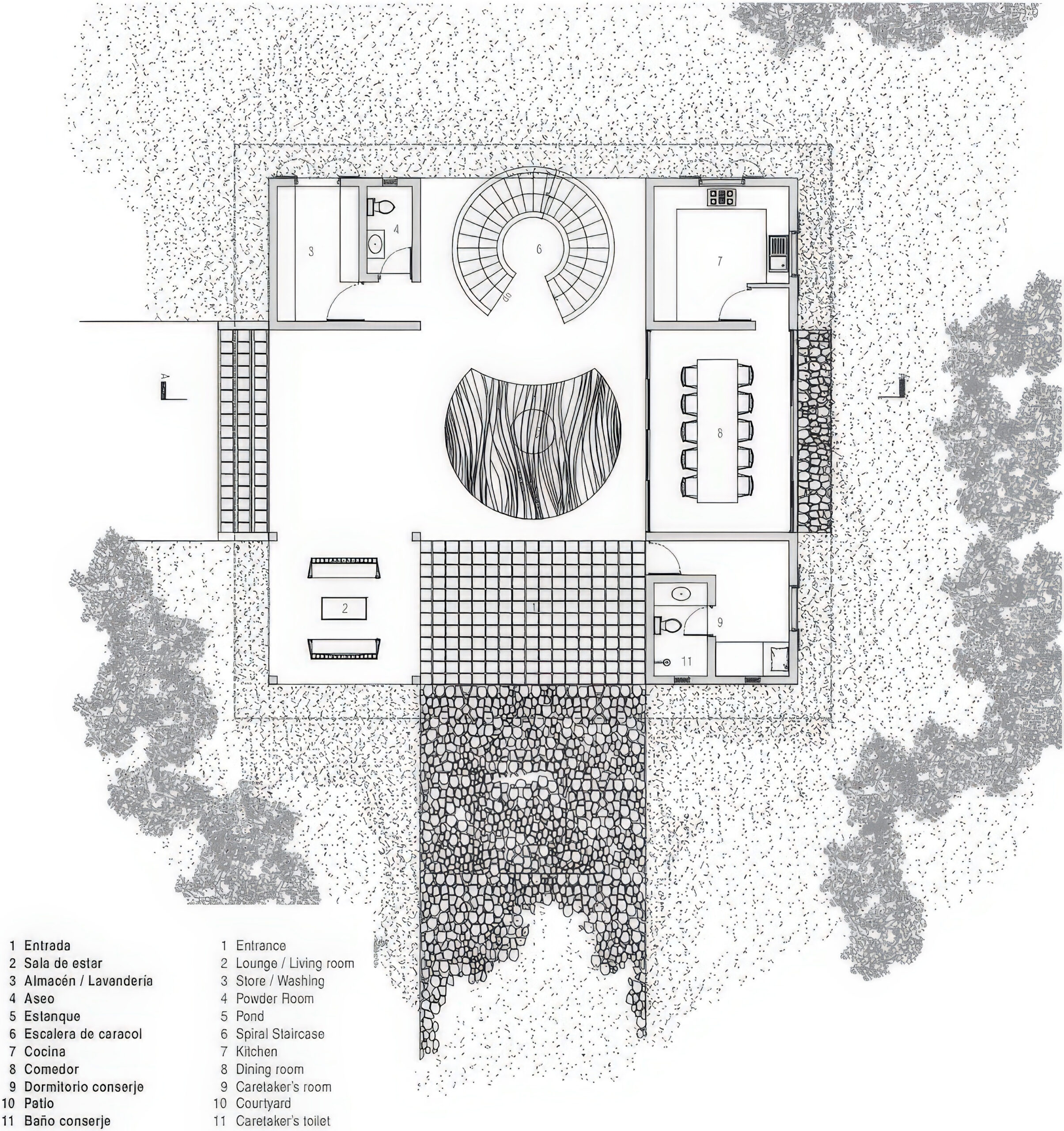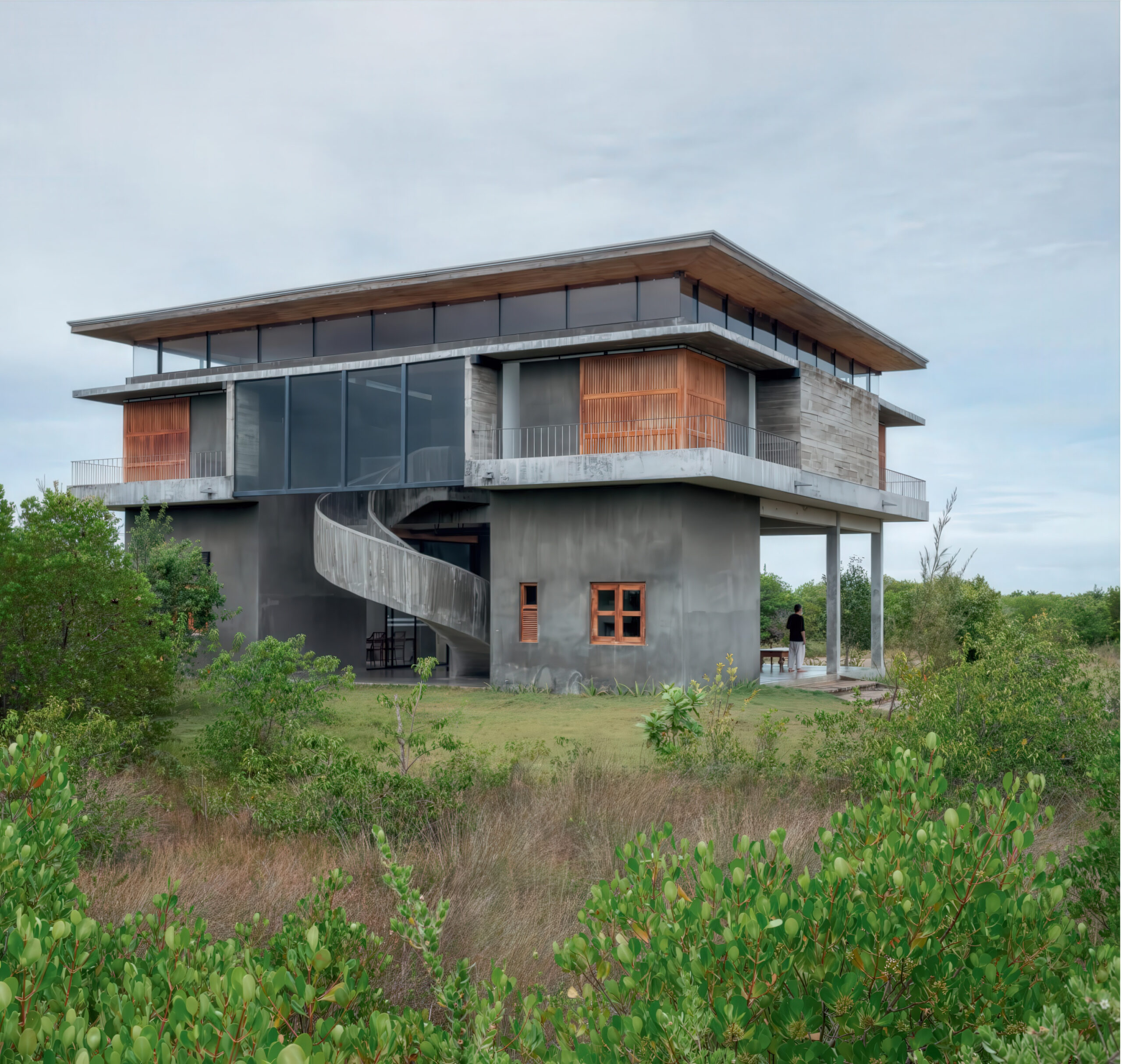 朱法纳风力发电站工作人员居住楼 / Staff Quarters for Wind Power Plant in Jaffna | 帕琳达·坎南加拉|Palinda Kannangara 帕琳达·坎南加拉|Palinda Kannangara • 2025-12-28 下午8:08 • 住宅建筑设计, 建筑师, 建筑设计, 独立住宅, 独立住宅设计 朱法纳风力发电站工作人员居住楼由帕琳达·坎南加拉设计,位于斯里兰卡季节性泻湖景观中,是一座为风电场工程师和高级员工提供的客舍建筑。设计巧妙回应独特的生态环境,通过开放式布局、浅水池和螺旋楼梯创造与自然景观的紧密联系。 设计: 帕琳达·坎南加拉|Palinda Kannangara 类型: 独立住宅设计 功能: 独立住宅 风格: 地域主义 材料: 混凝土 钢材 木材 石材 尺度: 小型建筑 地点: 斯里兰卡 时间: 2015年 项目概述 朱法纳风力发电站工作人员居住楼位于斯里兰卡季节性泻湖景观中,是一座为风电场工程师和高级员工提供住宿的客舍建筑。项目于2013年设计,2015年建成,采用当地材料建造,与独特的湿地生态系统和谐共存。 设计理念 帕琳达·坎南加拉的设计灵感来源于场地独特的季节性洪水特征和丰富的鸟类生态系统。建筑以”眼睛”为概念,通过中央浅水池捕捉风车的倒影,四个切角形成曼荼罗般的几何构图,创造与自然环境深度对话的建筑语言。 空间与功能 建筑底层设有开放式起居区、餐厅、厨房和看守人宿舍,4米多高的空间配合螺旋楼梯增强空间体验。上层包含起居区、两间员工卧室和两间客房,每个卧室都配有独立卫生间和开放式庭院,确保充足的自然采光与通风。 材料与技术 建筑大量使用当地材料,包括回收的杰克木制作细框窗户、抛光水泥地面、当地石材墙面和哑光水泥饰面。上层阳台采用特制水泥铺路石,与室内木地板尺度协调,钢柱支撑的屋顶营造出漂浮感。 项目特色与启发 朱法纳风力发电站工作人员居住楼展示了在敏感生态环境中建筑设计的创新方法,通过被动式设计策略实现自然通风和采光,为热带地区的可持续建筑设计提供了重要参考。 设计团队 帕琳达·坎南加拉是斯里兰卡知名建筑师,以其对场地敏感的设计和对当地材料的创新运用而闻名。他的作品常常探索建筑与自然环境的和谐关系,在朱法纳风力发电站工作人员居住楼项目中充分体现了这一设计理念。 项目概述 朱法纳风力发电站工作人员居住楼位于斯里兰卡季节性泻湖景观中,是一座为风电场工程师和高级员工提供住宿的客舍建筑。项目于2013年设计,2015年建成,采用当地材料建造,与独特的湿地生态系统和谐共存。 设计理念 帕琳达·坎南加拉的设计灵感来源于场地独特的季节性洪水特征和丰富的鸟类生态系统。建筑以”眼睛”为概念,通过中央浅水池捕捉风车的倒影,四个切角形成曼荼罗般的几何构图,创造与自然环境深度对话的建筑语言。 空间与功能 建筑底层设有开放式起居区、餐厅、厨房和看守人宿舍,4米多高的空间配合螺旋楼梯增强空间体验。上层包含起居区、两间员工卧室和两间客房,每个卧室都配有独立卫生间和开放式庭院,确保充足的自然采光与通风。 材料与技术 建筑大量使用当地材料,包括回收的杰克木制作细框窗户、抛光水泥地面、当地石材墙面和哑光水泥饰面。上层阳台采用特制水泥铺路石,与室内木地板尺度协调,钢柱支撑的屋顶营造出漂浮感。 项目特色与启发 朱法纳风力发电站工作人员居住楼展示了在敏感生态环境中建筑设计的创新方法,通过被动式设计策略实现自然通风和采光,为热带地区的可持续建筑设计提供了重要参考。 设计团队 帕琳达·坎南加拉是斯里兰卡知名建筑师,以其对场地敏感的设计和对当地材料的创新运用而闻名。他的作品常常探索建筑与自然环境的和谐关系,在朱法纳风力发电站工作人员居住楼项目中充分体现了这一设计理念。 本文来自 © 帕琳达·坎南加拉|Palinda Kannangara, 发布于 © 建筑学院官方网站。 未经授权,禁止转载或摘编。 编辑版本版权归 © 建筑学院官方网站 所有, 设计、图纸及照片版权归设计方 © 帕琳达·坎南加拉|Palinda Kannangara ↗ 所有。 查看作者在建筑学院发布的更多作品: 帕琳达·坎南加拉|Palinda Kannangara @ 建筑学院官方网站 Staff Quarters for Wind Power Plant in Jaffna客舍设计帕琳达·坎南加拉斯里兰卡建筑 帕琳达·坎南加拉|Palinda Kannangara事务所 & 设计师 下载原图 收藏 0 关于作者 帕琳达·坎南加拉|Palinda Kannangara事务所 & 设计师 关注私信 10 文章 0 评论 0 粉丝 帕琳达·坎南加拉(Palinda Kannangara)是斯里兰卡最具影响力的当代建筑师之一,以其创新的热带现代主义设计而闻名。他的作品深刻诠释了建筑与自然、光线的对话,擅长运用本地材料与现代工艺,创造出既具私密性又开放于景观的空间。其官方网站 www.palindakannangara.com 全面展示了他的住宅、酒店与文化项目,是了解其设计哲学、完整作品集及所获国际奖项的重要窗口。 弗斯特纳布尔克的库伯尔之家 / Kübler House in Fürstenaubruck | 吉翁·A·卡米纳达|Gion A. Caminada 上一篇 2025-12-28 下午7:56 办公园区转型研究 / Study for the Transformation of an Office Park | Dogma 下一篇 2025-12-30 下午1:06 猜你喜欢 CASA ESPINAL / Spinal House | 帕琳达·坎南加拉|Palinda Kannangara 2026-01-07 住宅建筑设计 假日别墅,阿维什瓦拉 / Holiday Bungalow in Avissawella | 帕琳达·坎南加拉|Palinda Kannangara 2025-12-22 住宅建筑设计 艺术家避暑所 帕特鲁加纳拉 / Artists’ Retreat