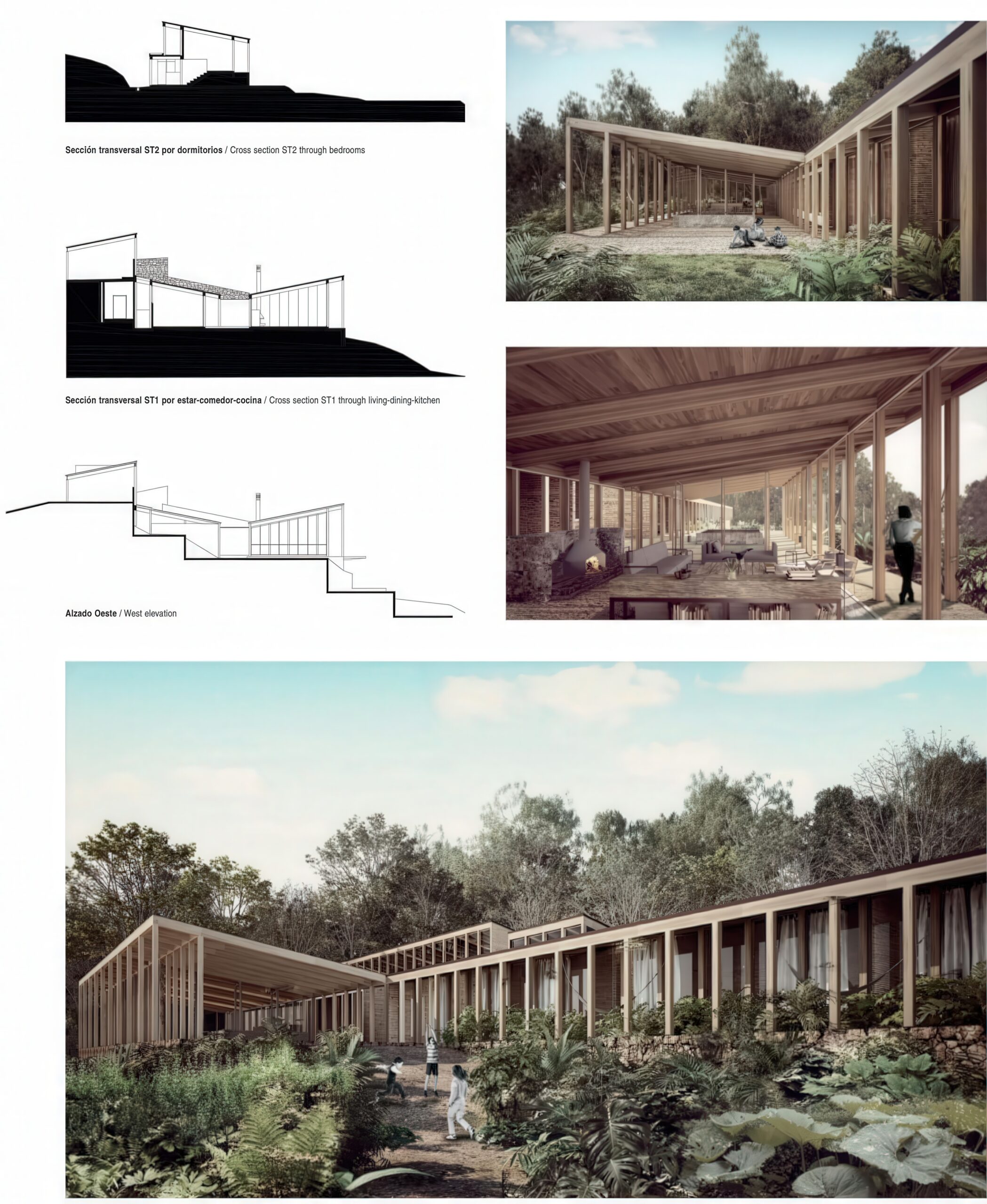 阿瓦纳达罗之家 Avándaro House | 曼努埃尔·塞万提斯|Manuel Cervantes 曼努埃尔·塞万提斯|Manuel Cervantes • 2026-01-03 下午6:20 • 住宅建筑设计, 建筑设计, 独立住宅, 独立住宅设计 阿瓦纳达罗之家是曼努埃尔·塞万提斯在墨西哥巴耶德布拉沃设计的独立住宅项目。这座位于高尔夫俱乐部旁的湖畔住宅通过巧妙的地形处理解决了隐私问题,将建筑与花园完美融合。设计采用模块化布局,充分利用东向采光,创造了与自然环境紧密互动的居住空间。 设计: 曼努埃尔·塞万提斯|Manuel Cervantes 类型: 独立住宅设计 功能: 独立住宅 风格: 当代建筑 材料: 混凝土 木材 玻璃 尺度: 小型建筑 地点:墨西哥巴耶德布拉沃 时间: 2016年 项目简介 阿瓦纳达罗之家位于墨西哥巴耶德布拉沃,是一座独立住宅项目。建筑坐落于湖畔高尔夫俱乐部旁,设计于2016年,建成于2018年,通过创新的地形处理实现了建筑与自然的和谐共生。 设计理念 设计团队以解决场地隐私问题和最大化利用宽阔临街面为核心策略。通过将住宅设置于街道水平以下,创造私密的后花园空间,同时采用模块化重复的设计手法,确保每个居住单元都能获得理想的采光和景观视野。 空间与功能 建筑沿地块长向布局,社交区域与卧室体量通过室外楼梯连接。卧室单元面向东方以利用晨光,中央入口通道设置在半层高度差位置。下层设置浴室,通过后花园获得自然采光。主要花园顺应地形延伸至住宅主层平台,实现所有空间与自然的直接互动。 材料与技术 项目采用木材结构体系,结合当地材料,体现了可持续设计理念。屋顶木结构与室内墙体形成统一的材料语言,通过精确的施工工艺实现了建筑与地形的完美契合。 设计团队 曼努埃尔·塞万提斯建筑事务所专注于住宅与小型建筑项目,以对场地文脉的深刻理解和创新的空间解决方案著称,在墨西哥当代建筑界具有重要影响力。 项目简介 阿瓦纳达罗之家位于墨西哥巴耶德布拉沃,是一座独立住宅项目。建筑坐落于湖畔高尔夫俱乐部旁,设计于2016年,建成于2018年,通过创新的地形处理实现了建筑与自然的和谐共生。 设计理念 设计团队以解决场地隐私问题和最大化利用宽阔临街面为核心策略。通过将住宅设置于街道水平以下,创造私密的后花园空间,同时采用模块化重复的设计手法,确保每个居住单元都能获得理想的采光和景观视野。 空间与功能 建筑沿地块长向布局,社交区域与卧室体量通过室外楼梯连接。卧室单元面向东方以利用晨光,中央入口通道设置在半层高度差位置。下层设置浴室,通过后花园获得自然采光。主要花园顺应地形延伸至住宅主层平台,实现所有空间与自然的直接互动。 材料与技术 项目采用木材结构体系,结合当地材料,体现了可持续设计理念。屋顶木结构与室内墙体形成统一的材料语言,通过精确的施工工艺实现了建筑与地形的完美契合。 设计团队 曼努埃尔·塞万提斯建筑事务所专注于住宅与小型建筑项目,以对场地文脉的深刻理解和创新的空间解决方案著称,在墨西哥当代建筑界具有重要影响力。 本文来自 © 曼努埃尔·塞万提斯|Manuel Cervantes, 发布于 © 建筑学院官方网站。 未经授权,禁止转载或摘编。 编辑版本版权归 © 建筑学院官方网站 所有, 设计、图纸及照片版权归设计方 © 曼努埃尔·塞万提斯|Manuel Cervantes ↗ 所有。 查看作者在建筑学院发布的更多作品: 曼努埃尔·塞万提斯|Manuel Cervantes @ 建筑学院官方网站 巴耶德布拉沃曼努埃尔·塞万提斯木材结构独立住宅设计阿瓦纳达罗之家 曼努埃尔·塞万提斯|Manuel Cervantes事务所 & 设计师 下载原图 收藏 0 关于作者 曼努埃尔·塞万提斯|Manuel Cervantes事务所 & 设计师 关注私信 19 文章 0 评论 0 粉丝 曼努埃尔·塞万提斯是墨西哥极具影响力的新生代建筑师。他的事务所以对材料、光线与构造的深刻理解和娴熟运用而闻名,尤其擅长运用夯土、木材和混凝土等本土材料,创造出与场地和环境紧密相连的现代建筑。其作品涵盖住宅、文化及商业项目,展现了简洁、宁静而富有 tactile 质感的设计美学。 气候博物馆在莱里达 / Climate Museum in Lleida | 托尼·希罗内斯|Toni Gironès 上一篇 2026-01-03 下午4:16 马德雷德萨里亚街上的房子 / House on Major de Sarrià Street | HArquitectes 下一篇 2026-01-03 下午7:32 猜你喜欢 两座房子 / House+House | Estúdio Gustavo Utrabo 2026-01-01 住宅建筑设计 Equestrian Puebla,马术综合体,普埃布拉,曼努埃尔·塞万提斯,大理石,分层布局 2025-12-09 公共建筑设计 弗斯特纳布尔克的库伯尔之家 / Kübler House in Fürstenaubruck | 吉翁·A·卡米纳达|Gion A. Caminada 2天前 住宅建筑设计 弗斯特纳布尔克的库伯尔之家 / Kübler House in Fürstenaubruck | 吉翁·A·卡米纳达|Gion A. Caminada 2025-12-28 住宅建筑设计 坡上的房子 House on a Slope | Karamuk Kuo 建筑事务所|Karamuk Kuo 2025-10-26 公共建筑设计 Trail House / Trail House | 安妮·霍尔特罗普|Anne Holtrop 2026-03-13 住宅建筑设计 发表回复 请登录后评论...登录后才能评论 提交