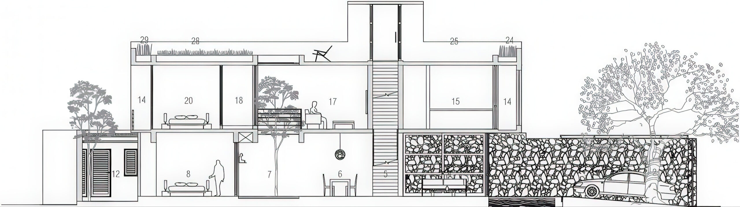 线性房屋 / Linear House | 帕琳达·坎南加拉|Palinda Kannangara 帕琳达·坎南加拉|Palinda Kannangara • 2026-01-06 下午10:52 • 住宅建筑设计, 建筑师, 建筑设计, 独立住宅, 独立住宅设计 线性房屋由帕琳达·坎南加拉设计,位于斯里兰卡巴塔拉穆拉,是一座在7.5米宽狭小地块上建造的独立住宅。该项目通过一系列庭院和水景设计,巧妙模糊室内外界限,在有限预算内创造出丰富的空间体验与热带感受。 设计: 帕琳达·坎南加拉|Palinda Kannangara 类型: 独立住宅设计 功能: 独立住宅 风格: 现代主义 材料: 混凝土 木材 砖材 尺度: 小型建筑 地点:巴塔拉穆拉 时间: 2014年 项目概述 线性房屋位于斯里兰卡巴塔拉穆拉,靠近议会区域,是一座在不足250平方米狭长地块上建造的独立住宅。项目由帕琳达·坎南加拉设计,设计始于2012年,2014年建成,建筑面积紧凑但空间体验丰富。 设计理念 线性房屋的设计理念旨在在密集城市环境中创造与热带自然环境的连接感。设计通过一系列庭院、水景和绿化,模糊室内外界限,让居住者在狭窄空间中仍能感受到天空、水和树木的存在,营造花园般的居住体验。 空间与功能 线性房屋采用纵向布局,地面层设有客厅、餐厅、厨房和客卧,通过庭院分隔空间。一层设有电视厅、主卧和两间次卧,细长的木桥连接各房间,仿佛穿越树冠。屋顶花园不仅收集雨水,还创造凉爽微气候,提供户外用餐空间。 材料与技术 项目采用本地材料和回收材料,包括碎石铺地、碎砾石庭院和抛光水泥地面。砖砌墙体搭配回收雅卡木门窗,细长框架不干扰水景视野。南墙木制屏风受斯里兰卡传统建筑启发,有效遮挡强烈日照并提供遮荫。 项目特色与启发 线性房屋展示了在有限预算和狭小地块上创造高品质居住环境的可能性。项目通过巧妙的空间组织和材料选择,证明了热带地区高密度城市环境中仍可实现舒适、可持续的居住体验,为类似条件下的住宅设计提供了重要参考。 设计团队 帕琳达·坎南加拉是斯里兰卡知名建筑师,以其对热带现代主义的独特诠释而闻名。他的设计注重场地响应、材料真实性和空间体验,擅长在有限条件下创造富有诗意的建筑作品,线性房屋是其代表作品之一。 项目概述 线性房屋位于斯里兰卡巴塔拉穆拉,靠近议会区域,是一座在不足250平方米狭长地块上建造的独立住宅。项目由帕琳达·坎南加拉设计,设计始于2012年,2014年建成,建筑面积紧凑但空间体验丰富。 设计理念 线性房屋的设计理念旨在在密集城市环境中创造与热带自然环境的连接感。设计通过一系列庭院、水景和绿化,模糊室内外界限,让居住者在狭窄空间中仍能感受到天空、水和树木的存在,营造花园般的居住体验。 空间与功能 线性房屋采用纵向布局,地面层设有客厅、餐厅、厨房和客卧,通过庭院分隔空间。一层设有电视厅、主卧和两间次卧,细长的木桥连接各房间,仿佛穿越树冠。屋顶花园不仅收集雨水,还创造凉爽微气候,提供户外用餐空间。 材料与技术 项目采用本地材料和回收材料,包括碎石铺地、碎砾石庭院和抛光水泥地面。砖砌墙体搭配回收雅卡木门窗,细长框架不干扰水景视野。南墙木制屏风受斯里兰卡传统建筑启发,有效遮挡强烈日照并提供遮荫。 项目特色与启发 线性房屋展示了在有限预算和狭小地块上创造高品质居住环境的可能性。项目通过巧妙的空间组织和材料选择,证明了热带地区高密度城市环境中仍可实现舒适、可持续的居住体验,为类似条件下的住宅设计提供了重要参考。 设计团队 帕琳达·坎南加拉是斯里兰卡知名建筑师,以其对热带现代主义的独特诠释而闻名。他的设计注重场地响应、材料真实性和空间体验,擅长在有限条件下创造富有诗意的建筑作品,线性房屋是其代表作品之一。 本文来自 © 帕琳达·坎南加拉|Palinda Kannangara, 发布于 © 建筑学院官方网站。 未经授权,禁止转载或摘编。 编辑版本版权归 © 建筑学院官方网站 所有, 设计、图纸及照片版权归设计方 © 帕琳达·坎南加拉|Palinda Kannangara ↗ 所有。 查看作者在建筑学院发布的更多作品: 帕琳达·坎南加拉|Palinda Kannangara @ 建筑学院官方网站 Linear House巴塔拉穆拉住宅热带现代主义独立住宅设计 帕琳达·坎南加拉|Palinda Kannangara事务所 & 设计师 下载原图 收藏 0 关于作者 帕琳达·坎南加拉|Palinda Kannangara事务所 & 设计师 关注私信 10 文章 0 评论 0 粉丝 帕琳达·坎南加拉(Palinda Kannangara)是斯里兰卡最具影响力的当代建筑师之一,以其创新的热带现代主义设计而闻名。他的作品深刻诠释了建筑与自然、光线的对话,擅长运用本地材料与现代工艺,创造出既具私密性又开放于景观的空间。其官方网站 www.palindakannangara.com 全面展示了他的住宅、酒店与文化项目,是了解其设计哲学、完整作品集及所获国际奖项的重要窗口。 绿色角落大厦 / Green Corner Building | 安妮·霍尔特罗普|Anne Holtrop 上一篇 2026-01-06 下午10:38 奥伊雷斯的房子 / House in Oeiras | 德·莫拉建筑事务所 下一篇 2026-01-07 下午7:38 猜你喜欢 花园小屋 / Garden House | 安妮·霍尔特罗普|Anne Holtrop 2026-03-11 住宅建筑设计 别墅托维诺森 / Villa Toivonen | Arrhov Frick 2026-01-24 住宅建筑设计 洛杉矶维尔奥斯的房子 / House in Los Vilos | SANAA 2026-02-10 住宅建筑设计 Porch House / Porch House | MARKLEE 建筑事务所 2025-11-02 公共建筑设计 komazawa之家 / House in Komazawa | 长