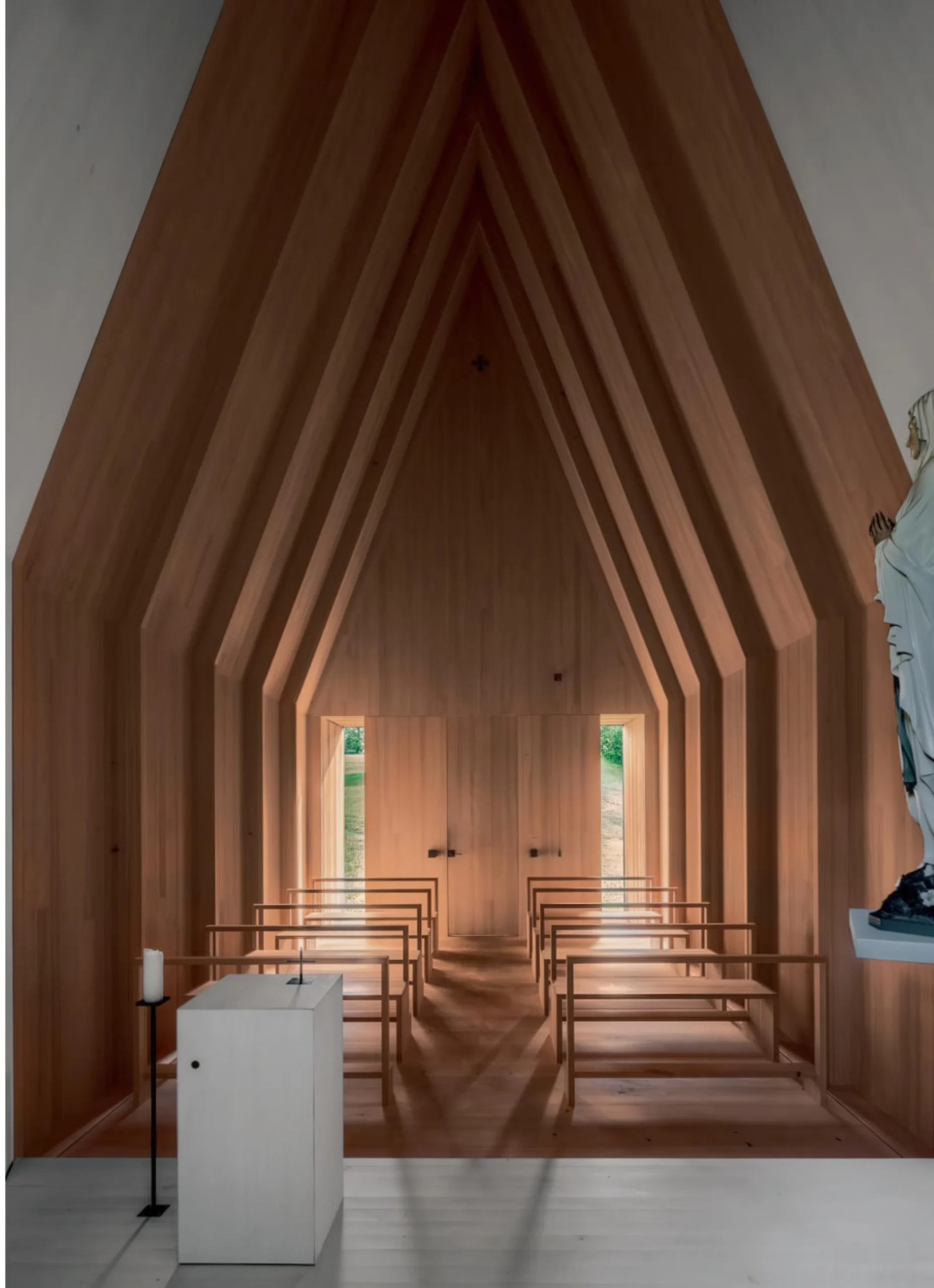 Salgenreute 教堂 / Salgenreute Chapel | 贝尔纳多·巴德尔|Bernardo Bader 贝尔纳多·巴德尔|Bernardo Bader • 2026-01-14 上午11:09 • 公共建筑设计, 文化建筑设计 Salgenreute 教堂由贝尔纳多·巴德尔设计,位于奥地利克伦巴赫附近的阿尔卑斯山区。这座小型宗教建筑以木材与石材为主要材料,通过创新的空间折叠形态重新诠释传统教堂形式,展现了当代地域主义建筑的表达力。 设计: 贝尔纳多·巴德尔|Bernardo Bader 类型: 文化建筑设计 功能: 宗教建筑 风格: 地域主义 材料: 木材 石材 尺度: 小型建筑 地点:克伦巴赫 时间: 1970年 项目概述 Salgenreute 教堂位于奥地利克伦巴赫附近的阿尔卑斯山区,是一座小型宗教建筑。项目在原200年历史的小教堂基础上进行重建,采用创新的木结构设计,体现了传统与现代的完美融合。 设计理念 贝尔纳多·巴德尔的设计理念源于对场地与人文的深度对话。Salgenreute 教堂以陡峭的空间折叠形态重新诠释传统教堂形式,既呼应原有建筑的基本轮廓,又通过现代建筑语言创造独特的象征意义。 空间与功能 Salgenreute 教堂包含中央走道和半圆形后殿,入口处设置凹陷门廊形成保护性过渡空间。内部十二个木框架不仅支撑结构,更强化了高度变化的空间体验。后殿玻璃引入的侧光为祭坛区域营造出神圣氛围。 材料与技术 Salgenreute 教堂采用阿尔伯施文德石灰石干砌基础,墙面和屋顶覆盖手工锯制的落叶松木瓦。内部使用未处理的冷杉木墙板、地板和长椅,交叉层压木结构确保建筑的稳定性和耐久性。 项目特色与启发 Salgenreute 教堂展示了社区参与式建造的典范,超过百名当地居民和工匠共同完成了这一项目。其创新的木结构设计和地域材料运用为小型宗教建筑提供了新的设计思路。 设计团队 贝尔纳多·巴德尔是奥地利知名建筑师,其作品以对地域文化和材料的深刻理解著称。他擅长将传统建造技艺与现代设计语言相结合,在Salgenreute 教堂项目中展现了卓越的设计把控能力。 项目概述 Salgenreute 教堂位于奥地利克伦巴赫附近的阿尔卑斯山区,是一座小型宗教建筑。项目在原200年历史的小教堂基础上进行重建,采用创新的木结构设计,体现了传统与现代的完美融合。 设计理念 贝尔纳多·巴德尔的设计理念源于对场地与人文的深度对话。Salgenreute 教堂以陡峭的空间折叠形态重新诠释传统教堂形式,既呼应原有建筑的基本轮廓,又通过现代建筑语言创造独特的象征意义。 空间与功能 Salgenreute 教堂包含中央走道和半圆形后殿,入口处设置凹陷门廊形成保护性过渡空间。内部十二个木框架不仅支撑结构,更强化了高度变化的空间体验。后殿玻璃引入的侧光为祭坛区域营造出神圣氛围。 材料与技术 Salgenreute 教堂采用阿尔伯施文德石灰石干砌基础,墙面和屋顶覆盖手工锯制的落叶松木瓦。内部使用未处理的冷杉木墙板、地板和长椅,交叉层压木结构确保建筑的稳定性和耐久性。 项目特色与启发 Salgenreute 教堂展示了社区参与式建造的典范,超过百名当地居民和工匠共同完成了这一项目。其创新的木结构设计和地域材料运用为小型宗教建筑提供了新的设计思路。 设计团队 贝尔纳多·巴德尔是奥地利知名建筑师,其作品以对地域文化和材料的深刻理解著称。他擅长将传统建造技艺与现代设计语言相结合,在Salgenreute 教堂项目中展现了卓越的设计把控能力。 本文来自 © 贝尔纳多·巴德尔|Bernardo Bader, 发布于 © 建筑学院官方网站。 未经授权,禁止转载或摘编。 编辑版本版权归 © 建筑学院官方网站 所有, 设计、图纸及照片版权归设计方 © 贝尔纳多·巴德尔|Bernardo Bader ↗ 所有。 查看作者在建筑学院发布的更多作品: 贝尔纳多·巴德尔|Bernardo Bader @ 建筑学院官方网站 Salgenreute Chapel克伦巴赫教堂宗教建筑设计木结构教堂贝尔纳多·巴德尔 贝尔纳多·巴德尔|Bernardo Bader事务所 & 设计师 下载原图 收藏 0 关于作者 贝尔纳多·巴德尔|Bernardo Bader事务所 & 设计师 关注私信 21 文章 0 评论 0 粉丝 贝尔纳多·巴德尔(Bernardo Bader)是一位出生于布雷根策瓦尔的奥地利建筑师-2。他于2003年创立自己的事务所,其作品深深植根于地域性,以精巧的细节和对自然与文化关系的独特诠释而闻名。巴德尔曾多次获奖,包括2007年青年建筑Weissenhof奖、2012年及2017年的Piranesi奖,并在2013年荣获著名的阿卡汗建筑奖。 Nadir Afonso Foundation / Nadir Afonso Foundation | 阿尔瓦罗·西扎|Álvaro Siza 上一篇 2026-01-11 下午10:22 青嶂,以唐伯虎为主题,自废墟中崛起 / Wutopia Lab 下一篇 2026-01-15 上午9:05 猜你喜欢 田舍屋,苏尔茨 House in the Field, Sulz | 贝尔纳多·巴德尔|Bernardo Bader 2025-10-28 公共建筑设计 德勒兰·雅克·德勒兰教堂 / de-la-Lande Jacques-de-la-Lande Church | 阿尔瓦罗·西扎|Álvaro Siza 2025-12-10 公共建筑设计 德勒兰·雅克·德勒兰教堂 / de-la-Lande Jacques-de-la-Lande Church | 阿尔瓦罗·西扎|Álvaro Siza 2026-03-02 公共建筑设计 Klostergasse Studio / Klostergasse Studio | 贝尔纳多·巴德尔|Bernardo Bader 2025-11-20 公共建筑设计 希伯伦清真寺及文化中心 / Mosque and Cultural Centre, Heilbronn | 贝尔纳多·巴德尔|Bernardo Bader 2026-01-18 文化建筑设计 蒂根塞酒店 / Tegernsee Hotel | 贝尔纳多·巴德尔|Bernardo Bader 2025-11-14 公共建筑设计 发表回复 请登录后评论...登录后才能评论 提交