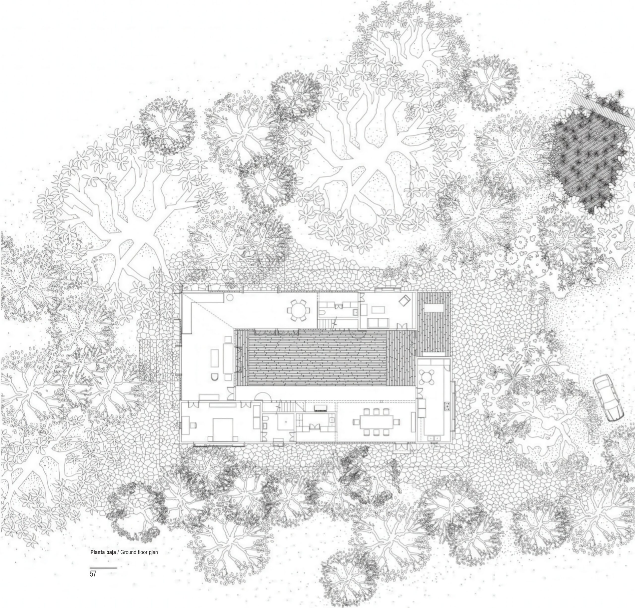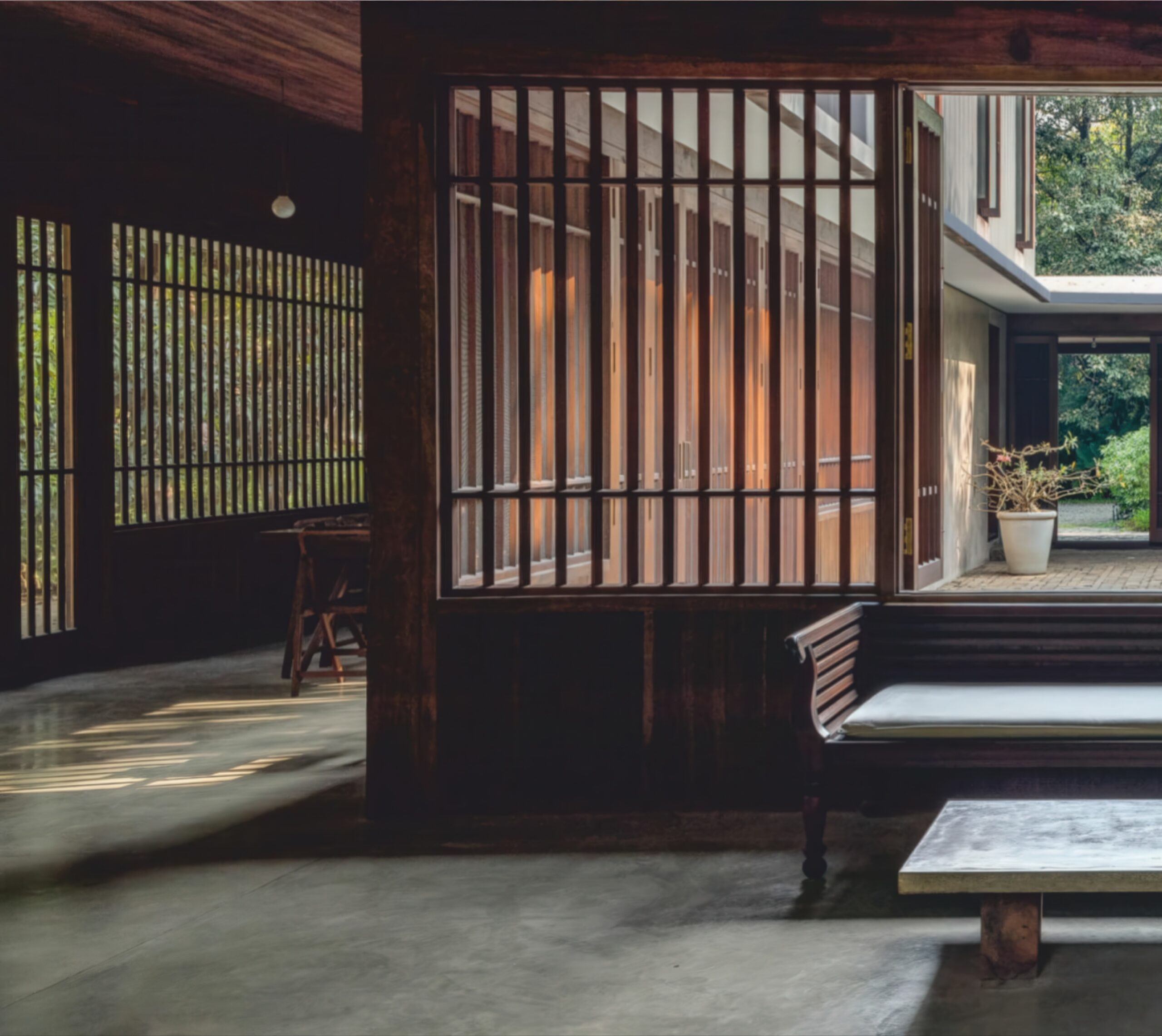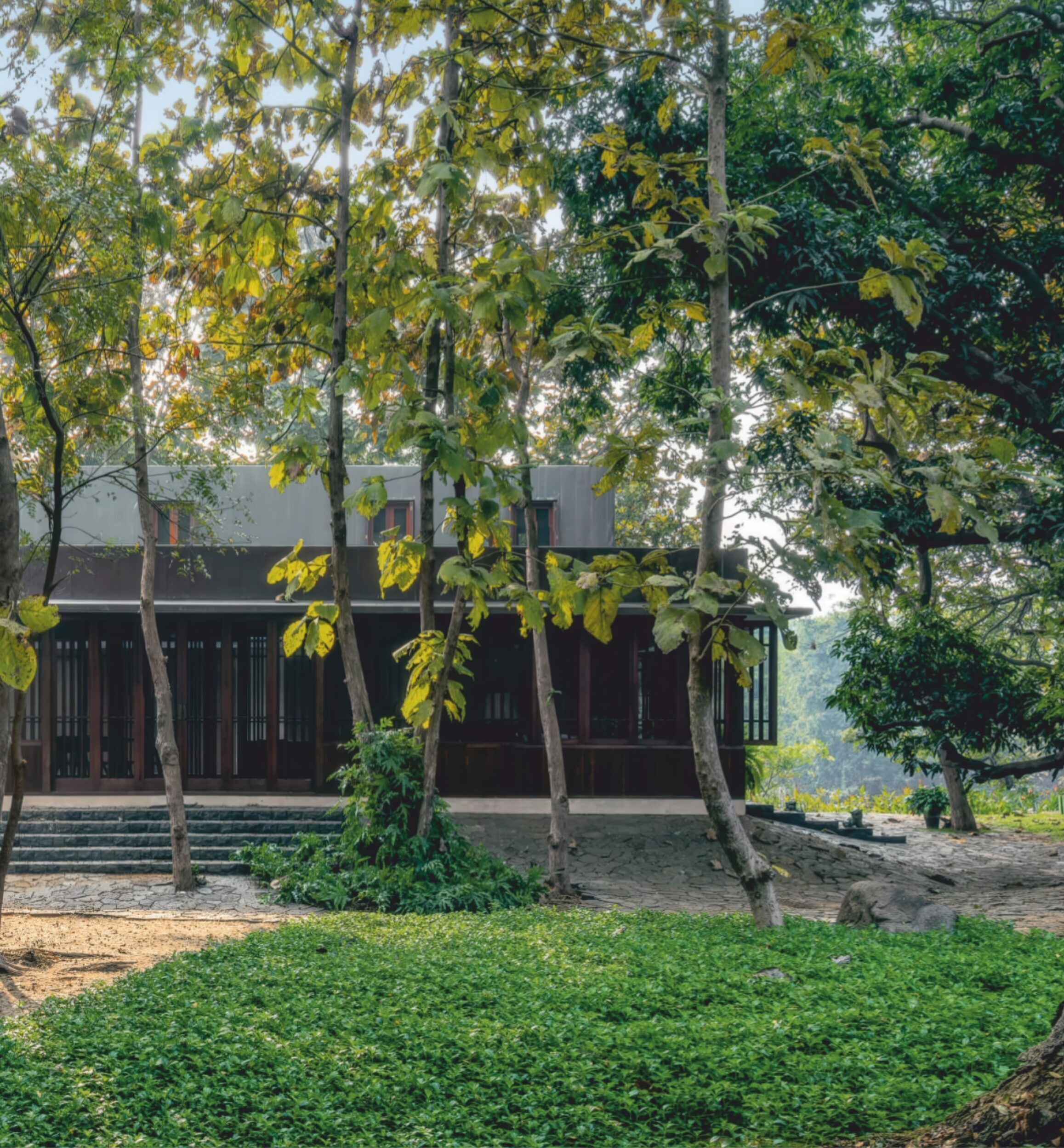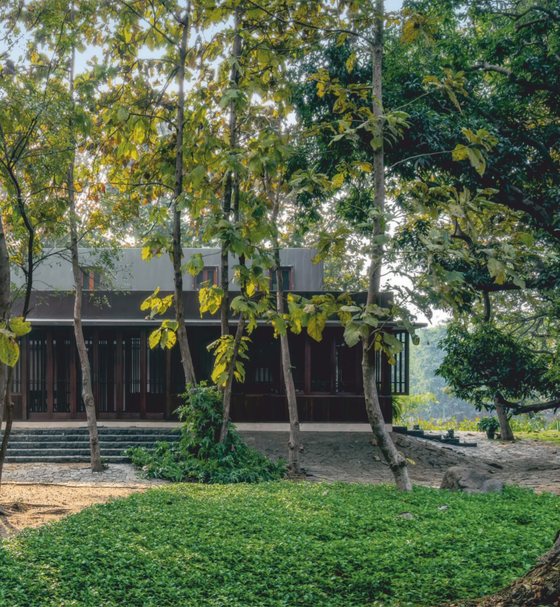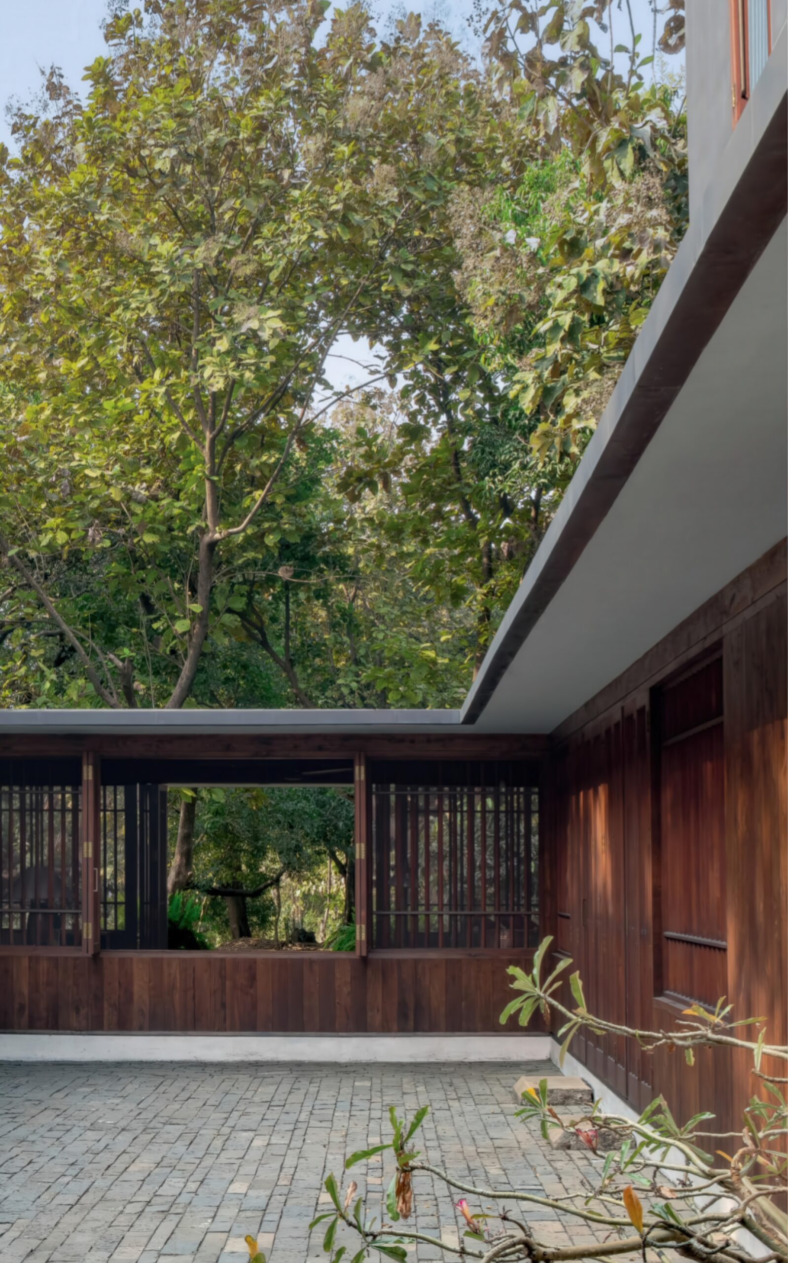 铜屋II Copper House II | 孟买工作室(Studio Mumbai)|Studio Mumbai 孟买工作室(Studio Mumbai)|Studio Mumbai • 2026-01-15 下午3:13 • 建筑设计, 独立住宅, 独立住宅设计 铜屋II Copper House II是孟买工作室在印度孟买设计的独立住宅。项目以中央庭院为核心,采用木格栅与铜网表皮,实现内外环境渗透,展现了建筑与自然的和谐关系,是地域主义与现代设计的完美结合。 设计: 孟买工作室(Studio Mumbai)|Studio Mumbai 类型: 独立住宅设计 功能: 独立住宅 风格: 地域主义 材料: 木材 石材 金属板 尺度: 小型建筑 地点:孟买 时间: 2016年 项目简介 铜屋II Copper House II是位于印度孟买的独立住宅项目,占地面积9000平方米,建筑面积未公开,由孟买工作室设计,建成时间未明确。 设计理念 设计团队以场地自生的建造逻辑为核心,利用挖掘土壤建造高台应对洪水威胁。中央庭院作为建筑精神中心,通过隐喻性的大石块连接天地、建筑与水,体现了建筑与自然的深层对话。 空间与功能 建筑围绕中央庭院组织功能空间,形成向心式布局。底层采用木格栅与铜网构成的通透表皮,实现内外环境的渗透与视觉连续性,营造出开放而私密的居住体验。 材料与技术 项目采用木材格栅、铜网和薄铜板覆层等材料。木格栅提供遮阳与通风,铜板作为防水表皮随时间产生铜绿,使建筑逐渐融入自然环境,体现了可持续的材料策略。 设计团队 孟买工作室是印度知名建筑事务所,以手工建造、地域材料和传统工艺的现代表达著称,专注于建筑与自然环境的和谐共生。 项目简介 铜屋II Copper House II是位于印度孟买的独立住宅项目,占地面积9000平方米,建筑面积未公开,由孟买工作室设计,建成时间未明确。 设计理念 设计团队以场地自生的建造逻辑为核心,利用挖掘土壤建造高台应对洪水威胁。中央庭院作为建筑精神中心,通过隐喻性的大石块连接天地、建筑与水,体现了建筑与自然的深层对话。 空间与功能 建筑围绕中央庭院组织功能空间,形成向心式布局。底层采用木格栅与铜网构成的通透表皮,实现内外环境的渗透与视觉连续性,营造出开放而私密的居住体验。 材料与技术 项目采用木材格栅、铜网和薄铜板覆层等材料。木格栅提供遮阳与通风,铜板作为防水表皮随时间产生铜绿,使建筑逐渐融入自然环境,体现了可持续的材料策略。 设计团队 孟买工作室是印度知名建筑事务所,以手工建造、地域材料和传统工艺的现代表达著称,专注于建筑与自然环境的和谐共生。 本文来自 © 孟买工作室(Studio Mumbai)|Studio Mumbai, 发布于 © 建筑学院官方网站。 未经授权,禁止转载或摘编。 编辑版本版权归 © 建筑学院官方网站 所有, 设计、图纸及照片版权归设计方 © 孟买工作室(Studio Mumbai)|Studio Mumbai ↗ 所有。 查看作者在建筑学院发布的更多作品: 孟买工作室(Studio Mumbai)|Studio Mumbai @ 建筑学院官方网站 中央庭院孟买孟买工作室独立住宅铜屋II铜材 孟买工作室(Studio Mumbai)|Studio Mumbai事务所 & 设计师 下载原图 收藏 0 关于作者 孟买工作室(Studio Mumbai)|Studio Mumbai事务所 & 设计师 关注私信 9 文章 0 评论 1 粉丝 孟买工作室(Studio Mumbai)是印度建筑师比乔伊·詹(Bijoy Jain)创立的知名建筑事务所。他们以独特的“工匠建造团队”模式著称,将设计创意与手工工艺完美融合,追求二者间的“零距离”。其作品深深植根于印度本土,擅长运用地方传统技艺、适应性设计策略和在地材料,以回应特定的自然与人文环境。 Onomichi Yamashiroya Community Centre | 孟买工作室(Studio Mumbai)|Studio Mumbai 上一篇 2026-01-15 下午12:09 阿赫玛德巴德住宅 Ahmedabad Residence | 孟买工作室(Studio Mumbai)|Studio Mumbai 下一篇 2026-01-15 下午3:55 猜你喜欢 交错纵横,自由伸展恣意生长的秘鲁海滩住宅 2019-01-23 住宅建筑设计 “像素”住宅 / The Grid Architects 2020-05-01 建筑设计 渭南·巴邑村玻璃砖房 / 西安建筑科技大学设计研究总院 2022-11-24 建筑设计 曲径通幽,简单几何——北斋之家 2019-05-22 建筑设计 连绵又笔直的白色墙体,爱琴海边上的草原住宅 2018-11-04 建筑设计 宛如一只岩石雕刻而成的“生活容器”——秘鲁永久住宅 / Longhi Architects 2020-02-09 建筑设计 发表回复 请登录后评论...登录后才能评论 提交