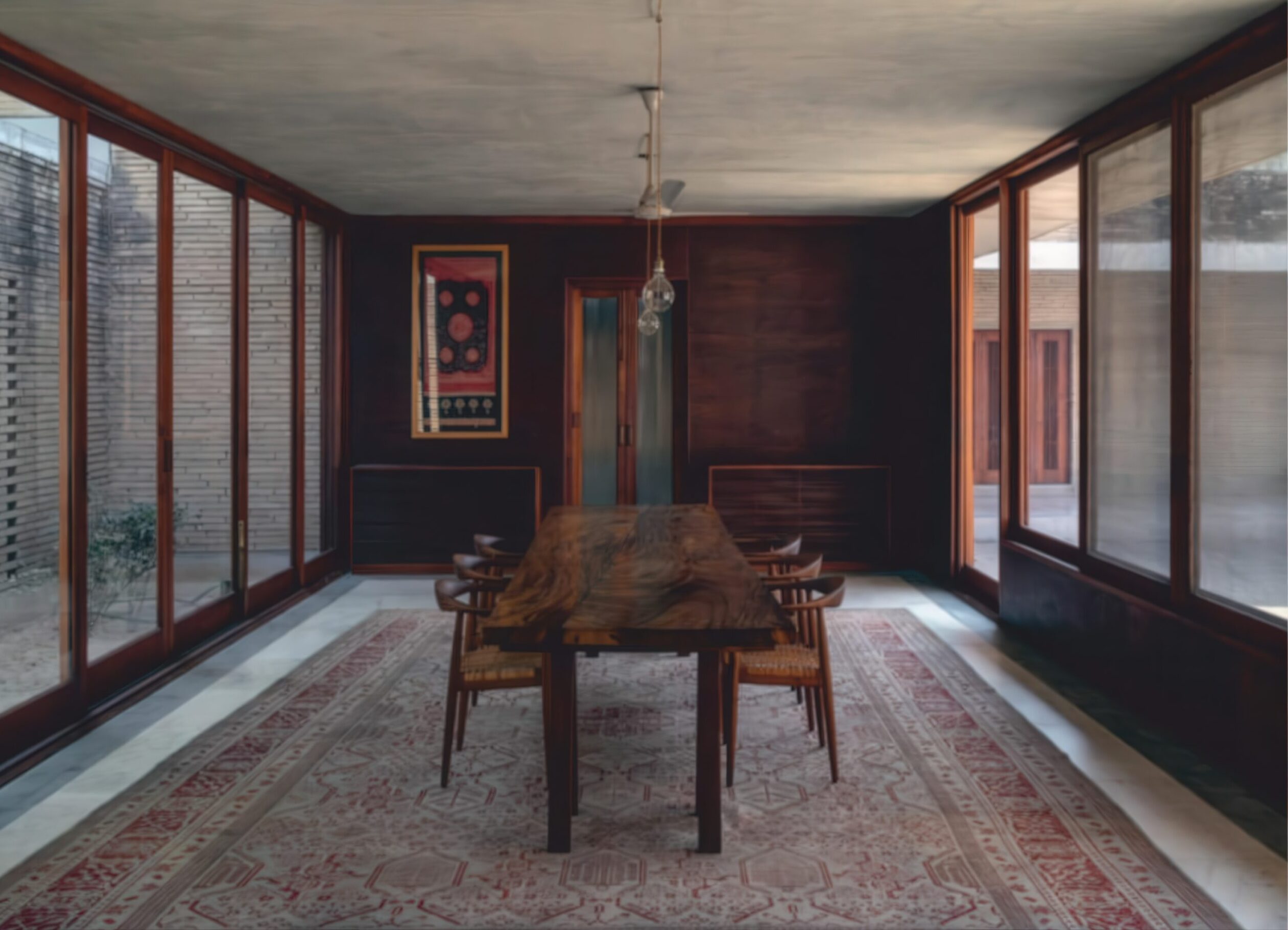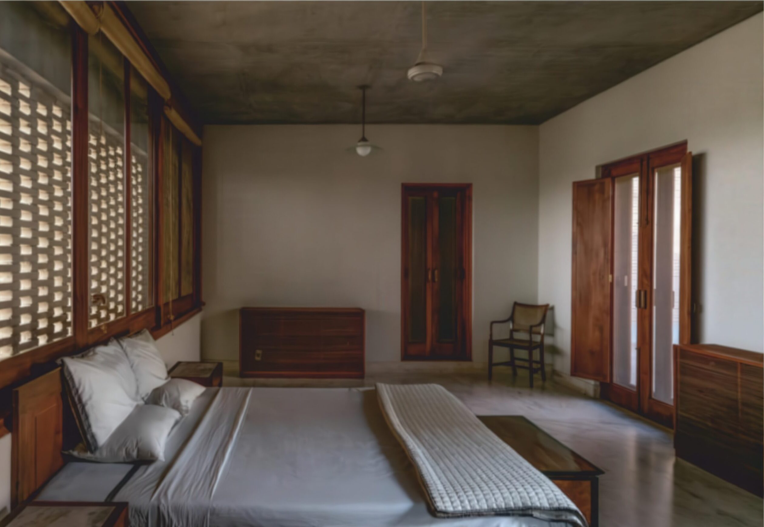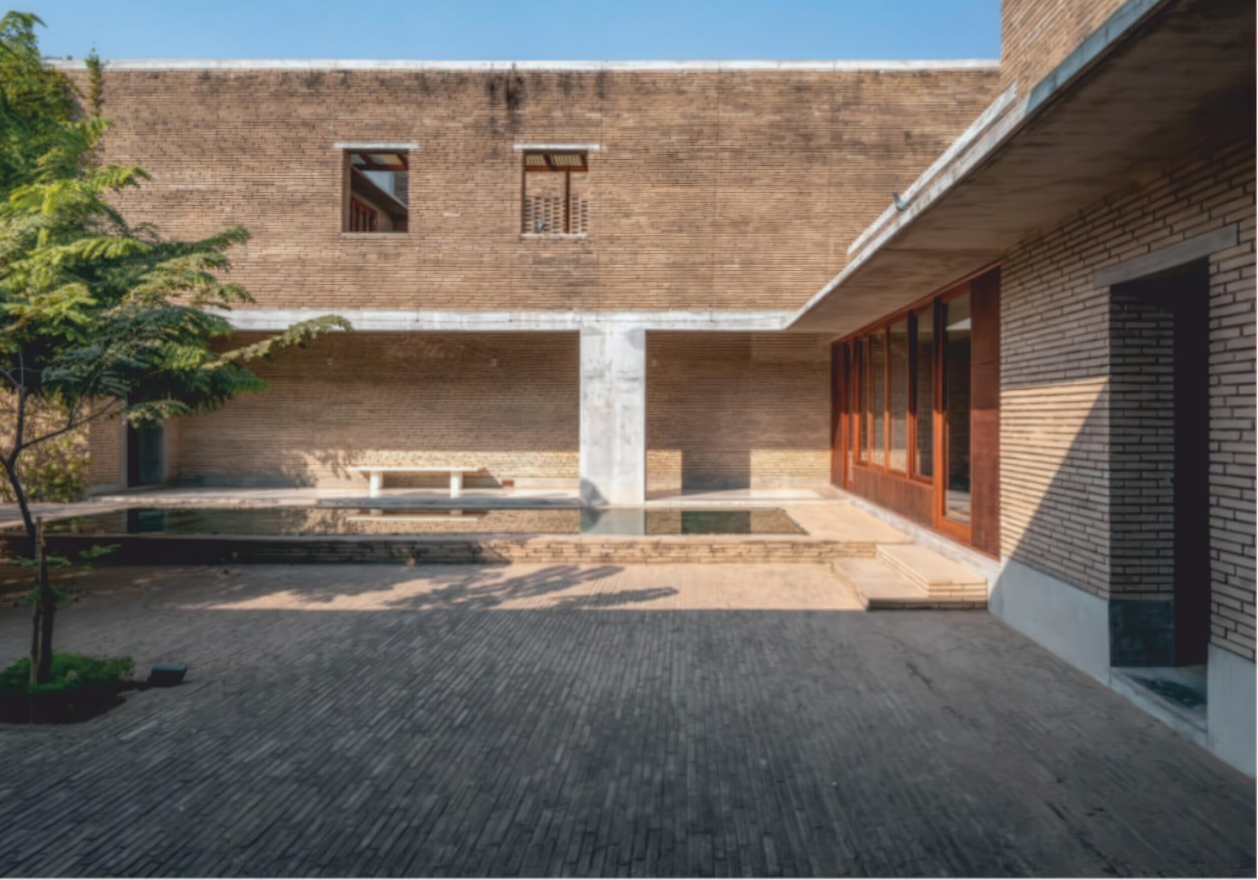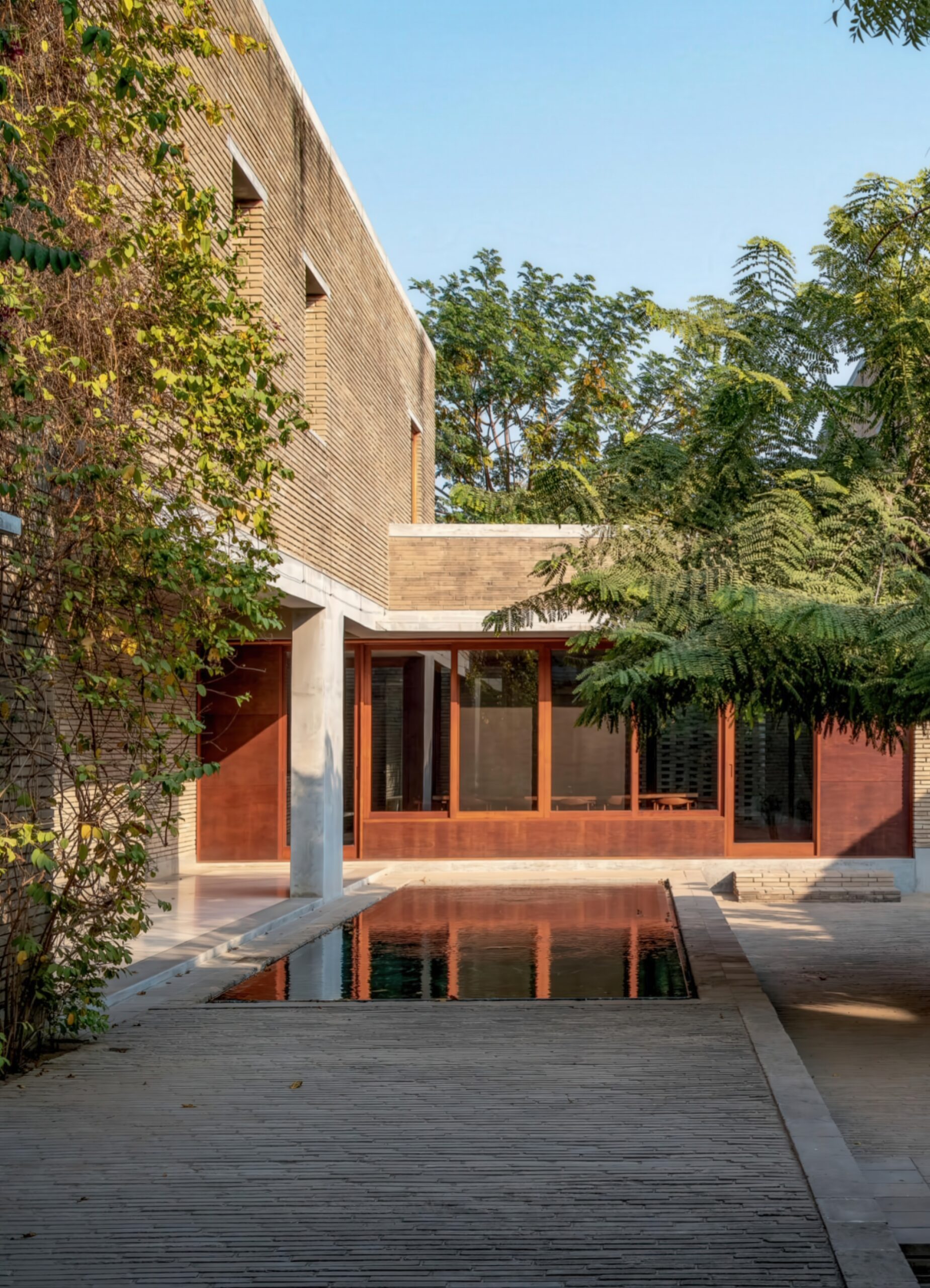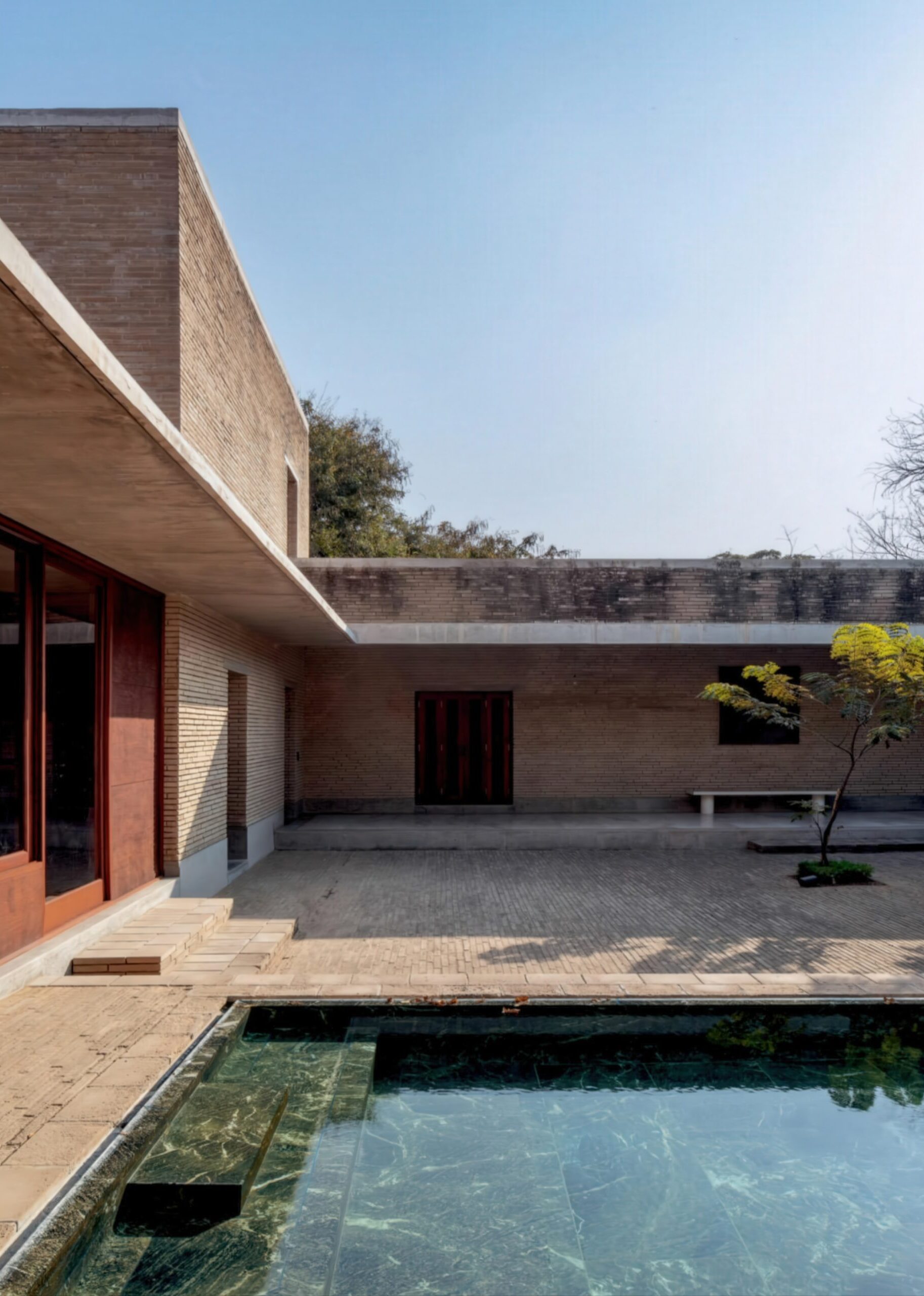 阿赫玛德巴德住宅 Ahmedabad Residence | 孟买工作室(Studio Mumbai)|Studio Mumbai 孟买工作室(Studio Mumbai)|Studio Mumbai • 2026-01-15 下午3:55 • 住宅室内设计, 室内设计, 建筑设计, 独立住宅, 独立住宅设计 阿赫玛德巴德住宅是孟买工作室在印度艾哈迈达巴德设计的标志性独立住宅。项目以野生孔雀为灵感,采用创新的土方平衡策略,将地基土壤现场压制为砖块建造。围绕中央庭院布局的三个居住单元为多代家庭提供理想生活空间,展现地域主义与可持续建筑的完美结合。 设计: 孟买工作室(Studio Mumbai)|Studio Mumbai 类型: 独立住宅设计 功能: 独立住宅 风格: 地域主义 材料: 木材 石材 砖材 夯土 尺度: 小型建筑 地点:艾哈迈达巴德 时间: 2018年 项目简介 阿赫玛德巴德住宅位于印度艾哈迈达巴德,是一座独立住宅建筑,建筑面积约450平方米,设计于2015年,建成于2018年。 设计理念 设计以场地内40只野生孔雀为灵感,采用”挖填平衡”策略,将地基挖掘出的土壤现场压制为砖块建造房屋,实现零土方运输,保护原有生态环境。建筑从土地中生长而出,体现与自然共生的设计哲学。 空间与功能 住宅围绕大型中央庭院组织,为多代同堂家庭设计三个独立居住单元,既保持私密性又相互连接。通过平台、走廊、内院、格栅、水池和阳台等空间序列,创造丰富的内向型空间体验,有效隔绝外部炎热气候。 材料与技术 主要采用现场压制土砖建造,实现材料的零运输和循环利用。结合传统砌筑工艺与现代结构技术,运用格栅遮阳、水体降温等被动式设计策略,提升建筑的热舒适性和可持续性。 设计团队 孟买工作室是印度知名建筑事务所,以手工建造和地域性表达著称,擅长运用当地材料和技术,关注建筑与自然环境的和谐共生,在可持续建筑领域具有重要影响力。 项目简介 阿赫玛德巴德住宅位于印度艾哈迈达巴德,是一座独立住宅建筑,建筑面积约450平方米,设计于2015年,建成于2018年。 设计理念 设计以场地内40只野生孔雀为灵感,采用”挖填平衡”策略,将地基挖掘出的土壤现场压制为砖块建造房屋,实现零土方运输,保护原有生态环境。建筑从土地中生长而出,体现与自然共生的设计哲学。 空间与功能 住宅围绕大型中央庭院组织,为多代同堂家庭设计三个独立居住单元,既保持私密性又相互连接。通过平台、走廊、内院、格栅、水池和阳台等空间序列,创造丰富的内向型空间体验,有效隔绝外部炎热气候。 材料与技术 主要采用现场压制土砖建造,实现材料的零运输和循环利用。结合传统砌筑工艺与现代结构技术,运用格栅遮阳、水体降温等被动式设计策略,提升建筑的热舒适性和可持续性。 设计团队 孟买工作室是印度知名建筑事务所,以手工建造和地域性表达著称,擅长运用当地材料和技术,关注建筑与自然环境的和谐共生,在可持续建筑领域具有重要影响力。 本文来自 © 孟买工作室(Studio Mumbai)|Studio Mumbai, 发布于 © 建筑学院官方网站。 未经授权,禁止转载或摘编。 编辑版本版权归 © 建筑学院官方网站 所有, 设计、图纸及照片版权归设计方 © 孟买工作室(Studio Mumbai)|Studio Mumbai ↗ 所有。 查看作者在建筑学院发布的更多作品: 孟买工作室(Studio Mumbai)|Studio Mumbai @ 建筑学院官方网站 土砖建筑孟买工作室庭院住宅独立住宅设计艾哈迈达巴德阿赫玛德巴德住宅 孟买工作室(Studio Mumbai)|Studio Mumbai事务所 & 设计师 下载原图 收藏 0 关于作者 孟买工作室(Studio Mumbai)|Studio Mumbai事务所 & 设计师 关注私信 9 文章 0 评论 1 粉丝 孟买工作室(Studio Mumbai)是印度建筑师比乔伊·詹(Bijoy Jain)创立的知名建筑事务所。他们以独特的“工匠建造团队”模式著称,将设计创意与手工工艺完美融合,追求二者间的“零距离”。其作品深深植根于印度本土,擅长运用地方传统技艺、适应性设计策略和在地材料,以回应特定的自然与人文环境。 铜屋II Copper House II | 孟买工作室(Studio Mumbai)|Studio Mumbai 上一篇 2026-01-15 下午3:13 黄色水塔house Yellow Water House | 斯米里扬·拉迪奇|Smiljan Radić 下一篇 2026-01-16 下午11:33 猜你喜欢 时光之家 / House in Time | 艾雷斯·马特乌斯建筑事务所 2025-11-09 住宅室内设计 Sakuradai House / House in Sakuradai | 长谷川豪建筑事务所|Go Hasegawa 2025-11-22 公共建筑设计 凯奥巴之家 / Caiobá House | Estúdio Gustavo Utrabo 2025-12-22 住宅建筑设计 伊克塔帕半岛上的房子 House in Punta Ixtapa | 曼努埃尔·塞万提斯|Manuel Cervantes 2025-12-10 公共建筑设计 弗恩斯住宅,克鲁姆赫希 / House by the Fens, Krumbach | 贝尔纳多·巴德尔|Bernardo Bader 2025-11-14 公共建筑设计 House at the Bäumle / Vertical Living | 贝尔纳多·巴德尔|Bernardo Bader 2025-11-19 公共建筑设计 发表回复 请登录后评论...登录后才能评论 提交