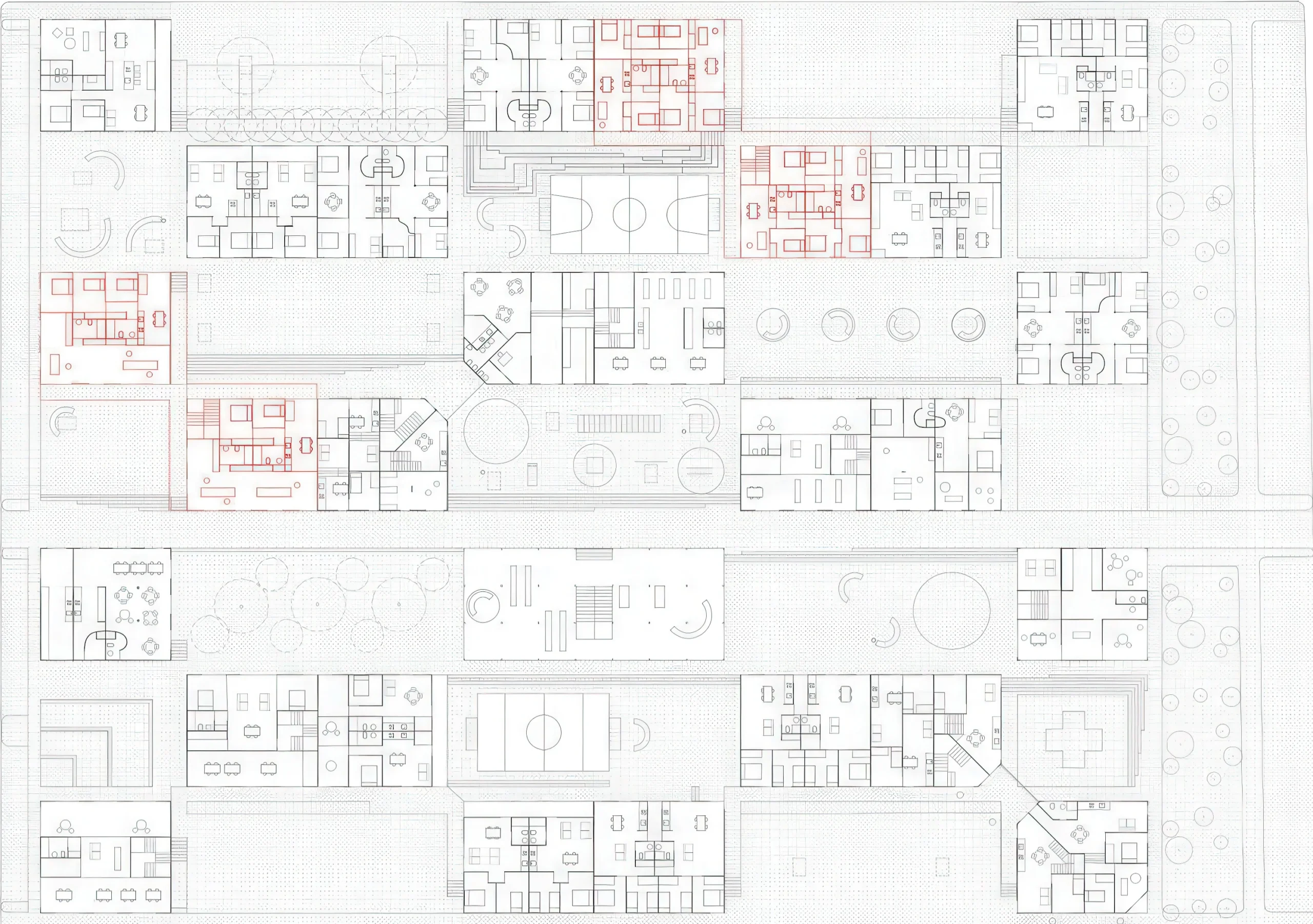 两座社会住房楼项目 / Project for Two Social Housing Blocks | Dogma Dogma • 2026-01-29 下午12:57 • 住宅建筑设计, 公寓住宅设计, 建筑设计 Dogma建筑事务所在墨西哥阿瓜斯卡连特斯设计的两座社会住房楼项目,通过棋盘式布局为每个住宅单元提供均等的空间条件。建筑采用空心砖立面与遮阳廊道系统,创造开放通风的居住环境,体现了社会住房设计的创新理念。 设计: Dogma 类型: 建筑设计 功能: 公寓住宅 风格: 当代建筑 材料: 玻璃 砖材 尺度: 中型建筑 地点:阿瓜斯卡连特斯 时间: 2018年 项目概述 两座社会住房楼项目位于墨西哥阿瓜斯卡连特斯,是大型城市街区总体规划的组成部分。该项目由Dogma建筑事务所设计,包含两栋社会住宅建筑,设计始于2018年,采用创新的棋盘式布局策略。 设计理念 Dogma建筑事务所致力于为每个住宅单元提供均等的空间条件。通过棋盘式街区布局,所有建筑都拥有三个立面直接面向广场或花园,确保每个居住单元都能与至少两个不同的公共空间建立直接联系。 空间与功能 项目将卫生间和内部流线集中在每层中心,使所有房间都能获得宽敞的外部开口。遮阳廊道系统不仅作为水平与垂直交通枢纽,还为有限面积的住宅单元提供了额外的多功能空间,可用作用餐区或工作坊等用途。 材料与技术 建筑采用空心砖立面系统,通过大型开口实现自然通风。遮阳廊道系统有效限制建筑日照暴露,使后方立面可以采用简单的玻璃门窗解决方案,体现了可持续设计策略。 项目特色与启发 两座社会住房楼项目展示了社会住宅设计的创新可能,通过空间均等化策略和灵活的多功能廊道系统,为经济适用房项目提供了新的设计范式,对城市住宅开发具有重要参考价值。 设计团队 Dogma建筑事务所专注于建筑理论与实践研究,以严谨的空间分析和创新的设计策略著称。在该项目中,Dogma与Tatiana Bilbao Estudio、Dellekamp Arquitectos等五家建筑事务所共同参与总体规划开发。 项目概述 两座社会住房楼项目位于墨西哥阿瓜斯卡连特斯,是大型城市街区总体规划的组成部分。该项目由Dogma建筑事务所设计,包含两栋社会住宅建筑,设计始于2018年,采用创新的棋盘式布局策略。 设计理念 Dogma建筑事务所致力于为每个住宅单元提供均等的空间条件。通过棋盘式街区布局,所有建筑都拥有三个立面直接面向广场或花园,确保每个居住单元都能与至少两个不同的公共空间建立直接联系。 空间与功能 项目将卫生间和内部流线集中在每层中心,使所有房间都能获得宽敞的外部开口。遮阳廊道系统不仅作为水平与垂直交通枢纽,还为有限面积的住宅单元提供了额外的多功能空间,可用作用餐区或工作坊等用途。 材料与技术 建筑采用空心砖立面系统,通过大型开口实现自然通风。遮阳廊道系统有效限制建筑日照暴露,使后方立面可以采用简单的玻璃门窗解决方案,体现了可持续设计策略。 项目特色与启发 两座社会住房楼项目展示了社会住宅设计的创新可能,通过空间均等化策略和灵活的多功能廊道系统,为经济适用房项目提供了新的设计范式,对城市住宅开发具有重要参考价值。 设计团队 Dogma建筑事务所专注于建筑理论与实践研究,以严谨的空间分析和创新的设计策略著称。在该项目中,Dogma与Tatiana Bilbao Estudio、Dellekamp Arquitectos等五家建筑事务所共同参与总体规划开发。 本文来自 © Dogma, 发布于 © 建筑学院官方网站。 未经授权,禁止转载或摘编。 编辑版本版权归 © 建筑学院官方网站 所有, 设计、图纸及照片版权归设计方 © Dogma ↗ 所有。 查看作者在建筑学院发布的更多作品: Dogma @ 建筑学院官方网站 Dogma建筑事务所project-for-two-social-housing-blocks当代住宅建筑社会住房设计阿瓜斯卡连特斯住宅 Dogma事务所 & 设计师 下载原图 收藏 0 关于作者 Dogma事务所 & 设计师 关注私信 19 文章 0 评论 1 粉丝 DOGMA建筑事务所致力于通过设计回应居住与城市的社会性议题,其工作涵盖合作住房、社会住宅及城市转型规划。他们在深圳、巴塞尔、苏黎世、墨西哥城等地均有建成实践,并以《Living and Working》一书荣获2022年DAM建筑图书奖。访问 dogma.name 可查阅其完整作品与理论研究。 伦敦寄宿屋原型 / Prototype for Boarding Houses in London | Dogma 上一篇 2026-01-28 上午9:25 Fulham住宅 House, Fulham | Sergison Bates Architects 下一篇 2026-01-30 上午9:26 猜你喜欢 洛佩兹科尔蒂亚710公寓楼 / LÓPEZ COTILLA 710 APARTMENT BUILDING | Taller Héctor Barroso 2026-02-18 住宅建筑设计 伦敦寄宿屋原型 / Prototype for Boarding Houses in London | Dogma 2026-01-28 住宅建筑设计 伦敦寄宿屋原型 / Prototype for Boarding Houses in London | Dogma 2026-01-06 住宅建筑设计 COMMUNAL VILLA / COMMUNAL VILLA | Dogma 2026-01-26 住宅建筑设计 办公园区转型研究 / Study for the Transformation of an Office Park | Dogma 2025-12-30 公共建筑设计 COMMUNAL VILLA / COMMUNAL VILLA | Dogma 2026-01-01 住宅建筑设计 发表回复 请登录后评论...登录后才能评论 提交