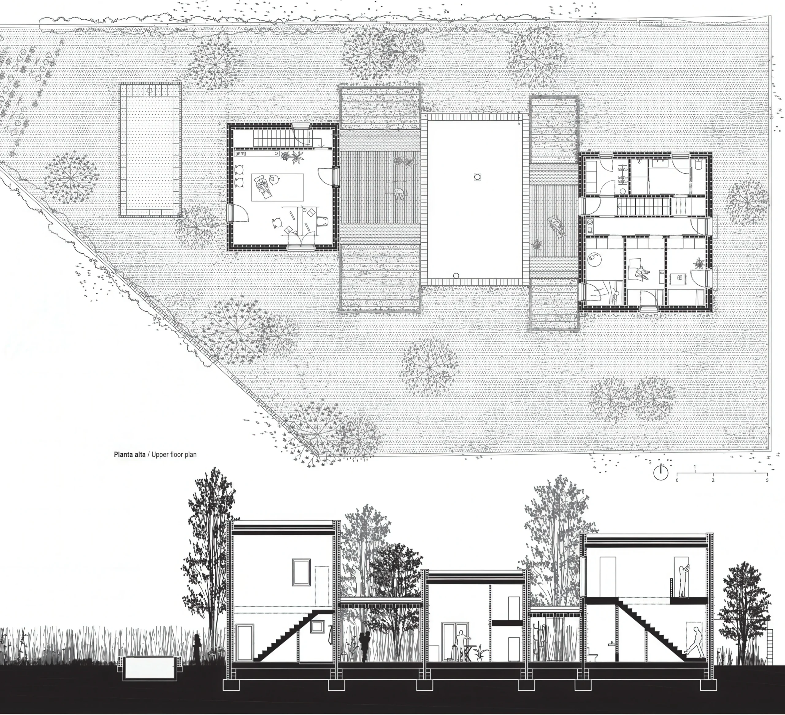塞塔克戈特-德-瓦利斯区的房屋 / House in Sant Cugat del Vallés | HArquitectes Harquitectes 建筑师事务所|Harquitectes • 52分钟前 • 住宅建筑设计, 建筑设计, 独立住宅设计 塞塔克戈特-德-瓦利斯区的房屋由HArquitectes设计,位于西班牙巴塞罗那的圣库加特住宅区。该项目通过三个砖砌体块的巧妙布局,实现了住宅与花园的紧密融合,为艺术收藏家打造了一个兼具私密性与开放性的居住空间。 设计: Harquitectes 建筑师事务所|Harquitectes 类型: 独立住宅设计 功能: 独立住宅 风格: 现代主义 材料: 混凝土 木材 玻璃 砖材 尺度: 小型建筑 地点:巴塞罗那 时间: 1970年 项目概述 塞塔克戈特-德-瓦利斯区的房屋位于西班牙巴塞罗那圣库加特住宅区,是一座为艺术收藏家设计的独立住宅。项目由HArquitectes事务所设计,于2011年至2013年间完成,通过三个砖砌体块的组合创造了独特的空间体验。 设计理念 HArquitectes的设计理念强调建筑与自然的共生关系,通过三个平行排列的体块在场地中的巧妙布局,实现了住宅与花园的相互延伸。设计避免了传统的大面积玻璃幕墙,而是采用实体墙面来营造私密感,同时通过间隙空间建立室内外的连续性。 空间与功能 塞塔克戈特-德-瓦利斯区的房屋采用三个功能分明的体块:东侧体块包含儿童卧室和游戏室,中央体块设有5米高的厨房和壁炉,西侧体块为父母区域。体块之间的间隙空间形成了入口大厅和客厅,这些空间通过大型折叠窗与花园相连,在冬季成为温室,夏季则转变为凉廊。 材料与技术 建筑采用双面承重砖墙结构,外部为裸露砖面,内部涂白。木制门窗框架配合传统卷帘遮阳系统,间隙空间采用混凝土板覆盖和木质折叠玻璃门。材料选择注重耐久性与自然质感,体现了HArquitectes对传统建造工艺的现代诠释。 项目特色与启发 塞塔克戈特-德-瓦利斯区的房屋展示了如何通过简单的体块组合创造丰富的空间层次。HArquitectes的设计在保持建筑实体感的同时,实现了与自然的无缝连接,为当代住宅设计提供了关于空间组织与场地回应的创新思路。 设计团队 HArquitectes是西班牙知名建筑事务所,以其对材料、环境和建造工艺的深入研究而著称。团队擅长通过简洁的建筑语言创造富有诗意的空间,在住宅设计中注重可持续性与地域文脉的回应。 项目概述 塞塔克戈特-德-瓦利斯区的房屋位于西班牙巴塞罗那圣库加特住宅区,是一座为艺术收藏家设计的独立住宅。项目由HArquitectes事务所设计,于2011年至2013年间完成,通过三个砖砌体块的组合创造了独特的空间体验。 设计理念 HArquitectes的设计理念强调建筑与自然的共生关系,通过三个平行排列的体块在场地中的巧妙布局,实现了住宅与花园的相互延伸。设计避免了传统的大面积玻璃幕墙,而是采用实体墙面来营造私密感,同时通过间隙空间建立室内外的连续性。 空间与功能 塞塔克戈特-德-瓦利斯区的房屋采用三个功能分明的体块:东侧体块包含儿童卧室和游戏室,中央体块设有5米高的厨房和壁炉,西侧体块为父母区域。体块之间的间隙空间形成了入口大厅和客厅,这些空间通过大型折叠窗与花园相连,在冬季成为温室,夏季则转变为凉廊。 材料与技术 建筑采用双面承重砖墙结构,外部为裸露砖面,内部涂白。木制门窗框架配合传统卷帘遮阳系统,间隙空间采用混凝土板覆盖和木质折叠玻璃门。材料选择注重耐久性与自然质感,体现了HArquitectes对传统建造工艺的现代诠释。 项目特色与启发 塞塔克戈特-德-瓦利斯区的房屋展示了如何通过简单的体块组合创造丰富的空间层次。HArquitectes的设计在保持建筑实体感的同时,实现了与自然的无缝连接,为当代住宅设计提供了关于空间组织与场地回应的创新思路。 设计团队 HArquitectes是西班牙知名建筑事务所,以其对材料、环境和建造工艺的深入研究而著称。团队擅长通过简洁的建筑语言创造富有诗意的空间,在住宅设计中注重可持续性与地域文脉的回应。 本文来自 © Harquitectes 建筑师事务所|Harquitectes, 发布于 © 建筑学院官方网站。 未经授权,禁止转载或摘编。 编辑版本版权归 © 建筑学院官方网站 所有, 设计、图纸及照片版权归设计方 © Harquitectes 建筑师事务所|Harquitectes ↗ 所有。 查看作者在建筑学院发布的更多作品: Harquitectes 建筑师事务所|Harquitectes @ 建筑学院官方网站 HarquitectesHouse in Sant Cugat del Vallés巴塞罗那住宅独立住宅设计现代主义住宅 Harquitectes 建筑师事务所|Harquitectes事务所 & 设计师 下载原图 收藏 0 关于作者 Harquitectes 建筑师事务所|Harquitectes事务所 & 设计师 关注私信 19 文章 0 评论 0 粉丝 Harquitectes是西班牙备受赞誉的建筑师事务所,以其对环境、材料和建造逻辑的深刻洞察而闻名。其官网harquitectes.com展示了众多获奖作品,涵盖学校、住宅及公共建筑。他们擅长运用本土、可持续的策略,创造舒适、高效且充满诗意的空间。 新巴塞罗那中央档案馆 / New Barcelona Central Archives | HArquitectes 上一篇 1天前 弗朗茨·麦卡利亚街上的房子 / House on Francesc Macià Street | HArquitectes 下一篇 52分钟前 猜你喜欢 两座房子 / House+House | Estúdio Gustavo Utrabo 2026-01-01 住宅建筑设计 异域宅院 / Alien House | 阿尔弗雷多·帕亚|Alfredo Payá 2025-12-02 公共建筑设计 弗斯特纳布尔克的库伯尔之家 / Kübler House in Fürstenaubruck | 吉翁·A·卡米纳达|Gion A. Caminada 2025-12-28 住宅建筑设计 梅尔