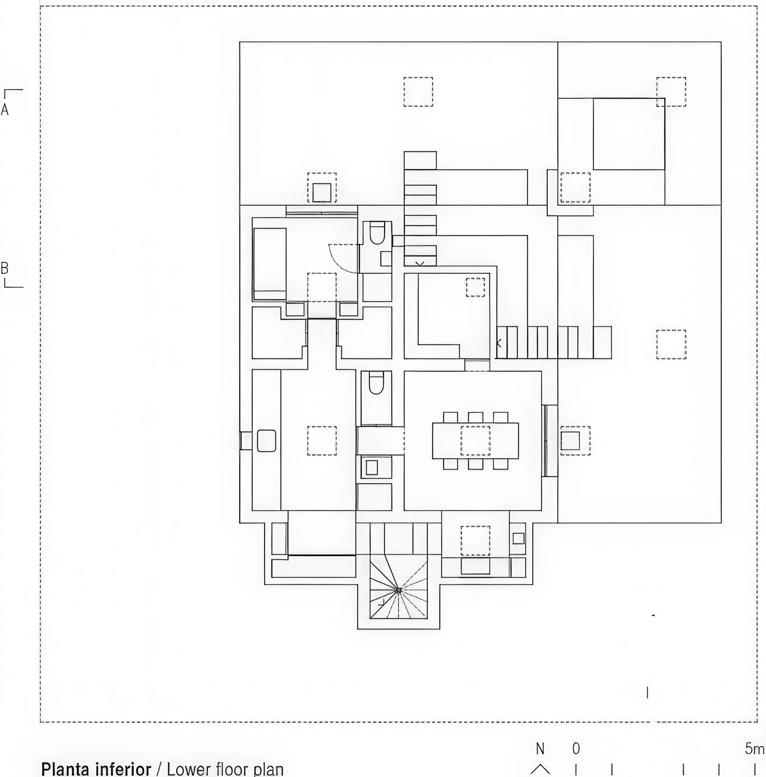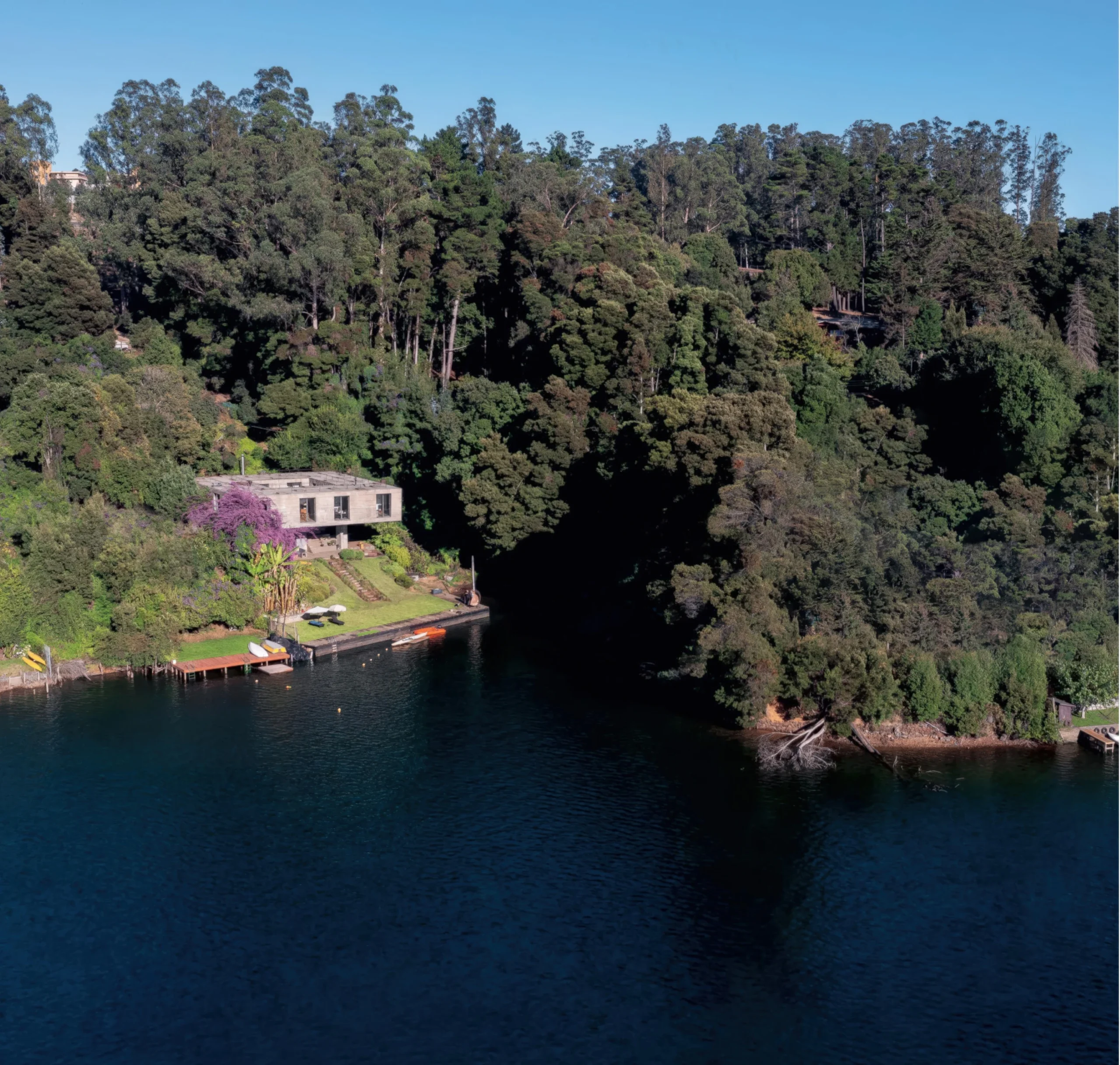 圣皮埃德拉帕斯的房屋 / House in San Pedro de la Paz | Pezo Von Ellrichshausen Pezo Von Ellrichshausen • 2026-02-03 上午9:42 • 住宅建筑设计, 建筑设计, 独立住宅设计 圣皮埃德拉帕斯的房屋由智利Pezo Von Ellrichshausen建筑事务所设计,位于智利第八大区圣佩德罗德拉克鲁斯,是一座独特的独立住宅。项目通过混凝土体块与地形的巧妙对话,创造了悬浮于湖湾之上的居住体验。 设计: Pezo Von Ellrichshausen 类型: 独立住宅设计 功能: 独立住宅 风格: 现代主义 材料: 混凝土 尺度: 小型建筑 地点:圣佩德罗德拉克鲁斯 时间: 1970年 项目概述 圣皮埃德拉帕斯的房屋位于智利第八大区圣佩德罗德拉克鲁斯,是一座独立住宅项目。建筑占地狭窄,设计于2010年至2014年间完成,通过上下两层不同尺度的体量组合,巧妙回应了陡峭山坡与尤加利树林的场地特征。 设计理念 Pezo Von Ellrichshausen建筑事务所以”力量的冲突结晶化”为概念,通过单块混凝土棱柱体量调和地形矛盾。上层20米见方的体量悬浮于8.5米见方的底层之上,形成强烈的几何对比,同时通过中央庭院建立内外空间的连续性。 空间与功能 建筑采用严格的网格布局,上层围绕中央庭院组织卧室空间,四个角落通过辅助模块连接交通流线。每个房间顶部设有天窗,强化垂直维度并引入自然光线。底层容纳日常家居功能,布局相对灵活,与上层形成功能与形式的鲜明对比。 材料与技术 项目主要采用现浇混凝土结构,表面保留模板的粗糙纹理并施以稀释黑色涂层。上层四个庭院墙体作为Vierendeel梁平衡支撑于底层基座上,展现了结构力学的精确表达。建筑通过悬挑设计和中央庭院实现自然通风与采光。 项目特色与启发 圣皮埃德拉帕斯的房屋展示了Pezo Von Ellrichshausen对地形与建筑关系的深刻理解,其严谨的几何秩序与场地特征的巧妙融合,为山地住宅设计提供了创新范例。项目的结构表达与空间组织方式对当代住宅设计具有重要参考价值。 设计团队 Pezo Von Ellrichshausen是智利知名建筑事务所,由Mauricio Pezo和Sofia von Ellrichshausen共同创立。事务所以严谨的几何研究和对场地文脉的敏感回应著称,在住宅与艺术建筑领域具有国际影响力。 项目概述 圣皮埃德拉帕斯的房屋位于智利第八大区圣佩德罗德拉克鲁斯,是一座独立住宅项目。建筑占地狭窄,设计于2010年至2014年间完成,通过上下两层不同尺度的体量组合,巧妙回应了陡峭山坡与尤加利树林的场地特征。 设计理念 Pezo Von Ellrichshausen建筑事务所以”力量的冲突结晶化”为概念,通过单块混凝土棱柱体量调和地形矛盾。上层20米见方的体量悬浮于8.5米见方的底层之上,形成强烈的几何对比,同时通过中央庭院建立内外空间的连续性。 空间与功能 建筑采用严格的网格布局,上层围绕中央庭院组织卧室空间,四个角落通过辅助模块连接交通流线。每个房间顶部设有天窗,强化垂直维度并引入自然光线。底层容纳日常家居功能,布局相对灵活,与上层形成功能与形式的鲜明对比。 材料与技术 项目主要采用现浇混凝土结构,表面保留模板的粗糙纹理并施以稀释黑色涂层。上层四个庭院墙体作为Vierendeel梁平衡支撑于底层基座上,展现了结构力学的精确表达。建筑通过悬挑设计和中央庭院实现自然通风与采光。 项目特色与启发 圣皮埃德拉帕斯的房屋展示了Pezo Von Ellrichshausen对地形与建筑关系的深刻理解,其严谨的几何秩序与场地特征的巧妙融合,为山地住宅设计提供了创新范例。项目的结构表达与空间组织方式对当代住宅设计具有重要参考价值。 设计团队 Pezo Von Ellrichshausen是智利知名建筑事务所,由Mauricio Pezo和Sofia von Ellrichshausen共同创立。事务所以严谨的几何研究和对场地文脉的敏感回应著称,在住宅与艺术建筑领域具有国际影响力。 本文来自 © Pezo Von Ellrichshausen, 发布于 © 建筑学院官方网站。 未经授权,禁止转载或摘编。 编辑版本版权归 © 建筑学院官方网站 所有, 设计、图纸及照片版权归设计方 © Pezo Von Ellrichshausen ↗ 所有。 查看作者在建筑学院发布的更多作品: Pezo Von Ellrichshausen @ 建筑学院官方网站 house in san pedro de la pazPezo von Ellrichshausen智利住宅建筑独立住宅设计现代主义住宅 Pezo Von Ellrichshausen事务所 & 设计师 下载原图 收藏 0 关于作者 Pezo Von Ellrichshausen事务所 & 设计师 关注私信 14 文章 0 评论 0 粉丝 Pezo Von Ellrichshausen是智利知名建筑事务所,由Mauricio Pezo与Sofia von Ellrichshausen创立。其作品以强烈的雕塑感、对几何形态的探索和材料的诗意运用而闻名,涵盖住宅、艺术装置与展览设计。事务所曾多次参展威尼斯建筑双年展,是南美当代建筑的重要代表。访问官网pezo.cl,探索其深邃而独特的设计世界。 托马斯之家 / House in Tome | Pezo Von Ellrichshausen 上一篇 2026-02-03 上午9:42 Rise Areal 高层住宅 / Rise Areal High-Rise | Roger Boltshauser 下一篇 2026-02-04 上午9:10 猜你喜欢 荷兰私人住宅,霍伊莱特 / Private house, Hoeilaart | Xaveer de Geyter 2026-02-26 住宅建筑设计 川崎住宅 / House in Kawasaki | 长谷川豪建筑事务所 2025-11-22 公共建筑设计 Mas Salvà 农家小屋 / Mas Salvà Farm House | +RCR 建筑事务所|RCR Arquitectes 2025-11-03 公共建筑设计 一面像堡垒,一面做坡顶的月牙形住宅 2018-01-16 独立住宅设计 上海石库沟住宅 / Shochikucho House | SANAA 2026-02-23 住宅建筑设计 洛杉矶四座房子 / FOUR HOUSES IN LOS HELECHOS | Taller Héctor Barroso 2026-02-18 