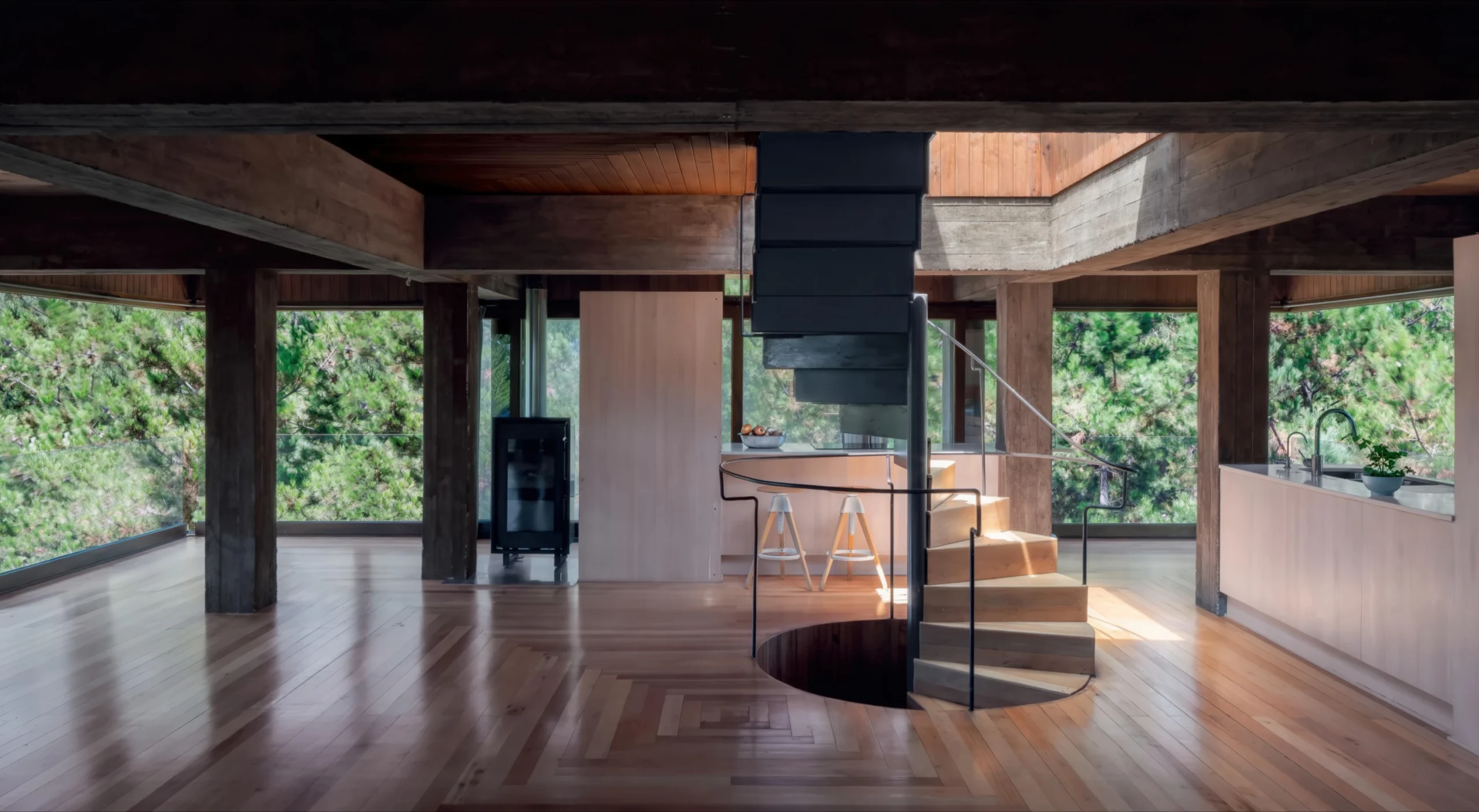 Casa de Navidad / House in Navidad | Pezo Von Ellrichshausen Pezo Von Ellrichshausen • 2026-02-05 上午9:13 • 住宅建筑设计, 建筑设计, 独立住宅设计 设计: Pezo Von Ellrichshausen 类型: 独立住宅设计 功能: 独立住宅 风格: 当代建筑 材料: 混凝土 木材 玻璃 尺度: 小型建筑 地点:纳维达 时间: 2016年 项目概述 Casa de Navidad 住宅项目位于智利第六大区纳维达市,由 Pezo Von Ellrichshausen 建筑事务所于2014年至2016年间设计建造。这座独立住宅采用独特的同心圆结构体系,通过四个刚性框架构建出层次分明的空间组织。 设计理念 Pezo Von Ellrichshausen 的设计团队以古典建筑中的”entasis”概念为灵感,创造出倒置的重力调节系统。Casa de Navidad 住宅通过严谨的几何秩序回应场地特征,建筑体量从周边植被中微微显露,形成与自然环境既分离又对话的独特关系。 空间与功能 Casa de Navidad 的空间组织呈现出机械化的分层景观。通过偏心的螺旋楼梯连接三个不同层次:底层划分为四个象限区域,中层通过对角线家具划分,顶层则是开放通透的连续空间。每个楼层都被上一层对称保护,创造出丰富的空间体验。 材料与技术 建筑采用钢筋混凝土框架结构,外柱基部与垂直梁轻微错位,形成装饰性三联浅槽的模糊效果。在深色混凝土网格之间使用当地原生木材制作平台、家具和大型玻璃面板,展现材料的地域性与现代性结合。 项目特色与启发 Casa de Navidad 展示了 Pezo Von Ellrichshausen 在住宅设计中的结构创新,其单一体量支撑完全受限的网格系统,为当代住宅设计提供了新的思考维度。项目在严谨几何与自由体验间的平衡具有重要参考价值。 设计团队 Pezo Von Ellrichshausen 是智利知名建筑事务所,以其在艺术与建筑交叉领域的探索而闻名。事务所擅长通过严谨的几何秩序创造独特的空间体验,在住宅和文化建筑领域均有杰出表现。 项目概述 Casa de Navidad 住宅项目位于智利第六大区纳维达市,由 Pezo Von Ellrichshausen 建筑事务所于2014年至2016年间设计建造。这座独立住宅采用独特的同心圆结构体系,通过四个刚性框架构建出层次分明的空间组织。 设计理念 Pezo Von Ellrichshausen 的设计团队以古典建筑中的”entasis”概念为灵感,创造出倒置的重力调节系统。Casa de Navidad 住宅通过严谨的几何秩序回应场地特征,建筑体量从周边植被中微微显露,形成与自然环境既分离又对话的独特关系。 空间与功能 Casa de Navidad 的空间组织呈现出机械化的分层景观。通过偏心的螺旋楼梯连接三个不同层次:底层划分为四个象限区域,中层通过对角线家具划分,顶层则是开放通透的连续空间。每个楼层都被上一层对称保护,创造出丰富的空间体验。 材料与技术 建筑采用钢筋混凝土框架结构,外柱基部与垂直梁轻微错位,形成装饰性三联浅槽的模糊效果。在深色混凝土网格之间使用当地原生木材制作平台、家具和大型玻璃面板,展现材料的地域性与现代性结合。 项目特色与启发 Casa de Navidad 展示了 Pezo Von Ellrichshausen 在住宅设计中的结构创新,其单一体量支撑完全受限的网格系统,为当代住宅设计提供了新的思考维度。项目在严谨几何与自由体验间的平衡具有重要参考价值。 设计团队 Pezo Von Ellrichshausen 是智利知名建筑事务所,以其在艺术与建筑交叉领域的探索而闻名。事务所擅长通过严谨的几何秩序创造独特的空间体验,在住宅和文化建筑领域均有杰出表现。 本文来自 © Pezo Von Ellrichshausen, 发布于 © 建筑学院官方网站。 未经授权,禁止转载或摘编。 编辑版本版权归 © 建筑学院官方网站 所有, 设计、图纸及照片版权归设计方 © Pezo Von Ellrichshausen ↗ 所有。 查看作者在建筑学院发布的更多作品: Pezo Von Ellrichshausen @ 建筑学院官方网站 house in navidadPezo von Ellrichshausen当代建筑智利住宅独立住宅设计 Pezo Von Ellrichshausen事务所 & 设计师 下载原图 收藏 0 关于作者 Pezo Von Ellrichshausen事务所 & 设计师 关注私信 14 文章 0 评论 0 粉丝 Pezo Von Ellrichshausen是智利知名建筑事务所,由Mauricio Pezo与Sofia von Ellrichshausen创立。其作品以强烈的雕塑感、对几何形态的探索和材料的诗意运用而闻名,涵盖住宅、艺术装置与展览设计。事务所曾多次参展威尼斯建筑双年展,是南美当代建筑的重要代表。访问官网pezo.cl,探索其深邃而独特的设计世界。 威尼斯馆 / Pavilion in Venice | Pezo Von Ellrichshausen 上一篇 2026-02-05 上午9:13 住宅开发阿尔特维森 / Residential Development Altwiesen | Roger Boltshauser 下一篇 2026-02-06 下午7:50 猜你喜欢 CASA ESPINAL / Spinal House | 帕琳达·坎南加拉|Palinda Kannangara 2026-01-07 住宅建筑设计 希尔之家 / Hill House | MARKLEE 建筑事务所 2025-11-15 公共建筑设计 科克兰创新中心 / Innovation Centre in Concepción | Pezo Von Ellrichshausen 2026-02-02 公共建筑设计 加那达之家 / Cañada House | Taller Héctor Barroso 2026-02-17 住宅建筑设计 异域宅院 / Alien House | 阿尔弗雷多·帕亚|Alfredo Payá 2025-12-02 公共建筑设计 莫利波之家 / Morimoto House | SANAA 2026-02-10 住宅建筑设计 发表回复 请登录后评论...登录后才能评论 提交