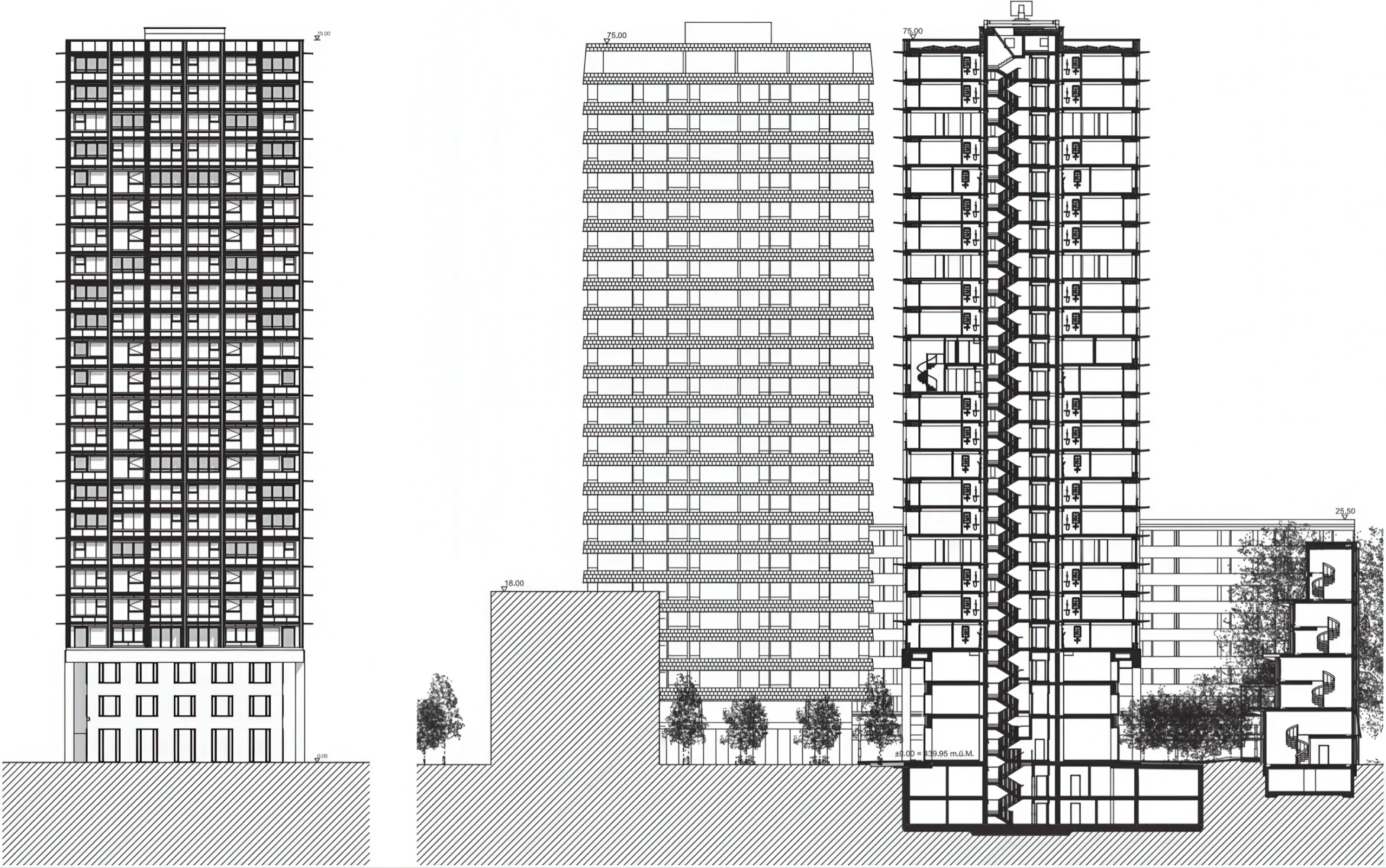 Rise Areal 高层住宅 / Rise Areal High-Rise | Roger Boltshauser Roger Boltshauser • 2026-02-04 上午9:10 • 住宅建筑设计, 公寓住宅设计, 建筑设计 Rise Areal 高层住宅由 Roger Boltshauser 设计,位于瑞士苏黎世附近的 Regensdorf,是一座24层混合结构住宅建筑。该项目采用创新的木结构与混凝土基础结合,光伏立面系统提供能源,展现了当代可持续高层住宅的设计理念。 设计: Roger Boltshauser 类型: 建筑设计 功能: 公寓住宅 风格: 当代建筑 材料: 混凝土 木材 玻璃 金属板 尺度: 大型建筑 地点:Regensdorf 时间: 2019年 项目概述 Rise Areal 高层住宅位于瑞士苏黎世附近的 Regensdorf,是 Bahnhof Nord 开发区的重要组成部分。这座24层建筑由 Roger Boltshauser 设计,采用创新的混合结构体系,包含150个灵活住宅单元及公共功能空间,设计始于2019年。 设计理念 Roger Boltshauser 的设计理念强调结构与空间的清晰表达,通过精致的木结构与厚重的混凝土基座形成鲜明对比。建筑以75米高的体量回应城市尺度,同时通过拱廊空间建立与周边环境的联系,体现了现代高层建筑与城市肌理的融合。 空间与功能 Rise Areal 高层住宅的空间组织遵循结构逻辑:底层设置接待区、小酒馆和共享办公空间,三层以上为150个灵活住宅单元。社区楼层配备双层会议室和宽敞的露台,室内材料保持原始质感,木结构和梁柱裸露可见,营造简约而温暖的空间氛围。 材料与技术 建筑采用创新的混合结构体系:地下室和基座为混凝土骨架结构,上部楼层采用木结构。立面采用精致的金属幕墙系统,集成水平布置的光伏板,既提供能源又作为遮阳系统。相比传统混凝土结构,木结构部分在60年生命周期内减少约670吨二氧化碳排放。 项目特色与启发 Rise Areal 高层住宅展示了当代可持续高层建筑的发展方向,其创新的木混结构体系和集成光伏立面为绿色建筑实践提供了重要参考。Roger Boltshauser 的设计在结构表达、能源效率和空间品质之间取得了平衡,对未来的城市住宅设计具有启发意义。 设计团队 Roger Boltshauser 是瑞士知名建筑师,以其对材料、结构和可持续性的深入研究而闻名。他的作品常常探索传统与现代建筑技术的结合,在住宅和公共建筑领域有着丰富的实践经验,Rise Areal 高层住宅体现了其独特的设计理念和技术创新。 项目概述 Rise Areal 高层住宅位于瑞士苏黎世附近的 Regensdorf,是 Bahnhof Nord 开发区的重要组成部分。这座24层建筑由 Roger Boltshauser 设计,采用创新的混合结构体系,包含150个灵活住宅单元及公共功能空间,设计始于2019年。 设计理念 Roger Boltshauser 的设计理念强调结构与空间的清晰表达,通过精致的木结构与厚重的混凝土基座形成鲜明对比。建筑以75米高的体量回应城市尺度,同时通过拱廊空间建立与周边环境的联系,体现了现代高层建筑与城市肌理的融合。 空间与功能 Rise Areal 高层住宅的空间组织遵循结构逻辑:底层设置接待区、小酒馆和共享办公空间,三层以上为150个灵活住宅单元。社区楼层配备双层会议室和宽敞的露台,室内材料保持原始质感,木结构和梁柱裸露可见,营造简约而温暖的空间氛围。 材料与技术 建筑采用创新的混合结构体系:地下室和基座为混凝土骨架结构,上部楼层采用木结构。立面采用精致的金属幕墙系统,集成水平布置的光伏板,既提供能源又作为遮阳系统。相比传统混凝土结构,木结构部分在60年生命周期内减少约670吨二氧化碳排放。 项目特色与启发 Rise Areal 高层住宅展示了当代可持续高层建筑的发展方向,其创新的木混结构体系和集成光伏立面为绿色建筑实践提供了重要参考。Roger Boltshauser 的设计在结构表达、能源效率和空间品质之间取得了平衡,对未来的城市住宅设计具有启发意义。 设计团队 Roger Boltshauser 是瑞士知名建筑师,以其对材料、结构和可持续性的深入研究而闻名。他的作品常常探索传统与现代建筑技术的结合,在住宅和公共建筑领域有着丰富的实践经验,Rise Areal 高层住宅体现了其独特的设计理念和技术创新。 本文来自 © Roger Boltshauser, 发布于 © 建筑学院官方网站。 未经授权,禁止转载或摘编。 编辑版本版权归 © 建筑学院官方网站 所有, 设计、图纸及照片版权归设计方 © Roger Boltshauser ↗ 所有。 查看作者在建筑学院发布的更多作品: Roger Boltshauser @ 建筑学院官方网站 Regensdorf住宅Rise Areal High-RiseRoger Boltshauser可持续建筑高层住宅设计 Roger Boltshauser事务所 & 设计师 下载原图 收藏 0 关于作者 Roger Boltshauser事务所 & 设计师 关注私信 13 文章 0 评论 0 粉丝 Roger Boltshauser是瑞士著名建筑师,以其对可持续建筑的深刻实践和对传统材料(尤其是夯土技术)的现代创新而闻名。他的作品融合了精准的构造逻辑与独特的材料质感,在住宅与文化建筑领域成就卓著,是当代探索建筑生态性与地域性的重要代表。访问官网boltshauser.ch,探索其深邃的建筑理念与作品全貌。 圣皮埃德拉帕斯的房屋 / House in San Pedro de la Paz | Pezo Von Ellrichshausen 上一篇 2026-02-03 上午9:42 ETH研究楼,GLC / GLC Research Building, ETH | Roger Boltshauser 下一篇 2026-02-04 上午9:11 猜你喜欢 奥勒里克森体育和游泳中心 / Oerlikon Sports and Swimming Center | Roger Boltshauser 5小时前 体育建筑 克拉默阿克尔小学 / Krämeracker Primary School | Roger Boltshauser 5天前 公共建筑设计 帕劳Solità岛Plegamans的住宅 / House in Palau Solità i Plegamans | HArquitectes 2026-02-12 住宅