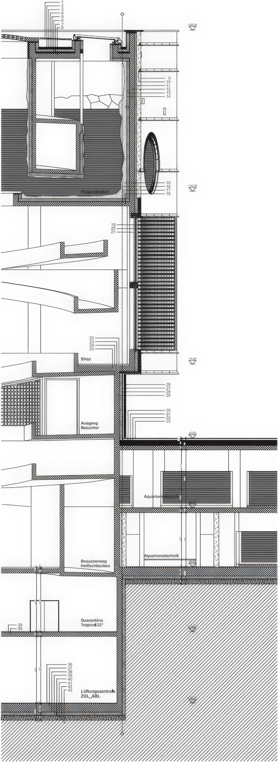 巴塞尔动物园 Ozeanium / Basel Zoo Ozeanium | Roger Boltshauser Roger Boltshauser • 2026-02-11 下午1:15 • 公共建筑设计, 建筑设计, 文化建筑设计 巴塞尔动物园 Ozeanium 是 Roger Boltshauser 设计的海洋水族馆扩建项目,位于瑞士巴塞尔。该项目通过柔和的曲线几何形态巧妙回应城市肌理,采用创新的夯土技术实现可持续能源系统,为动物园创造了一个与城市直接连接的文化门户。 设计: Roger Boltshauser 类型: 文化建筑设计 功能: 博物馆 风格: 当代建筑 材料: 混凝土 钢材 玻璃 夯土 尺度: 大型建筑 地点:巴塞尔 时间: 1970年 项目概述 巴塞尔动物园 Ozeanium 是位于瑞士巴塞尔的一座海洋水族馆扩建项目,由 Roger Boltshauser 设计。该项目作为动物园的最新扩展,旨在成为连接动物园与 Steinenvorstadt 区的门户建筑,设计于2012年竞赛获奖,原计划2019年建成。 设计理念 Ozeanium 的设计以柔和的曲线几何形态精确回应周边城市肌理,与 Nachtigallenwaldi 公园般的绿地相连,同时融入邻近建筑的参考元素。面向 Heuwaage 的凹形圆润立面与 Diener & Diener 建筑事务所的 Fides 大楼形成呼应,体现了建筑与环境的对话关系。 空间与功能 建筑首层开放式布局通过螺旋坡道引导游客进入内部。入口区位于上层地下室,首个水族箱作为展览序曲。参观路线跨越两层,沿逆海洋洋流方向环绕全球,每个水族箱基于精确定义的圆形几何形态创造韵律空间序列,最终在底层地下室达到高潮。 材料与技术 项目采用创新的夯土构造技术,内外墙面均使用夯土材料。嵌入土墙的线圈可利用外部空气温度回收冷热,用于水族箱水温控制系统。这种构造不仅改善建筑能耗平衡,还通过自然调节室内湿度提升舒适度,特别适合海洋水族馆环境。 项目特色与启发 Ozeanium 展示了当代文化建筑如何通过材料创新实现可持续发展,其夯土技术的应用为生态建筑设计提供了重要参考。尽管项目最终未建成,但其设计理念和技术创新对动物园建筑和可持续设计领域具有重要启发意义。 设计团队 Roger Boltshauser 是一位瑞士建筑师,以其在可持续建筑和材料创新方面的研究闻名。他的作品注重建筑与环境的和谐关系,擅长运用传统材料结合现代技术,创造具有地域特色的当代建筑语言。 项目概述 巴塞尔动物园 Ozeanium 是位于瑞士巴塞尔的一座海洋水族馆扩建项目,由 Roger Boltshauser 设计。该项目作为动物园的最新扩展,旨在成为连接动物园与 Steinenvorstadt 区的门户建筑,设计于2012年竞赛获奖,原计划2019年建成。 设计理念 Ozeanium 的设计以柔和的曲线几何形态精确回应周边城市肌理,与 Nachtigallenwaldi 公园般的绿地相连,同时融入邻近建筑的参考元素。面向 Heuwaage 的凹形圆润立面与 Diener & Diener 建筑事务所的 Fides 大楼形成呼应,体现了建筑与环境的对话关系。 空间与功能 建筑首层开放式布局通过螺旋坡道引导游客进入内部。入口区位于上层地下室,首个水族箱作为展览序曲。参观路线跨越两层,沿逆海洋洋流方向环绕全球,每个水族箱基于精确定义的圆形几何形态创造韵律空间序列,最终在底层地下室达到高潮。 材料与技术 项目采用创新的夯土构造技术,内外墙面均使用夯土材料。嵌入土墙的线圈可利用外部空气温度回收冷热,用于水族箱水温控制系统。这种构造不仅改善建筑能耗平衡,还通过自然调节室内湿度提升舒适度,特别适合海洋水族馆环境。 项目特色与启发 Ozeanium 展示了当代文化建筑如何通过材料创新实现可持续发展,其夯土技术的应用为生态建筑设计提供了重要参考。尽管项目最终未建成,但其设计理念和技术创新对动物园建筑和可持续设计领域具有重要启发意义。 设计团队 Roger Boltshauser 是一位瑞士建筑师,以其在可持续建筑和材料创新方面的研究闻名。他的作品注重建筑与环境的和谐关系,擅长运用传统材料结合现代技术,创造具有地域特色的当代建筑语言。 本文来自 © Roger Boltshauser, 发布于 © 建筑学院官方网站。 未经授权,禁止转载或摘编。 编辑版本版权归 © 建筑学院官方网站 所有, 设计、图纸及照片版权归设计方 © Roger Boltshauser ↗ 所有。 查看作者在建筑学院发布的更多作品: Roger Boltshauser @ 建筑学院官方网站 Basel Zoo OzeaniumRoger Boltshauser可持续建筑巴塞尔文化建筑海洋水族馆设计 Roger Boltshauser事务所 & 设计师 下载原图 收藏 0 关于作者 Roger Boltshauser事务所 & 设计师 关注私信 13 文章 0 评论 0 粉丝 Roger Boltshauser是瑞士著名建筑师,以其对可持续建筑的深刻实践和对传统材料(尤其是夯土技术)的现代创新而闻名。他的作品融合了精准的构造逻辑与独特的材料质感,在住宅与文化建筑领域成就卓著,是当代探索建筑生态性与地域性的重要代表。访问官网boltshauser.ch,探索其深邃的建筑理念与作品全貌。 法伊勒住宅 / Fayolle Housing | SANAA 上一篇 2026-02-11 下午1:14 克里斯蒂艾尔计划乐 civic centre / Cristalleries Planell Civic Centre | HArquitectes 下一篇 2026-02-12 上午9:24 猜你喜欢 ETH研究楼,GLC / GLC Research Building, ETH | Roger Boltshauser 2026-02-04 公共建筑设计 悉尼中央公园 One Central Park, Sydney | 让·努维尔建筑事务所|Jean Nouvel 2025-11-13 公共建筑设计 鲍夫德尔欧洲大道 Baufeld F Europaallee / Baufeld F Europaallee | Roger Boltshauser 5天前 住宅建筑设计 Tulum的六座房屋 / Six Houses in Tulum | Taller Héctor Barroso 2026-02-20 住宅建筑设计 XSING原生公园遮阳棚 / Canopies for 